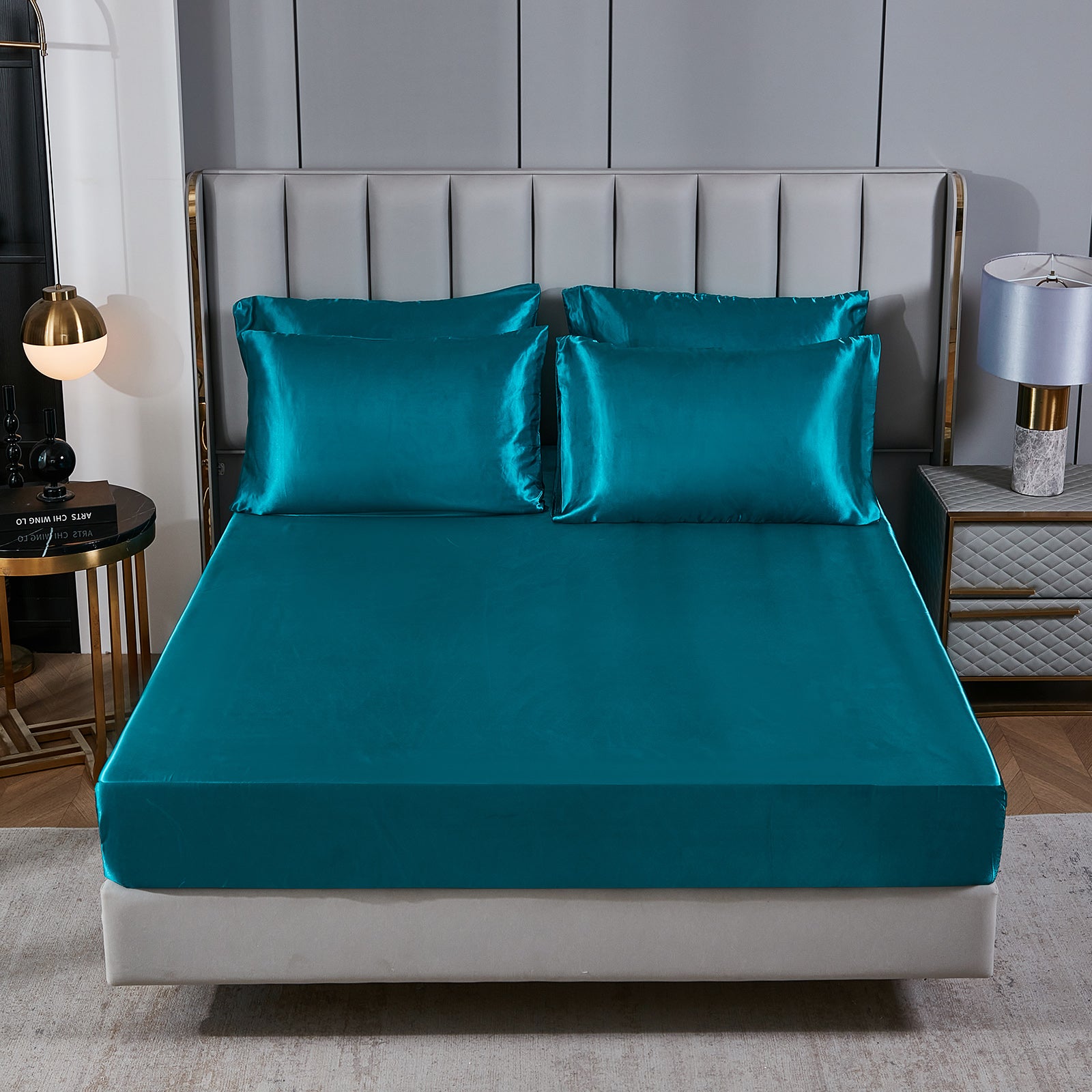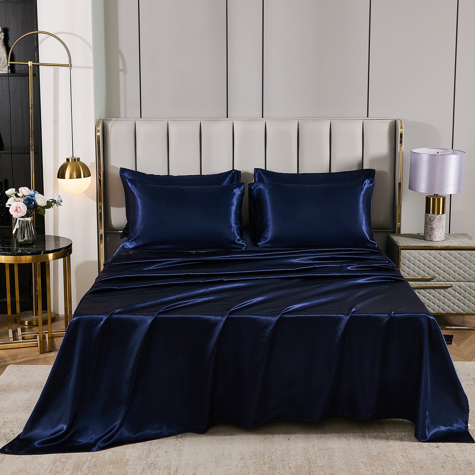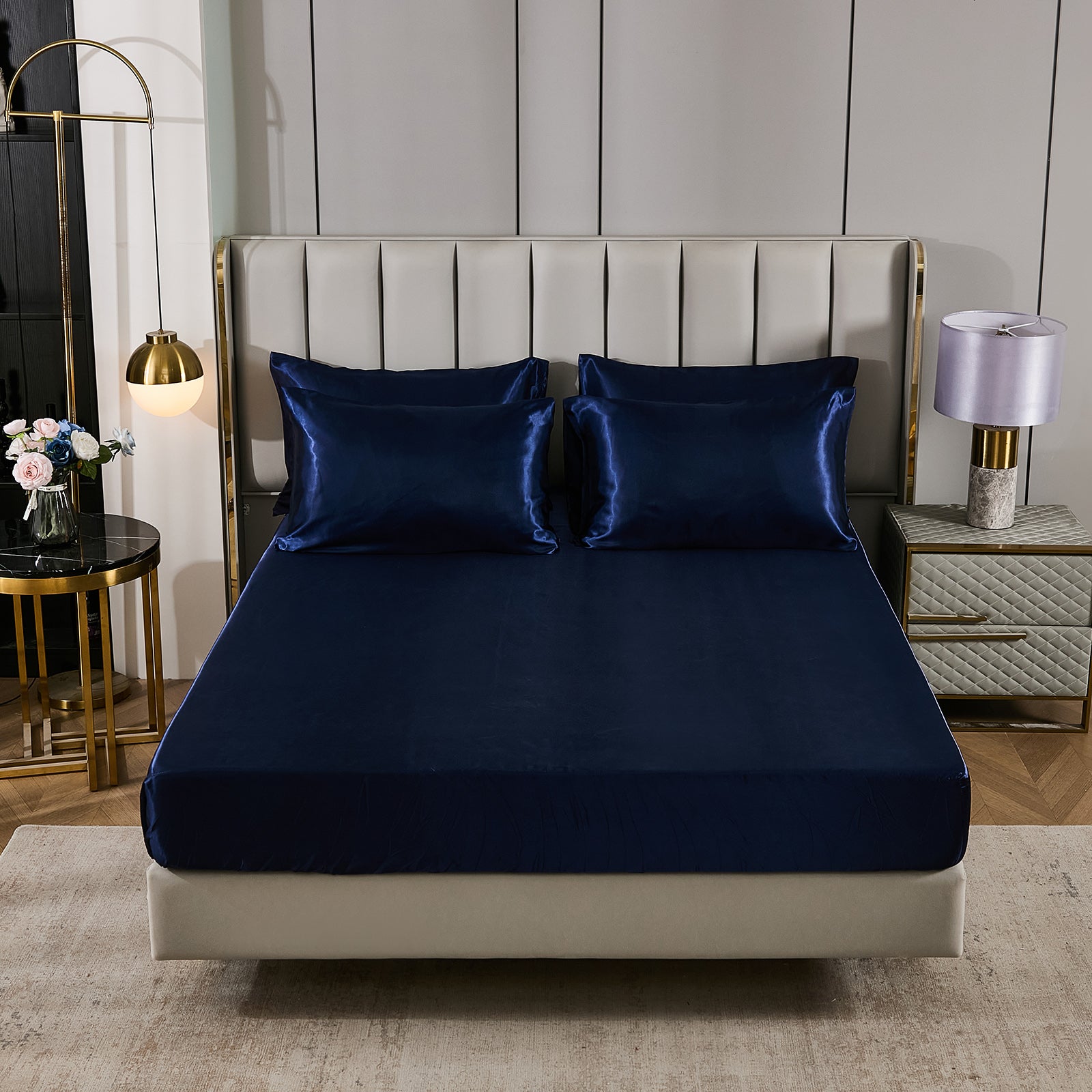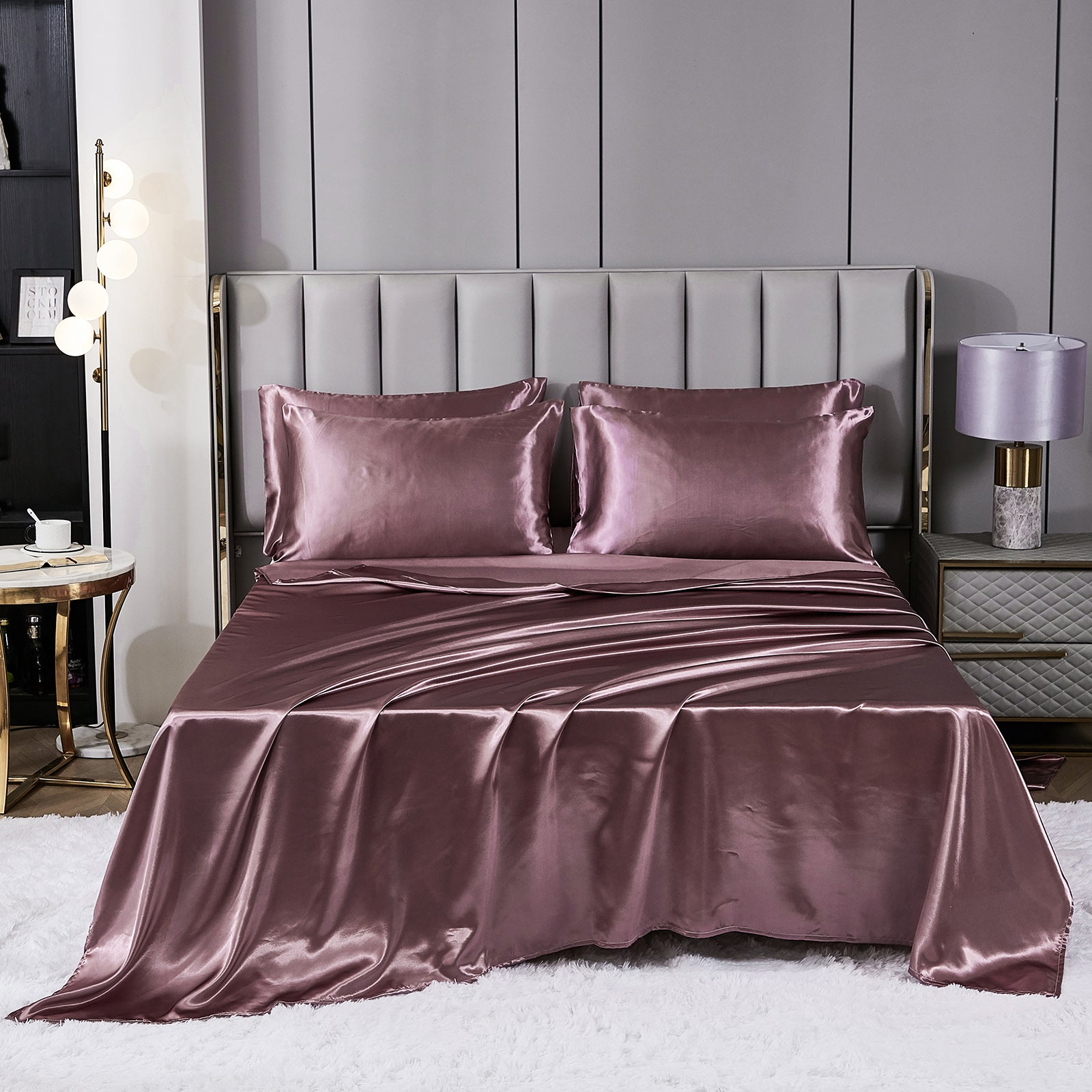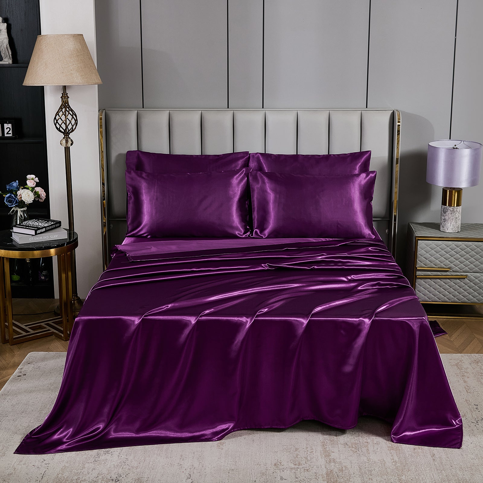 Elevate your bedroom with this Luxury Satin Comforter Set Bed in a Bag, designed to deliver elegance and comfort in one complete package. Crafted with a silky satin finish, the fabric combines the softness of silk with the durability of microfiber, giving your bedding a smooth, pearl-like sheen that brightens any room.