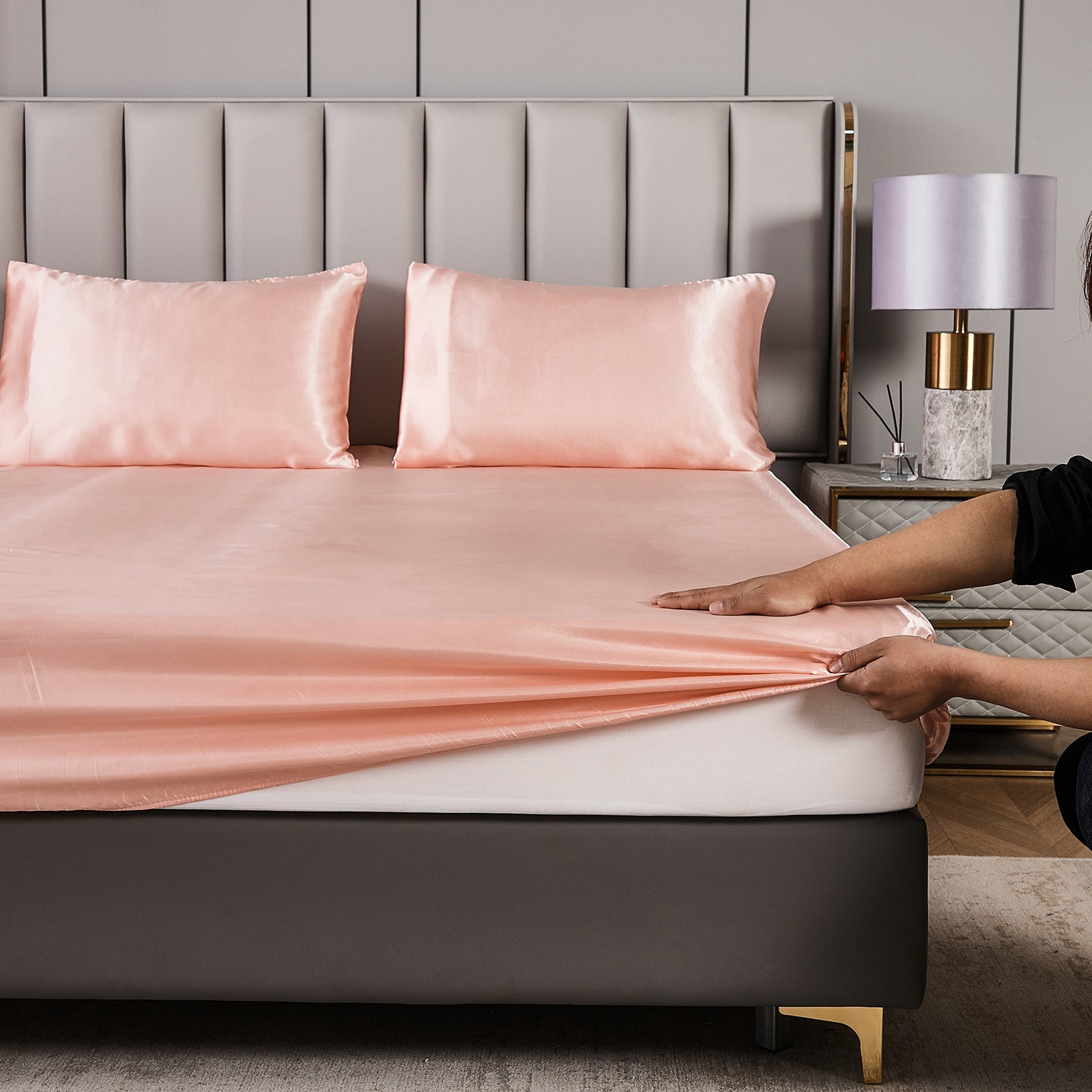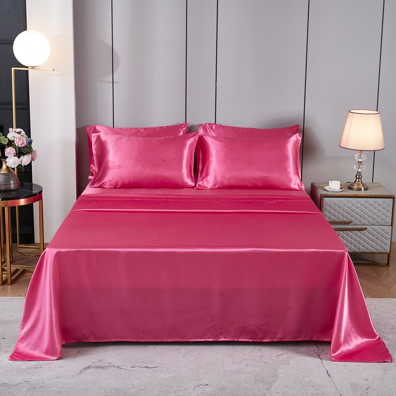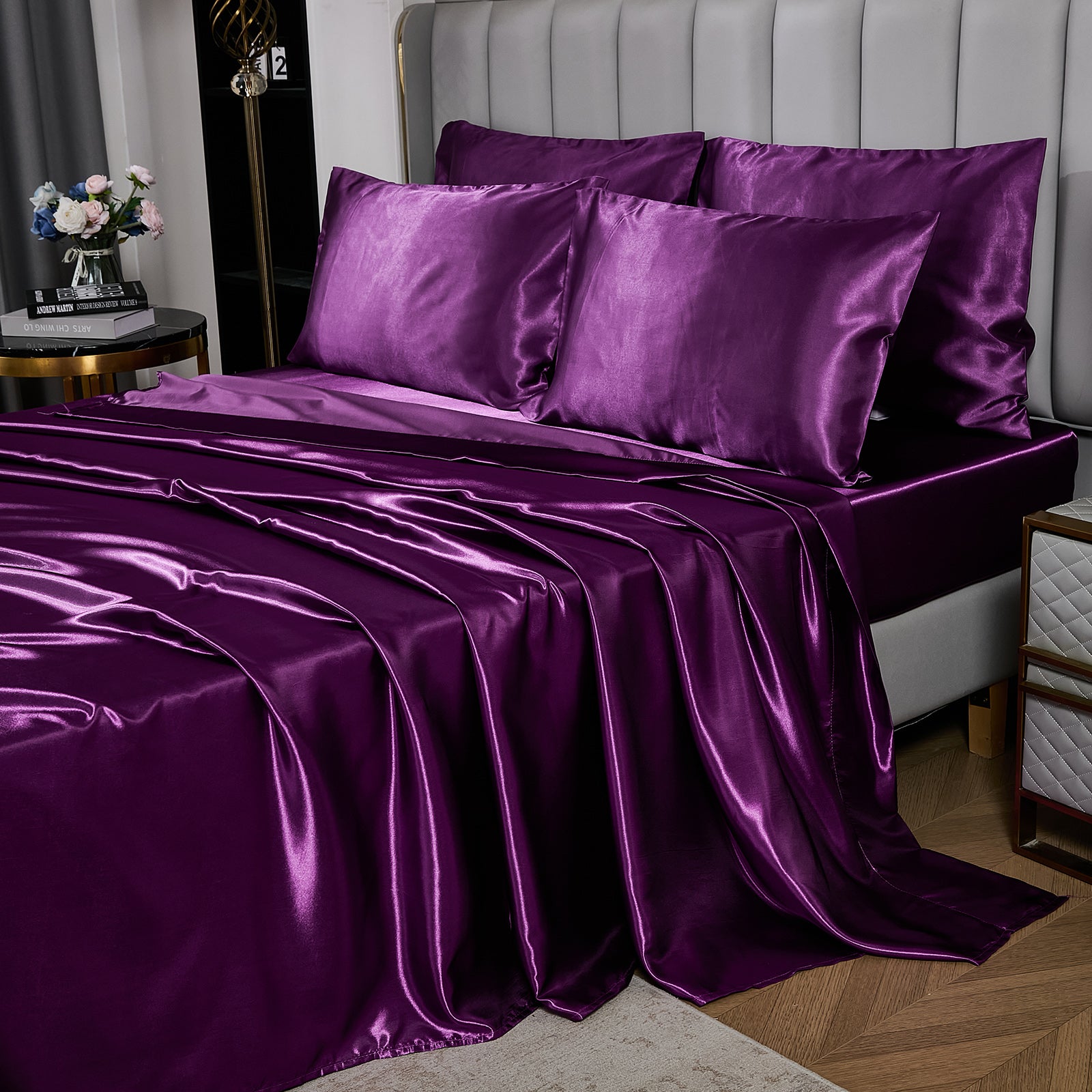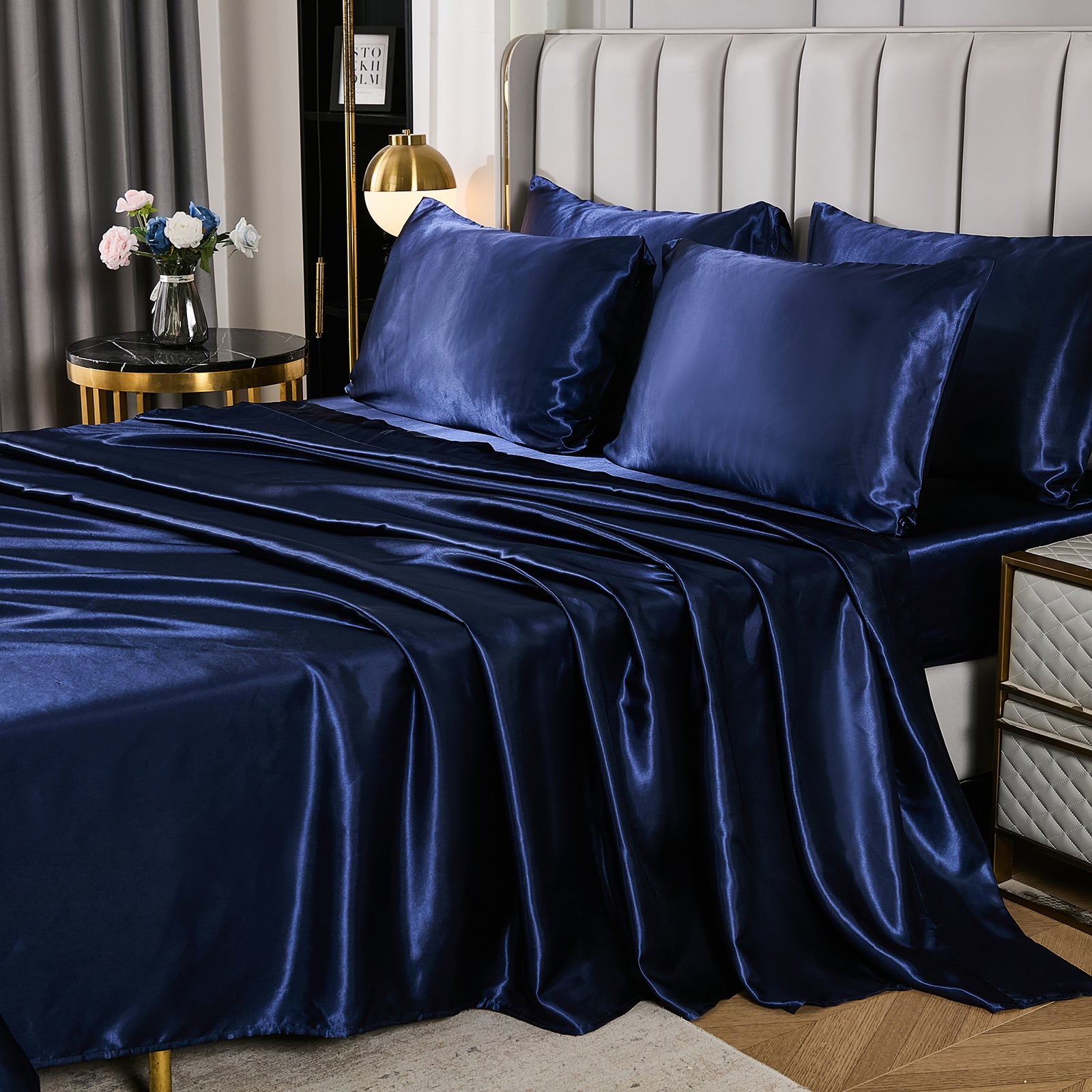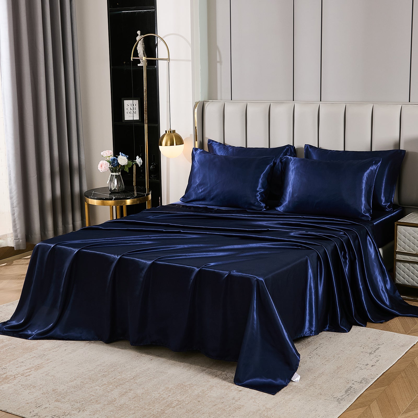 Elevate your bedroom with this Luxury Satin Comforter Set Bed in a Bag, designed to deliver elegance and comfort in one complete package. Crafted with a silky satin finish, the fabric combines the softness of silk with the durability of microfiber, giving your bedding a smooth, pearl-like sheen that brightens any room.