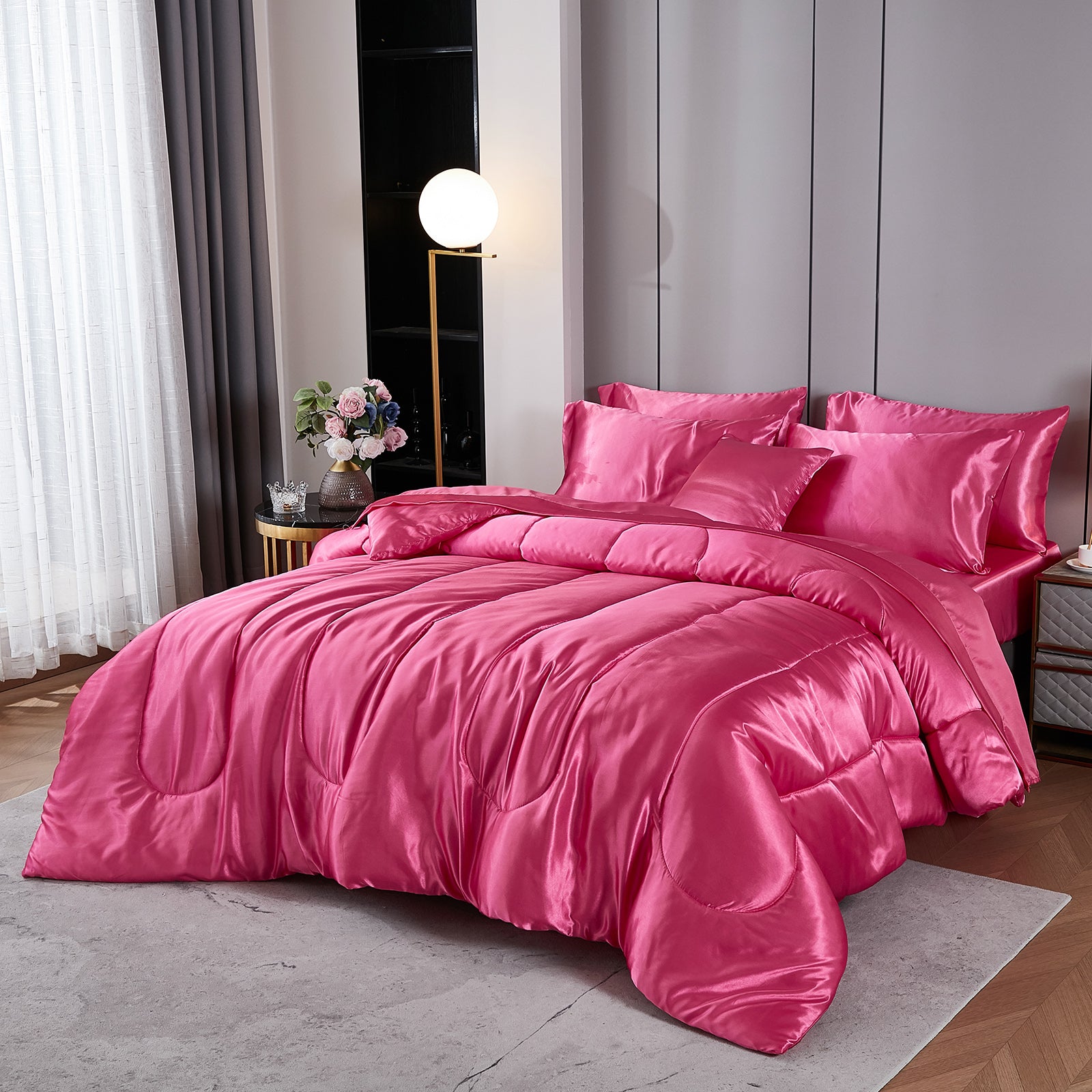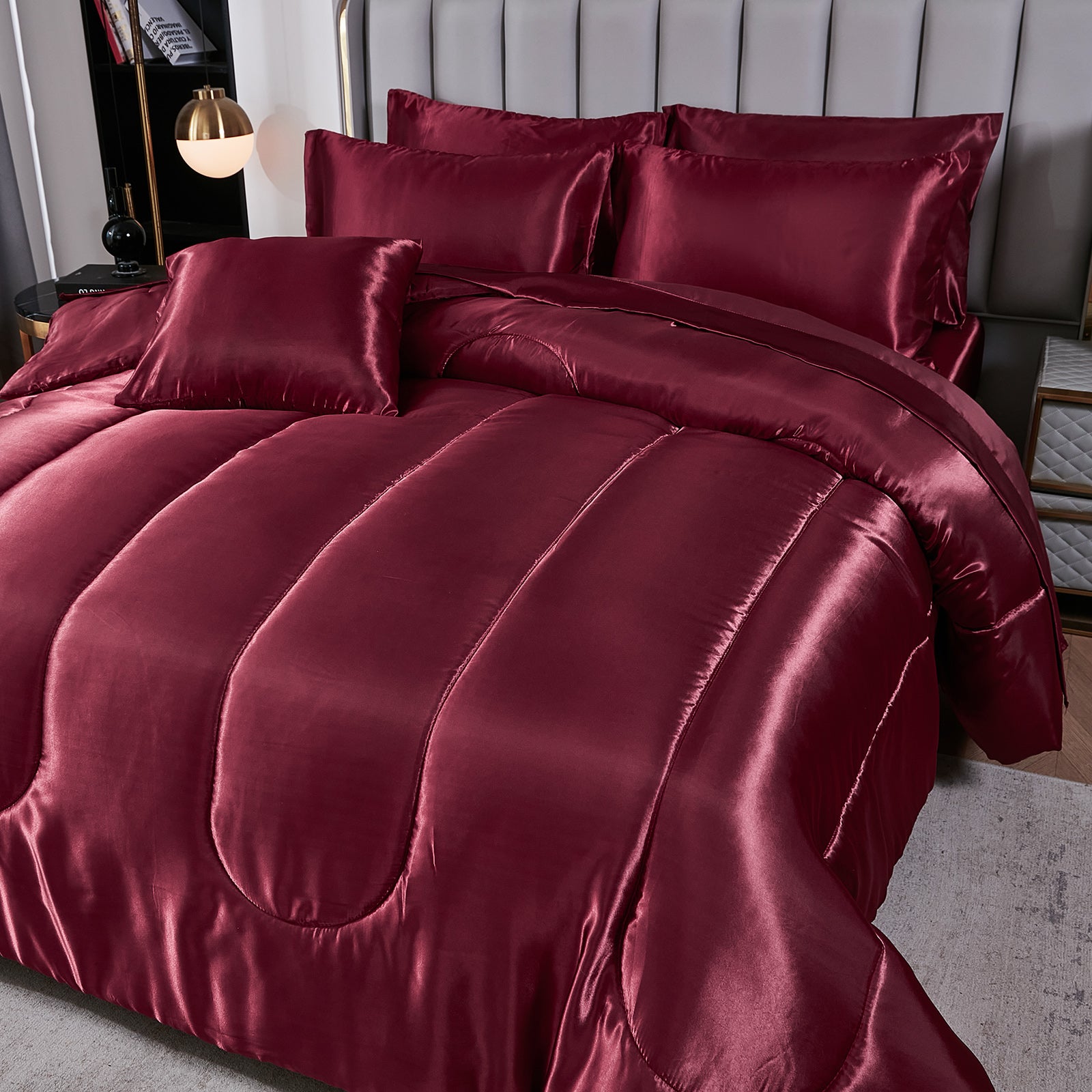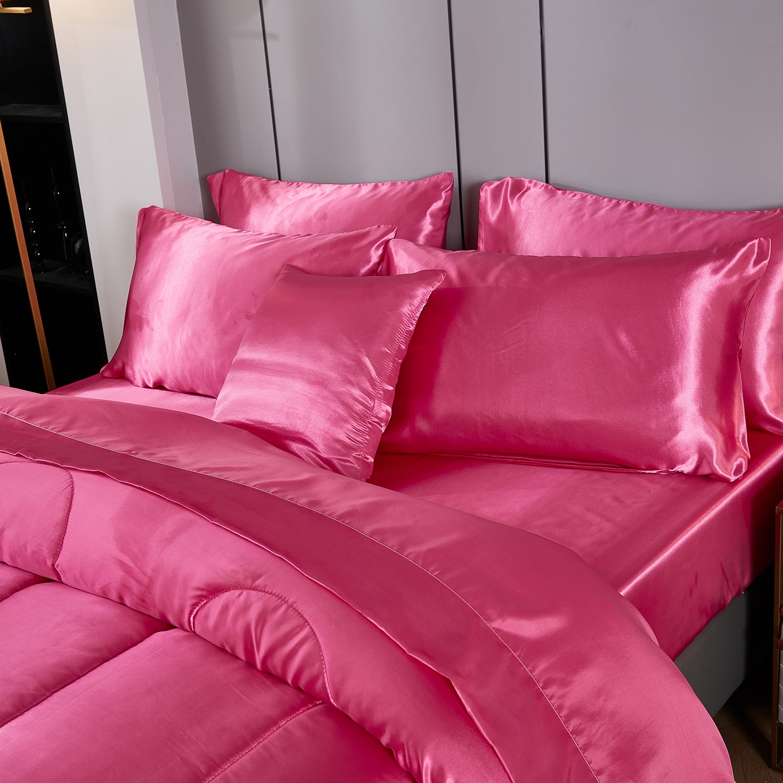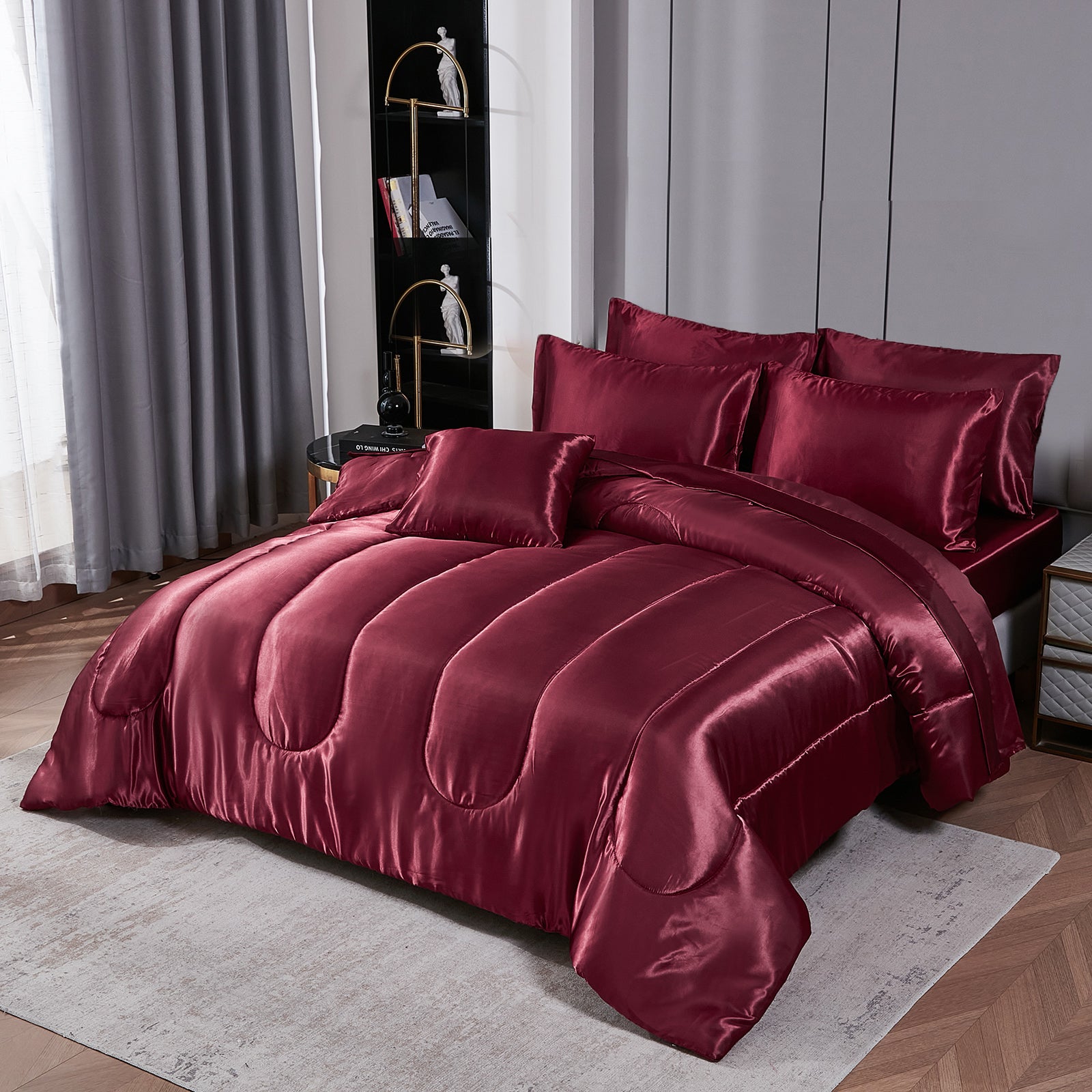 Luxury Satin Comforter Set Bed in a Bag – Silky All Season Bedding with Sheets, Pillowcases & Cushion Cover