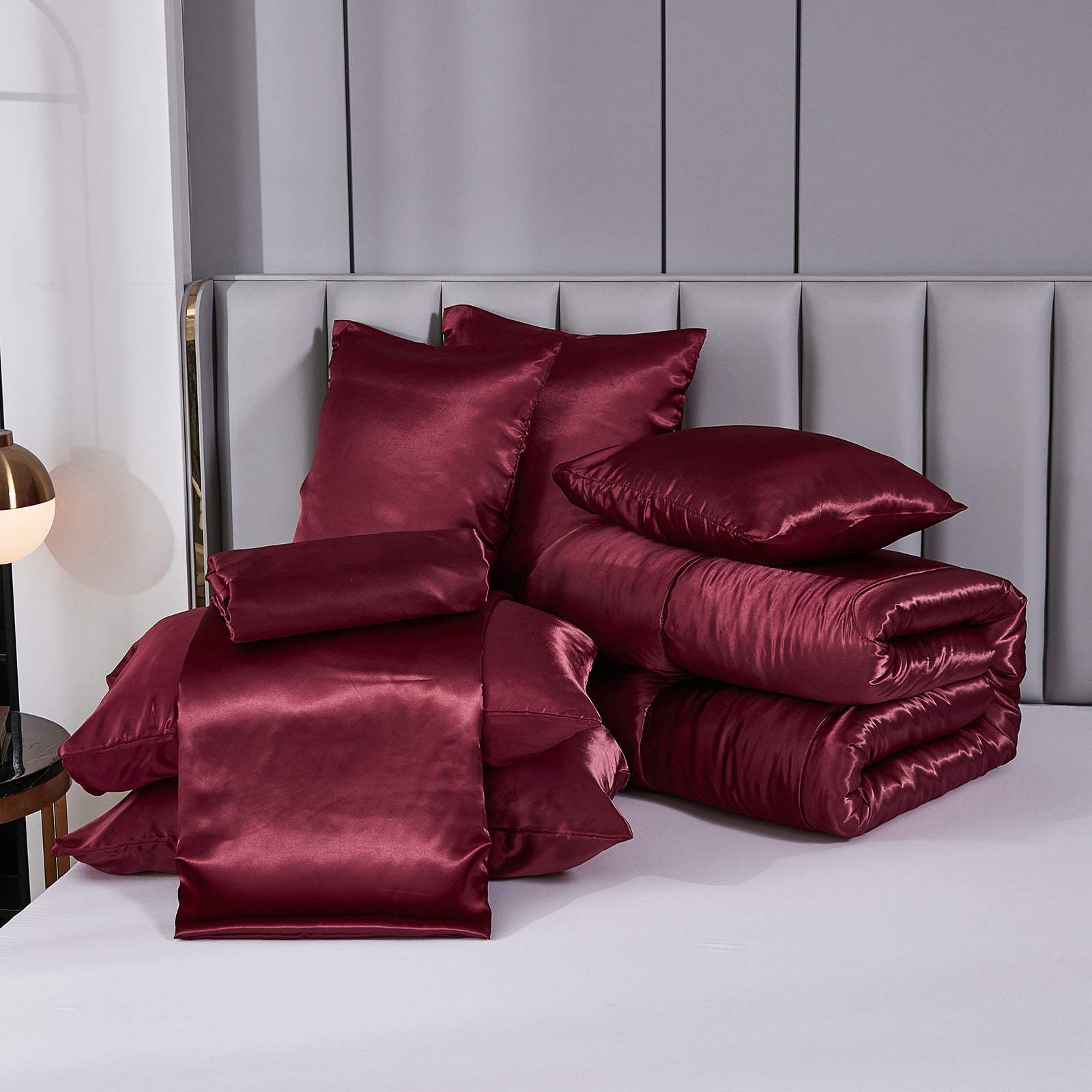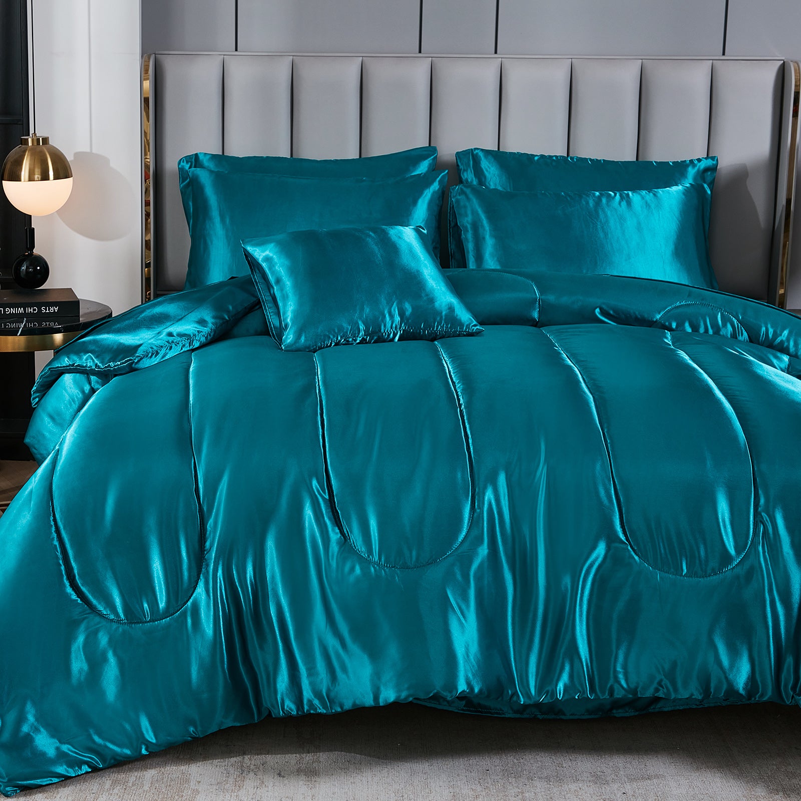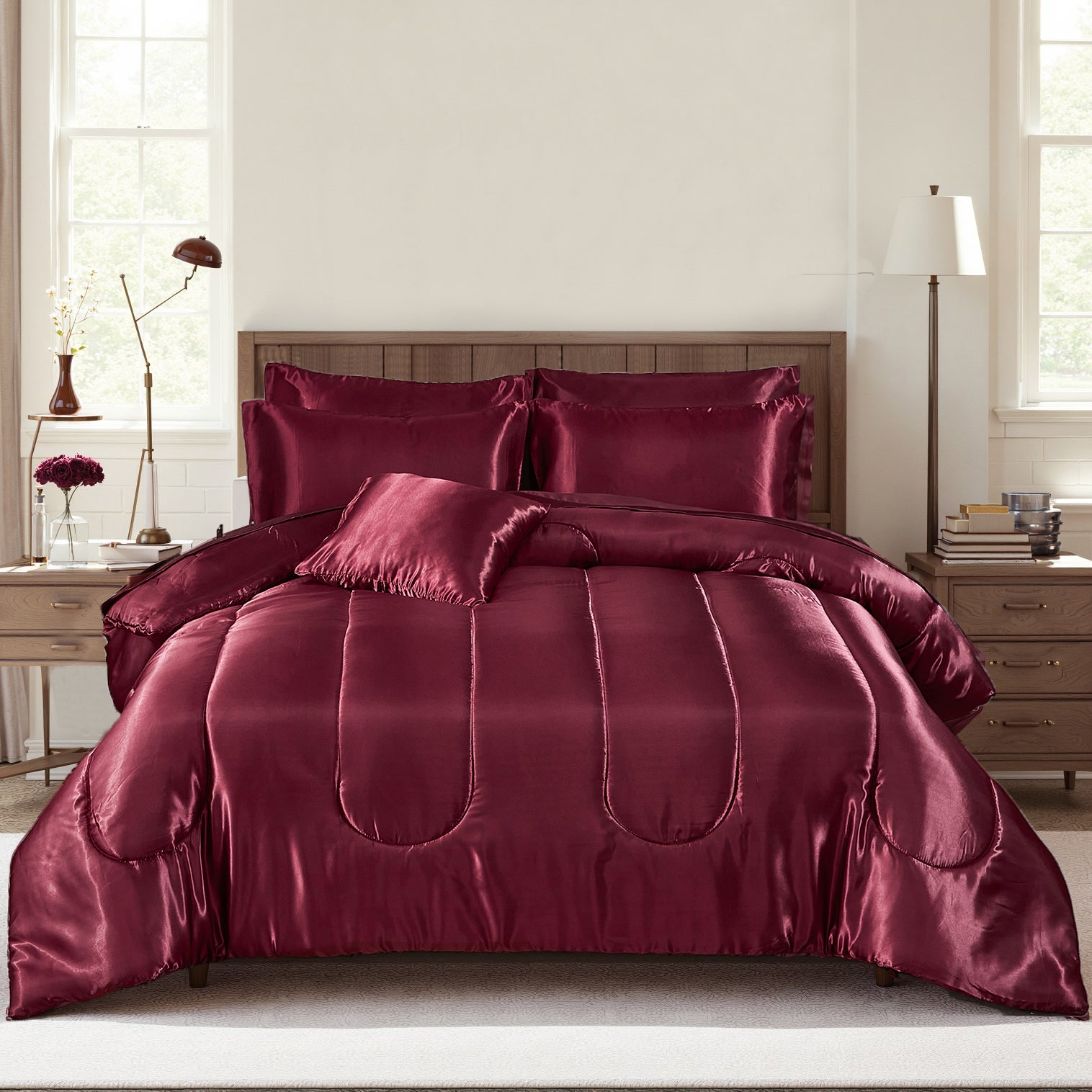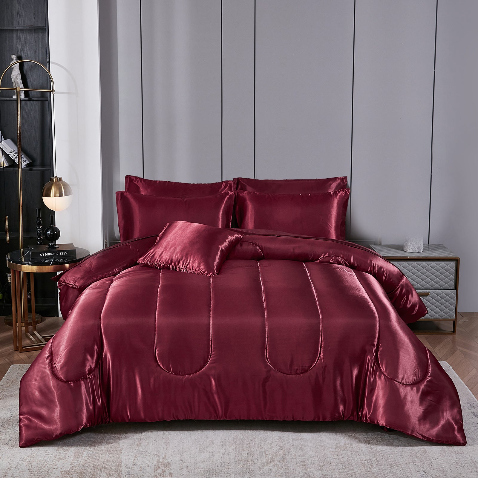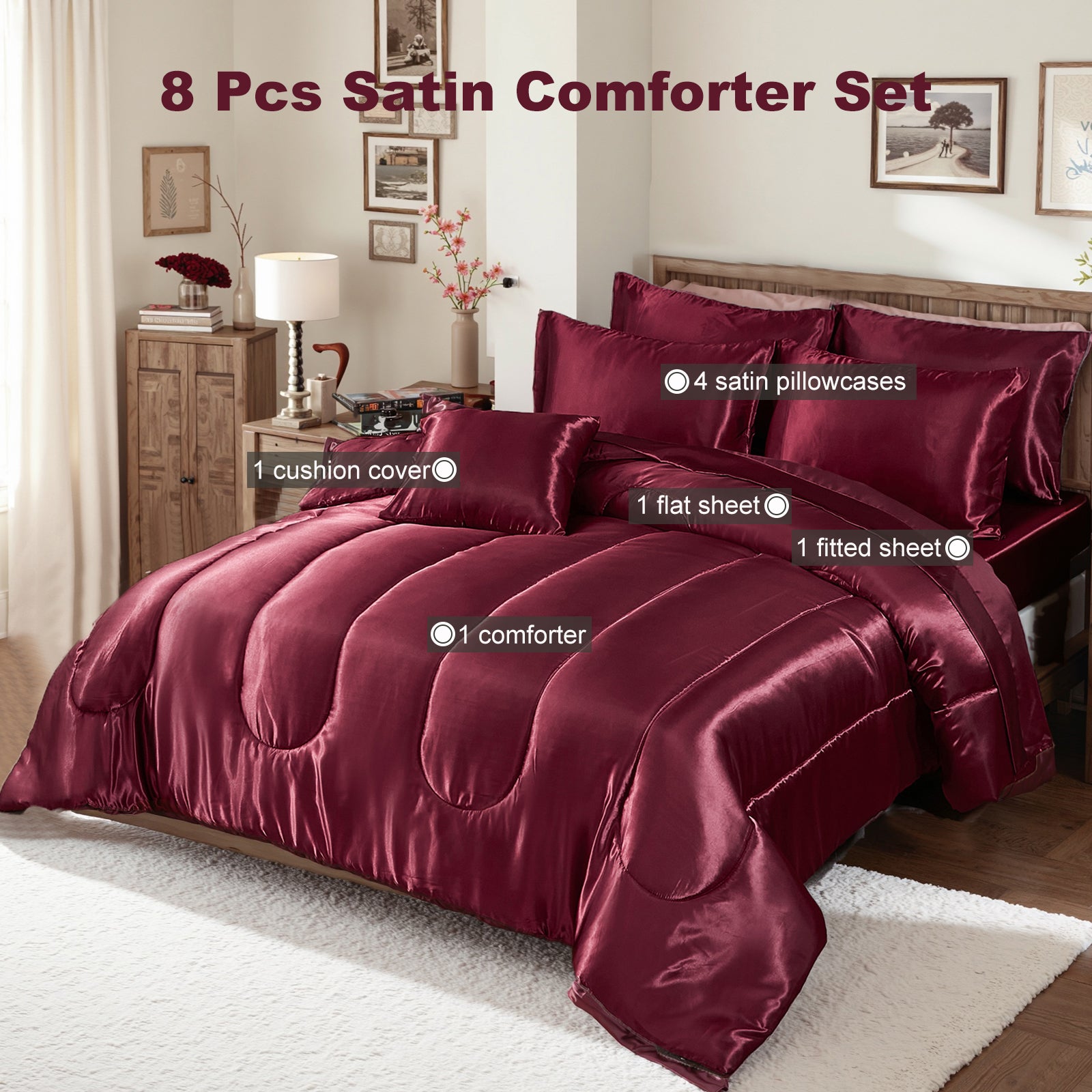 Luxury Satin Comforter Set Bed in a Bag – Silky All Season Bedding with Sheets, Pillowcases & Cushion Cover
