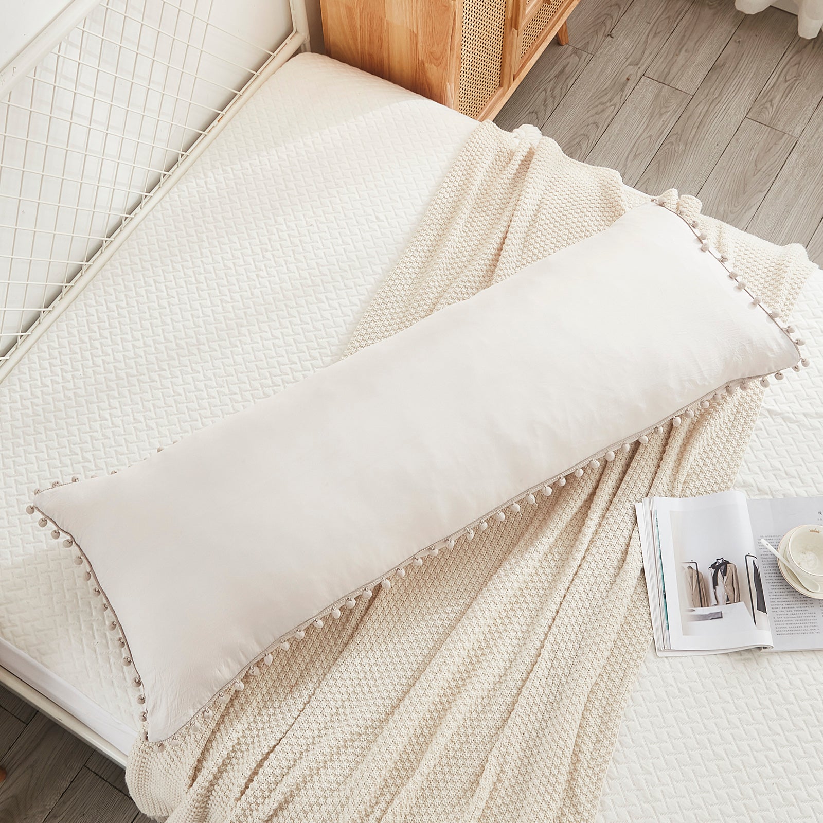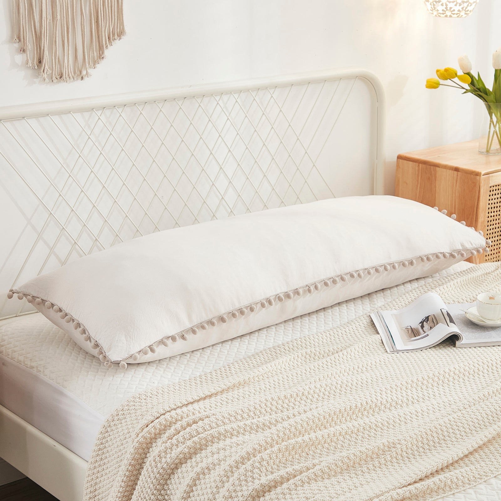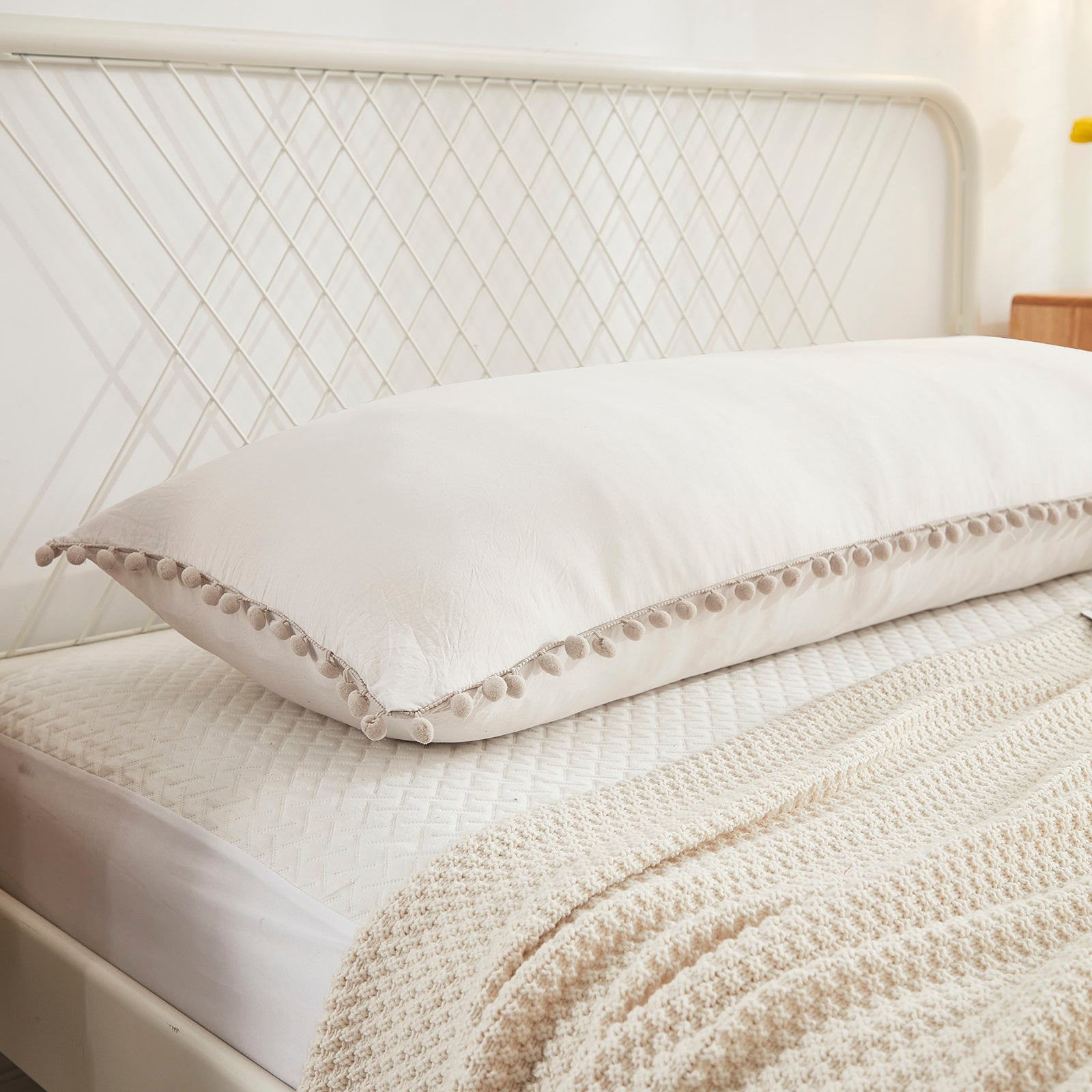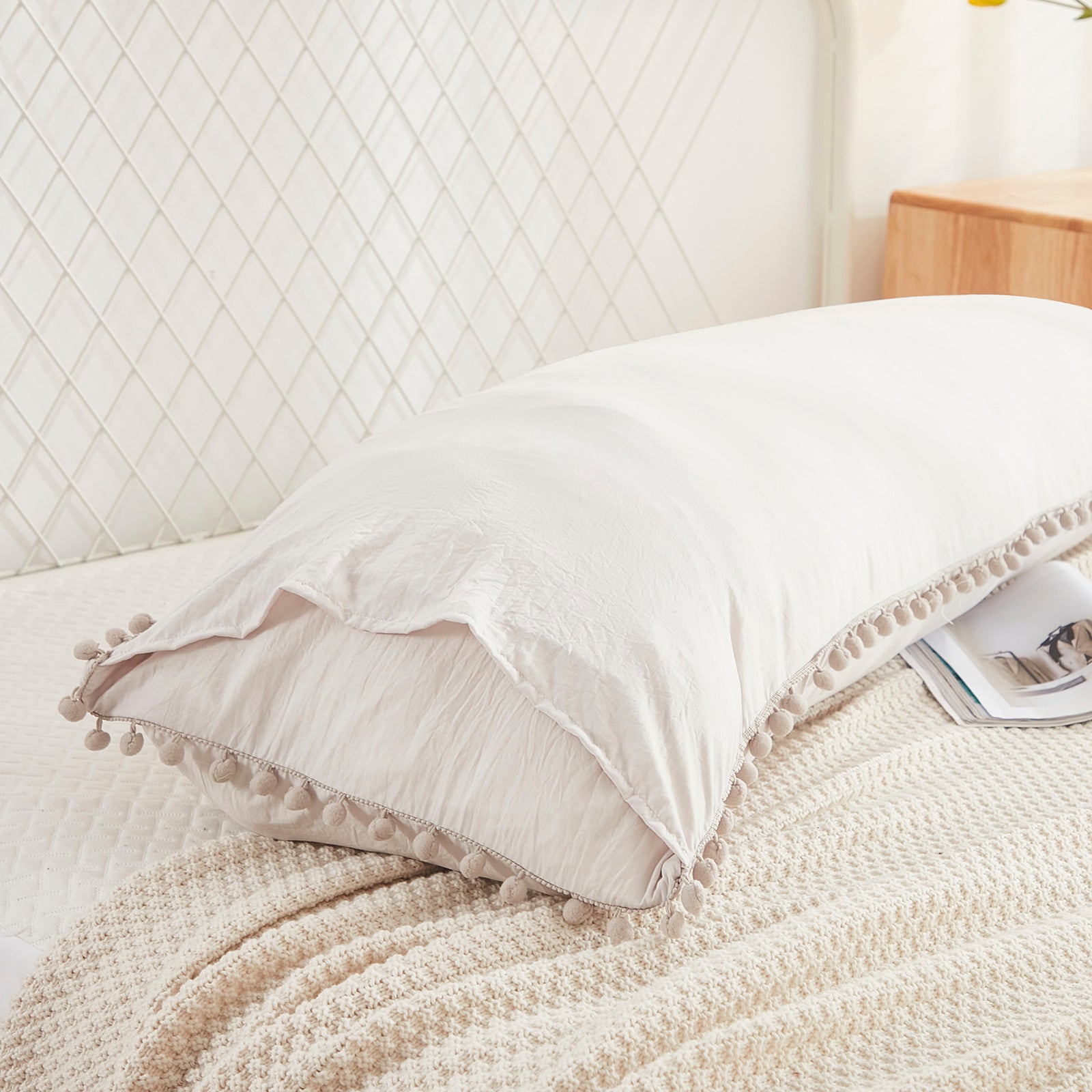 Pom-Pom Fringe Pillowcases & Body Pillow Cover – Soft Decorative Bedding Shams with Deep Pocket, Queen/King/Body Options
