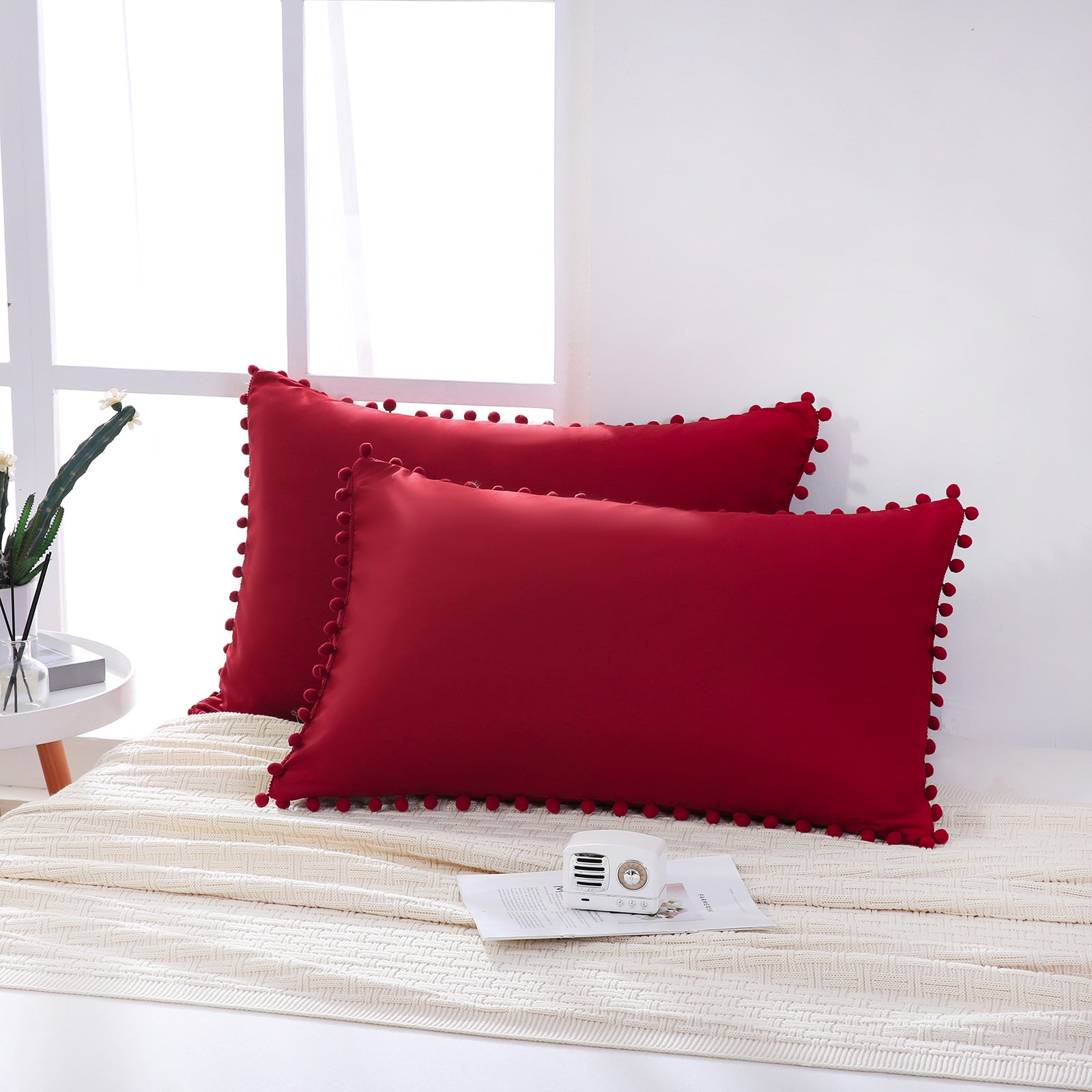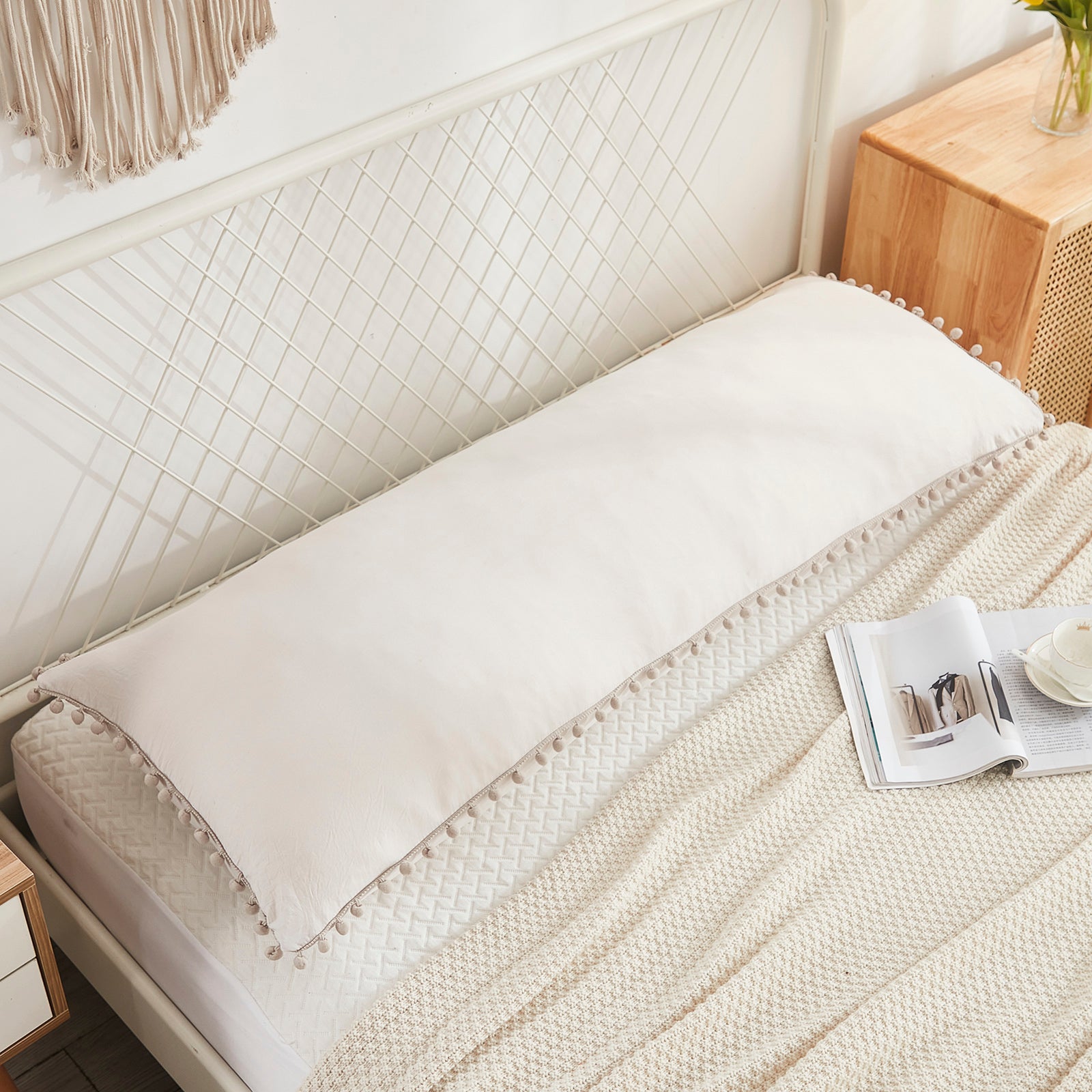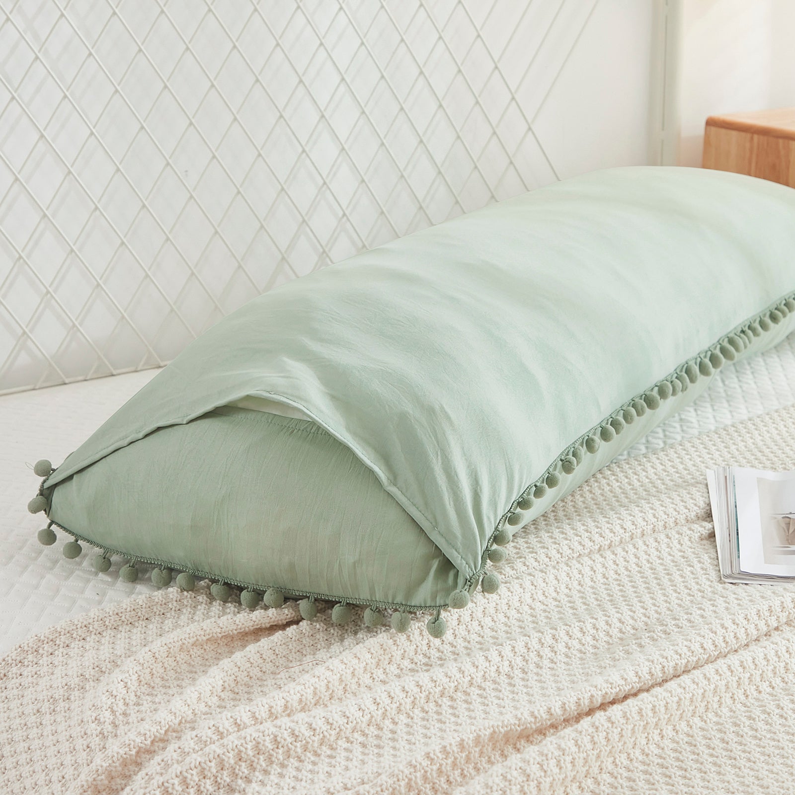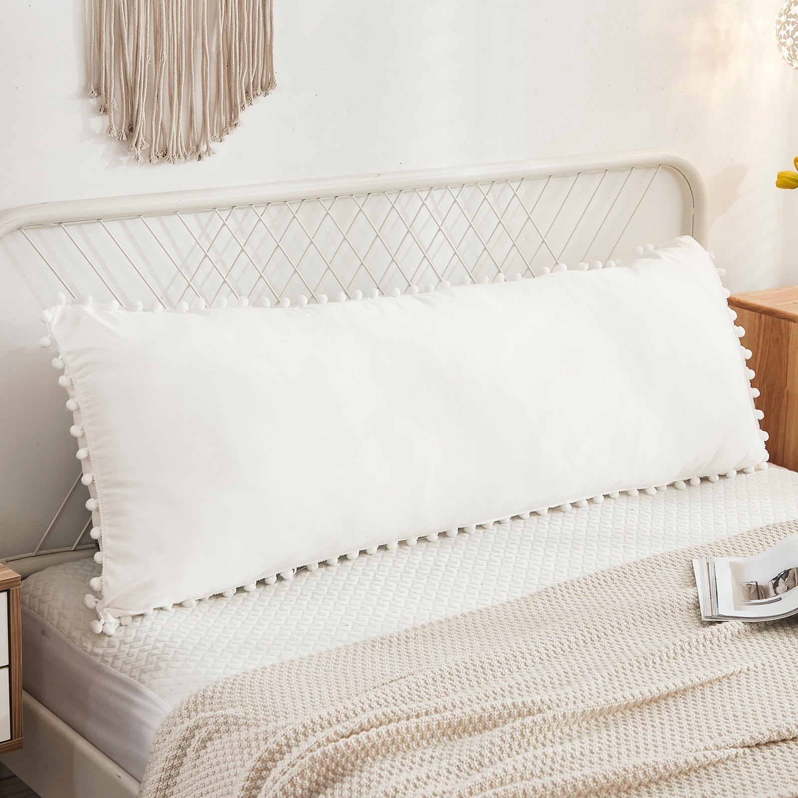 Pom-Pom Fringe Pillowcases & Body Pillow Cover – Soft Decorative Bedding Shams with Deep Pocket, Queen/King/Body Options
