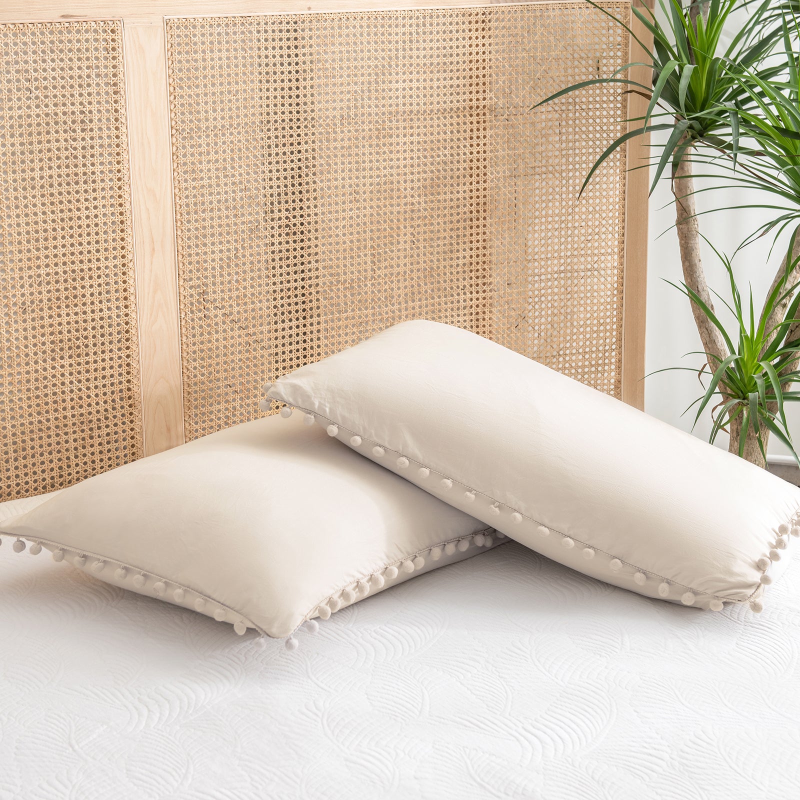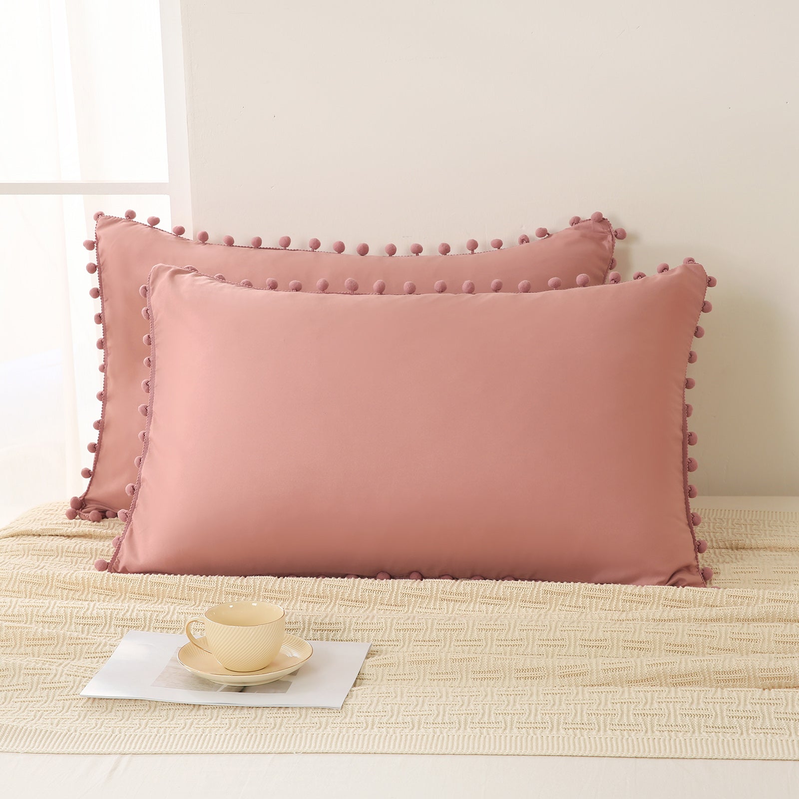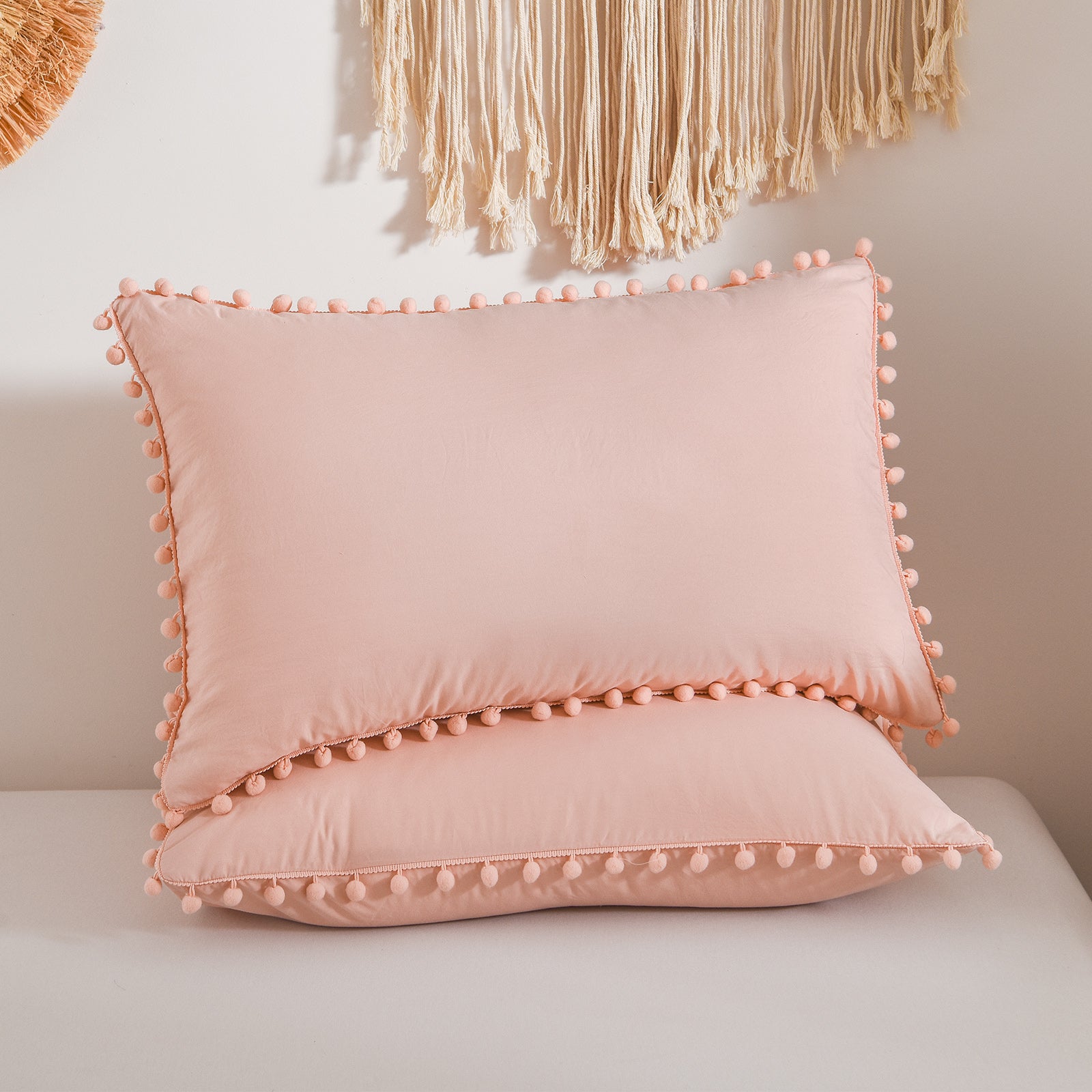 Bring charm and comfort to your bedroom with these Pom-Pom Fringe Pillowcases and Body Pillow Cover. Featuring a delicate pom-pom trim, these pillow shams add a chic, playful accent that instantly brightens your bedding and enhances any room décor.