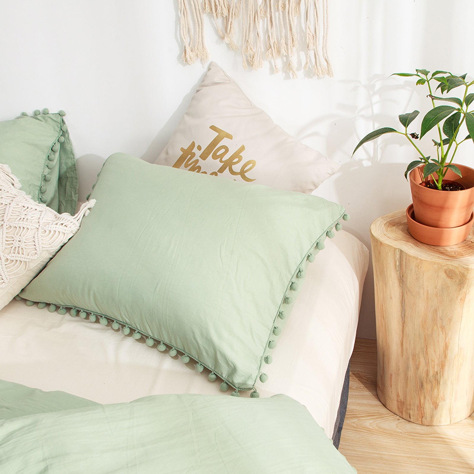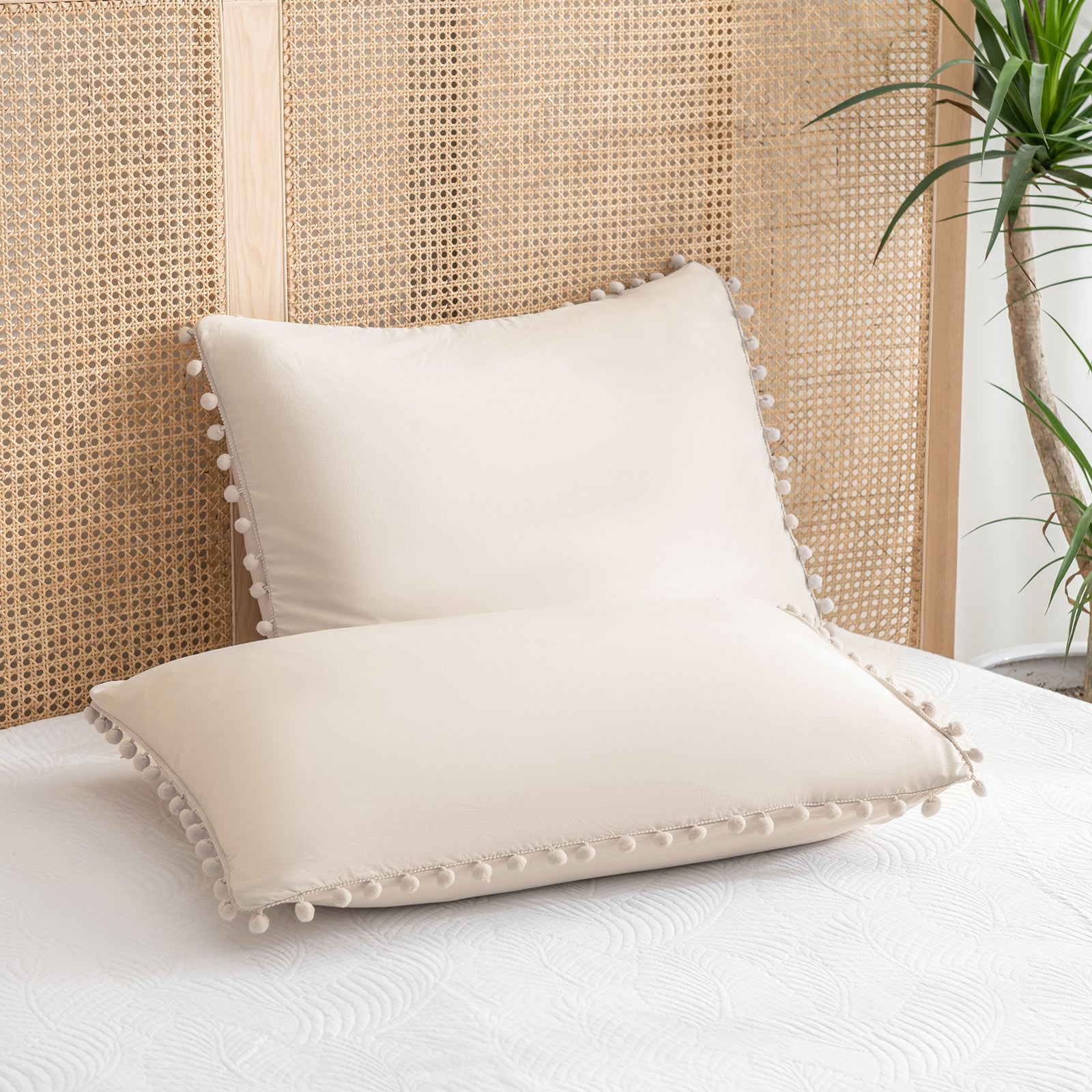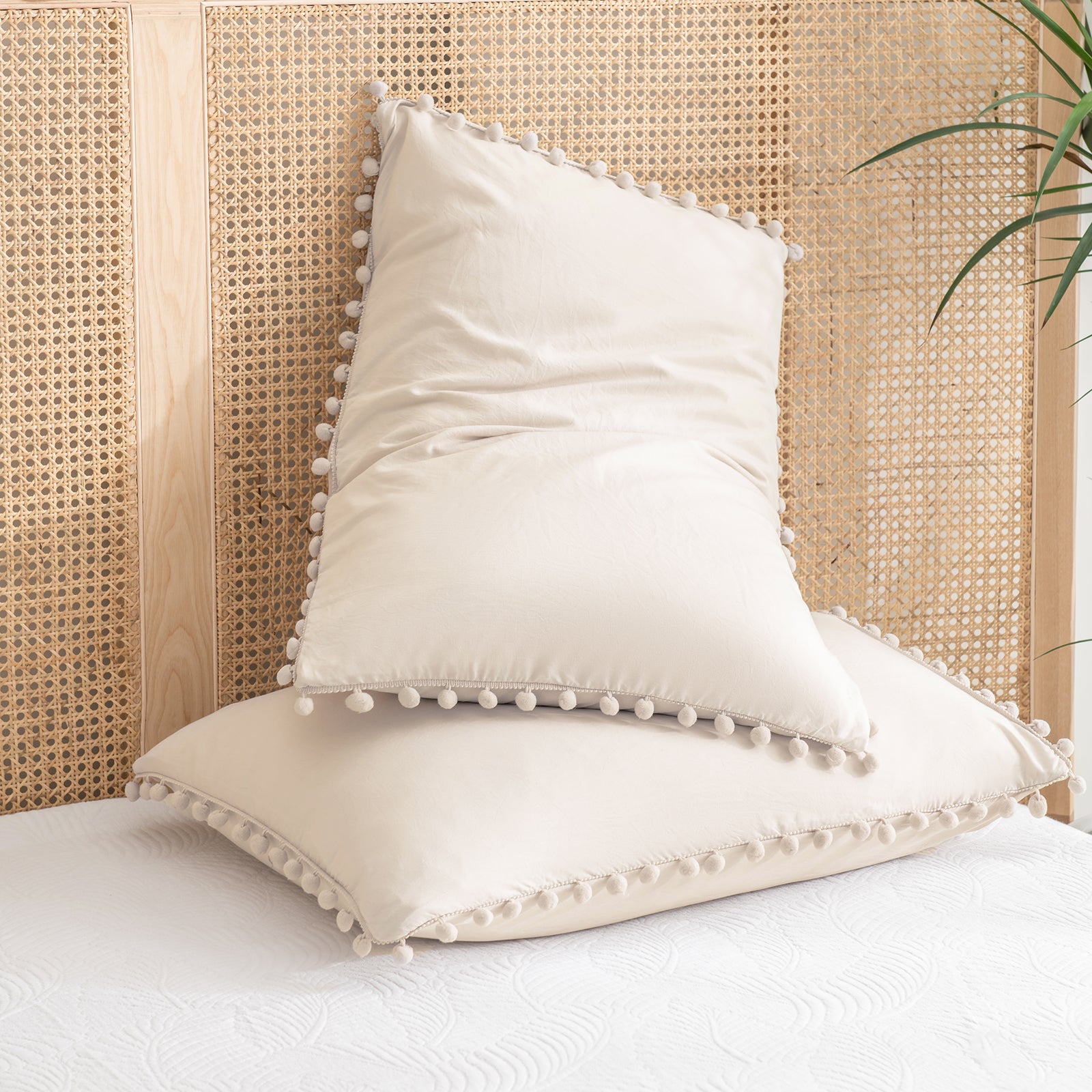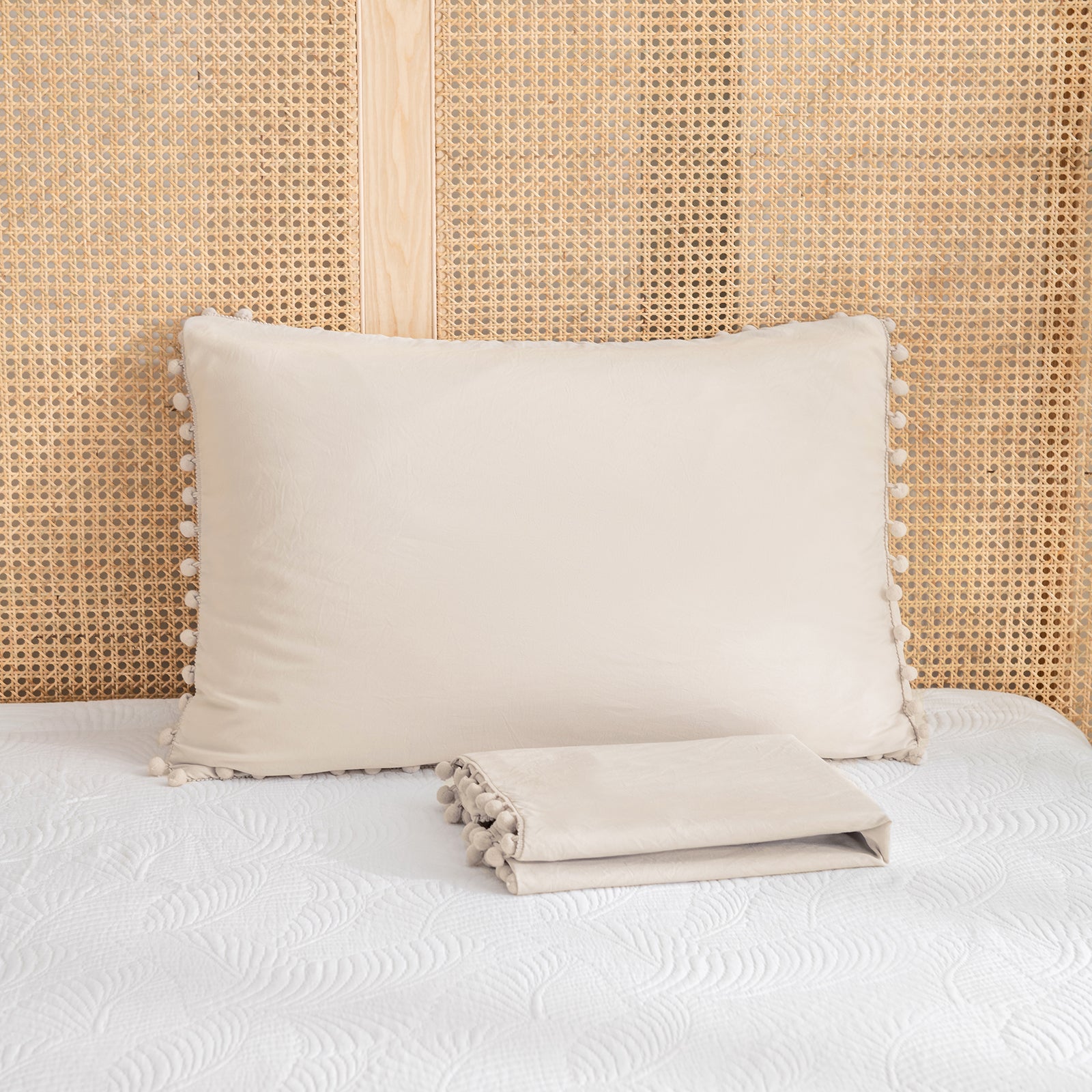 Bring charm and comfort to your bedroom with these Pom-Pom Fringe Pillowcases and Body Pillow Cover. Featuring a delicate pom-pom trim, these pillow shams add a chic, playful accent that instantly brightens your bedding and enhances any room décor.