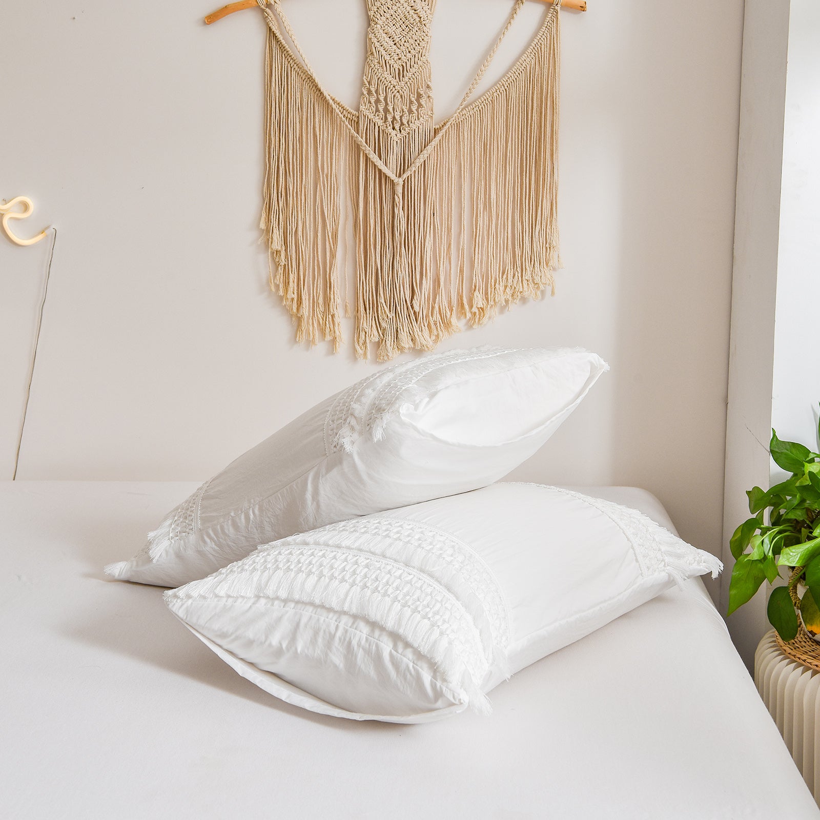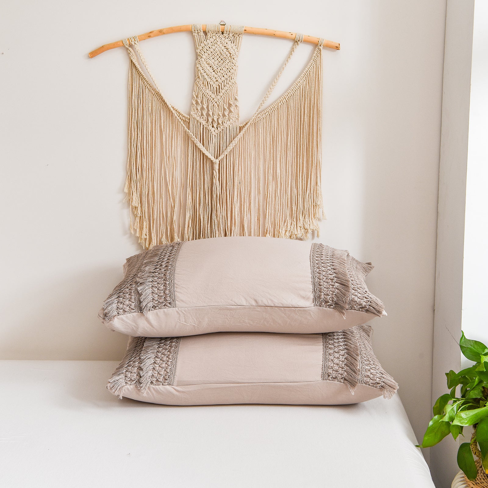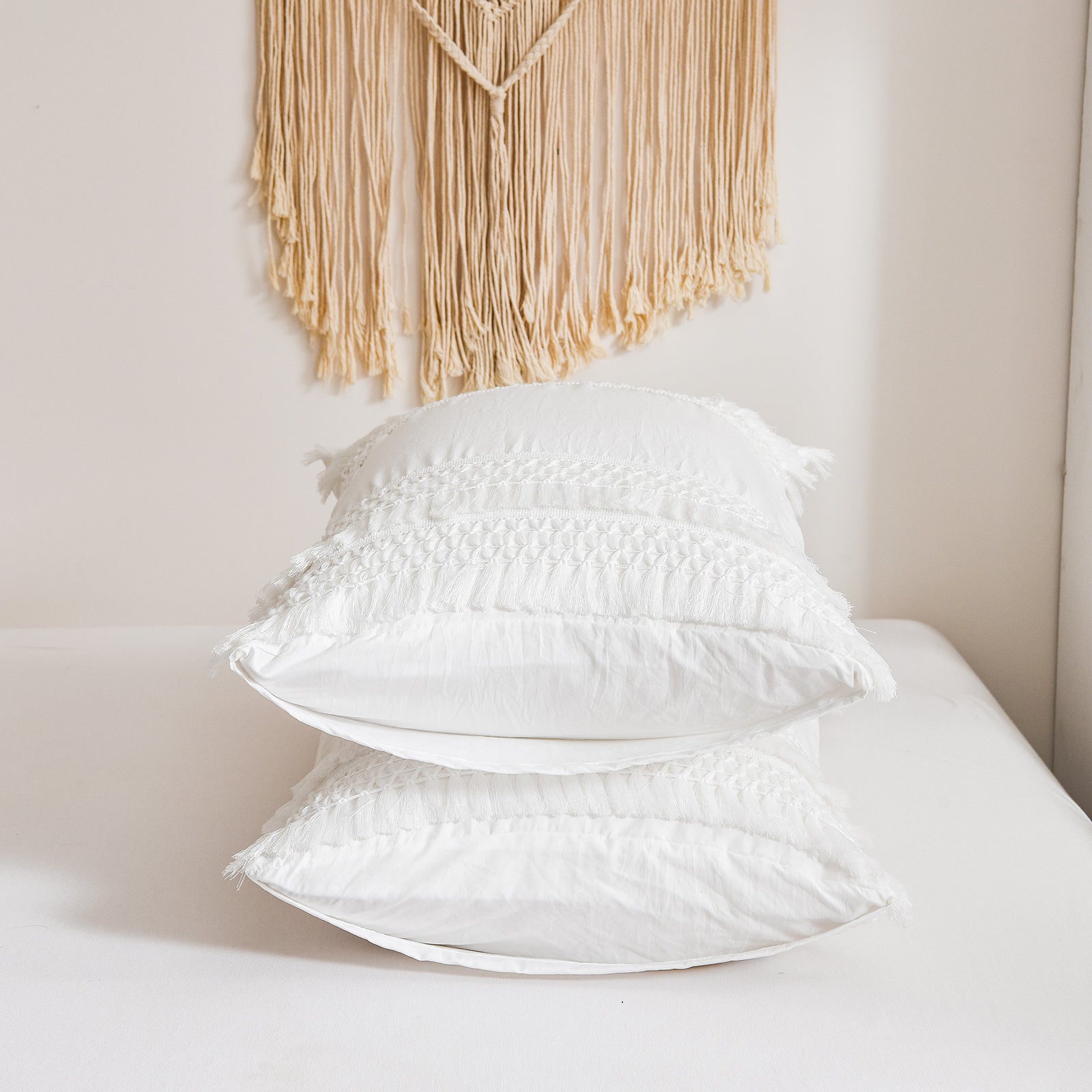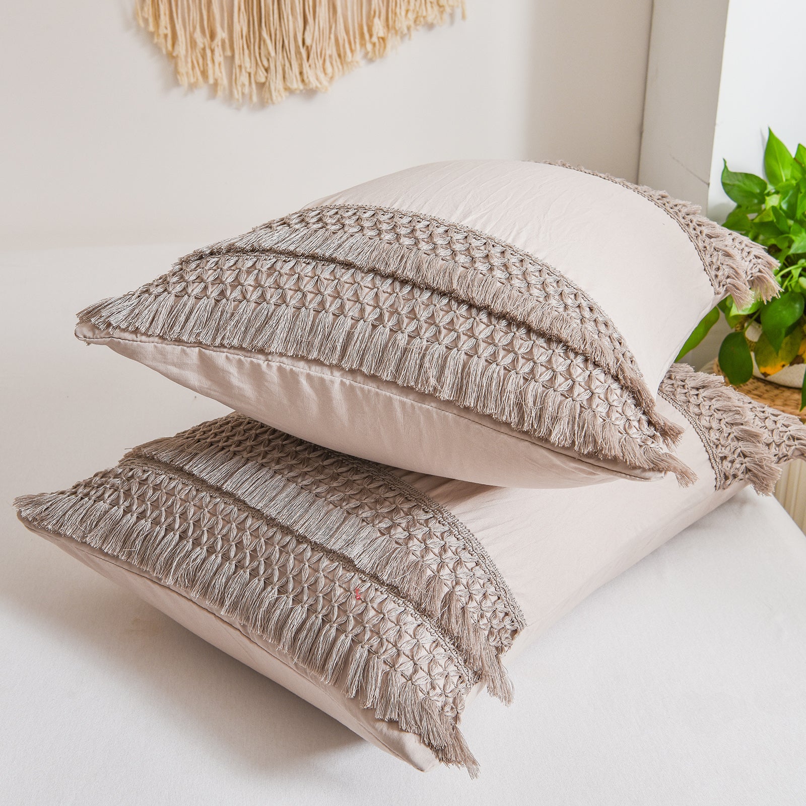 Macrame Tassel Pillowcases – Soft Decorative Pillow Covers with Fringe, Boho Style Deep Pocket Design, Queen/King/Body Options