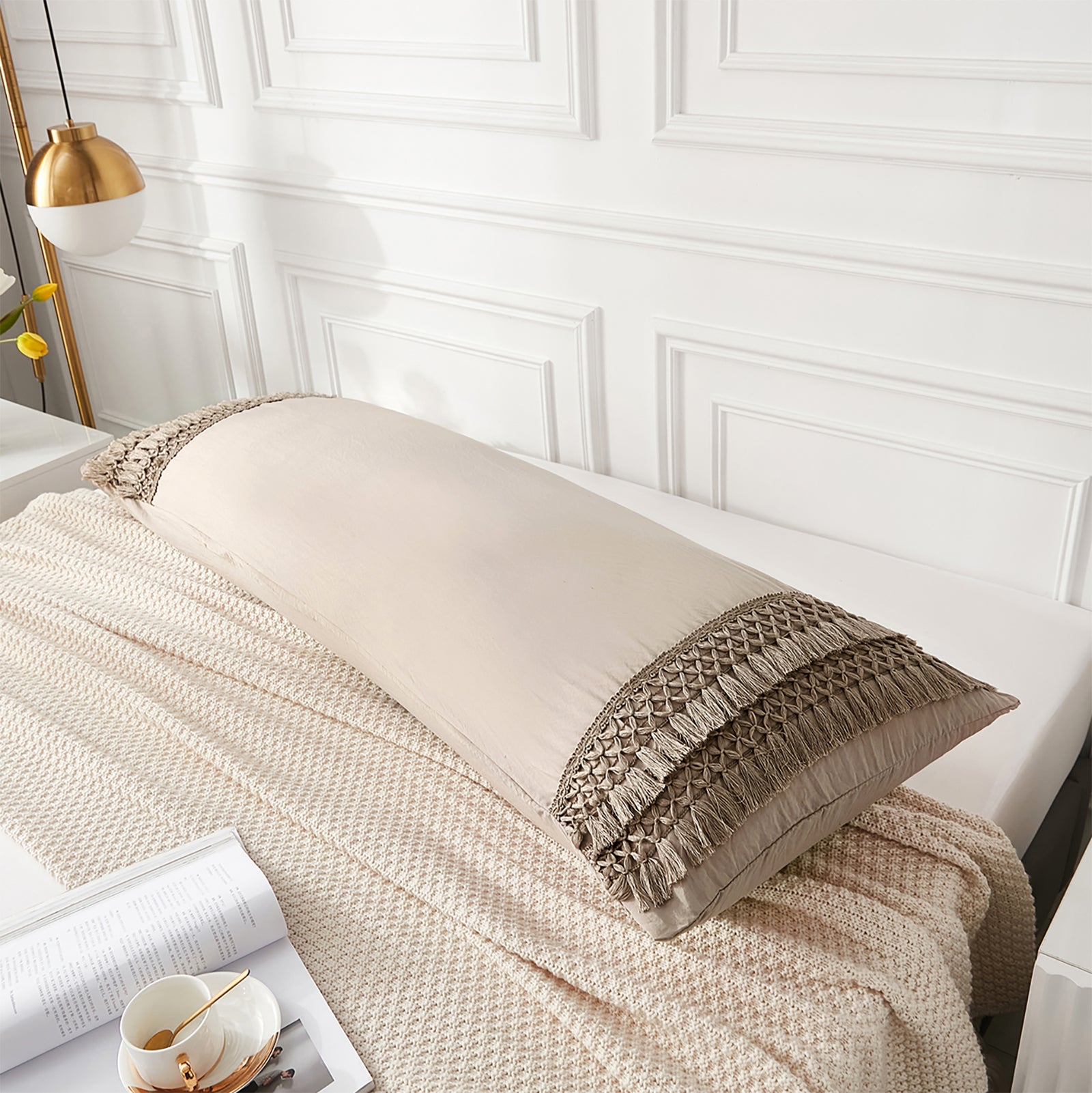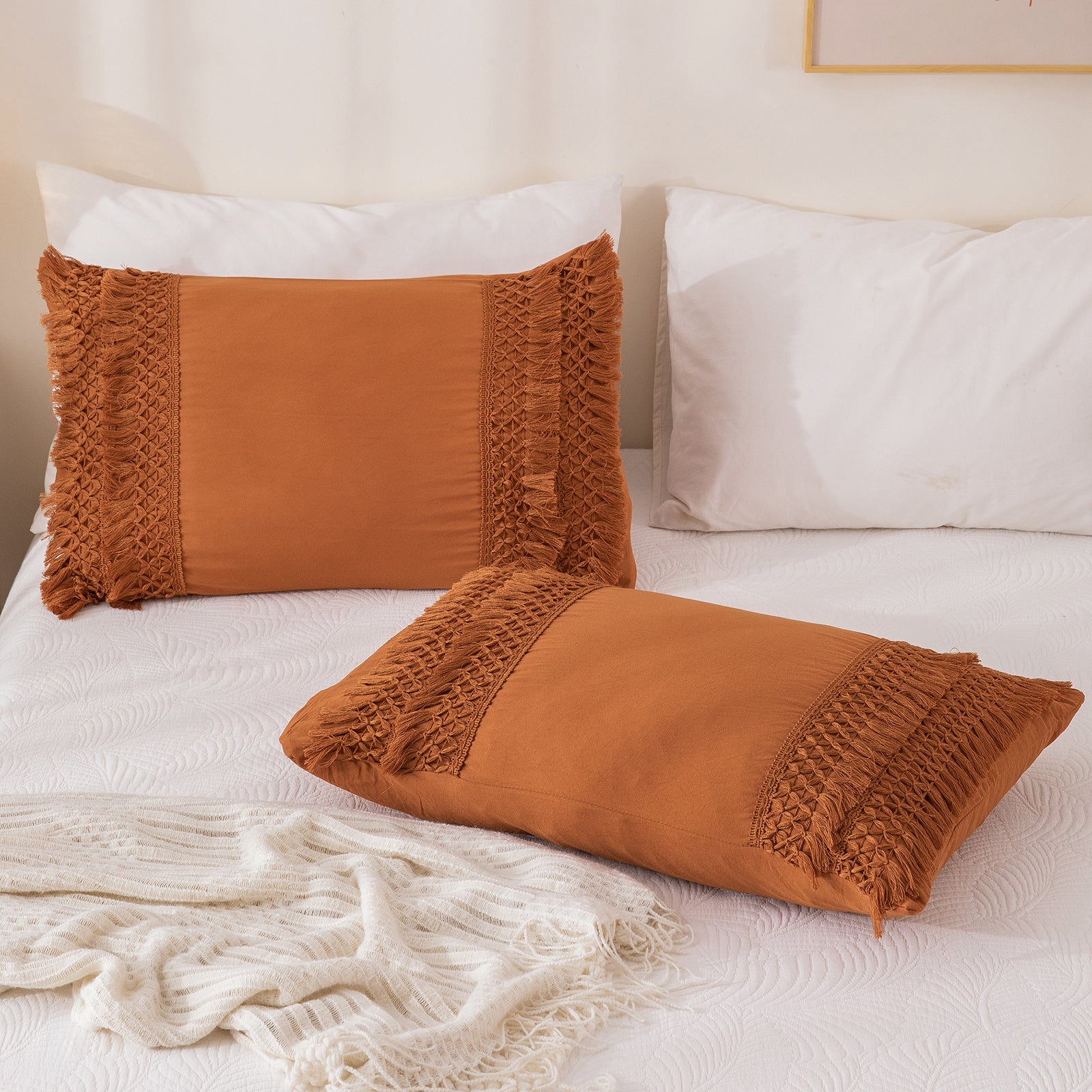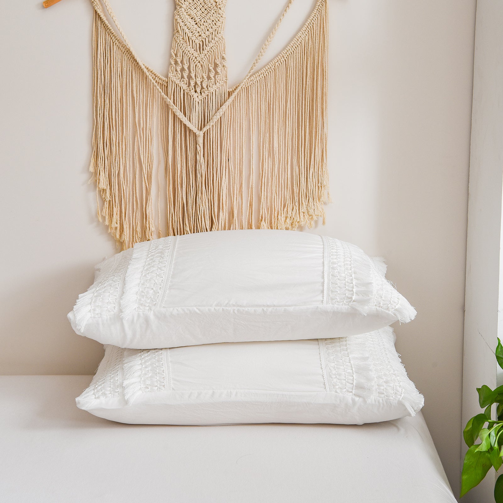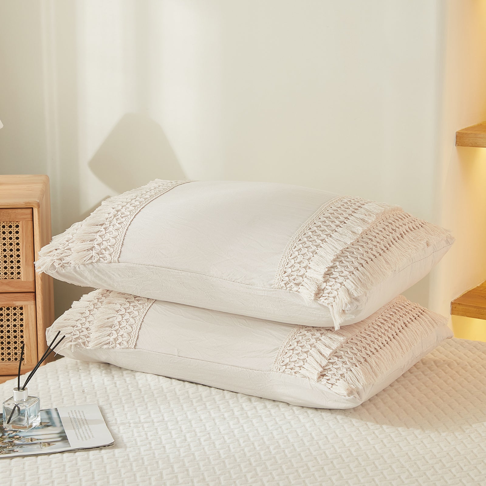 Macrame Tassel Pillowcases – Soft Decorative Pillow Covers with Fringe, Boho Style Deep Pocket Design, Queen/King/Body Options