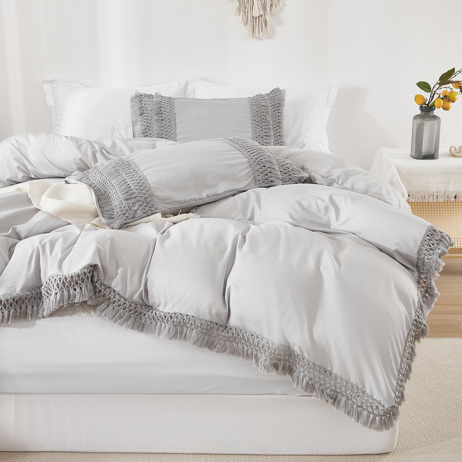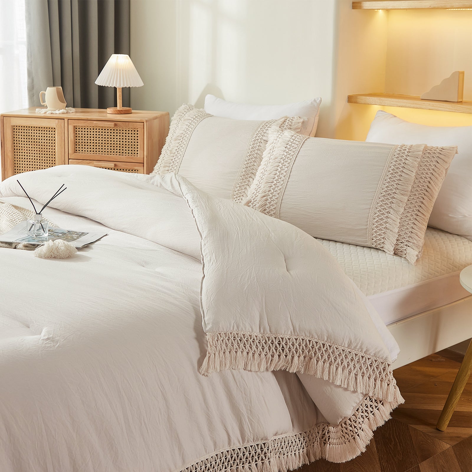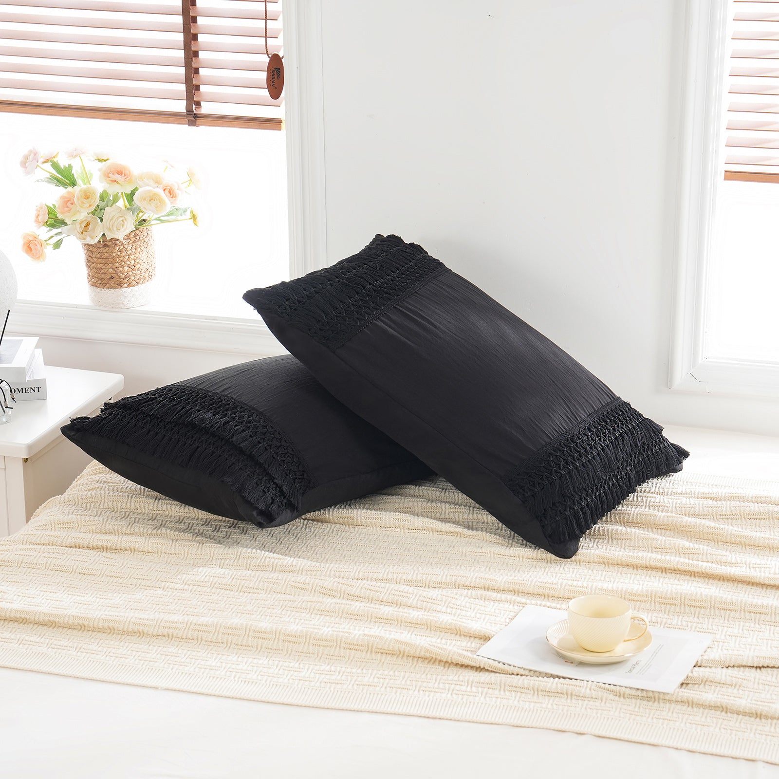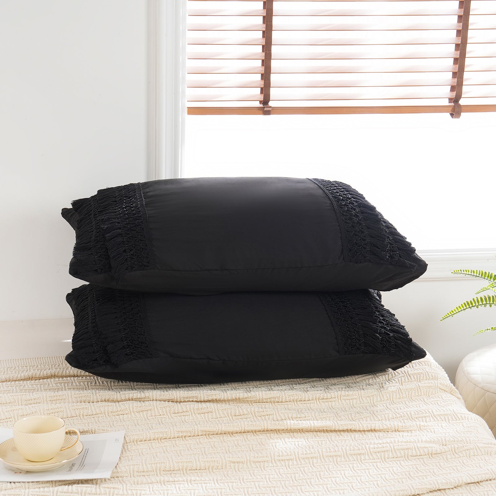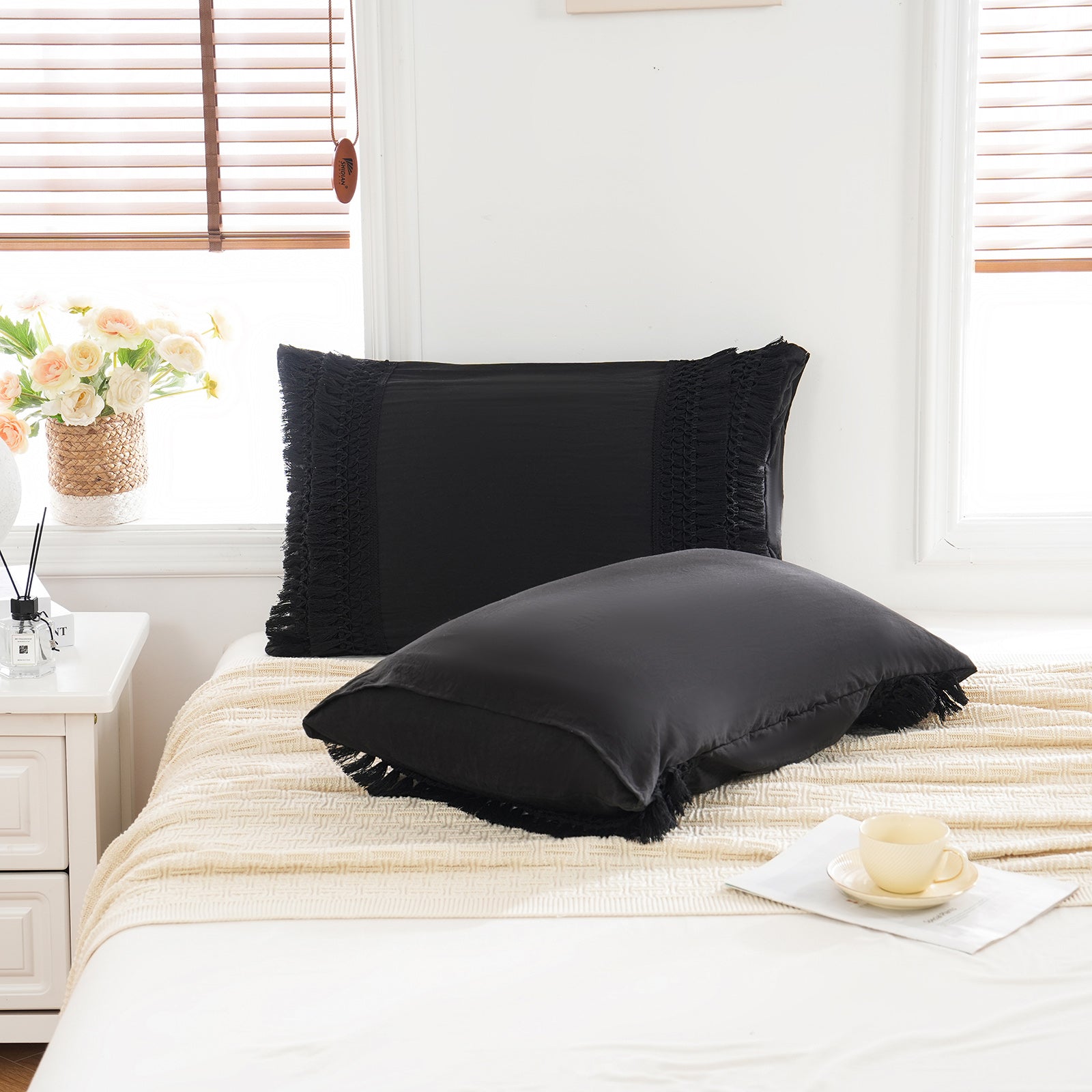 Macrame Tassel Pillowcases – Soft Decorative Pillow Covers with Fringe, Boho Style Deep Pocket Design, Queen/King/Body Options