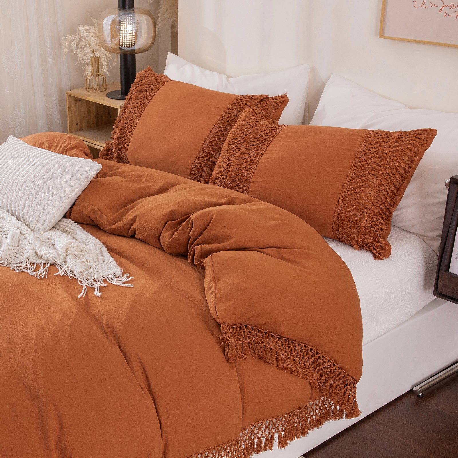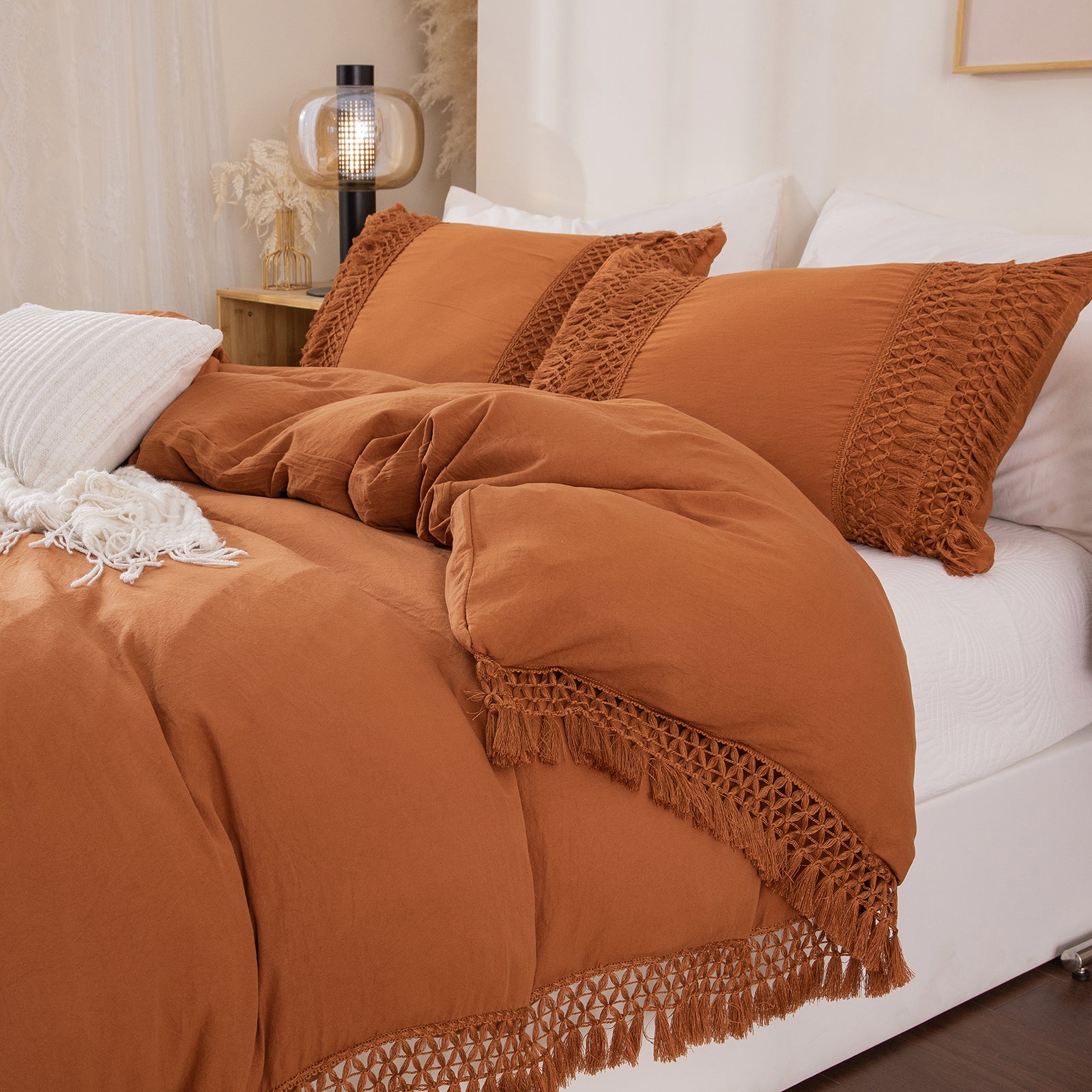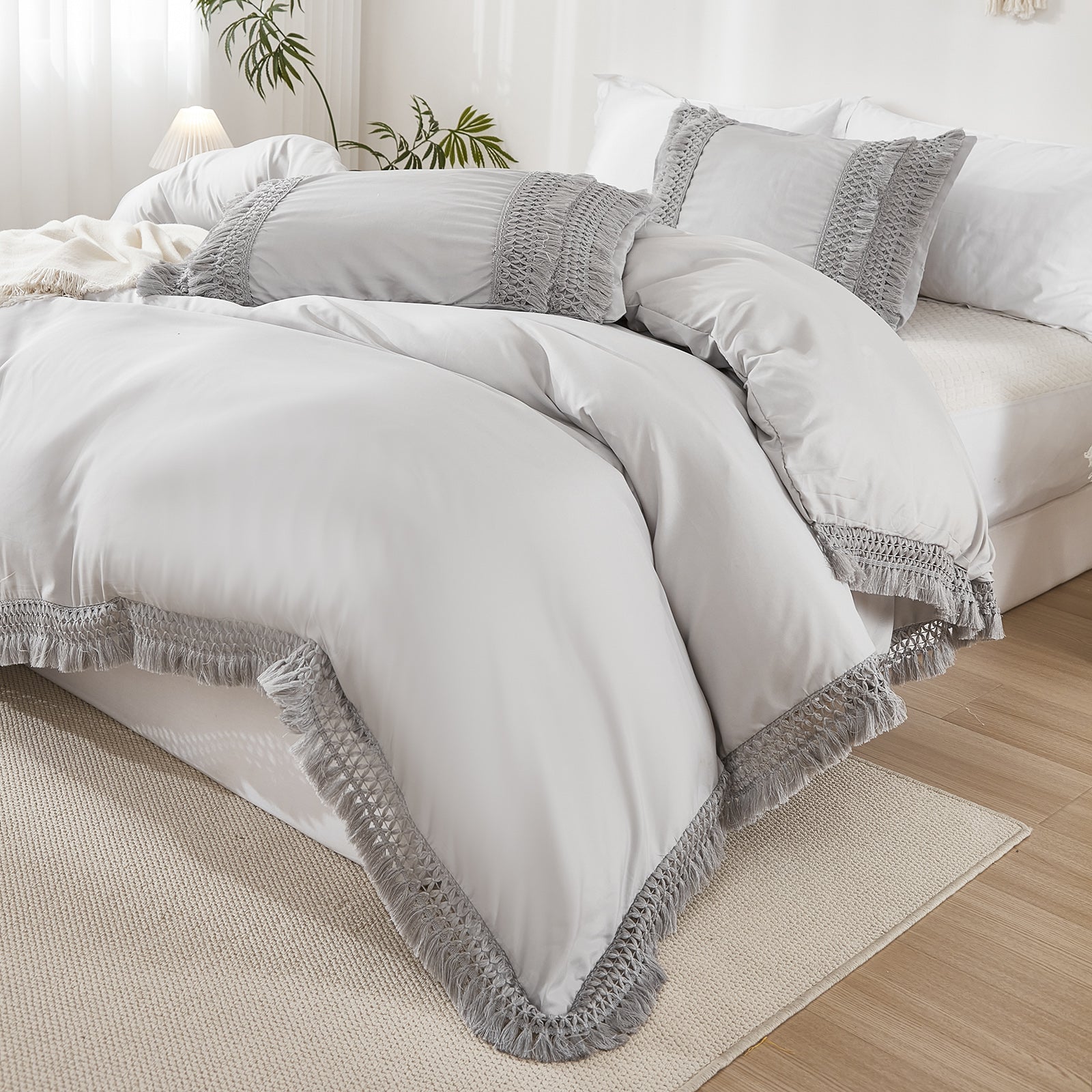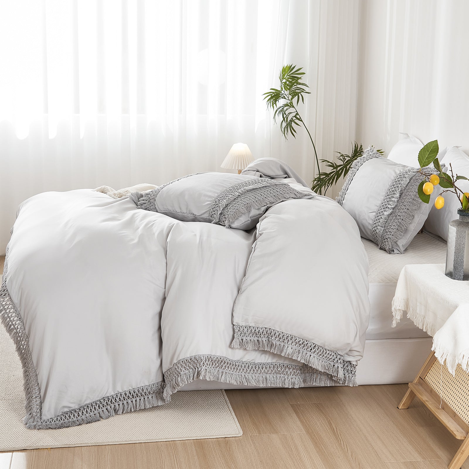 Macrame Tassel Pillowcases – Soft Decorative Pillow Covers with Fringe, Boho Style Deep Pocket Design, Queen/King/Body Options