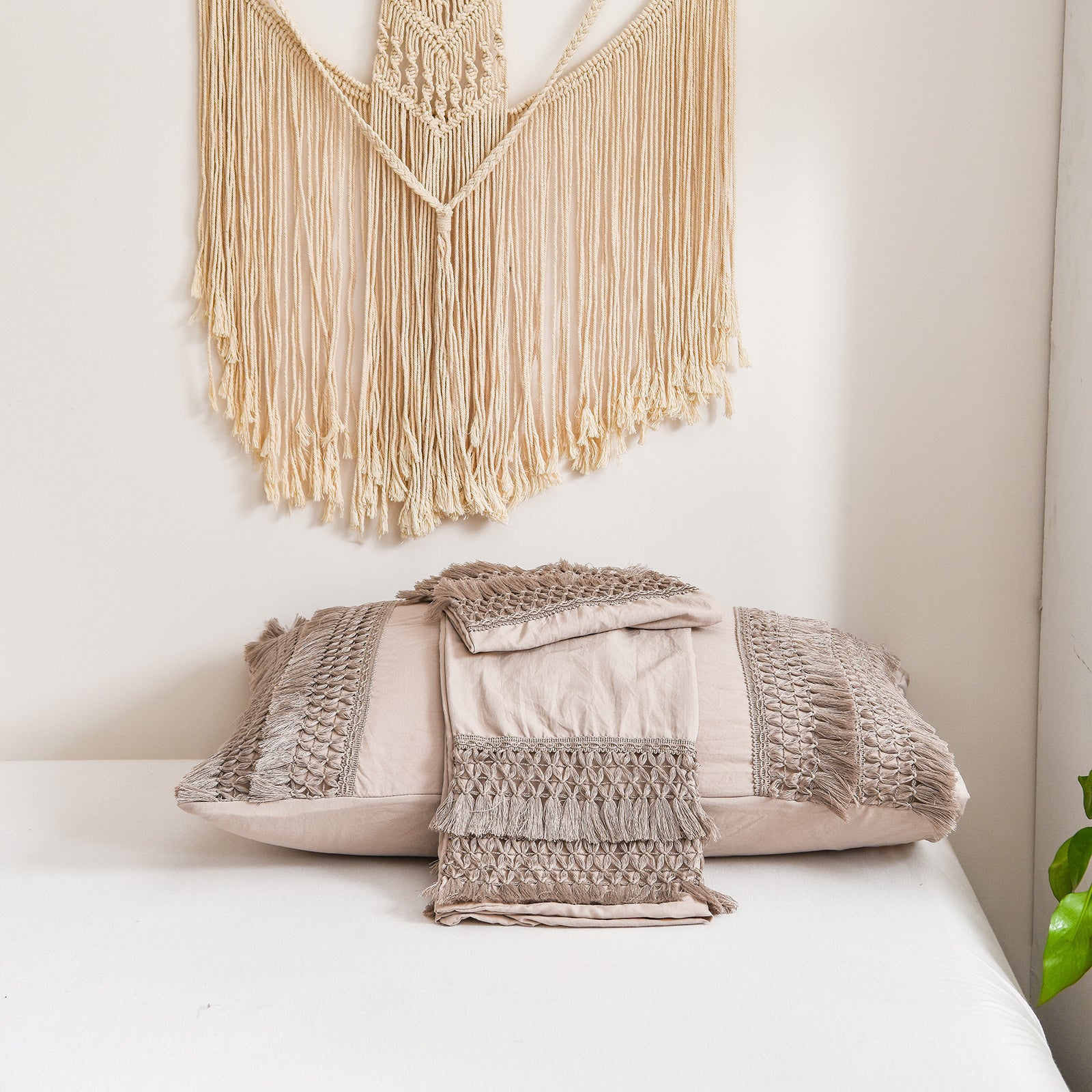 Add bohemian charm to your home with these Macrame Tassel Pillowcases, designed to bring both comfort and style. Featuring decorative fringe tassels, these pillow covers enhance any bedroom or living space with a cozy boho aesthetic.