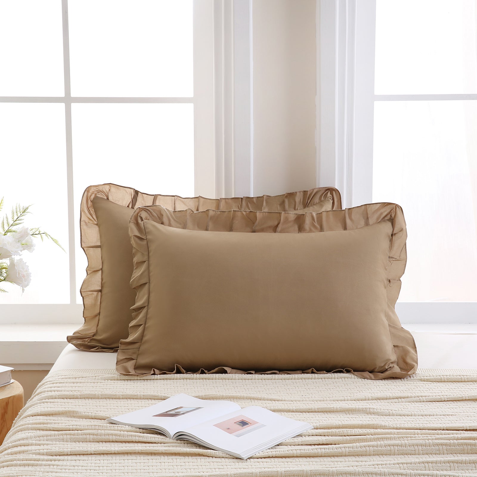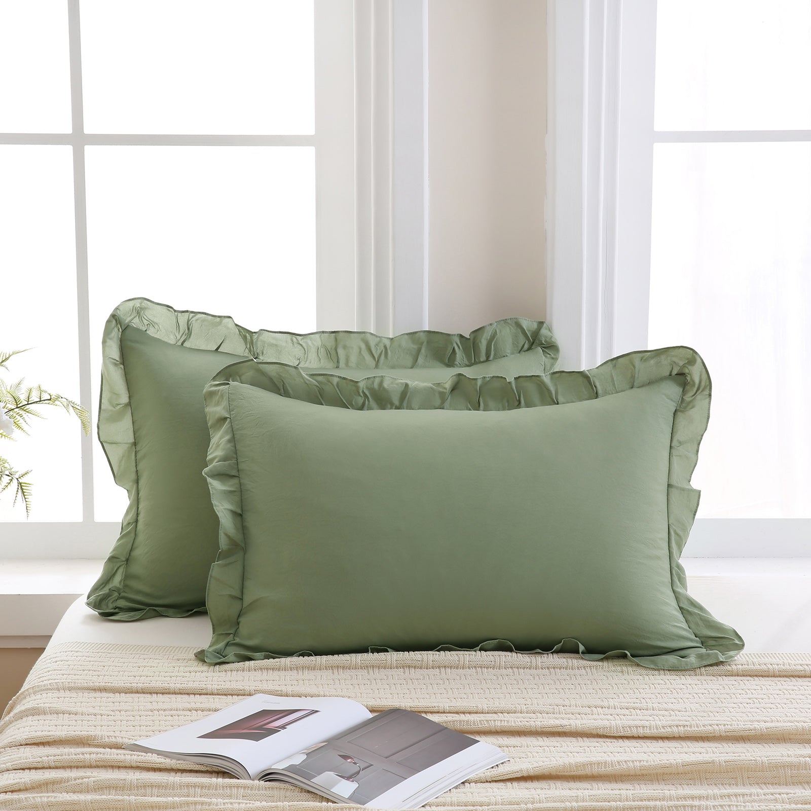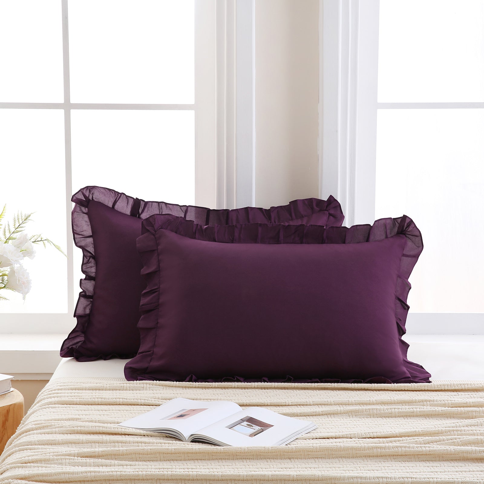 Reversible Pillow Cover – Soft Shabby Chic Ruffled Pillowcases, Wrinkle Resistant, Envelope Closure, Queen/King/Body