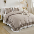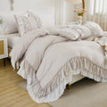 Ruffle Comforter Set – 3-Piece Shabby Chic Boho Bedding with Elegant Double Ruffles, Soft Lightweight Microfiber Quilt, Queen/King
