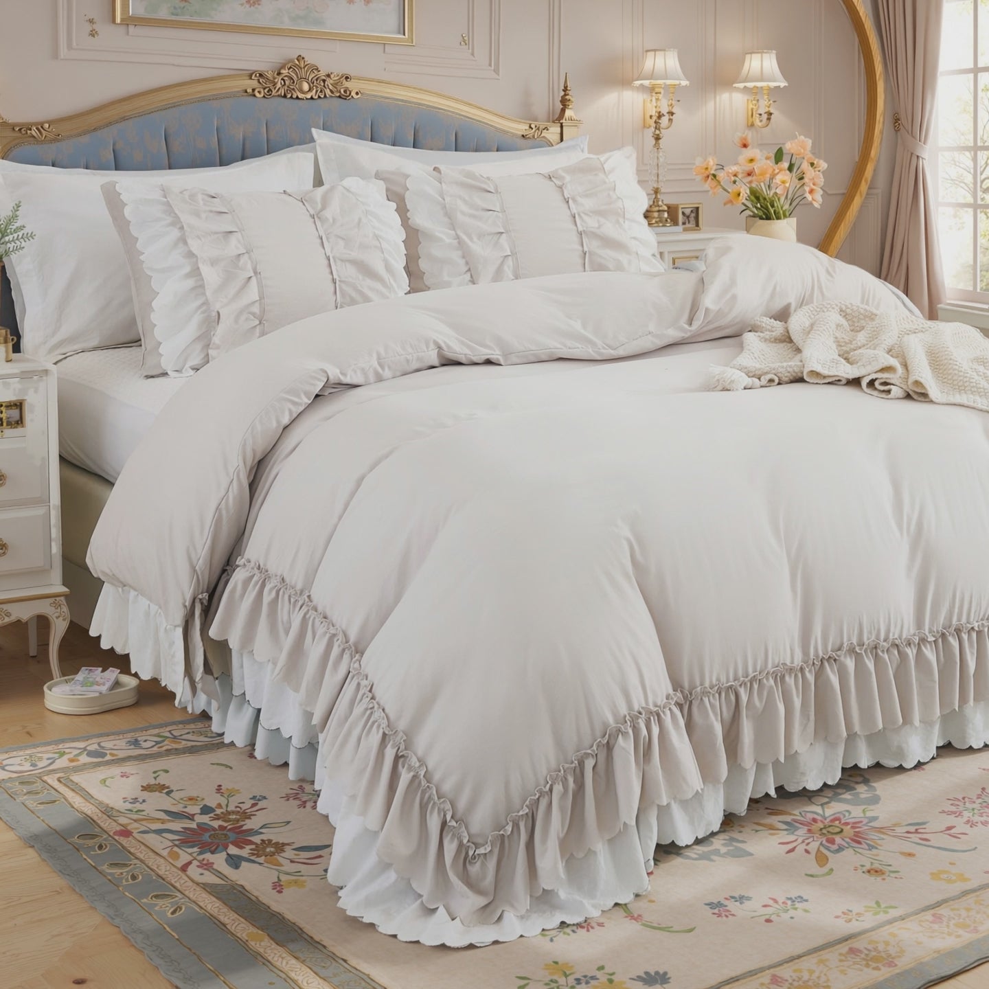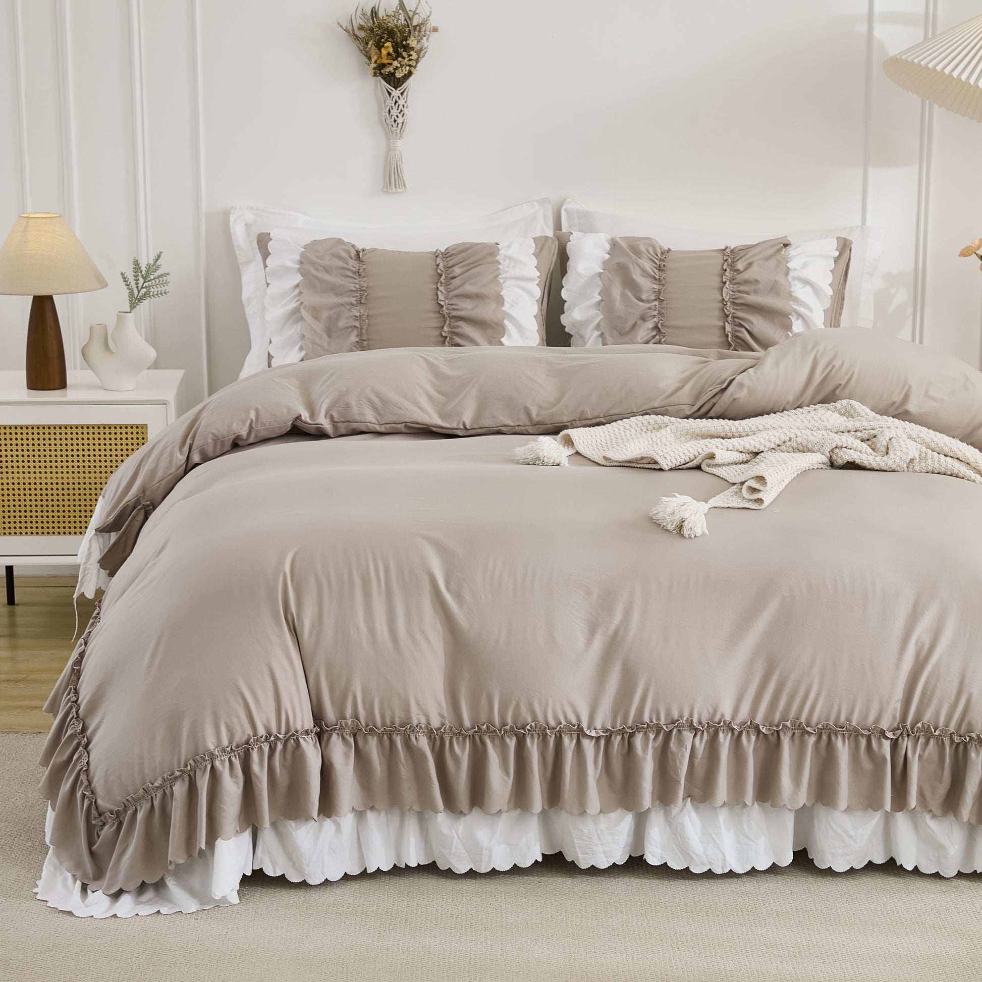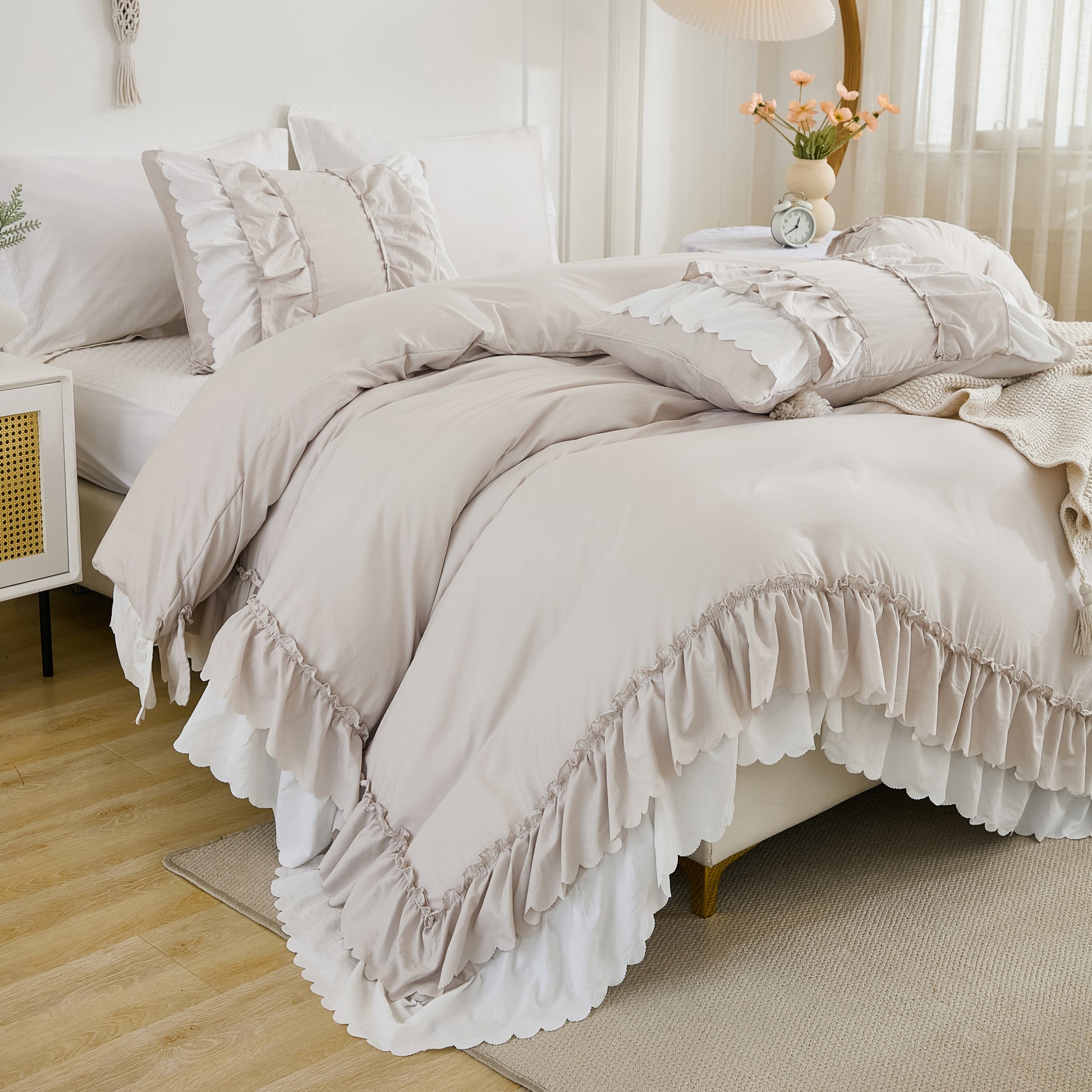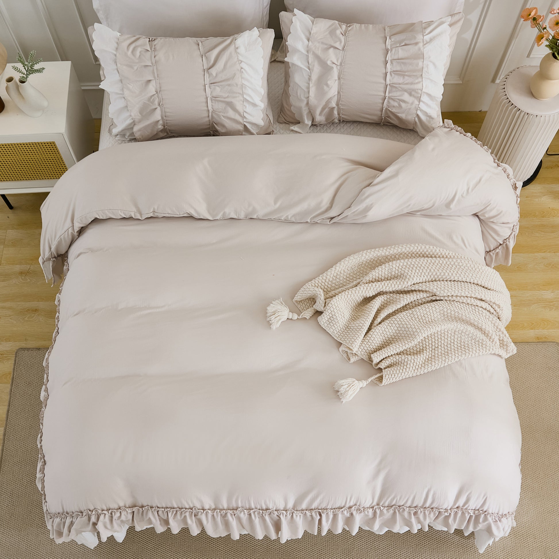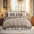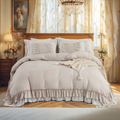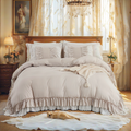 Transform your bedroom with the Ruffle Comforter Set, a perfect blend of softness, elegance, and timeless style. Designed with romantic double-layer ruffles, this set adds a touch of French country boho charm while keeping your space cozy and inviting.