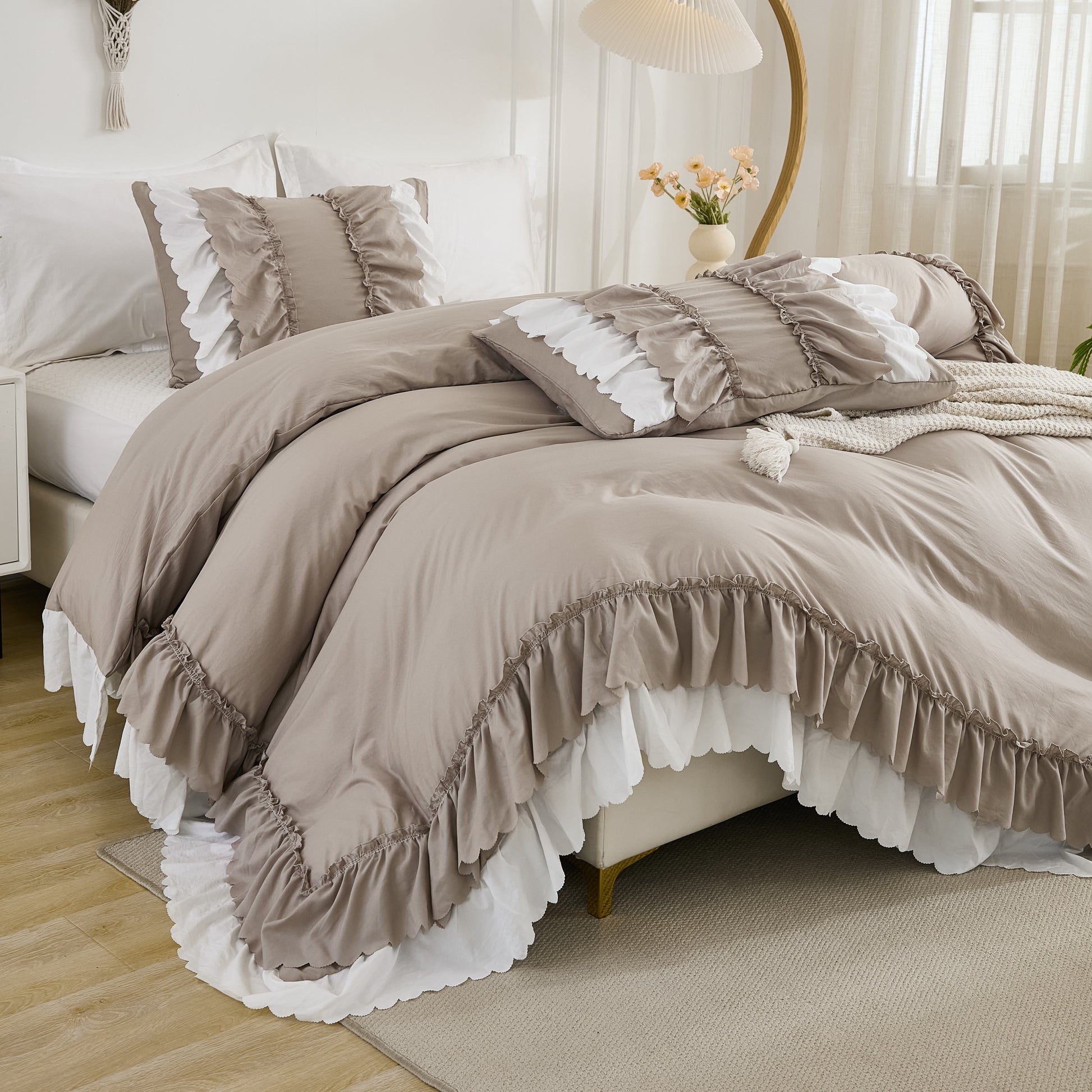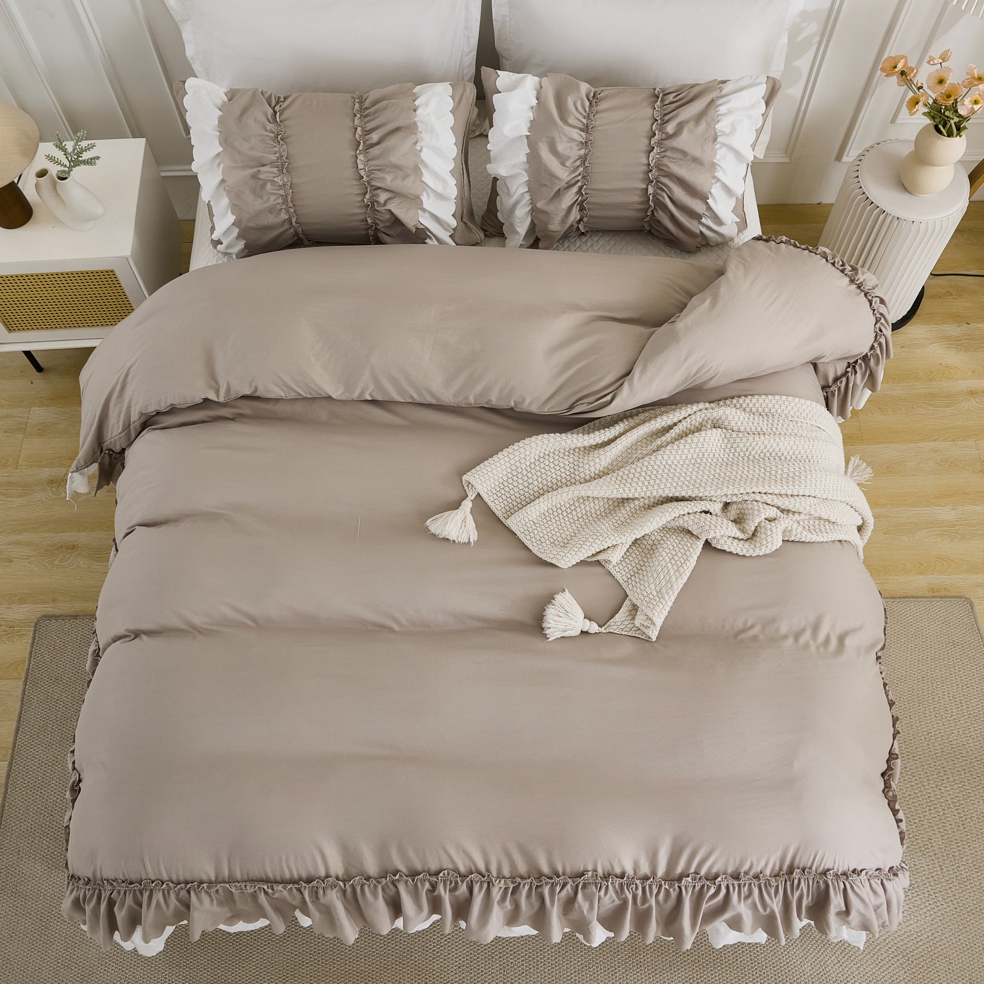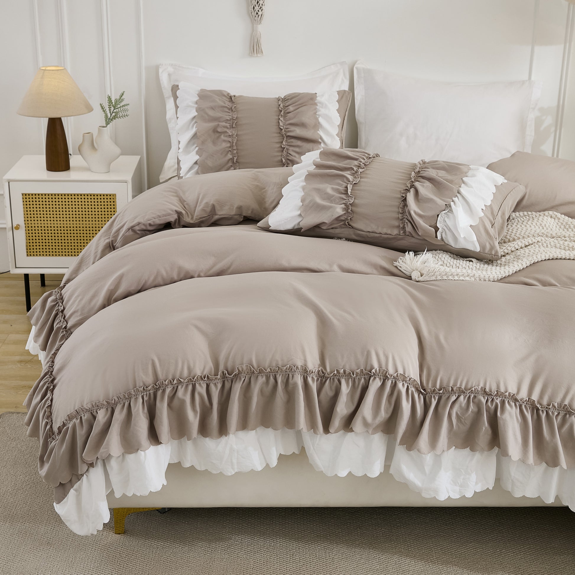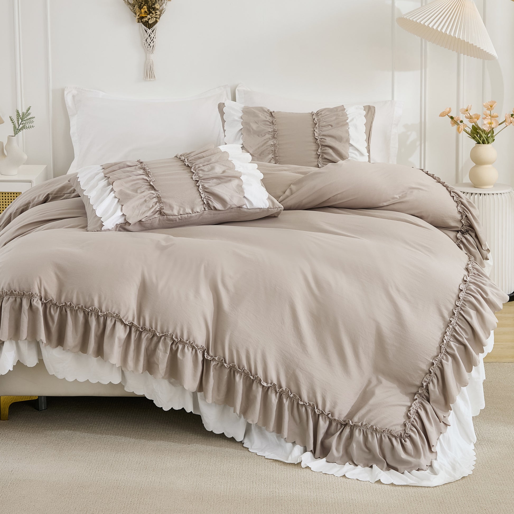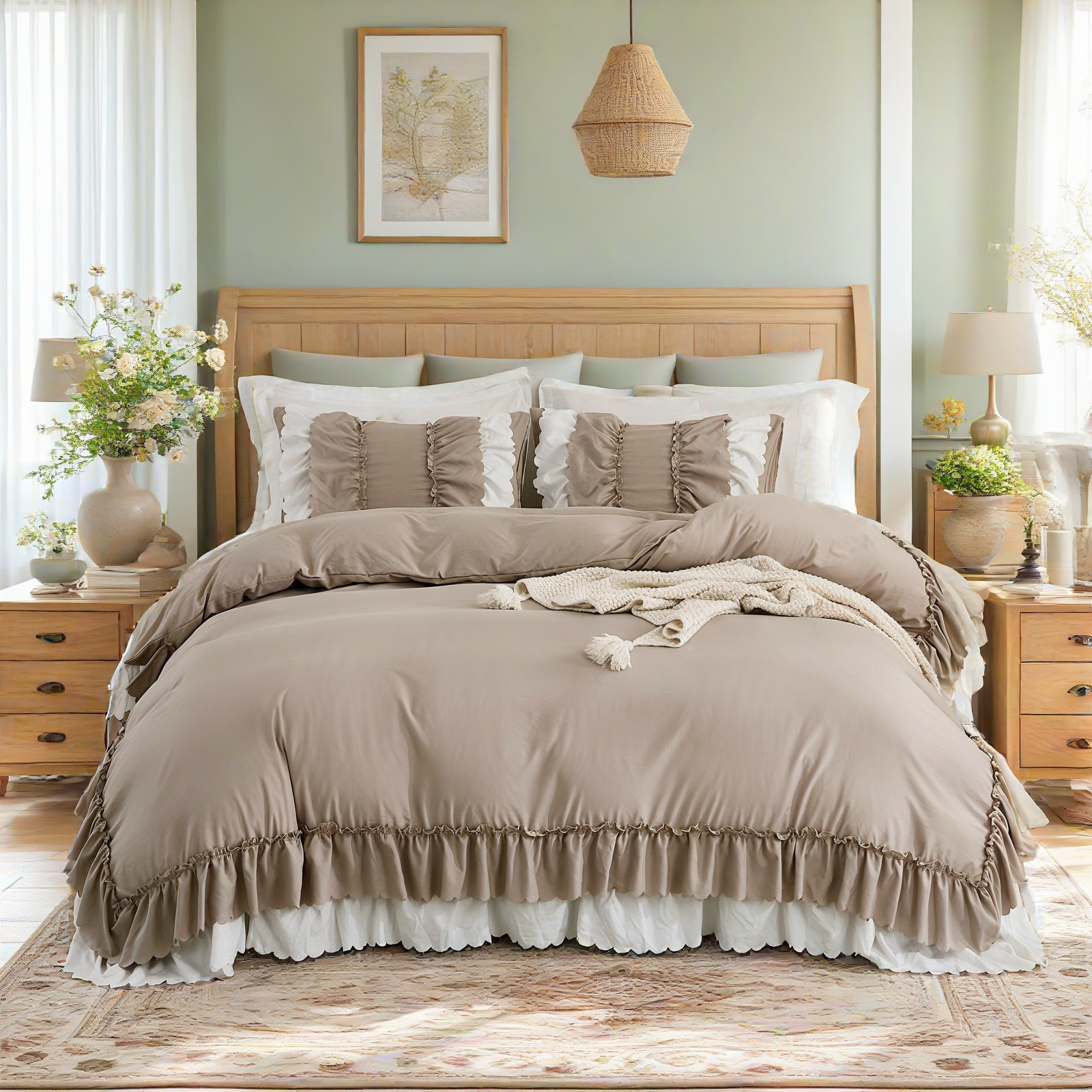 Transform your bedroom with the Ruffle Comforter Set, a perfect blend of softness, elegance, and timeless style. Designed with romantic double-layer ruffles, this set adds a touch of French country boho charm while keeping your space cozy and inviting.