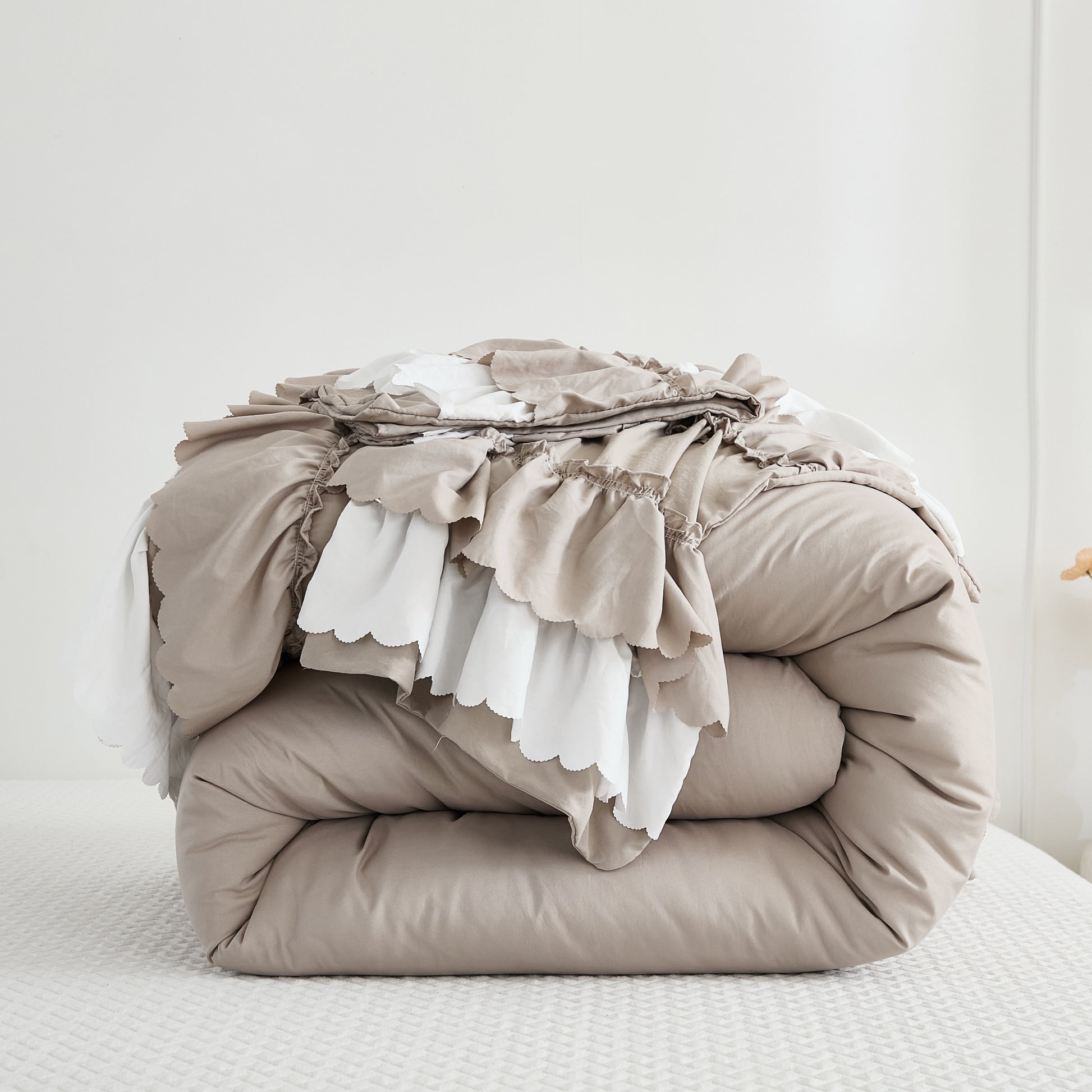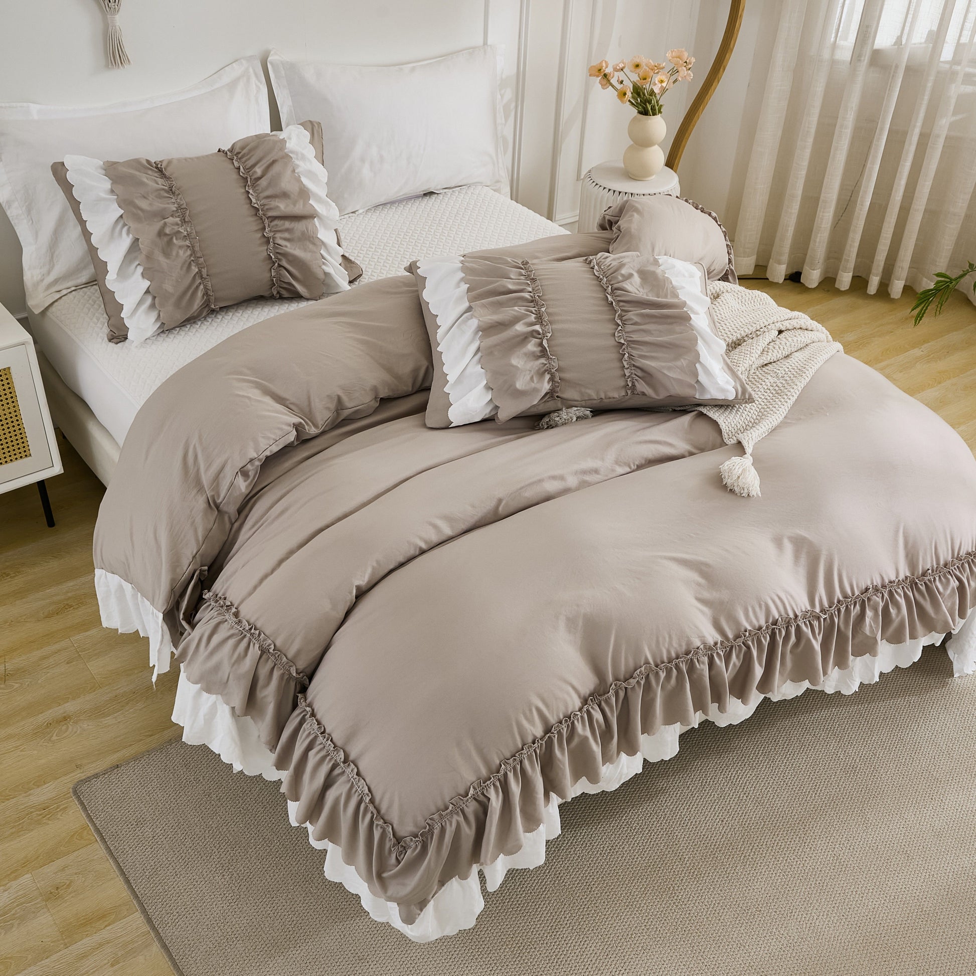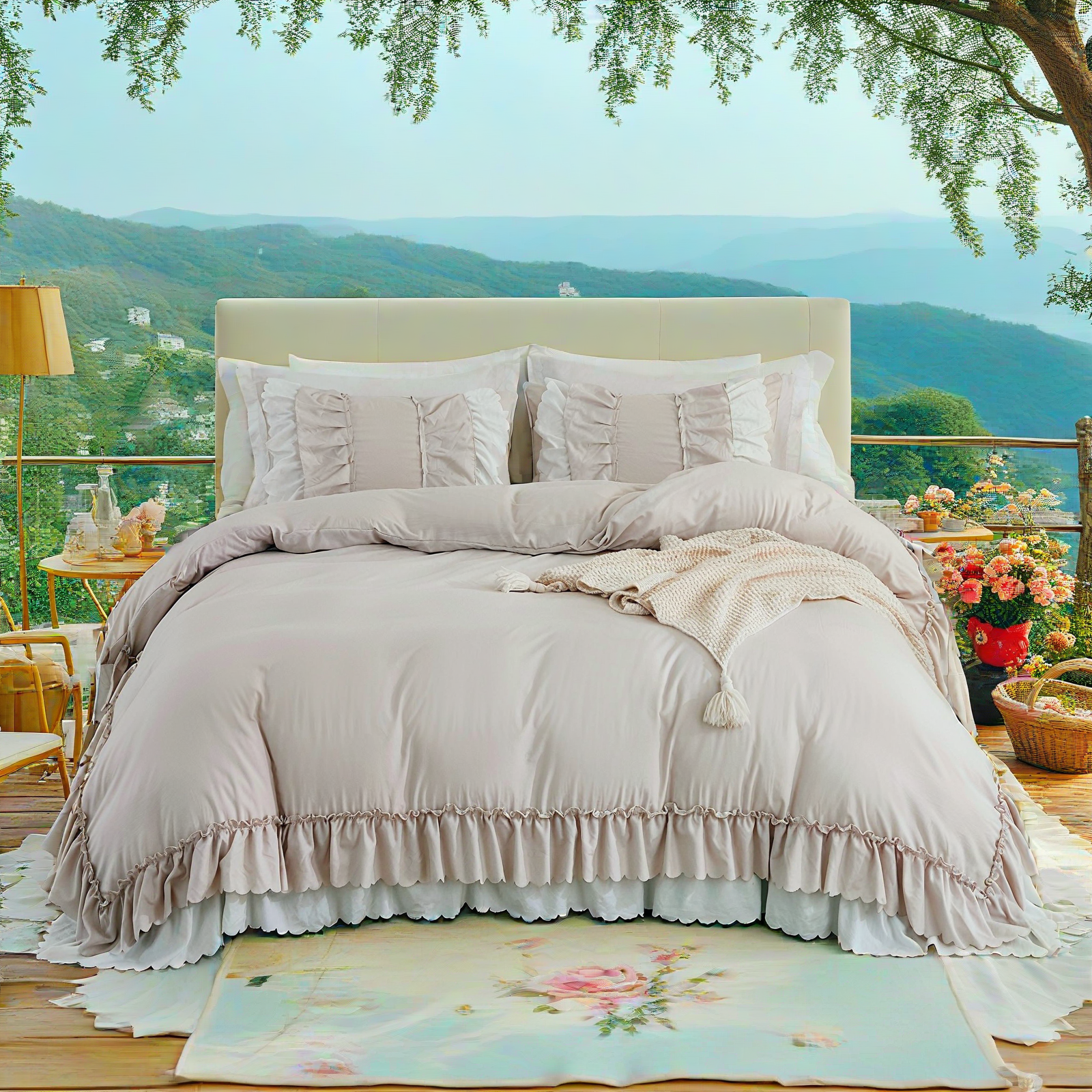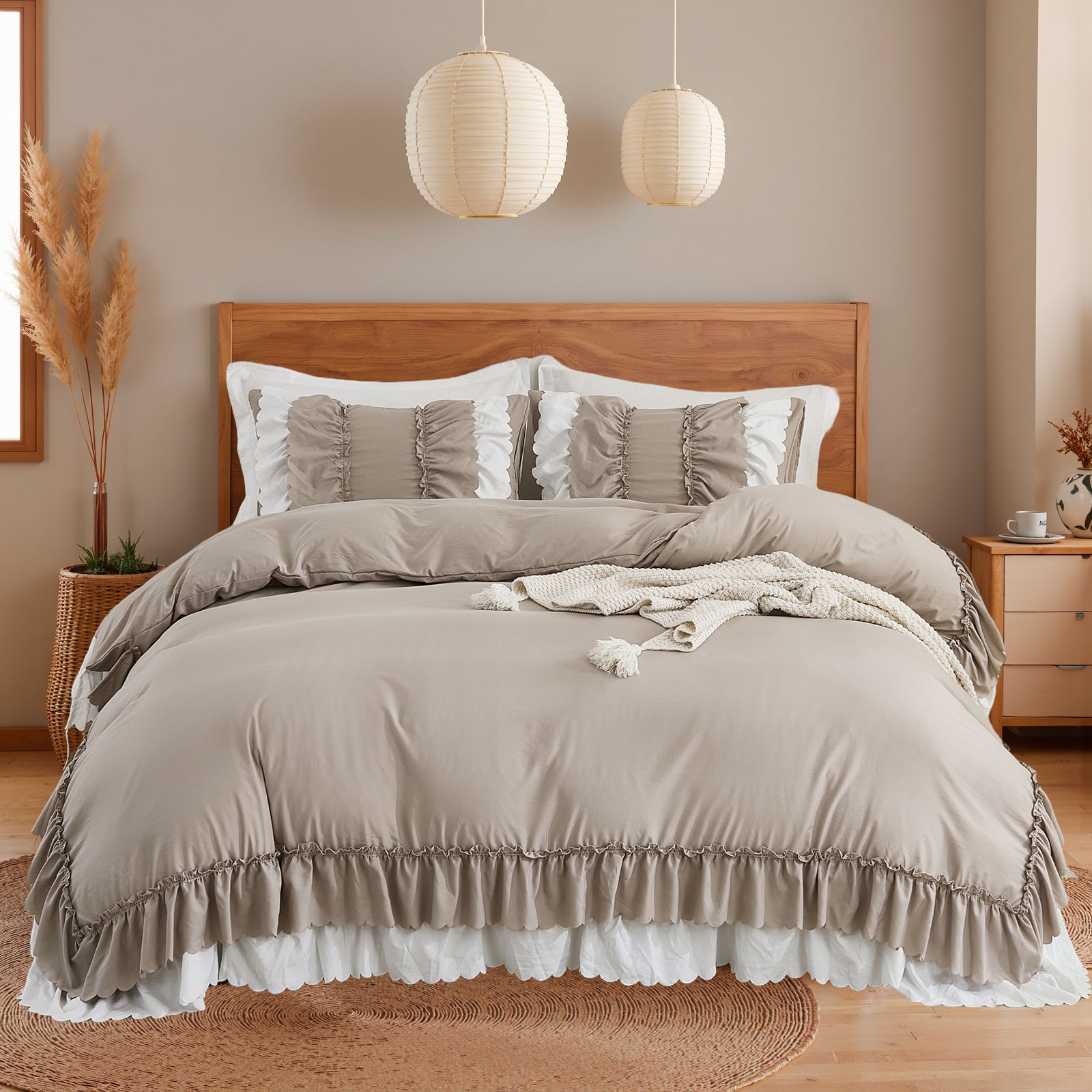 Transform your bedroom with the Ruffle Comforter Set, a perfect blend of softness, elegance, and timeless style. Designed with romantic double-layer ruffles, this set adds a touch of French country boho charm while keeping your space cozy and inviting.