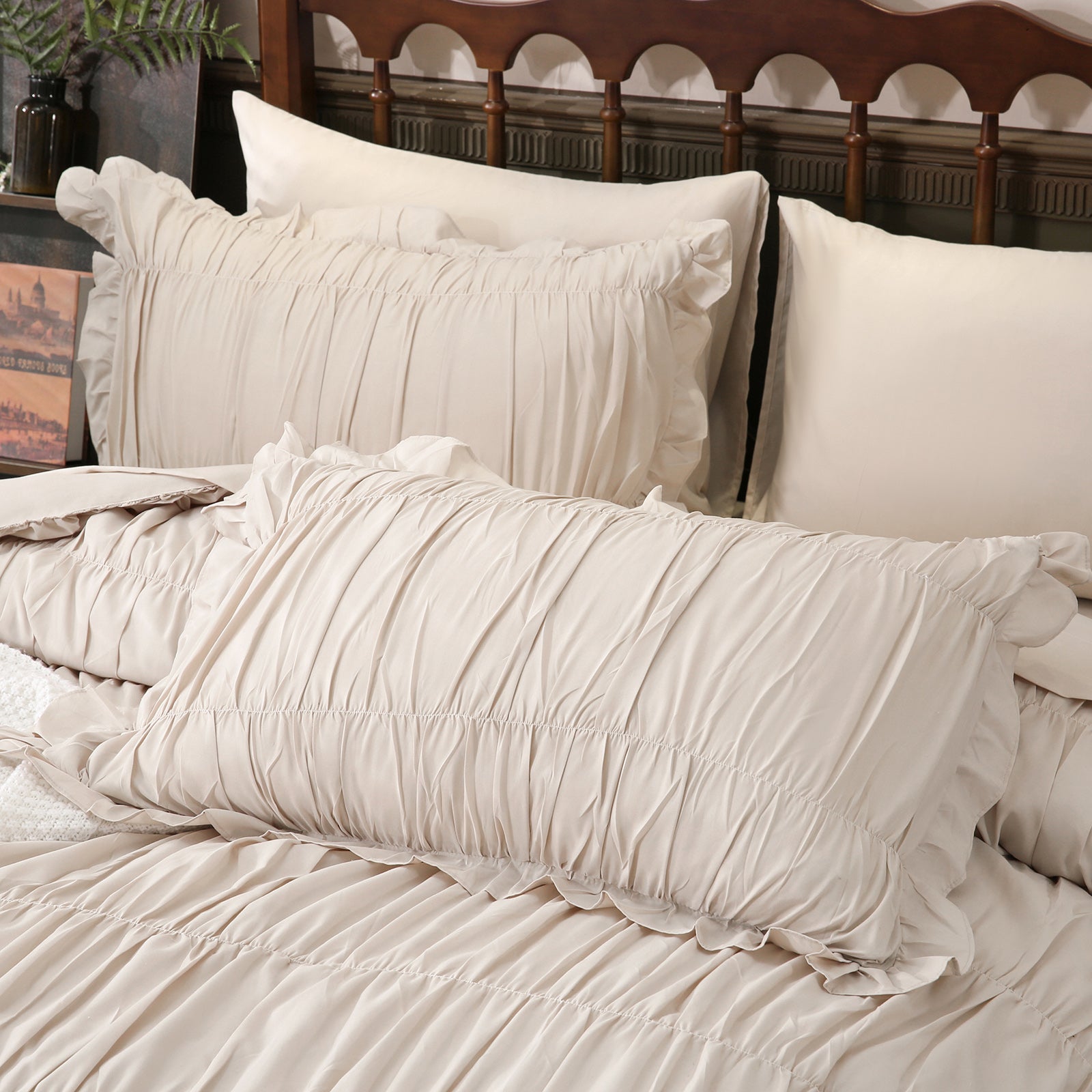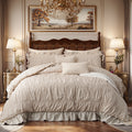 Soft and Breathable Fabric:This comforter set offers exceptional softness and comfort with premium 100% microfiber fabric. The front side has the romantic ruched design and the underside is smooth and breathable, providing you with a comfortable sleeping experience all seasons