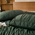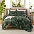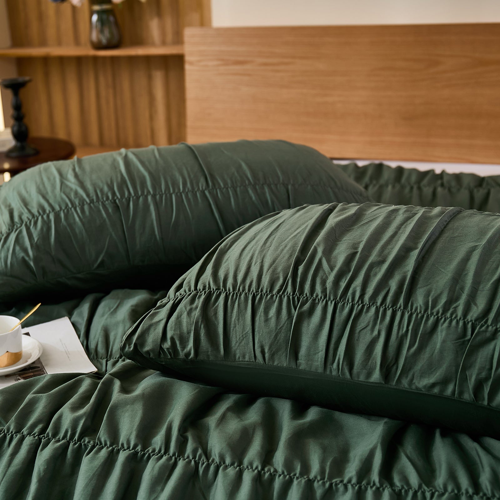 Unique Ruched Design for a Dimensional Look - The entire quilt and pillow shams feature ruched detailing that creates a soft, voluminous texture—perfect for adding a cozy and luxurious touch to your bedroom