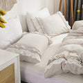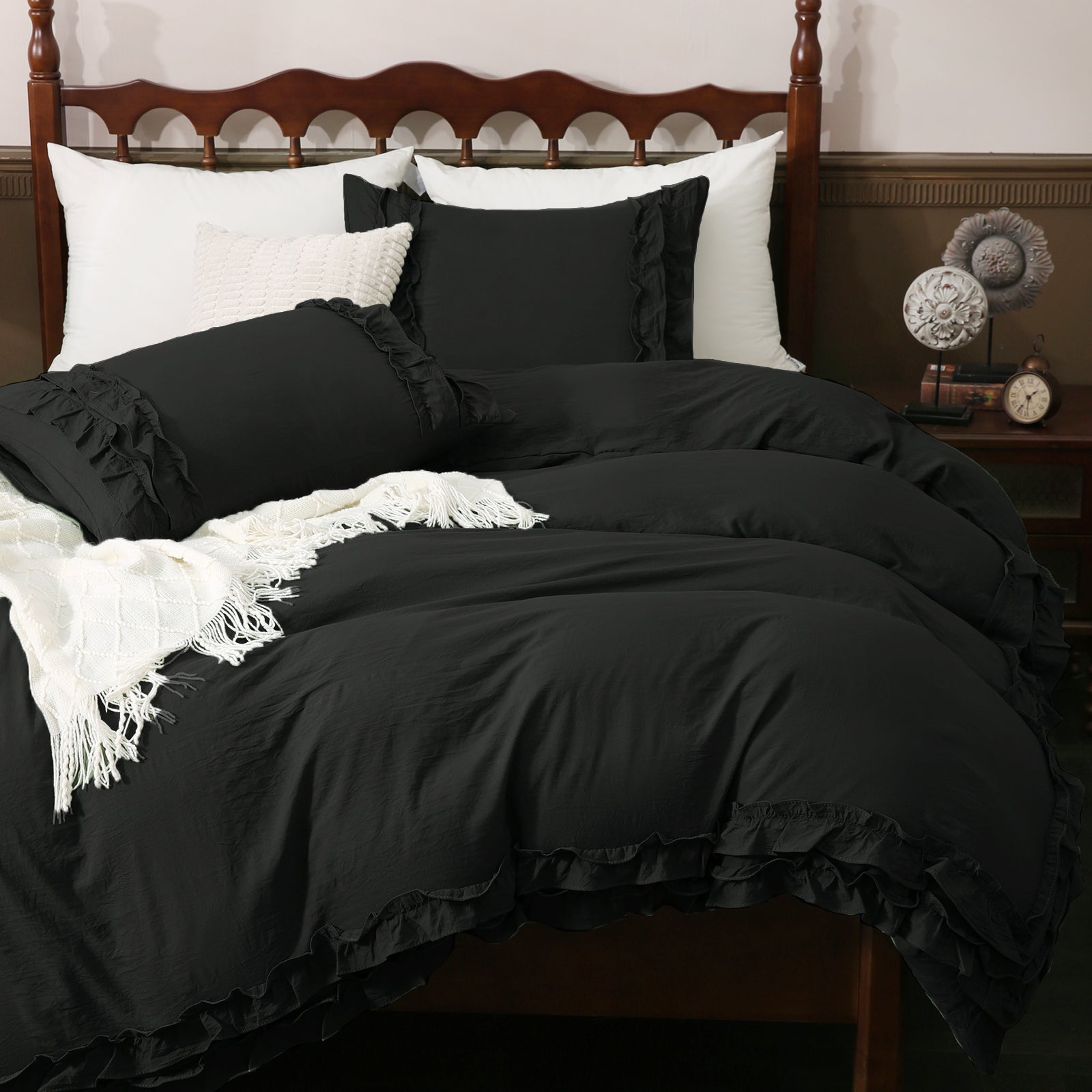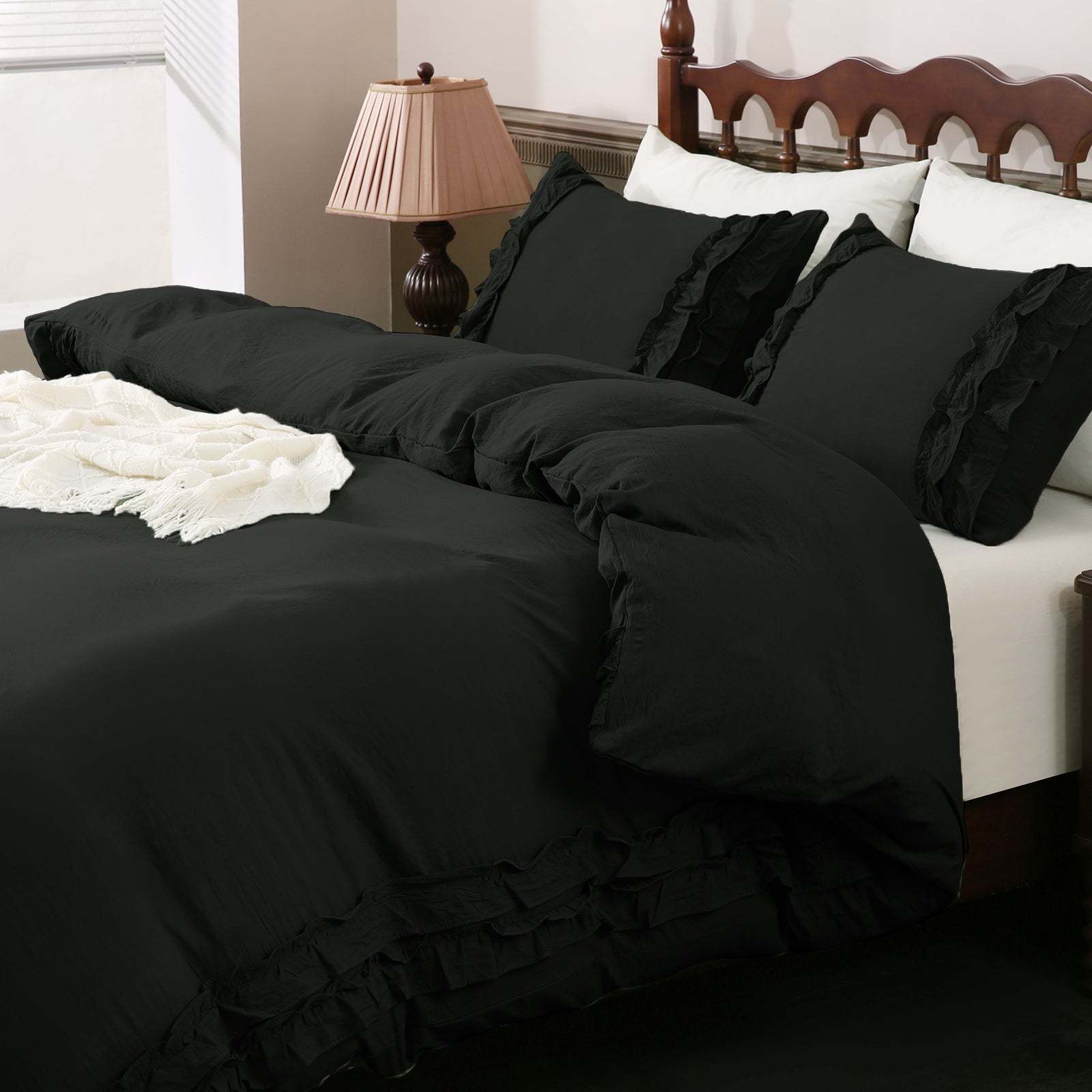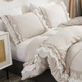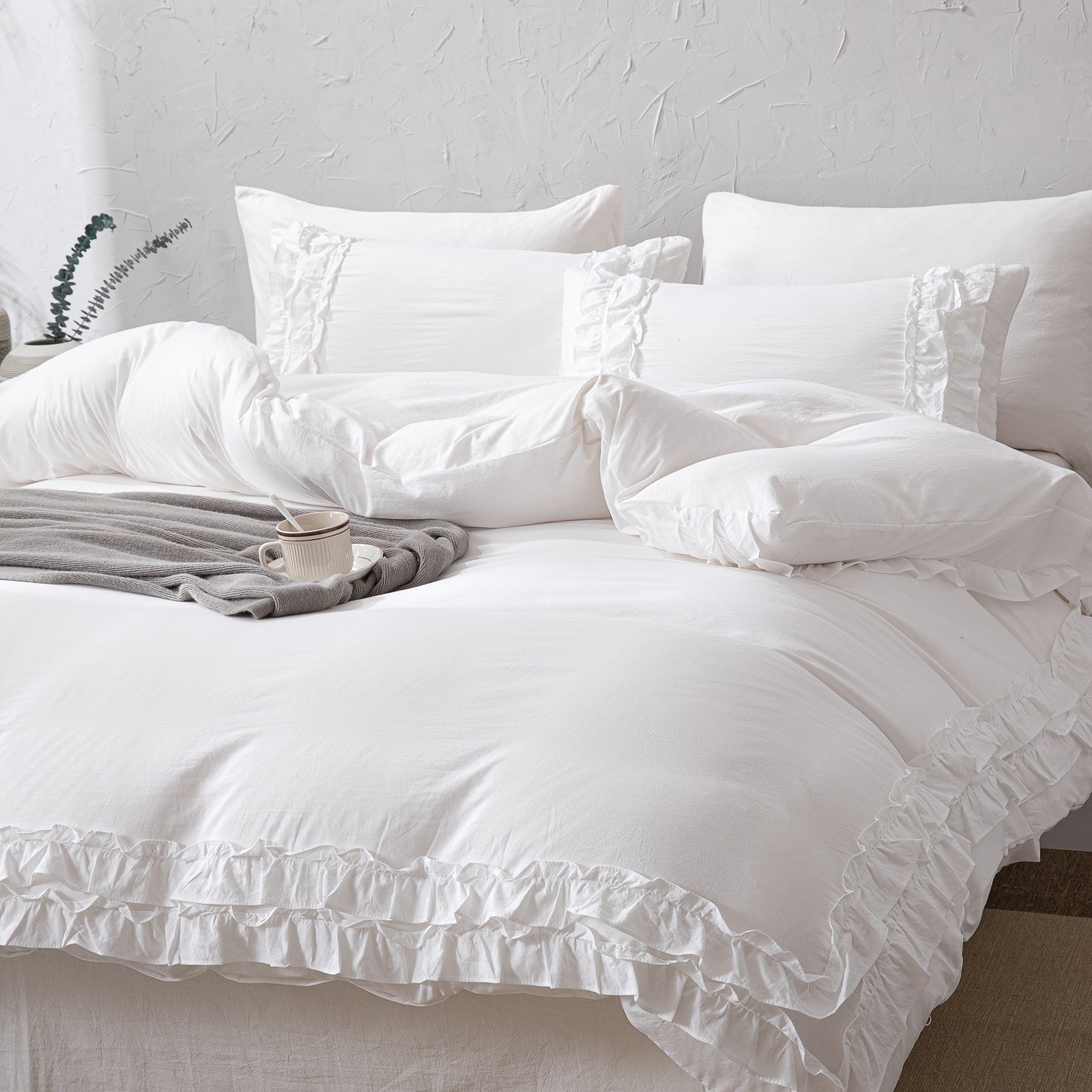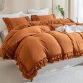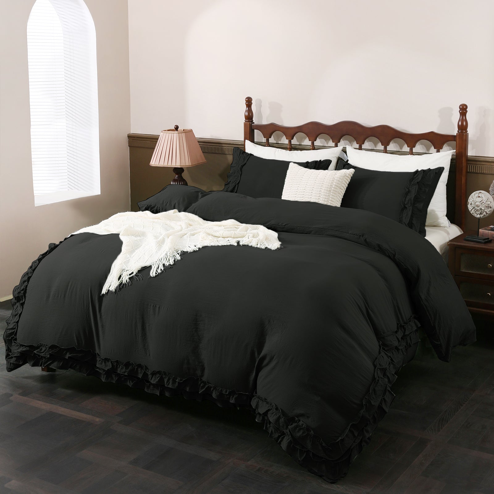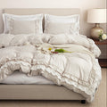 Ruffle Duvet Cover Set – Pleated Shabby Chic Bedding with Pillowcases, Soft Washed Microfiber, Elegant Boho Farmhouse Style, Twin/Queen/King