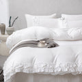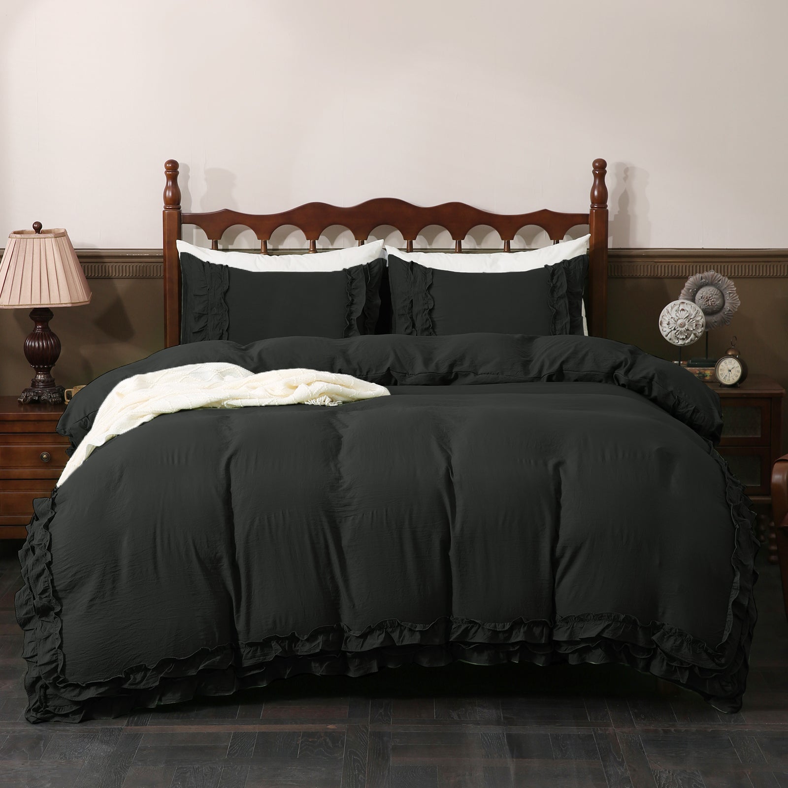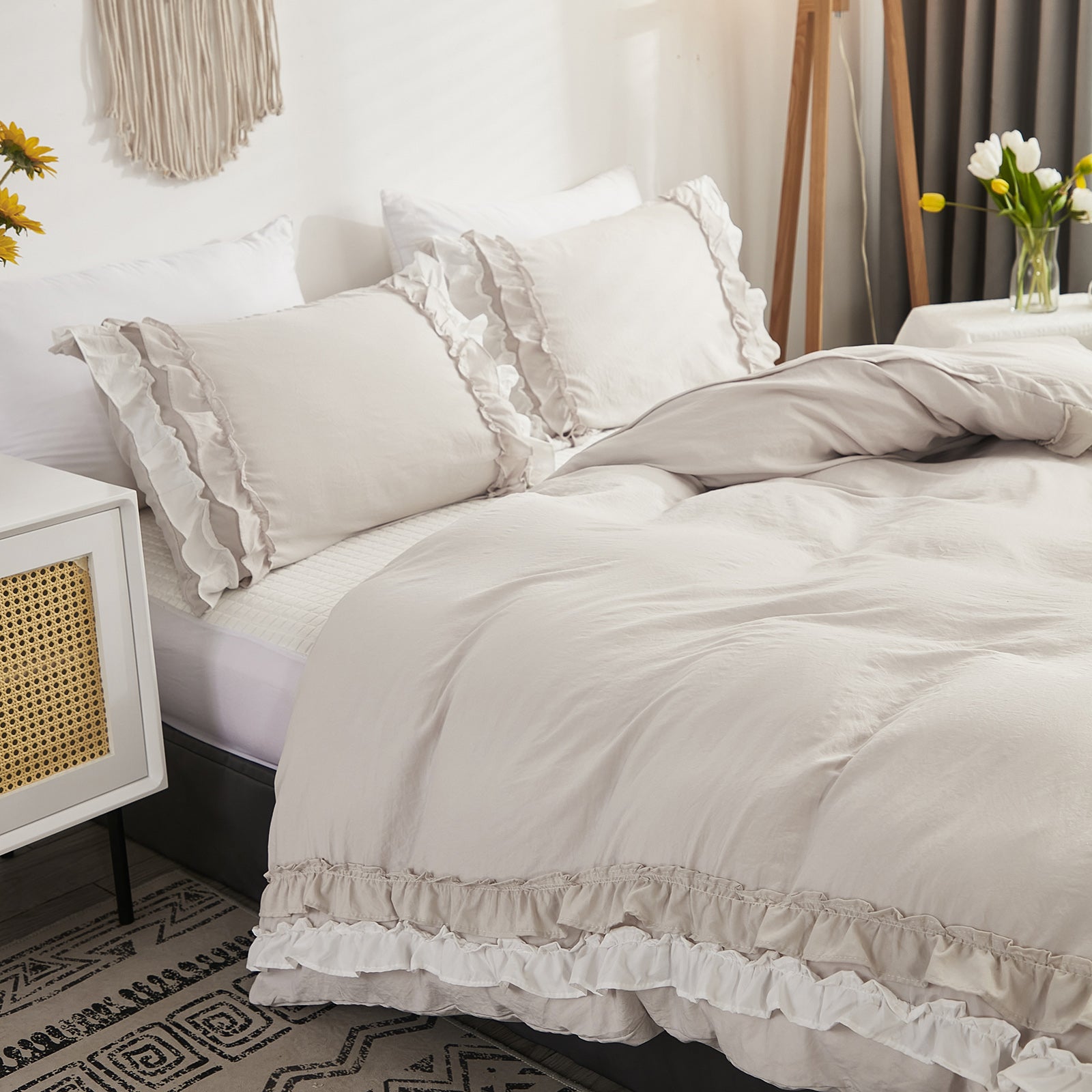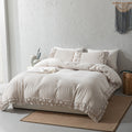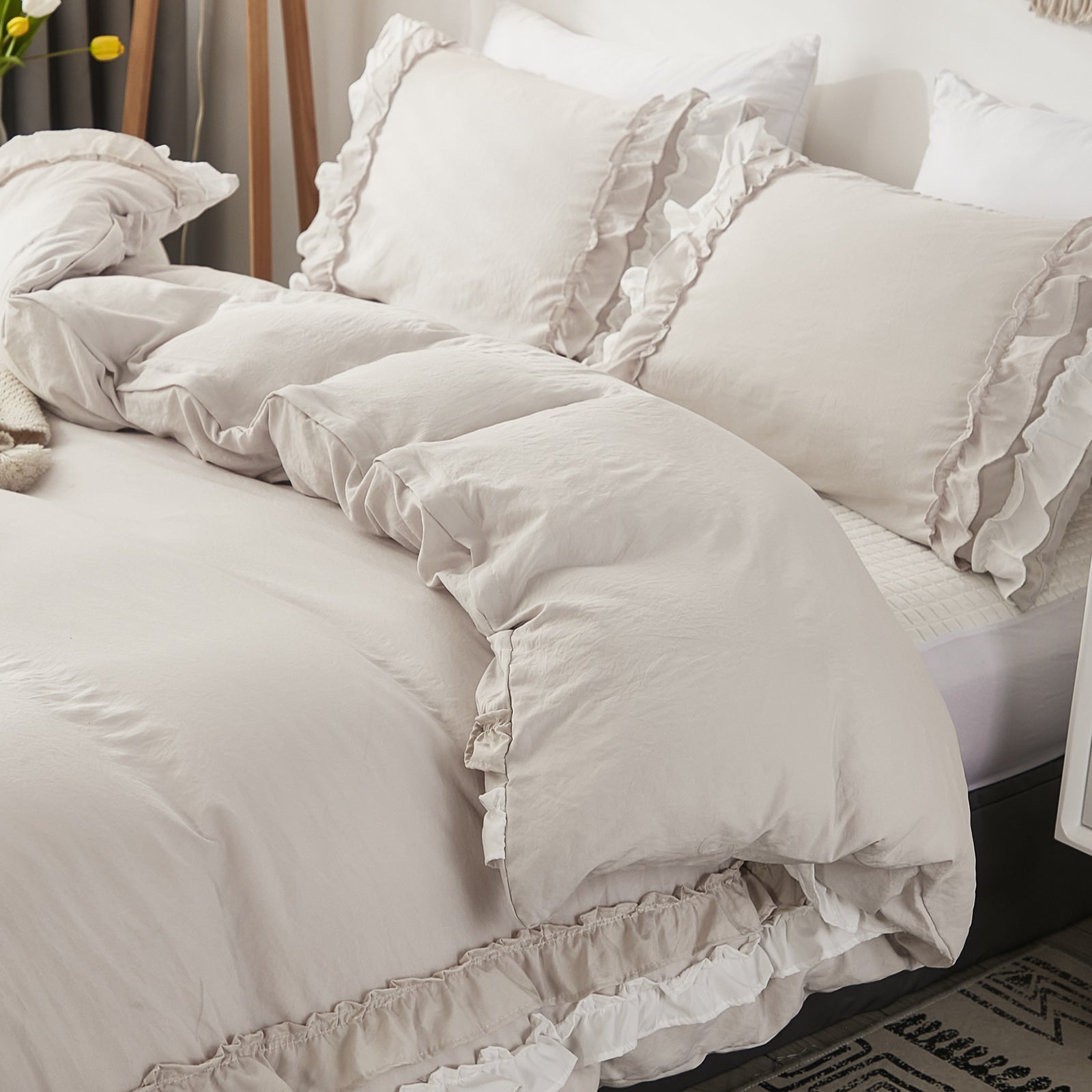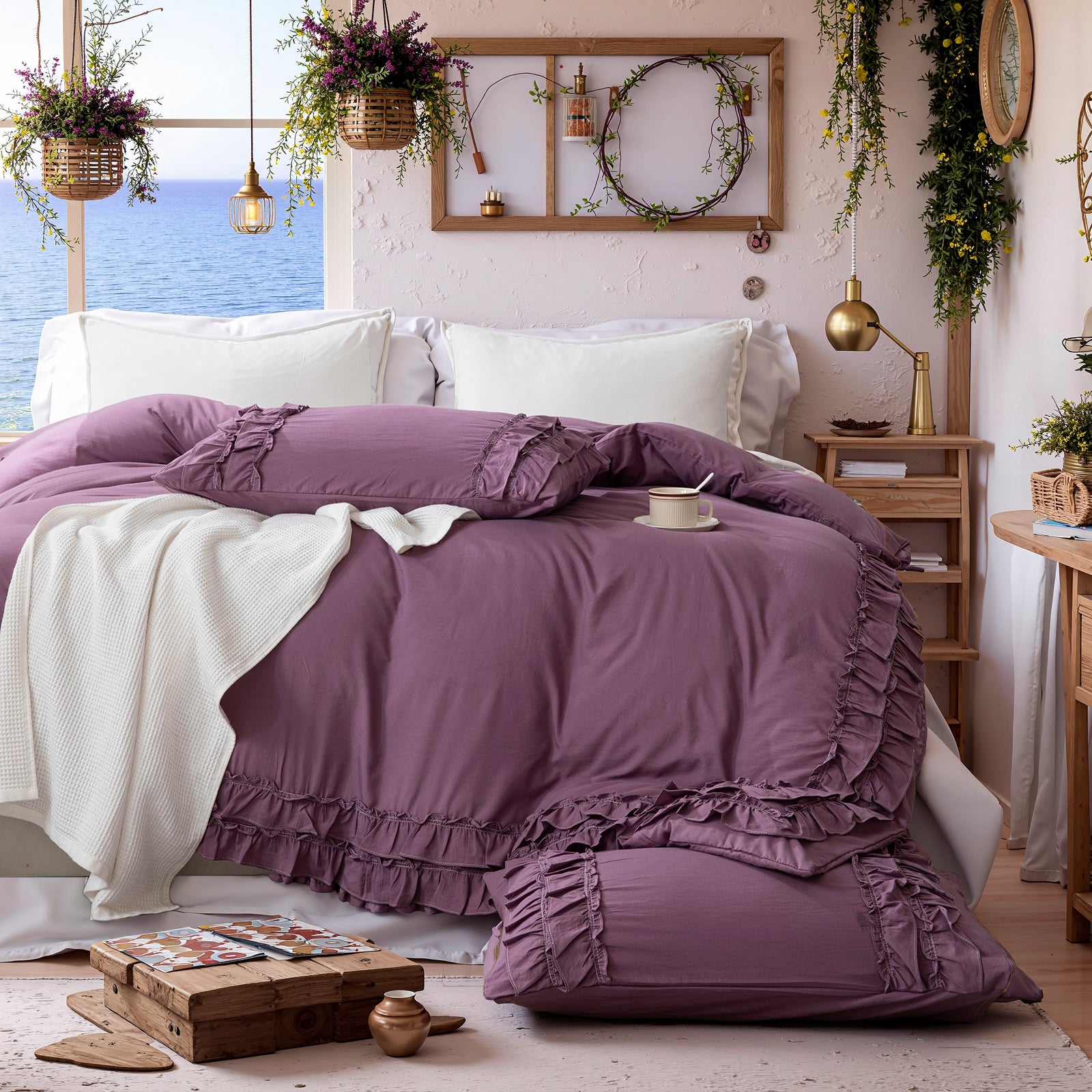 Ruffle Duvet Cover Set – Pleated Shabby Chic Bedding with Pillowcases, Soft Washed Microfiber, Elegant Boho Farmhouse Style, Twin/Queen/King