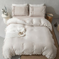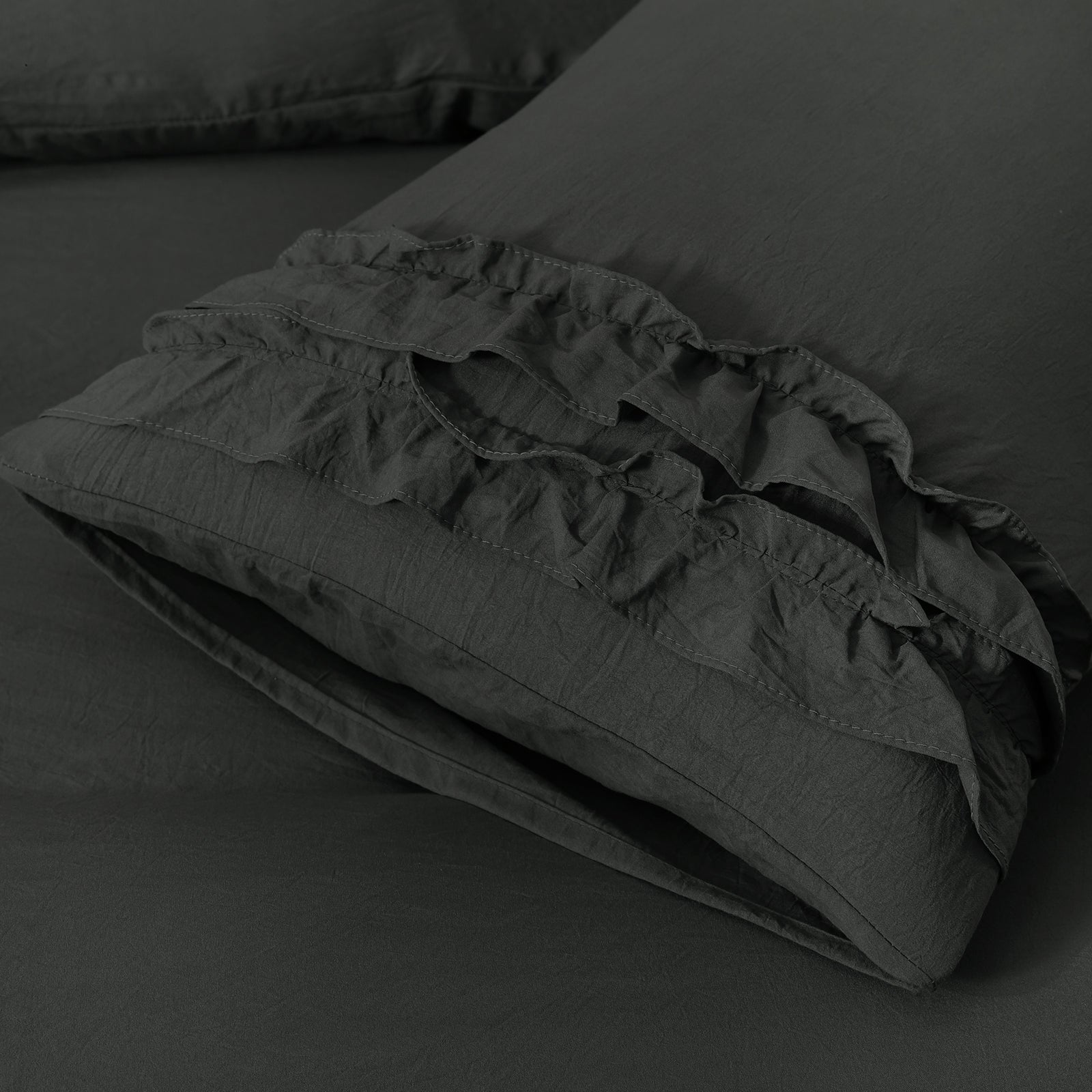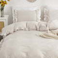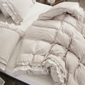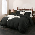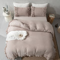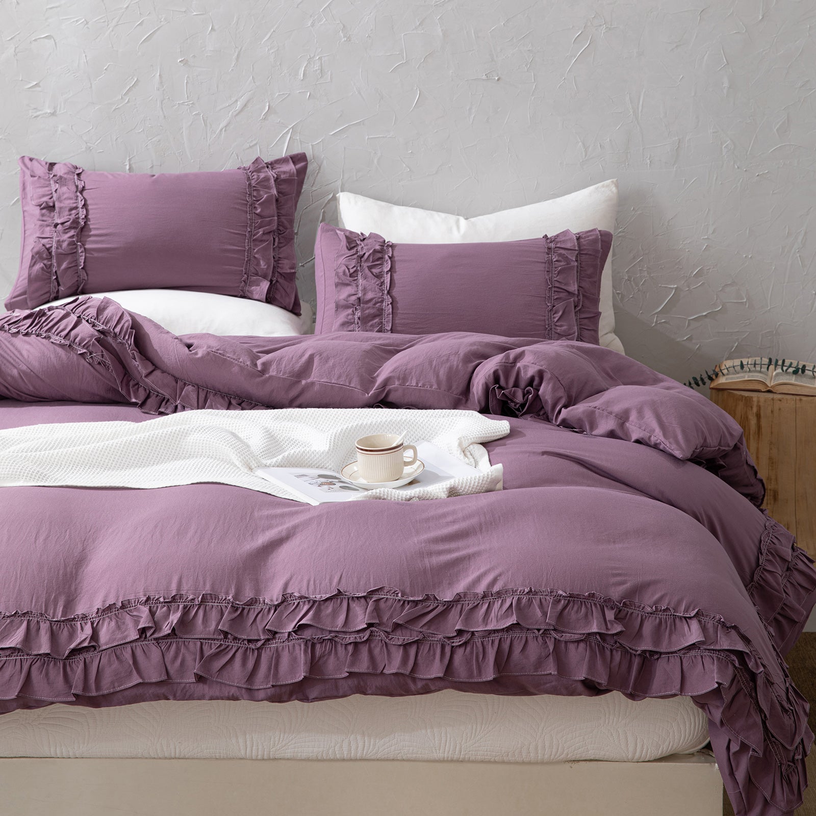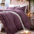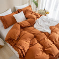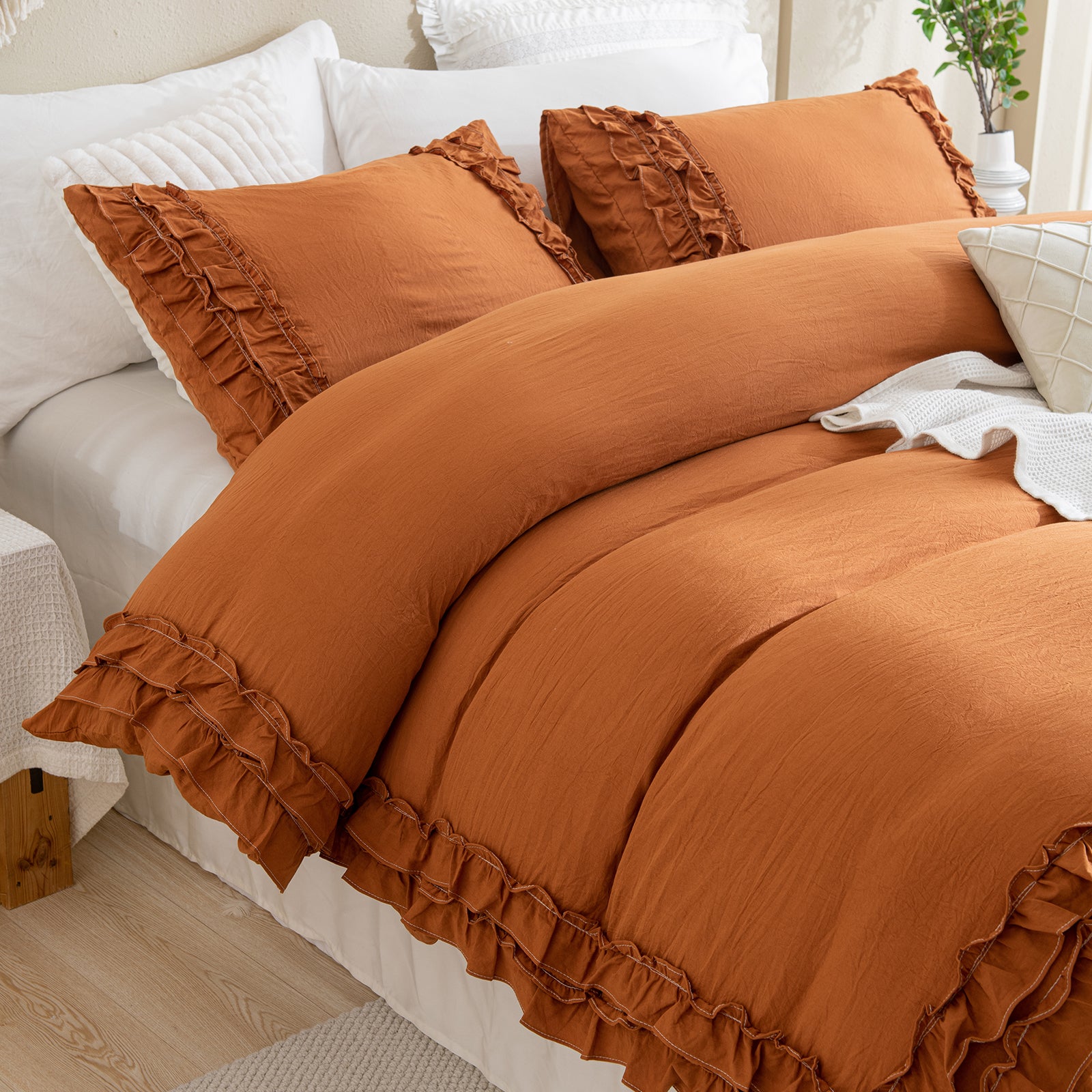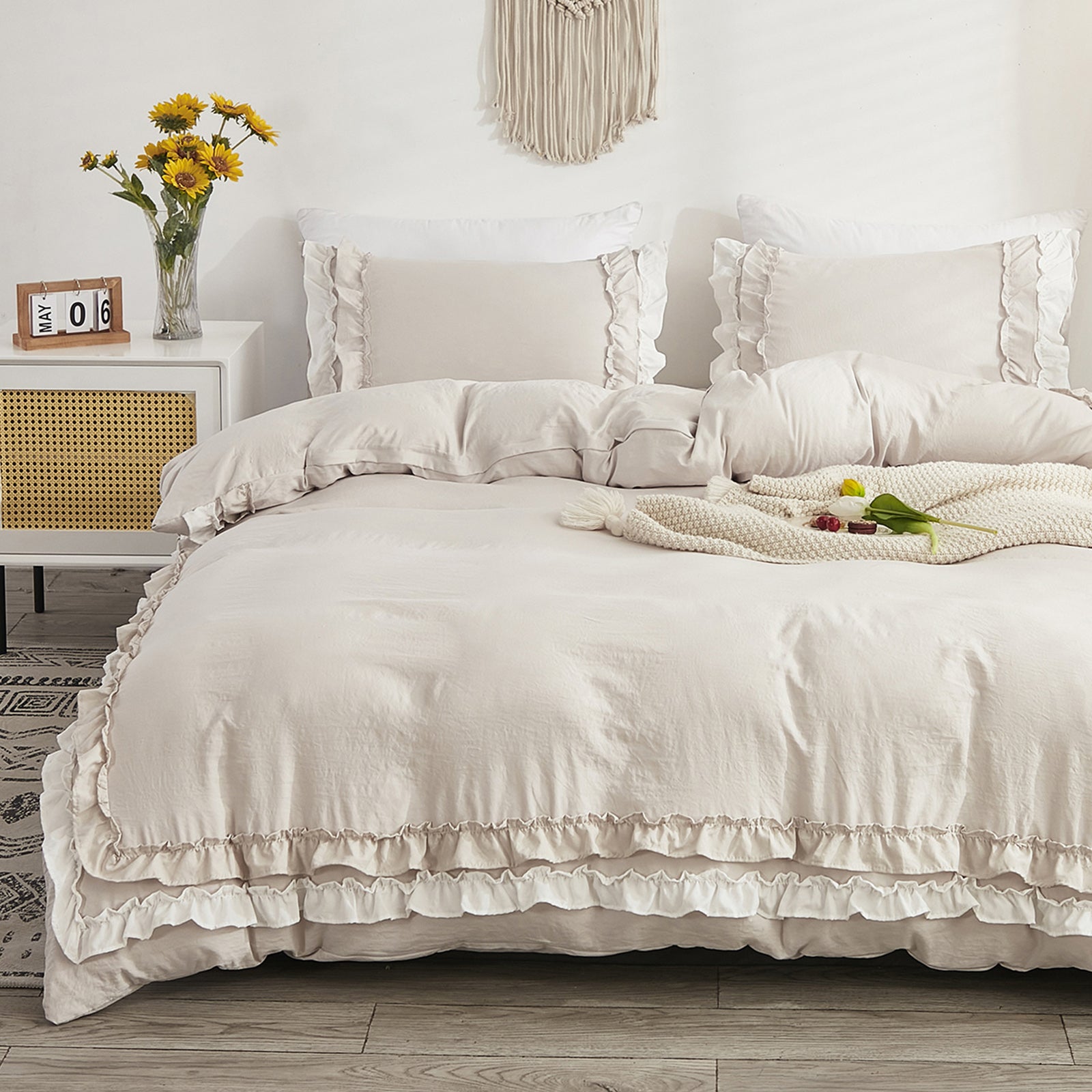 Ruffle Duvet Cover Set – Pleated Shabby Chic Bedding with Pillowcases, Soft Washed Microfiber, Elegant Boho Farmhouse Style, Twin/Queen/King