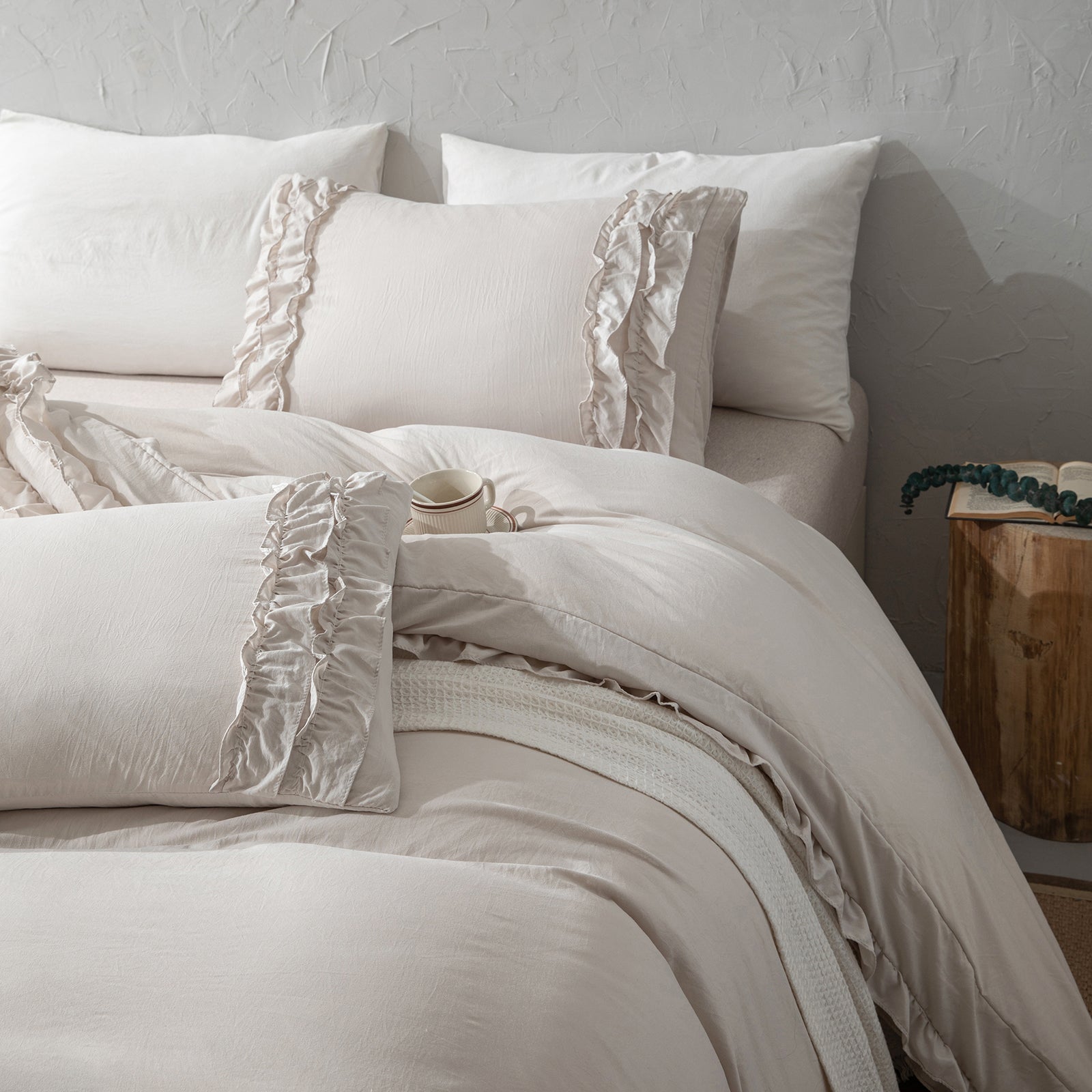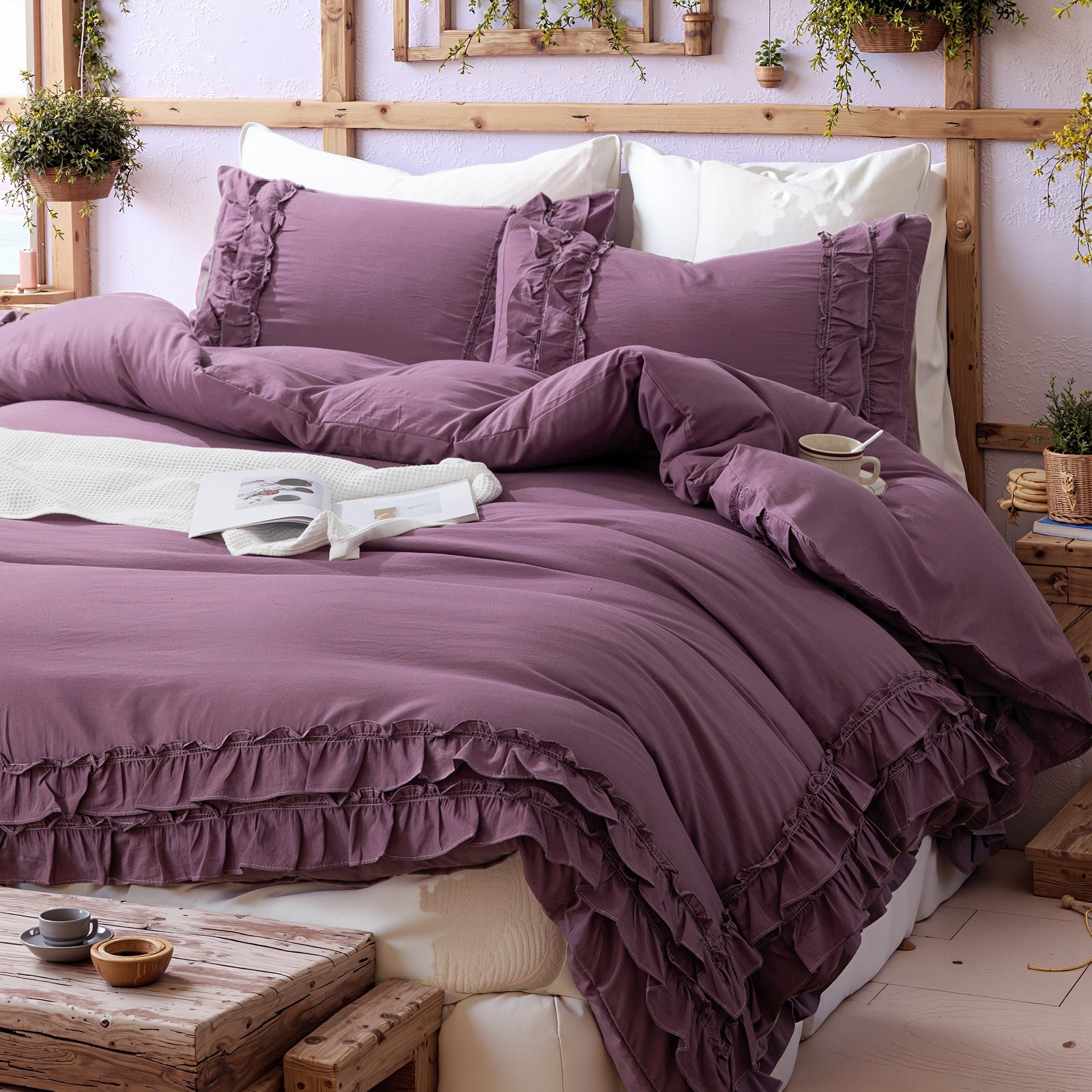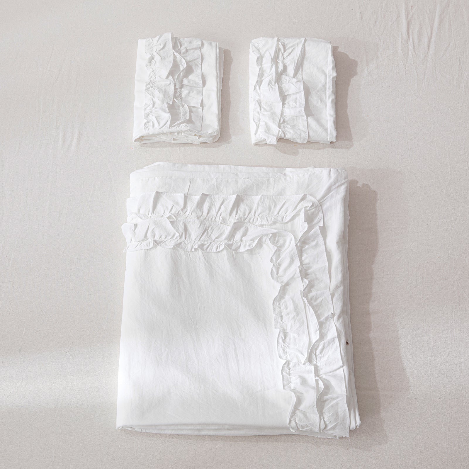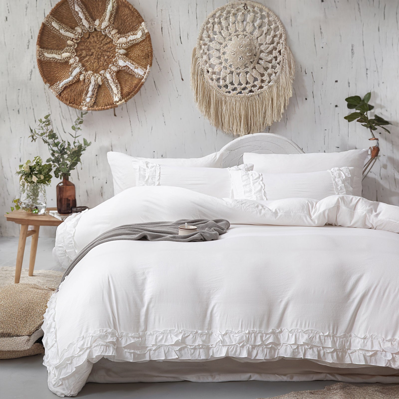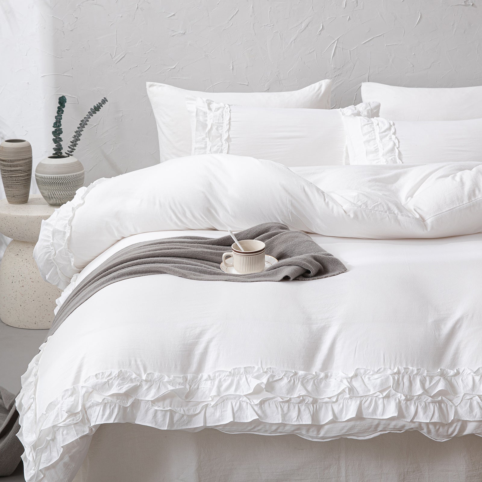 Refresh your bedroom with the Ruffle Duvet Cover Set, designed with delicate pleated ruffles that bring a chic, romantic flair to your space. Perfect for farmhouse, boho, or shabby chic décor, this bedding adds soft elegance and a cozy cottage vibe.