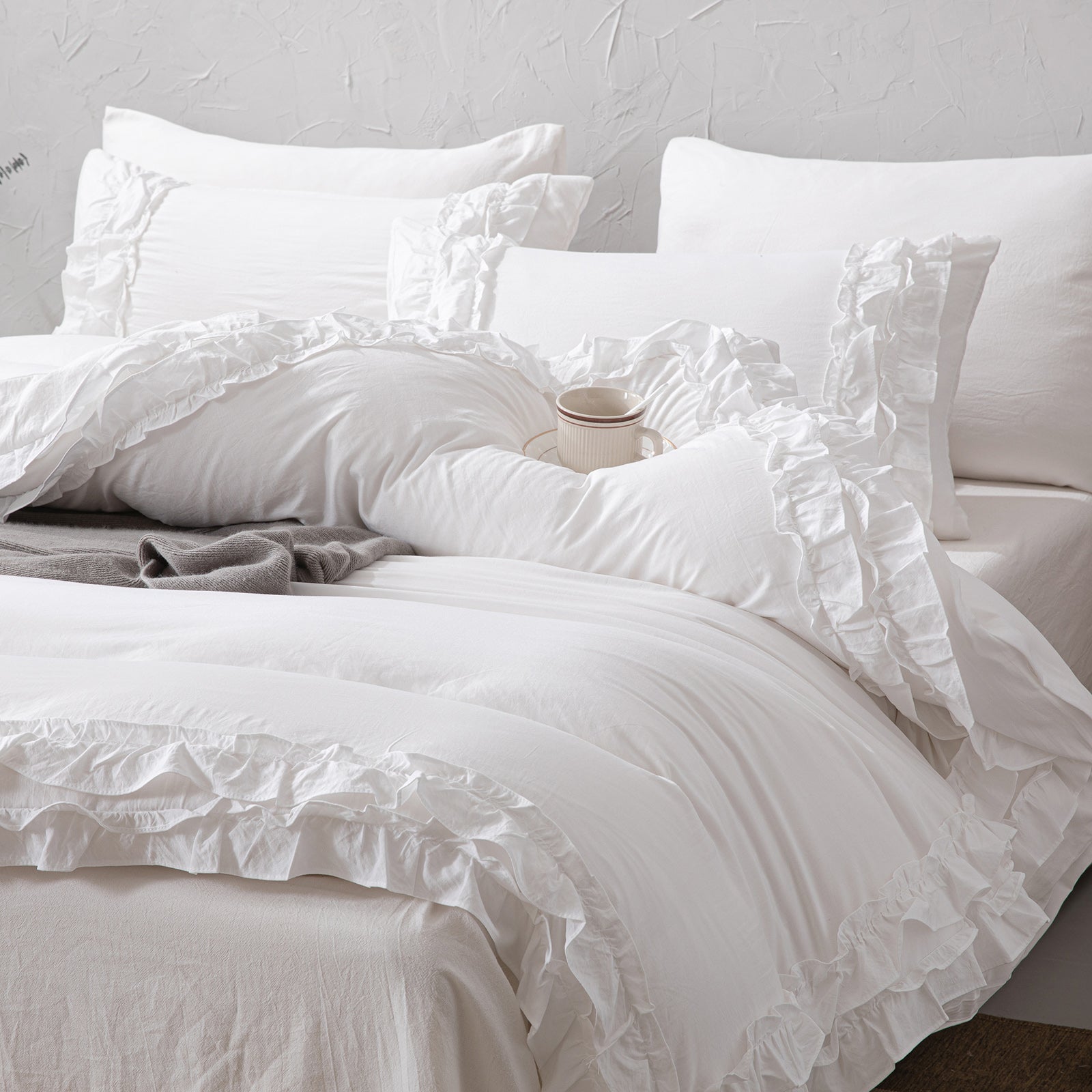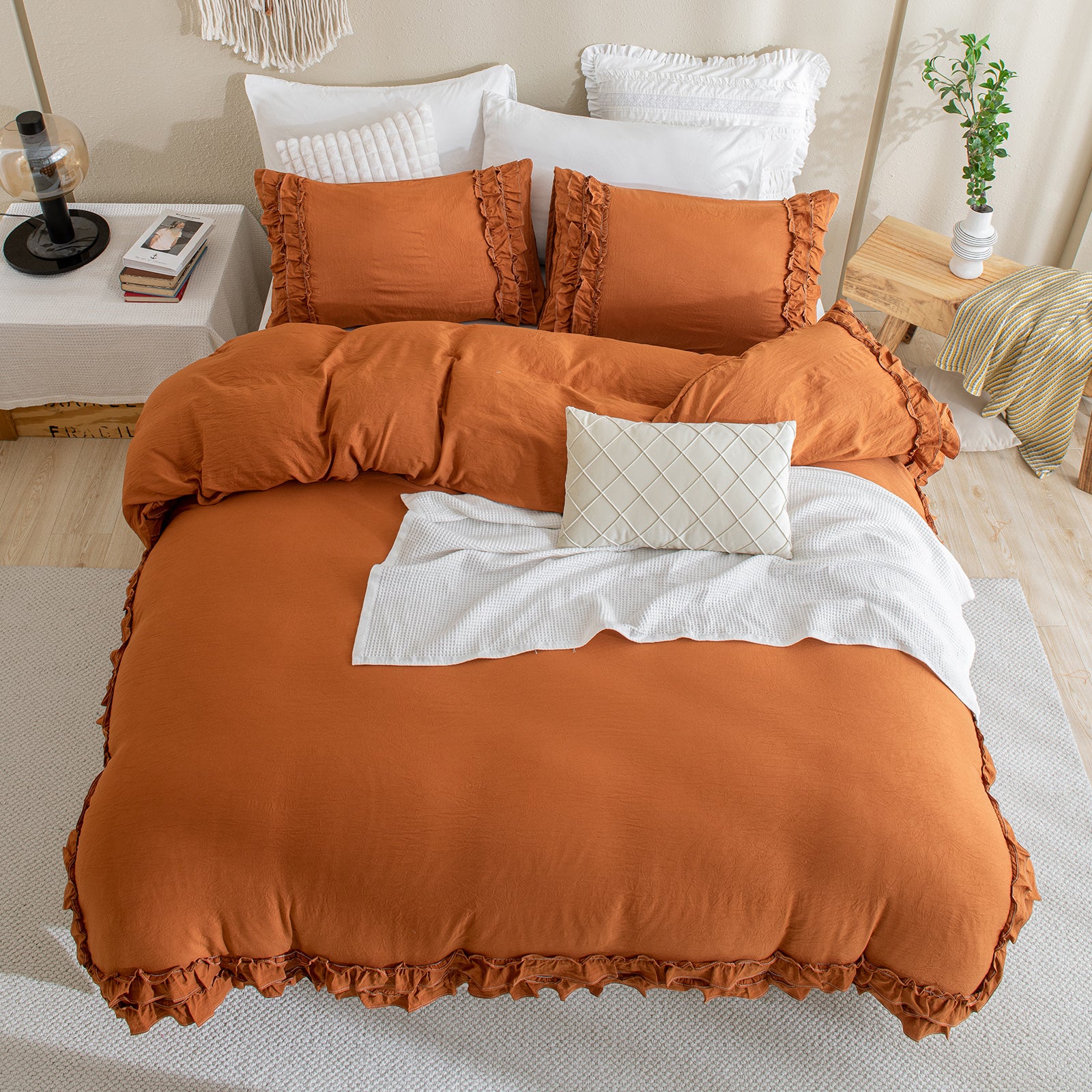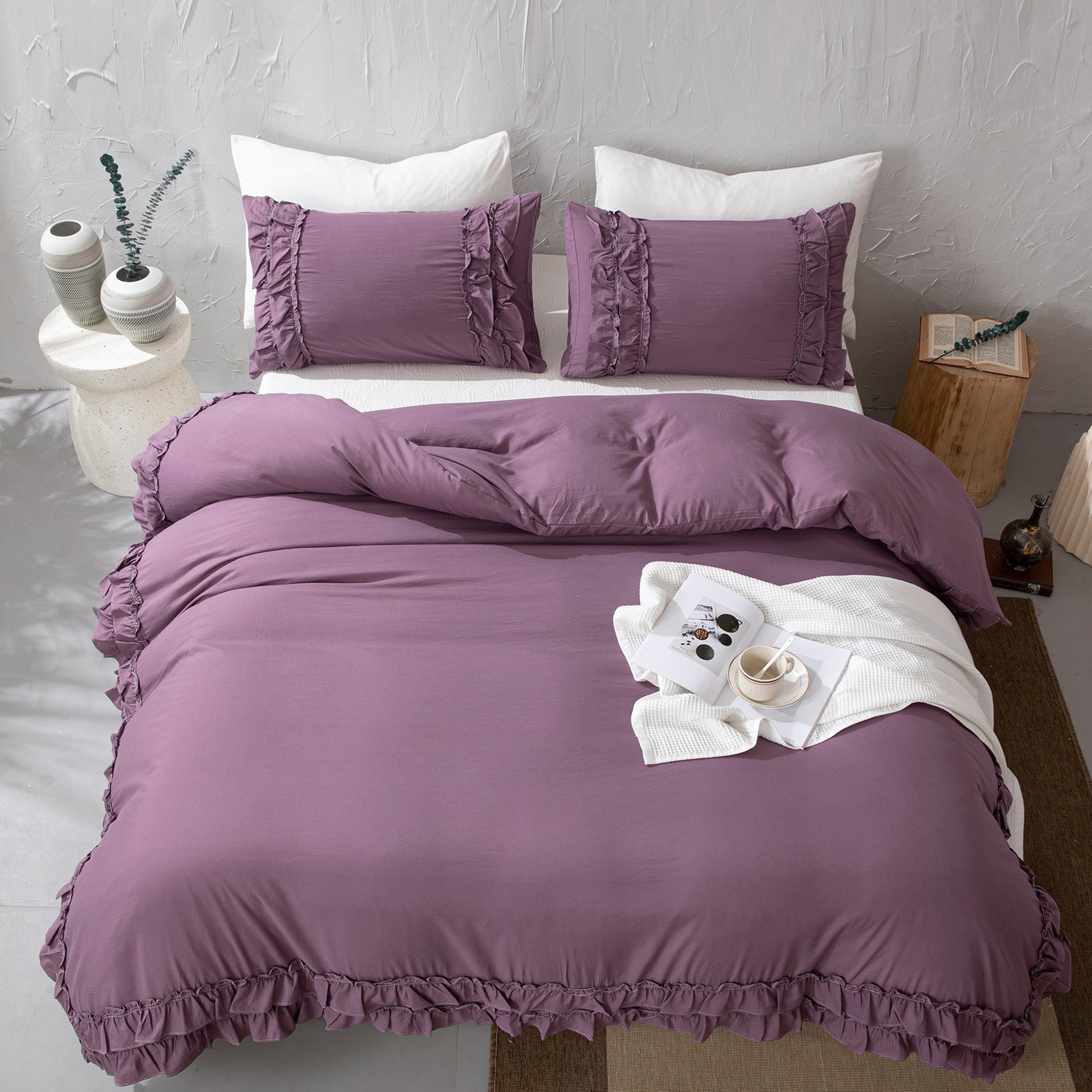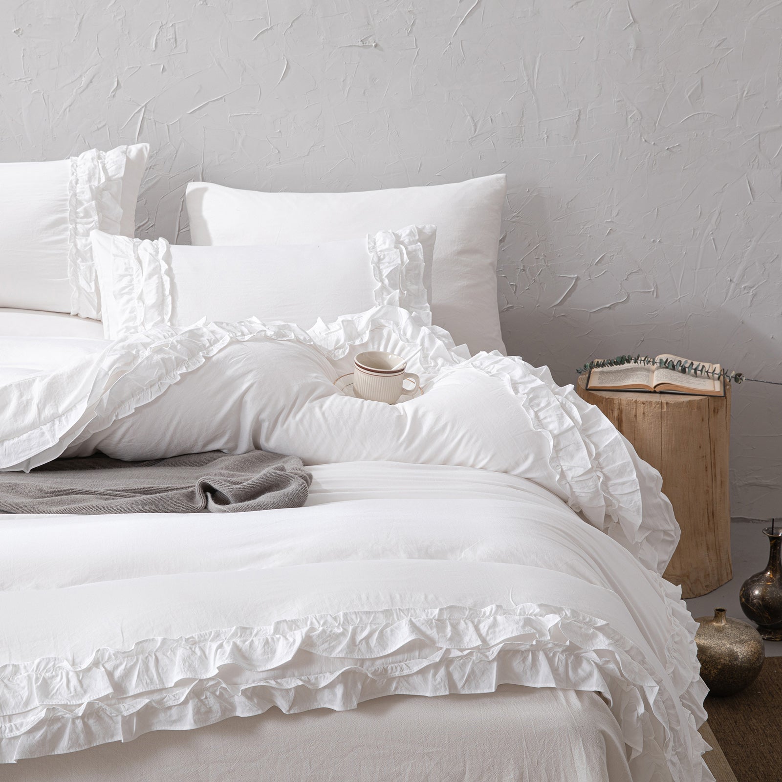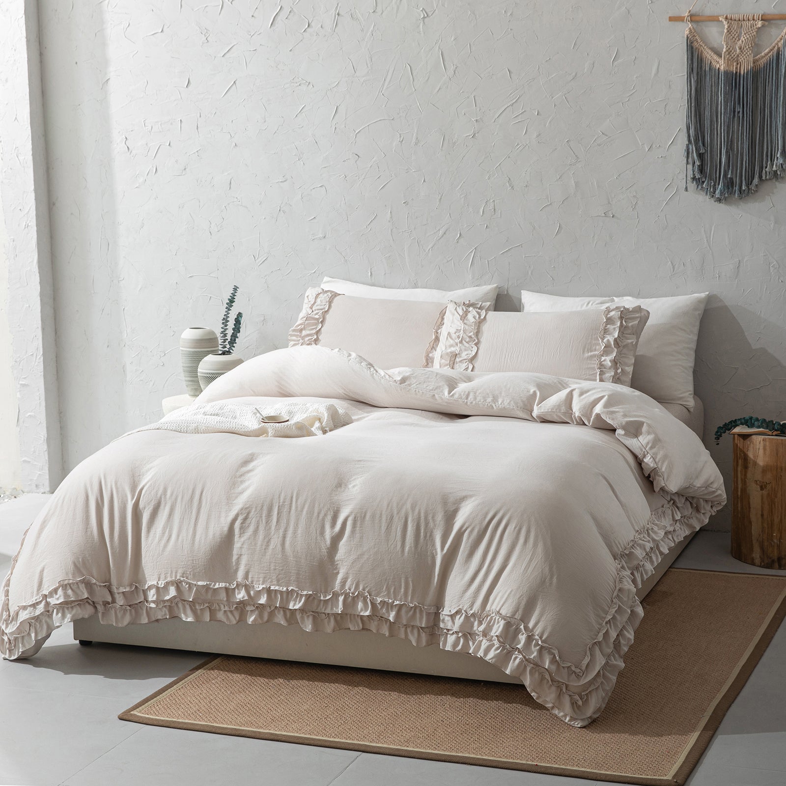Refresh your bedroom with the Ruffle Duvet Cover Set, designed with delicate pleated ruffles that bring a chic, romantic flair to your space. Perfect for farmhouse, boho, or shabby chic décor, this bedding adds soft elegance and a cozy cottage vibe.