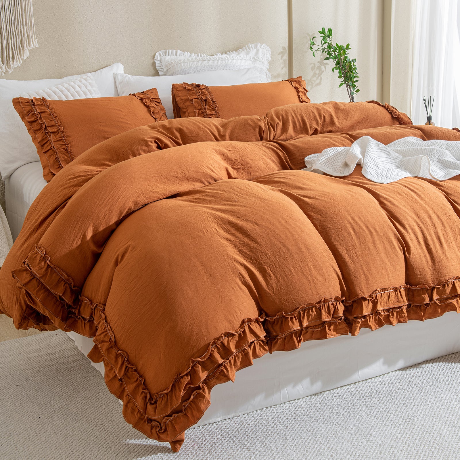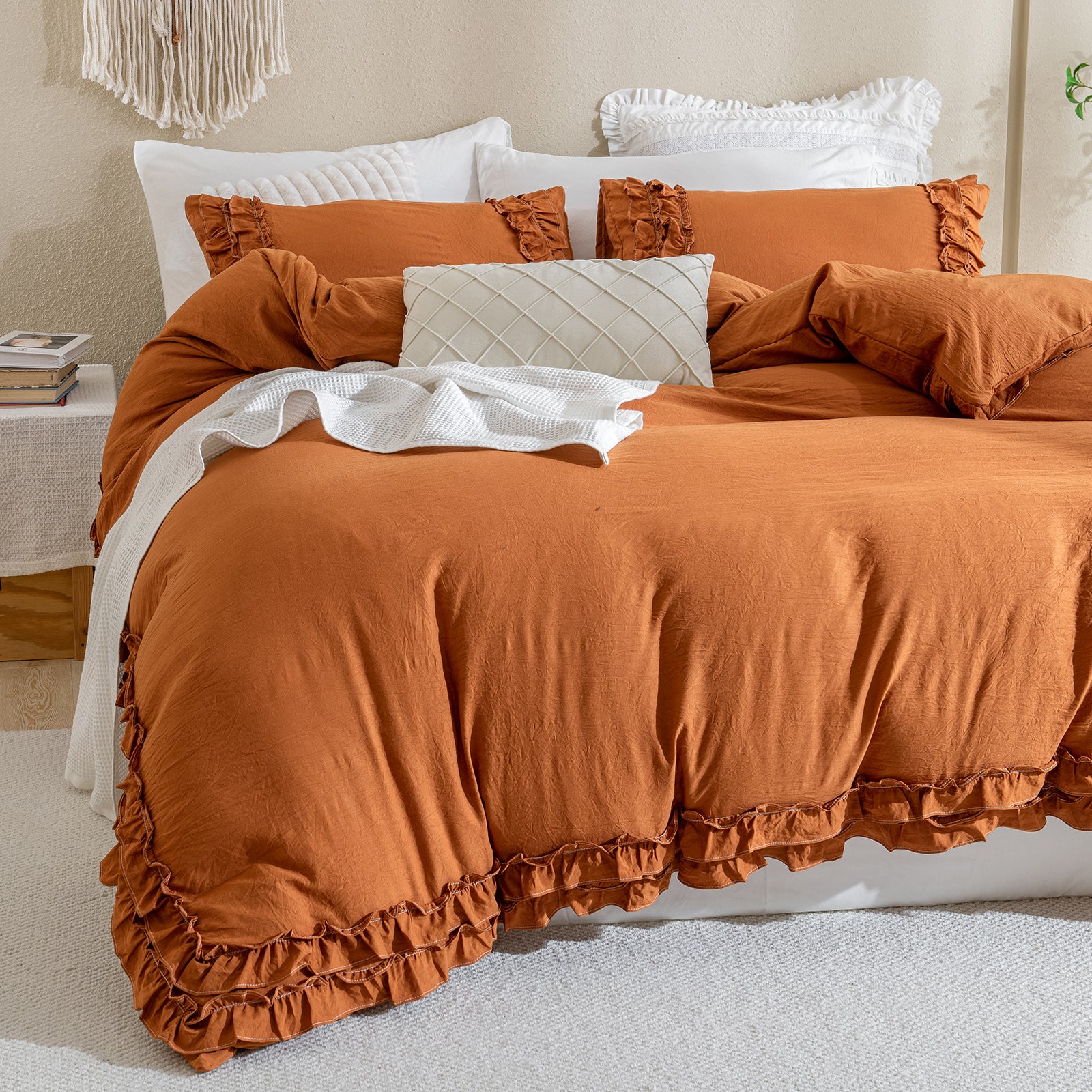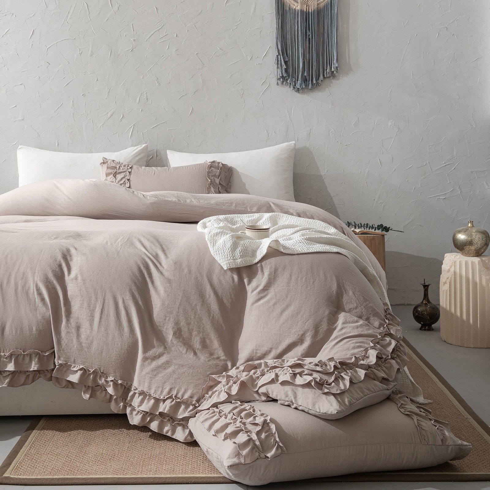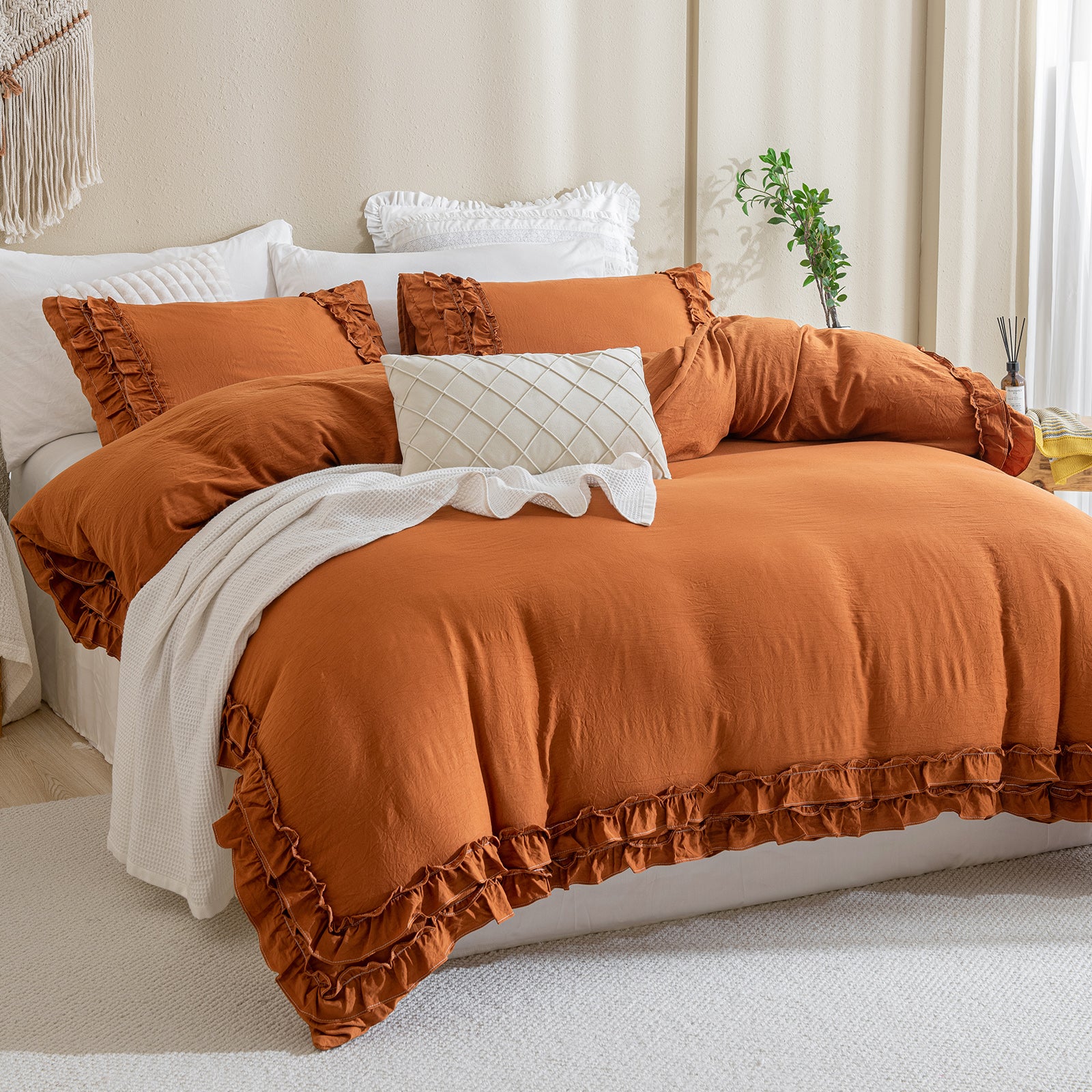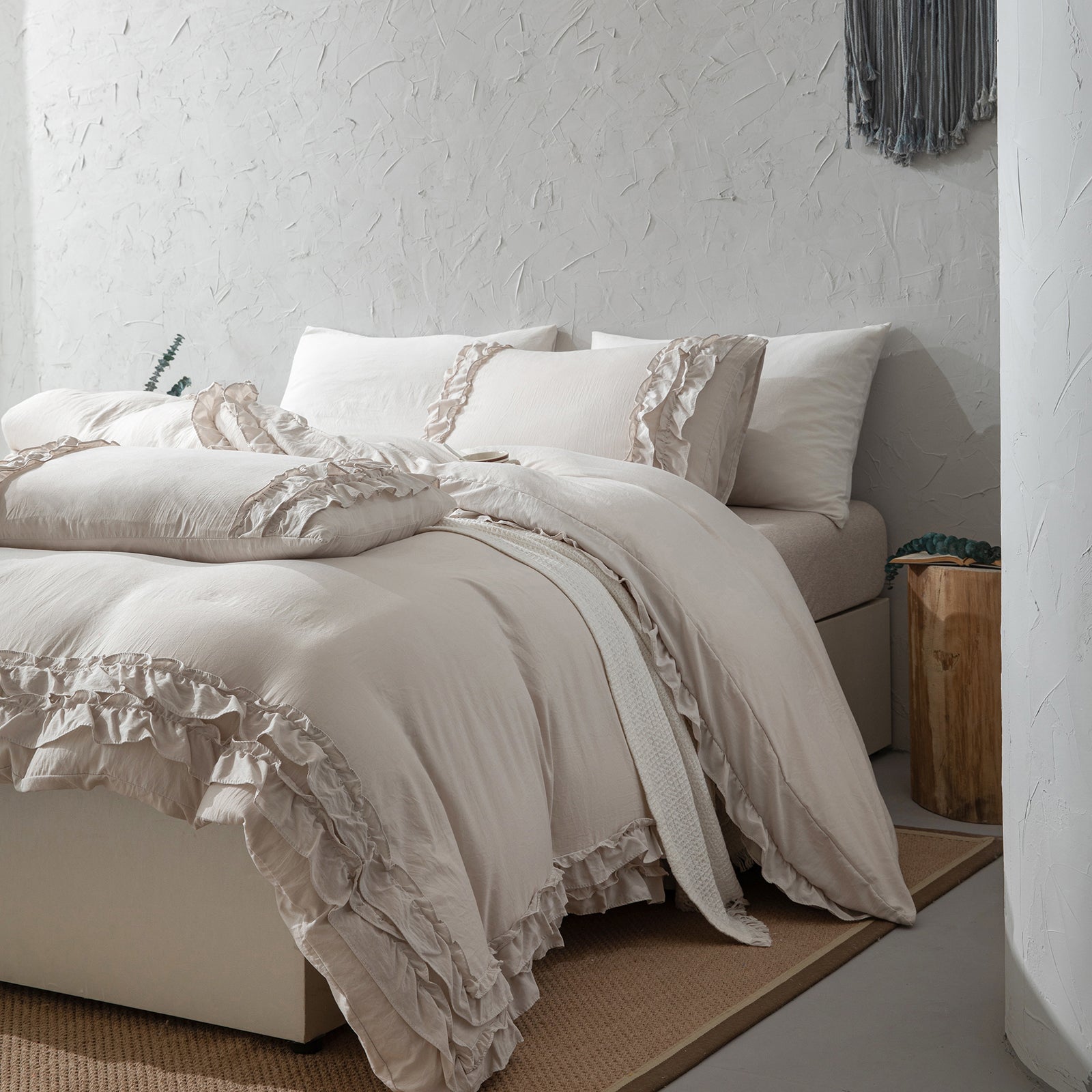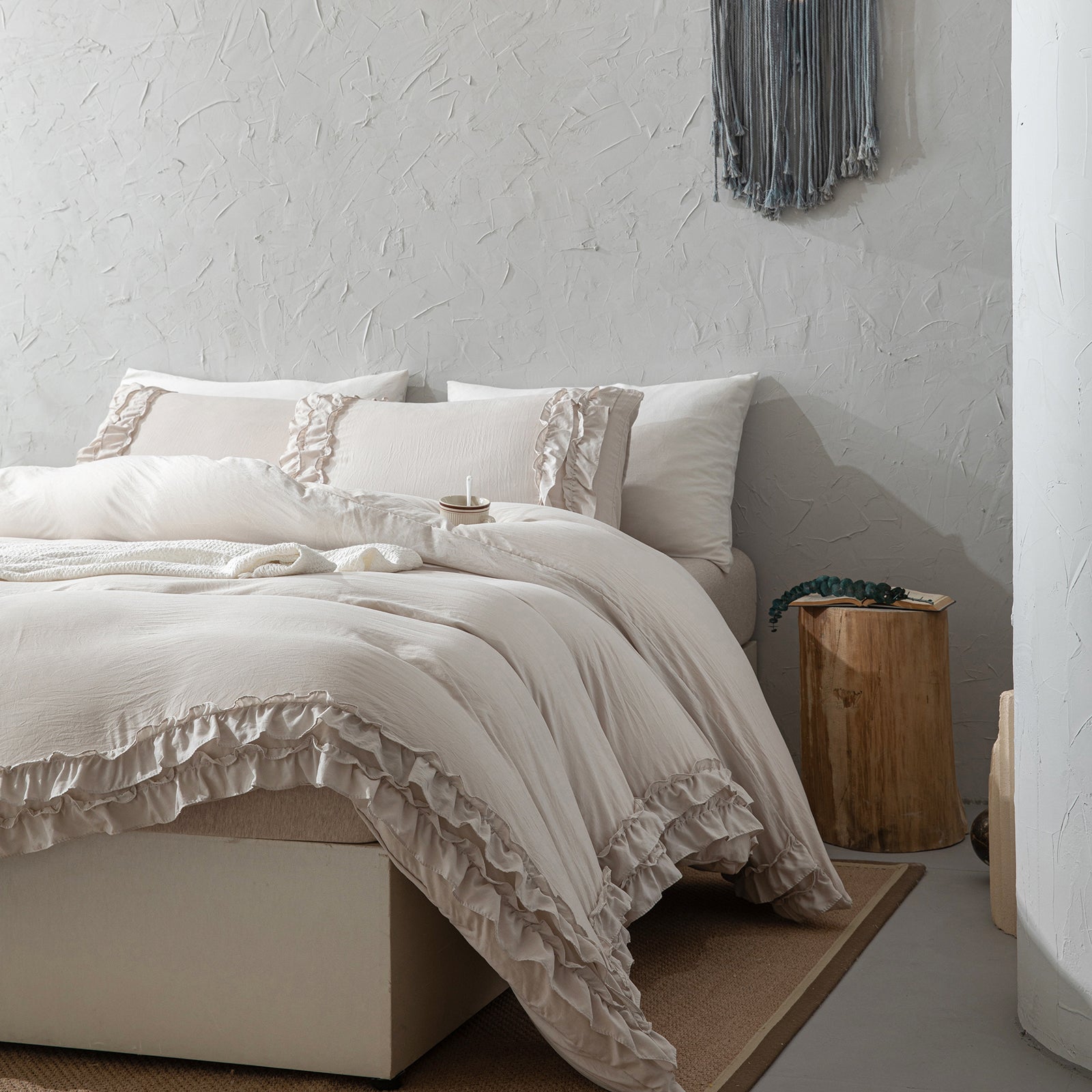Refresh your bedroom with the Ruffle Duvet Cover Set, designed with delicate pleated ruffles that bring a chic, romantic flair to your space. Perfect for farmhouse, boho, or shabby chic décor, this bedding adds soft elegance and a cozy cottage vibe.