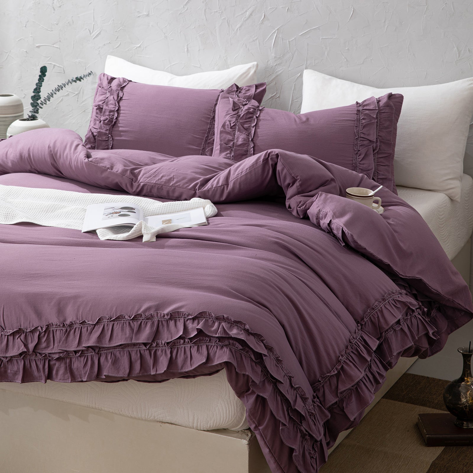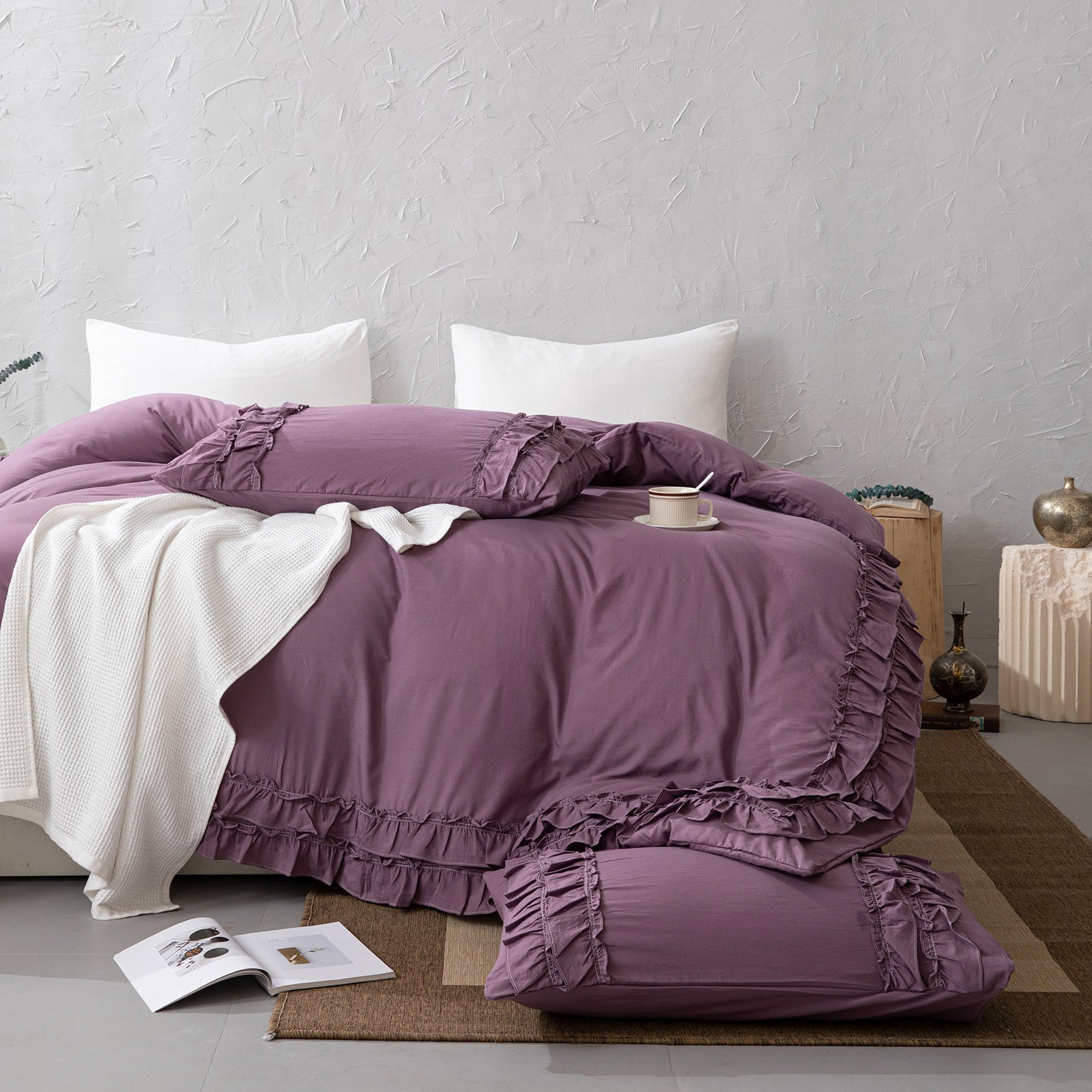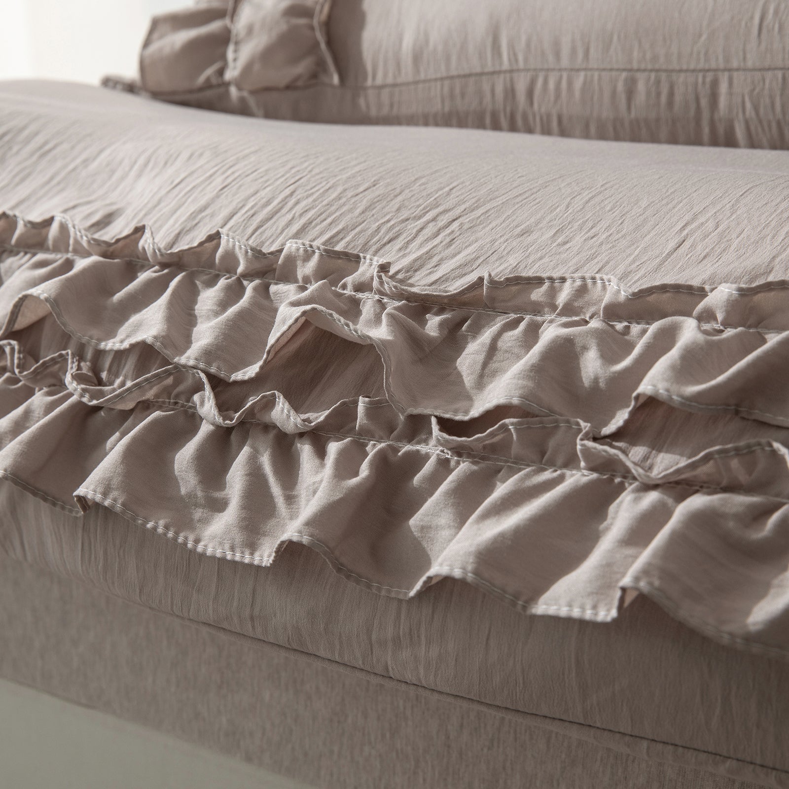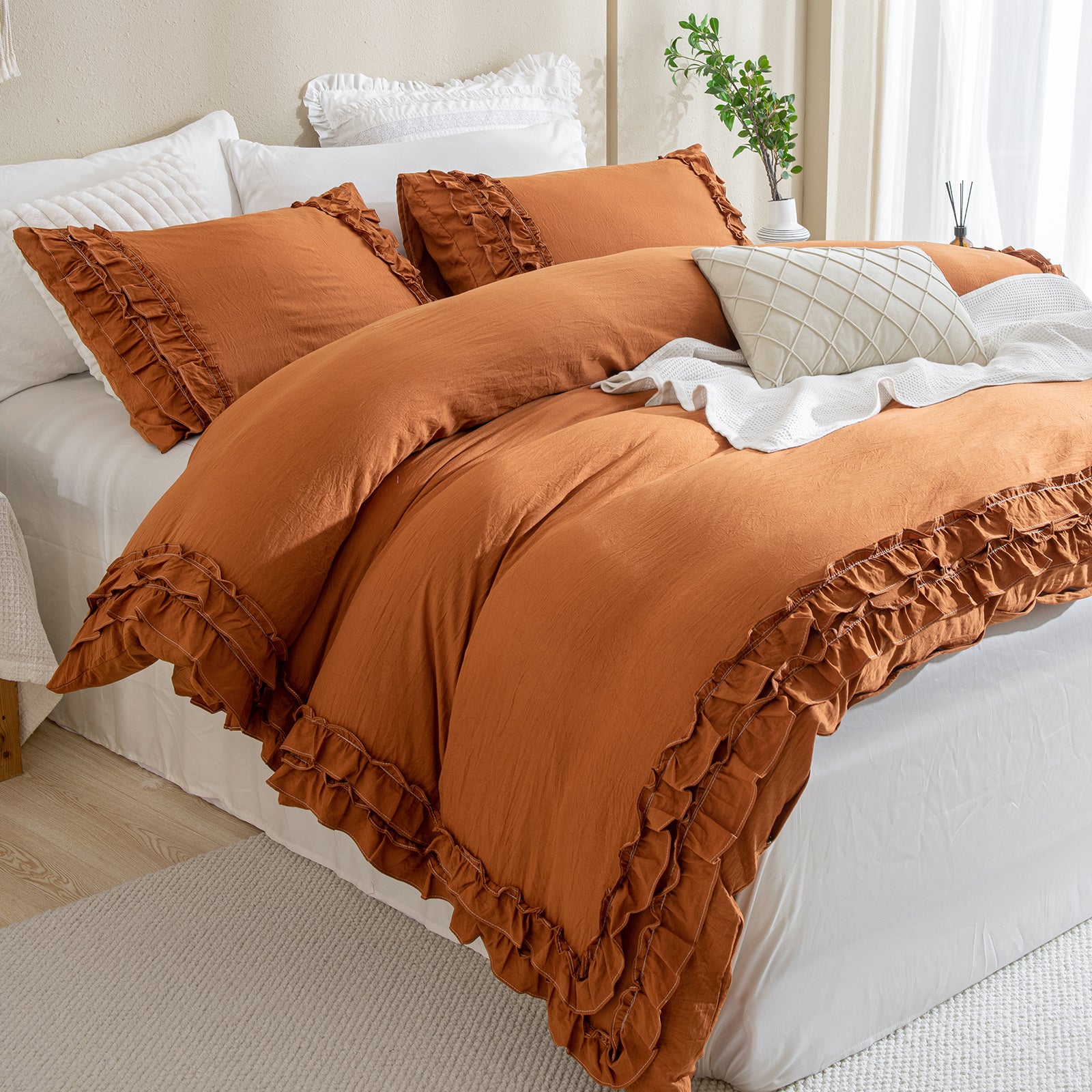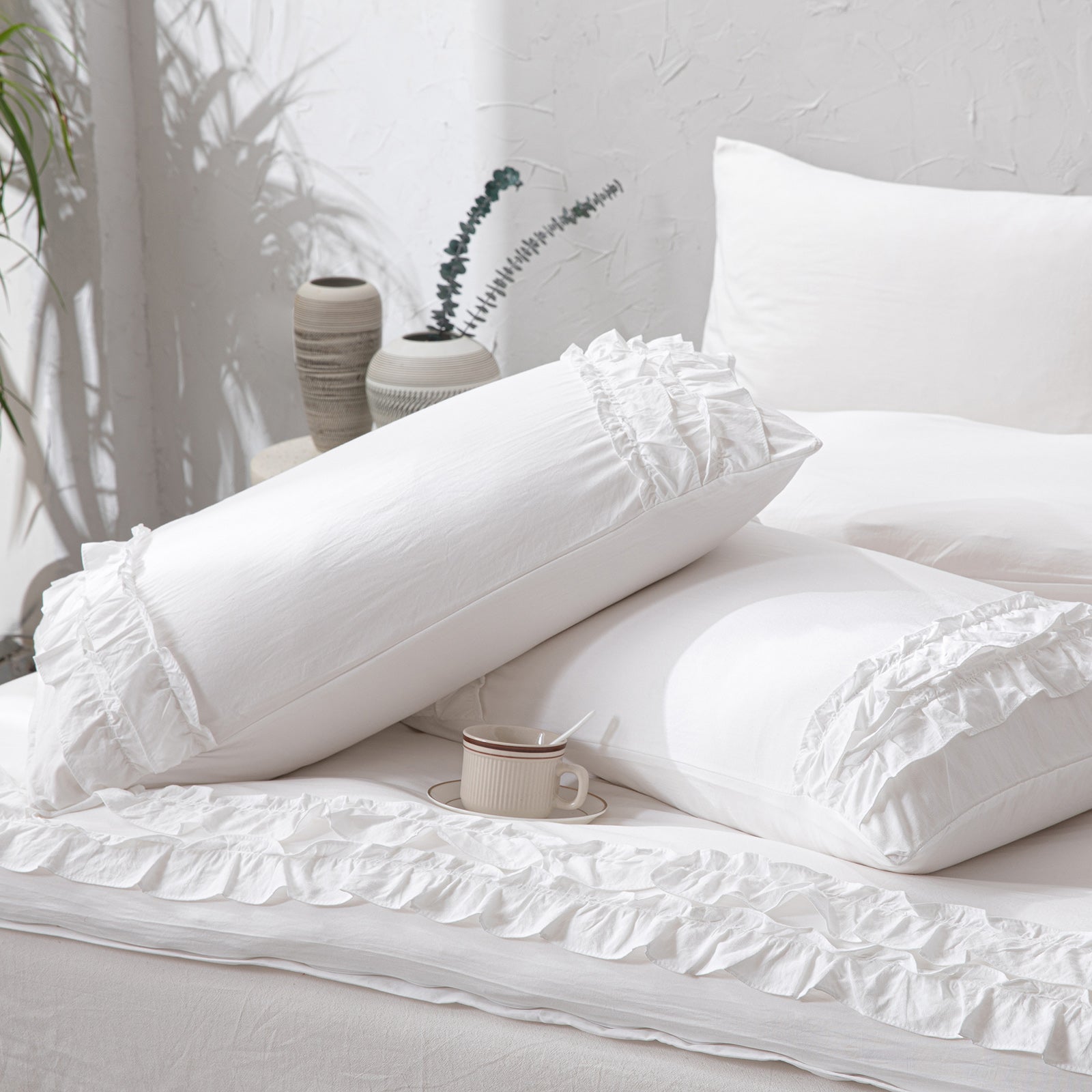 Refresh your bedroom with the Ruffle Duvet Cover Set, designed with delicate pleated ruffles that bring a chic, romantic flair to your space. Perfect for farmhouse, boho, or shabby chic décor, this bedding adds soft elegance and a cozy cottage vibe.