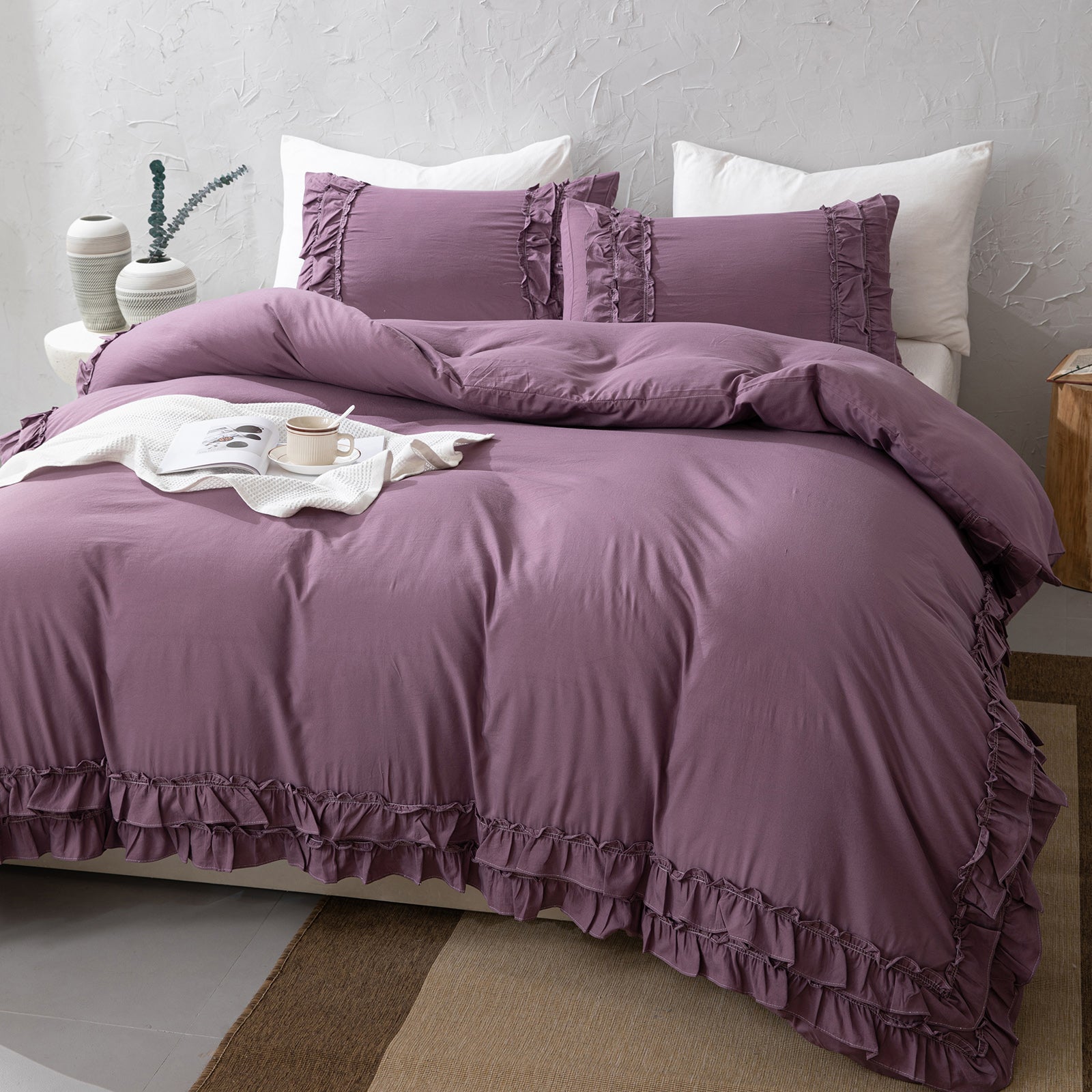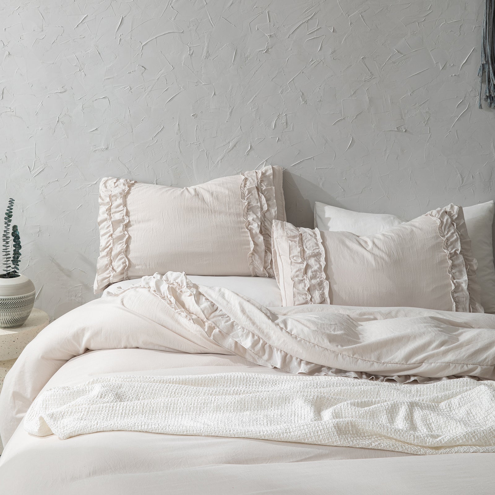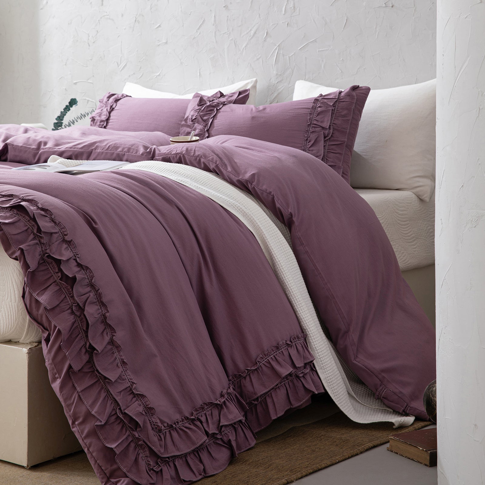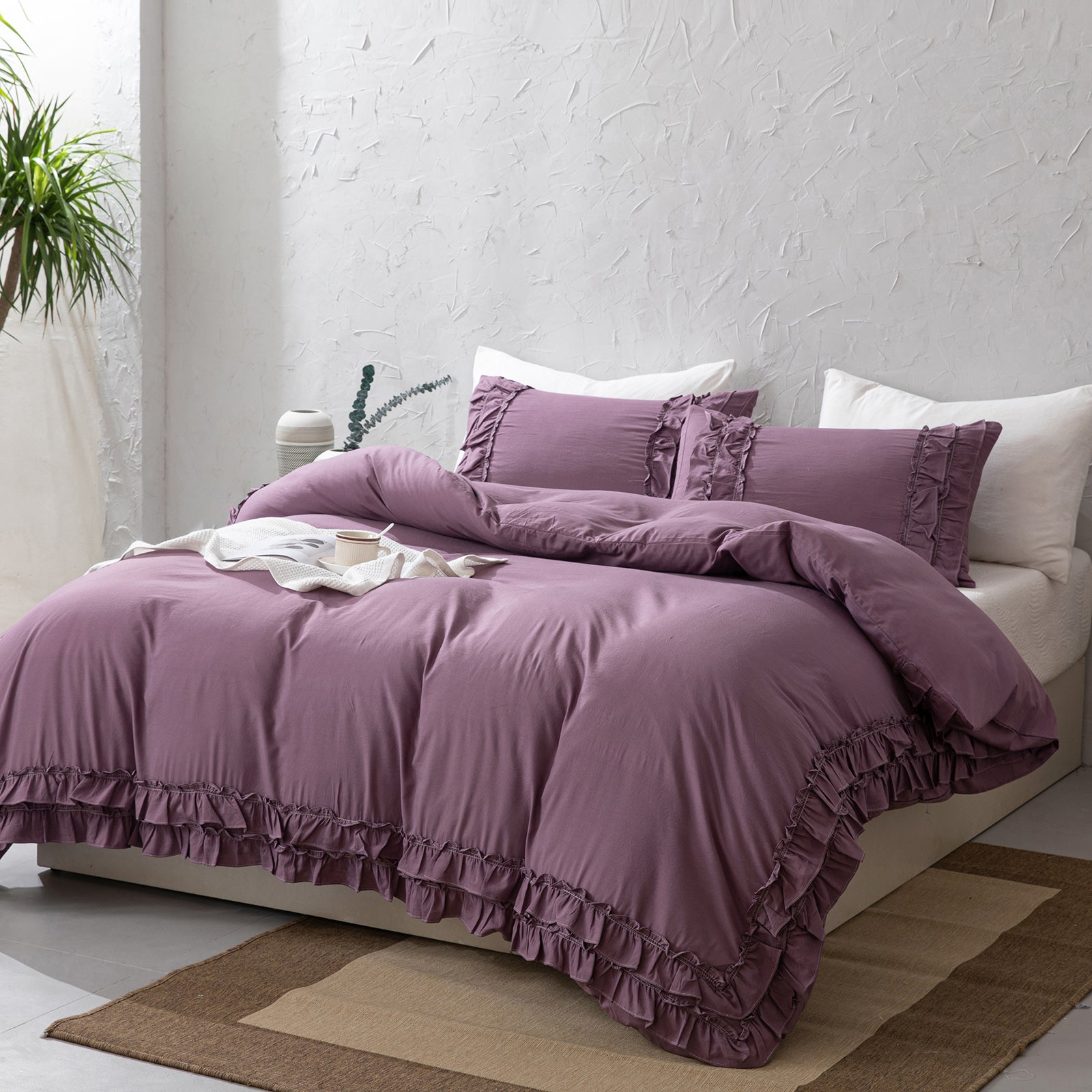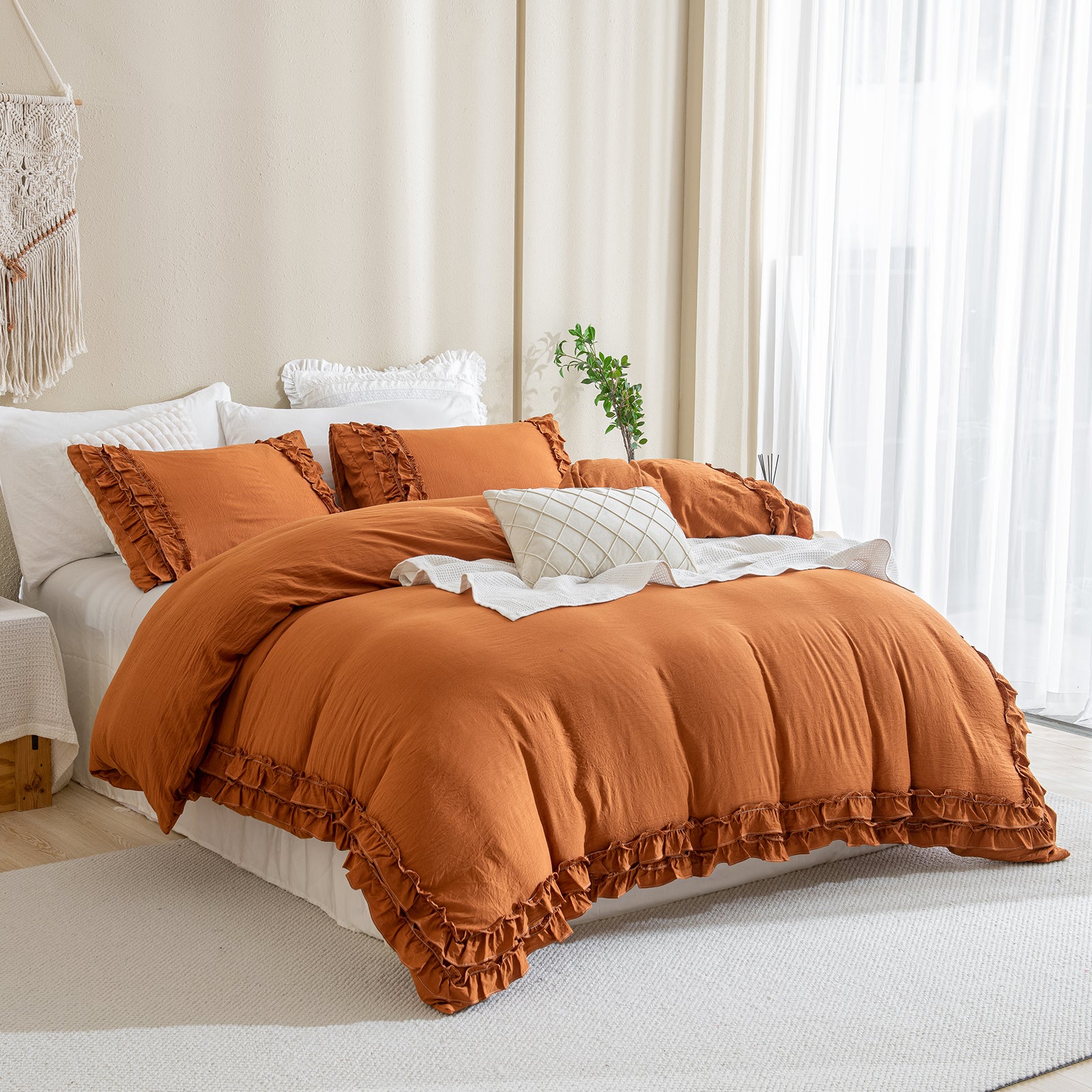 Refresh your bedroom with the Ruffle Duvet Cover Set, designed with delicate pleated ruffles that bring a chic, romantic flair to your space. Perfect for farmhouse, boho, or shabby chic décor, this bedding adds soft elegance and a cozy cottage vibe.