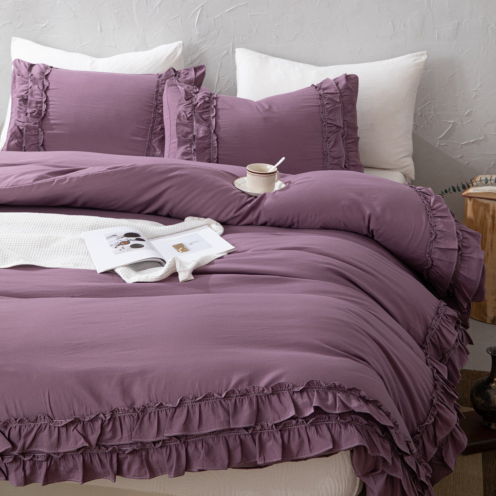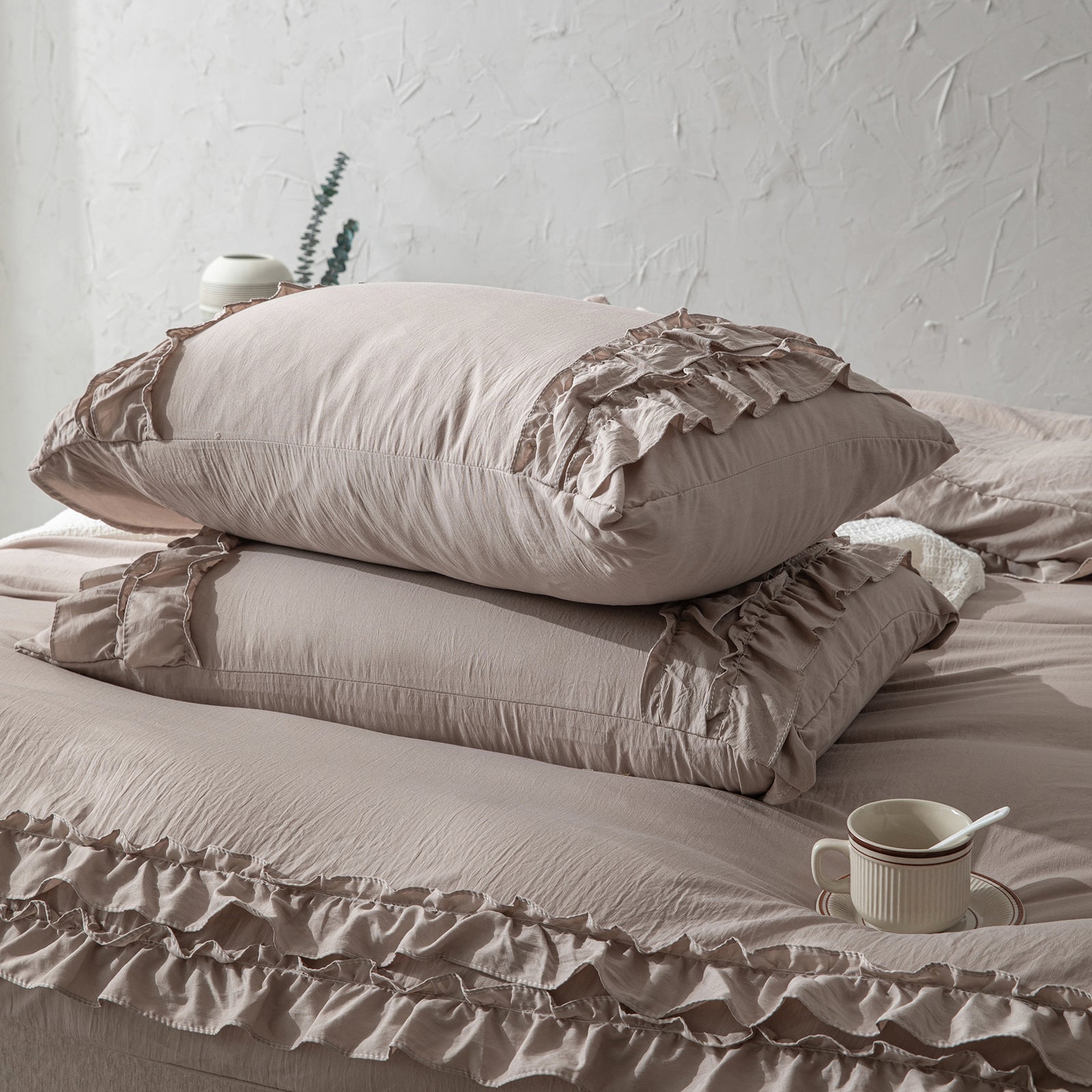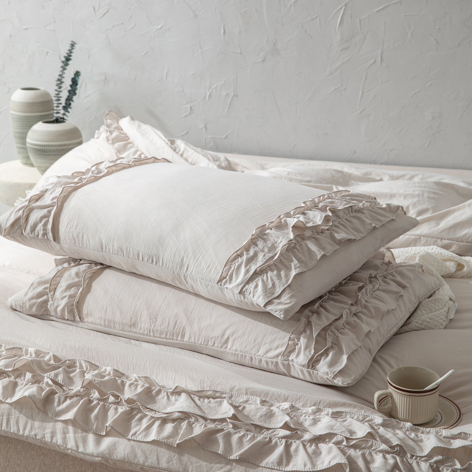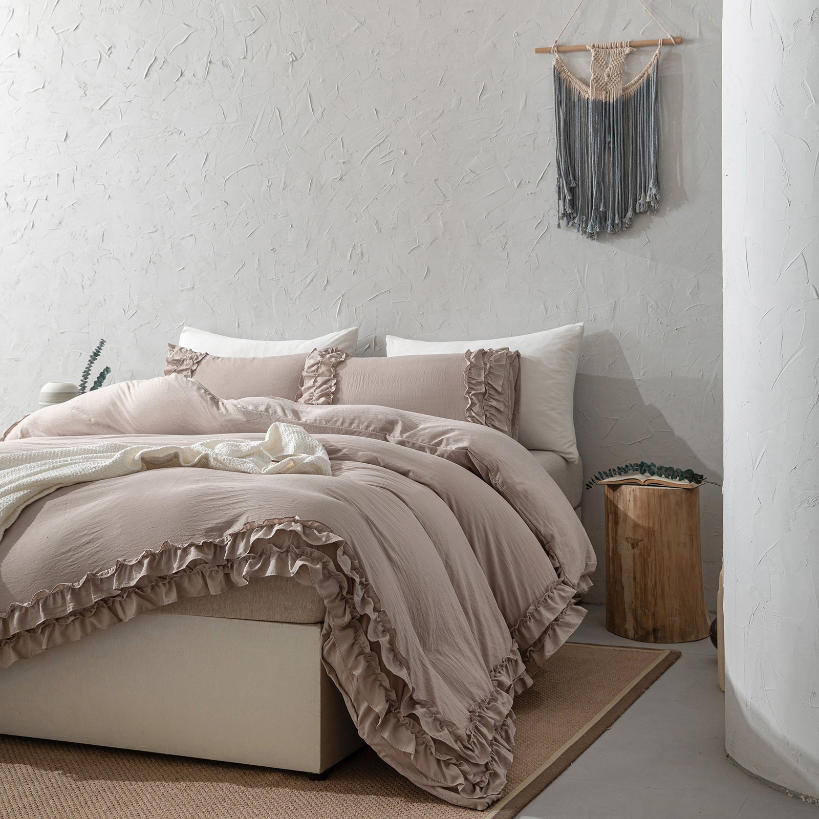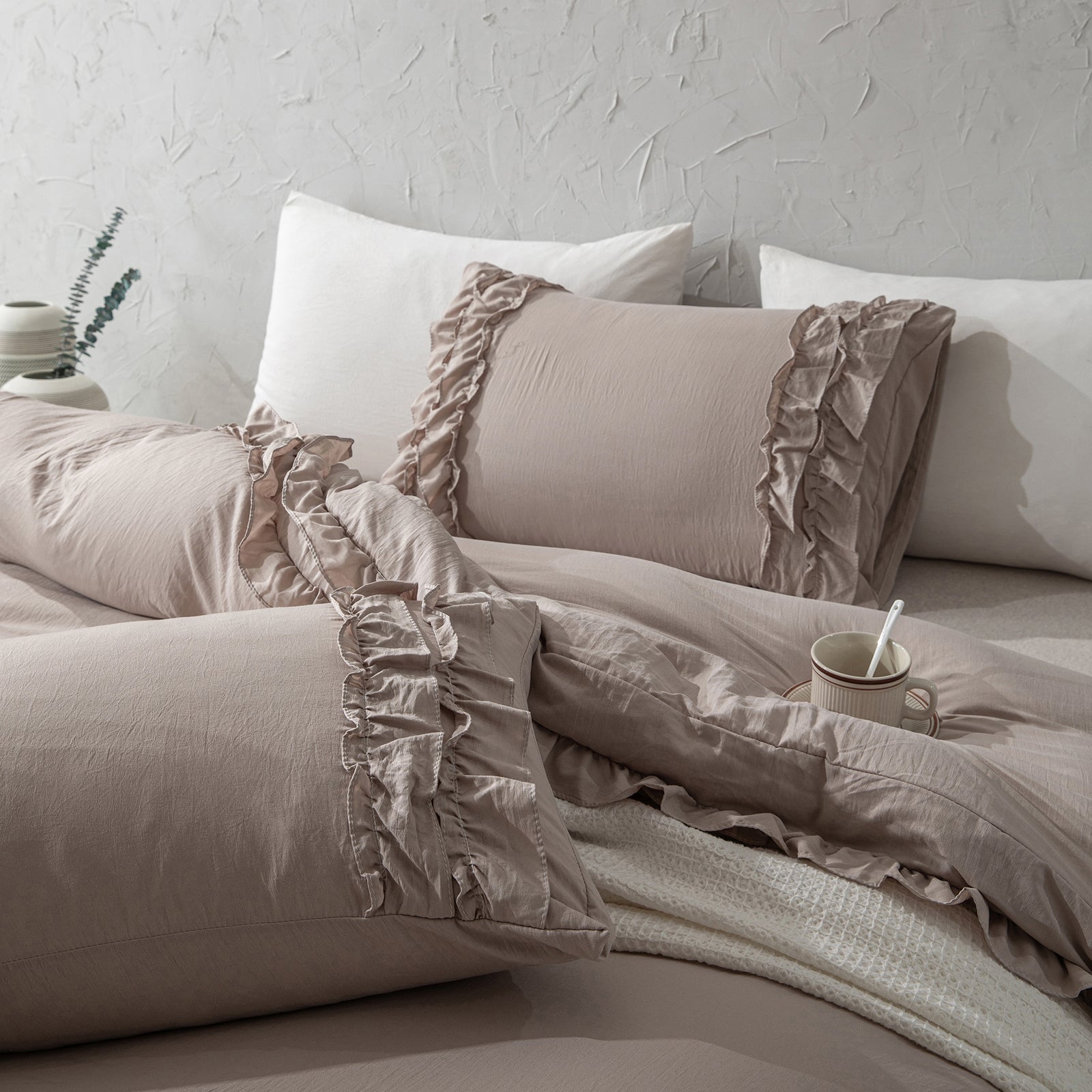 Refresh your bedroom with the Ruffle Duvet Cover Set, designed with delicate pleated ruffles that bring a chic, romantic flair to your space. Perfect for farmhouse, boho, or shabby chic décor, this bedding adds soft elegance and a cozy cottage vibe.