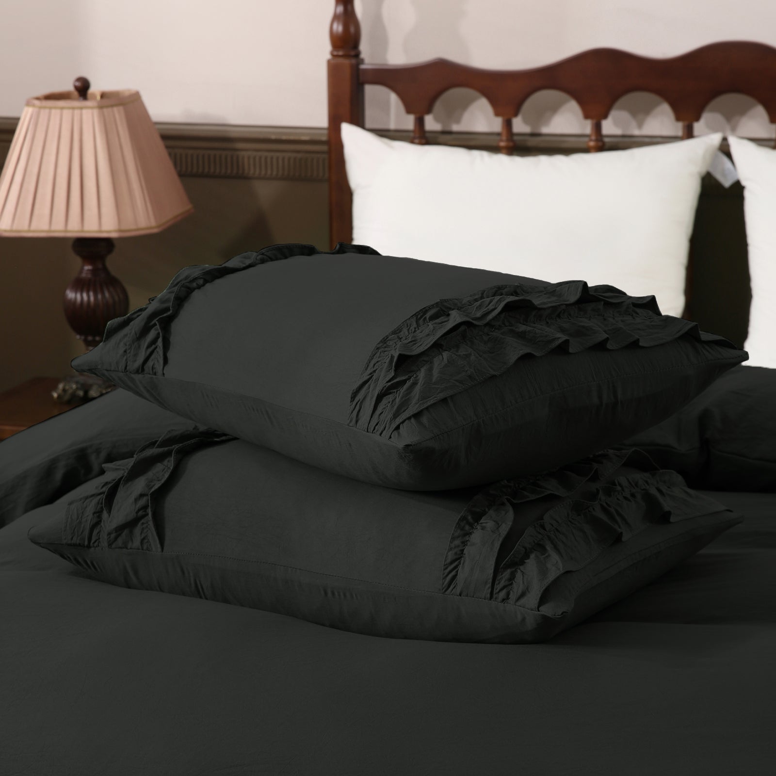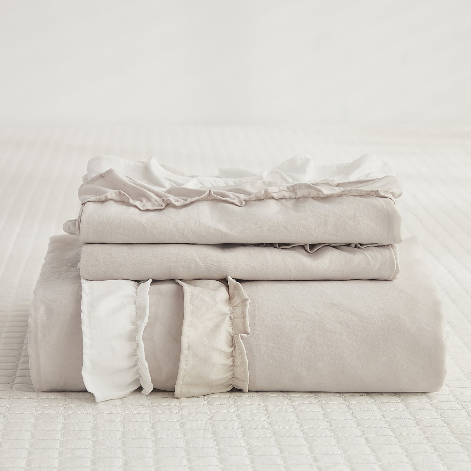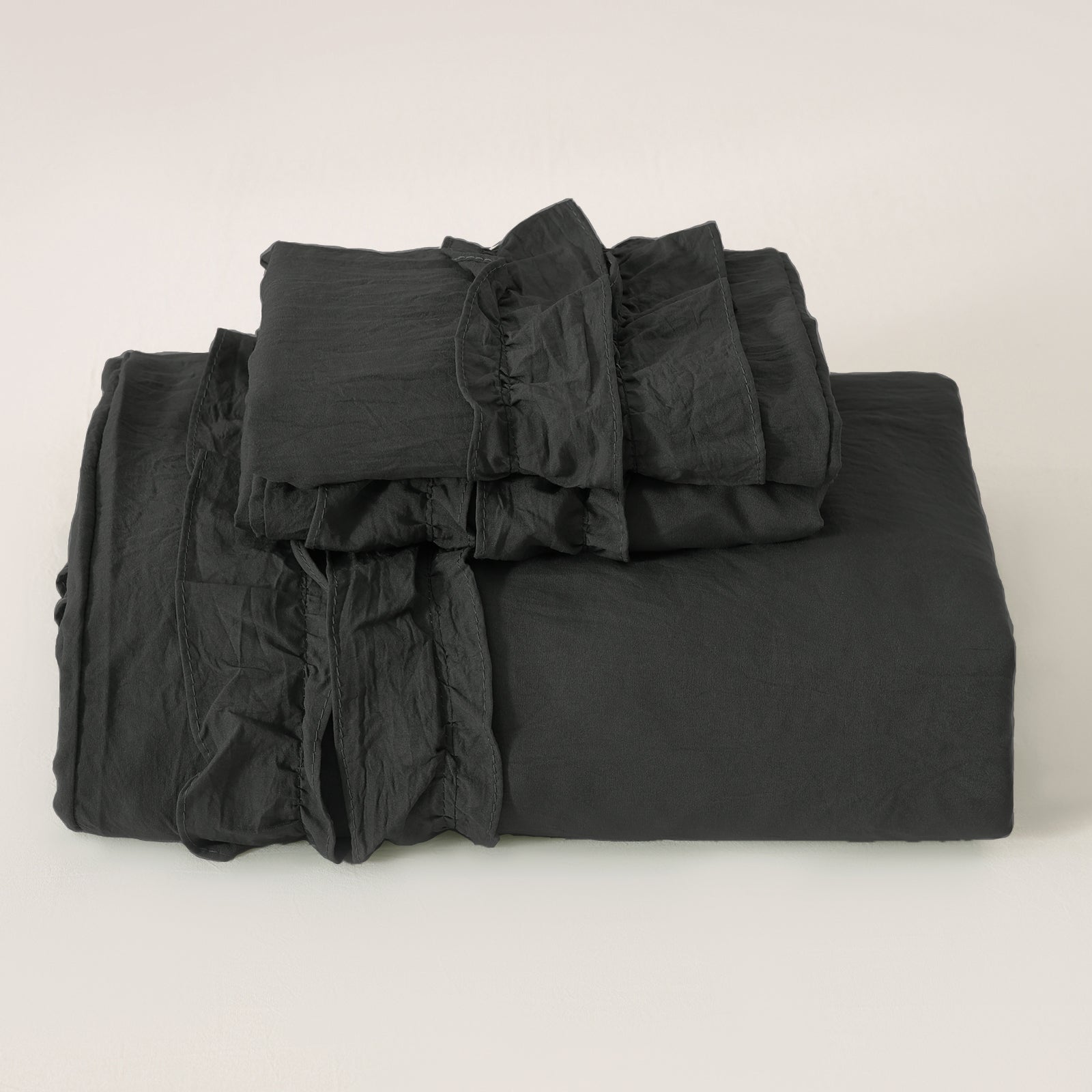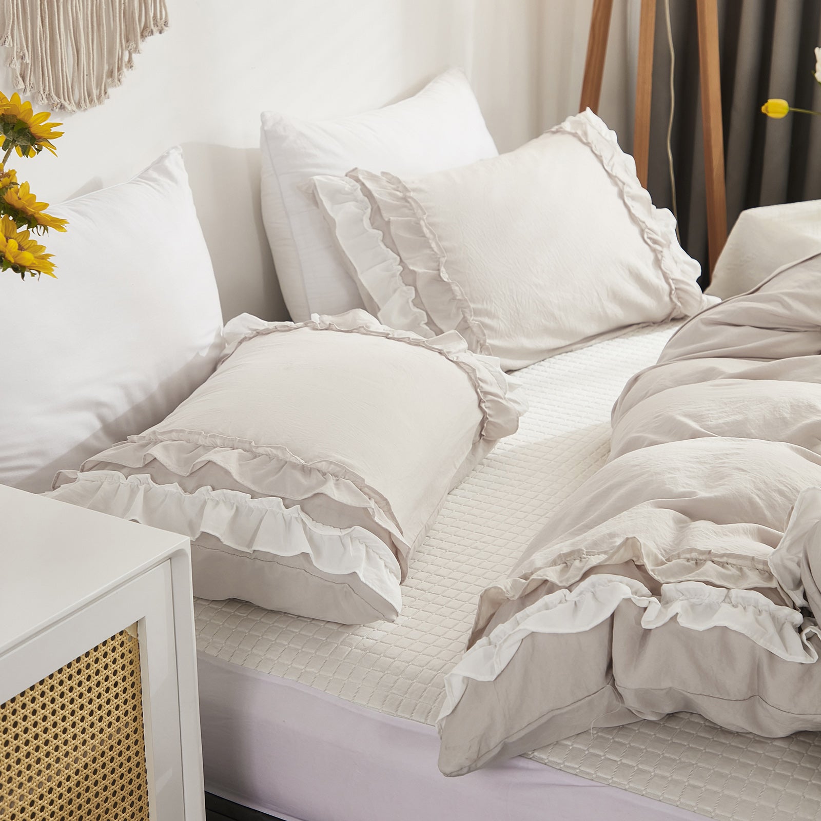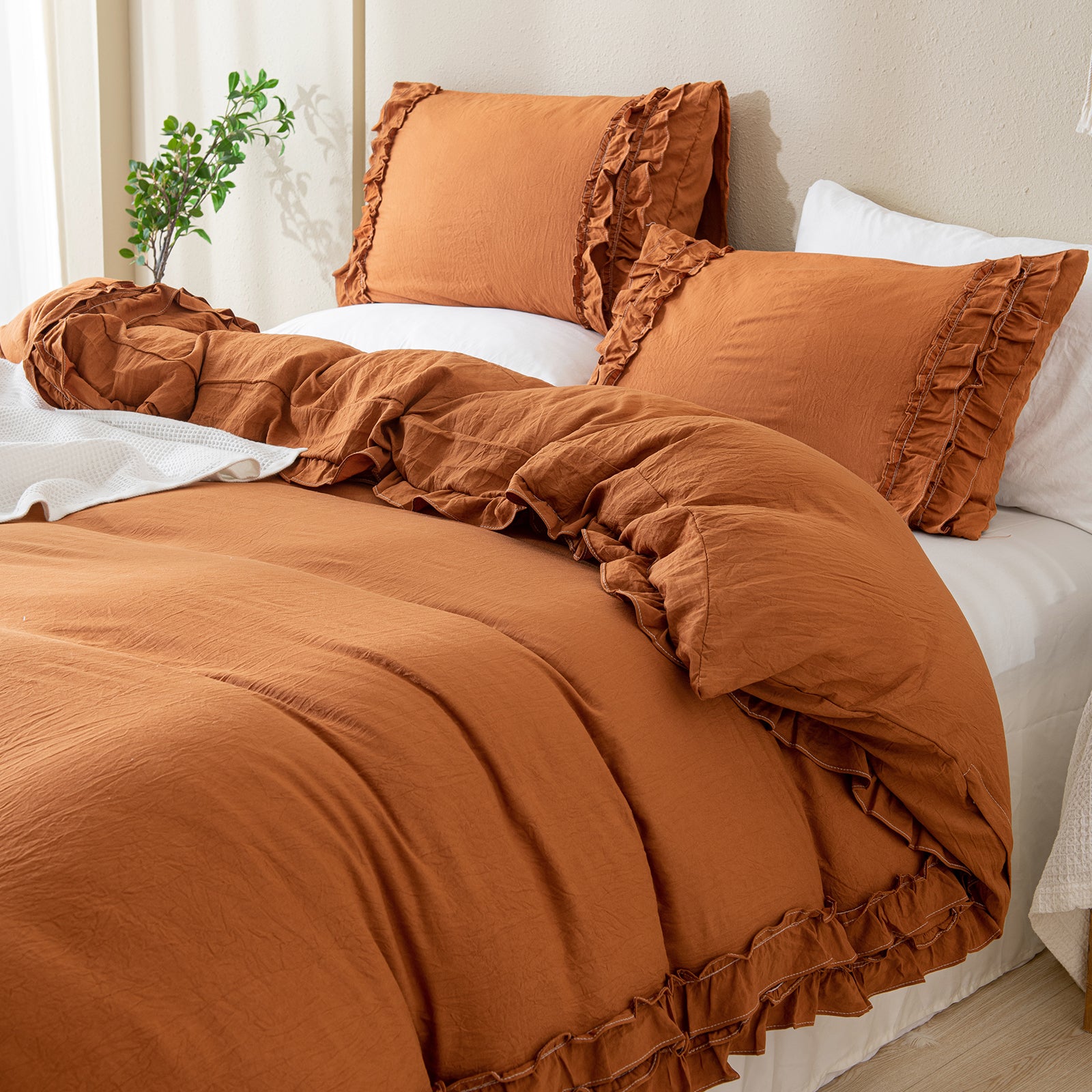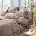 Refresh your bedroom with the Ruffle Duvet Cover Set, designed with delicate pleated ruffles that bring a chic, romantic flair to your space. Perfect for farmhouse, boho, or shabby chic décor, this bedding adds soft elegance and a cozy cottage vibe.