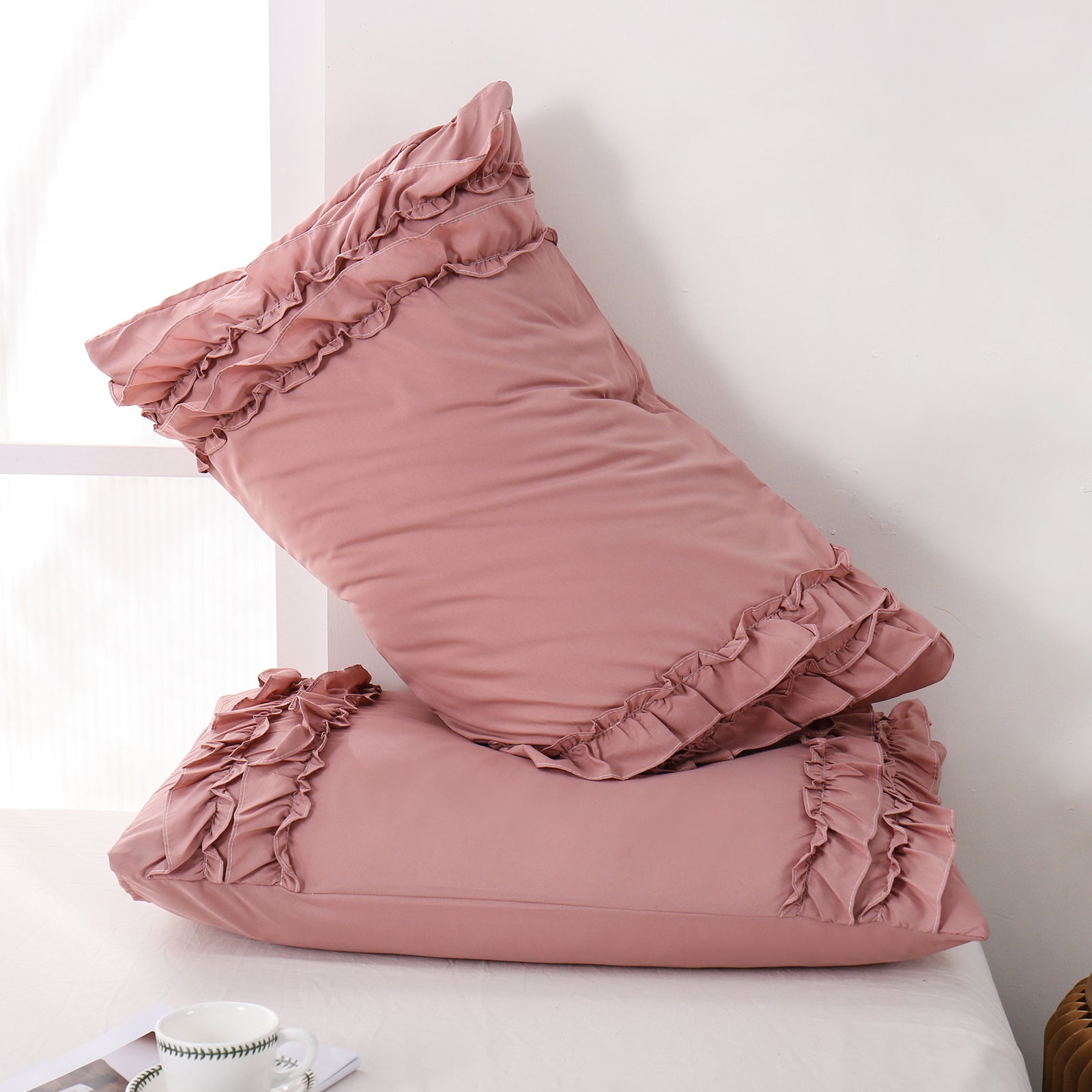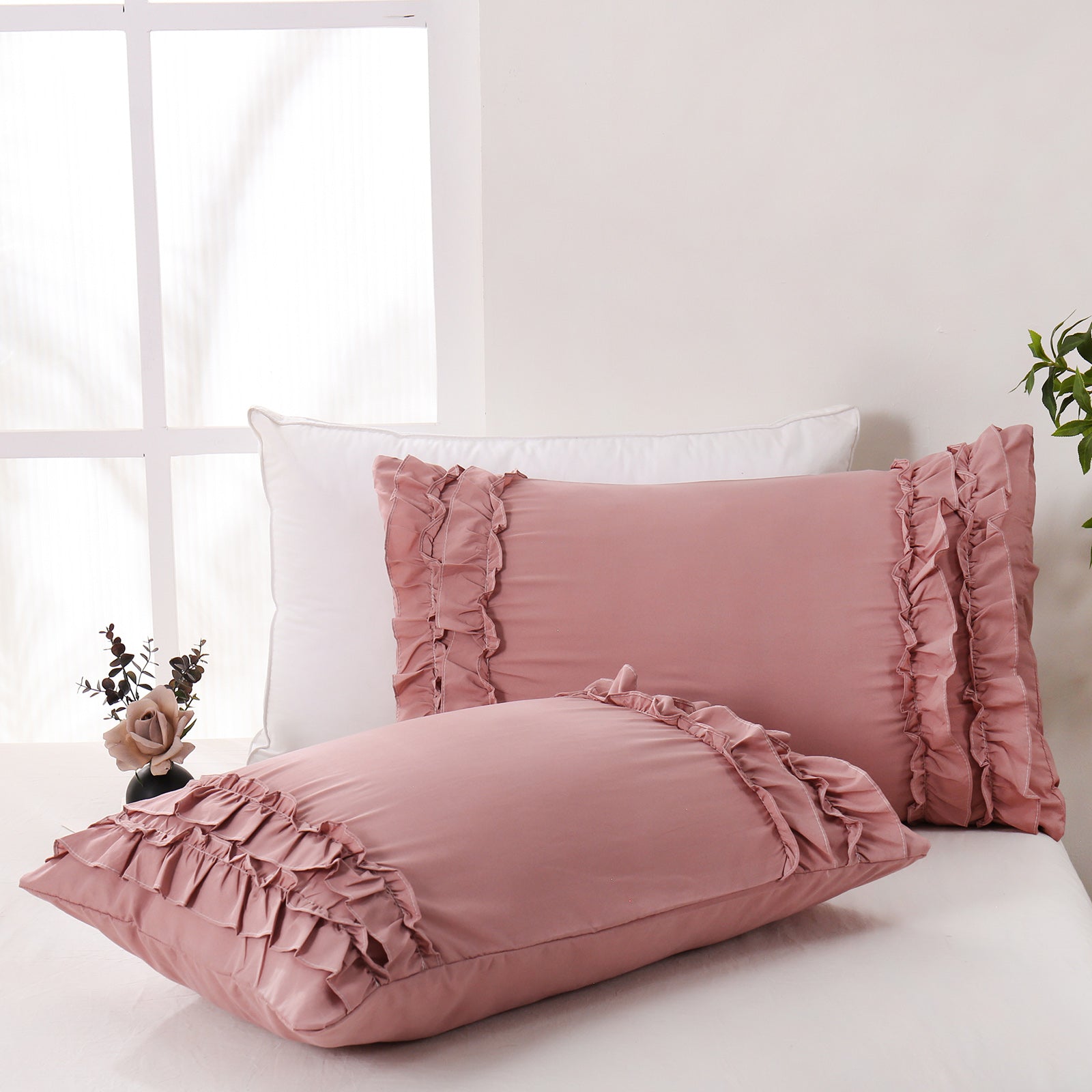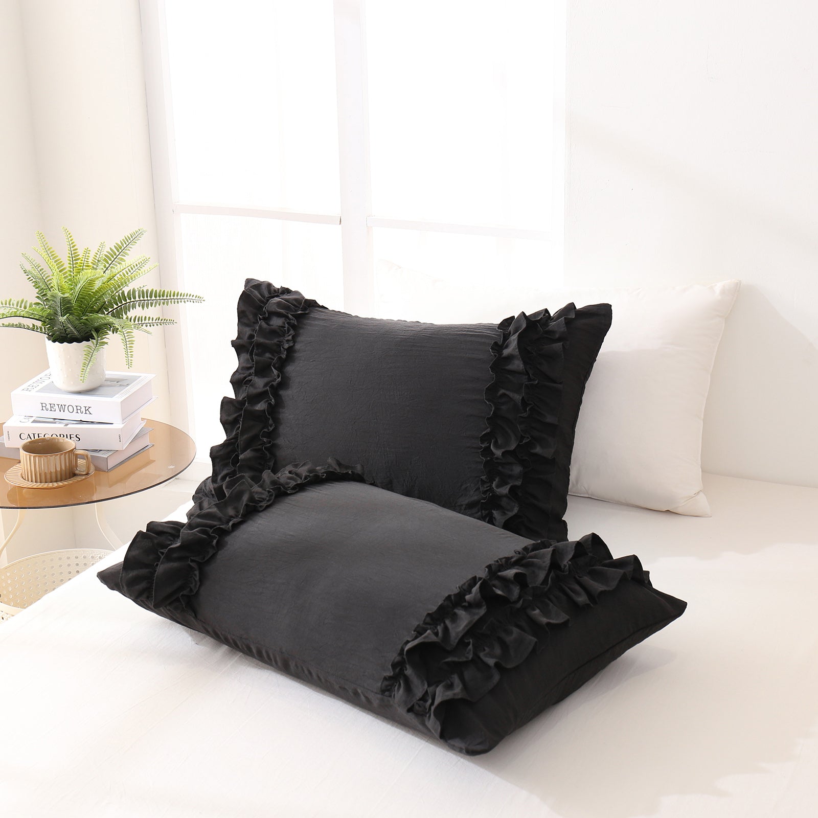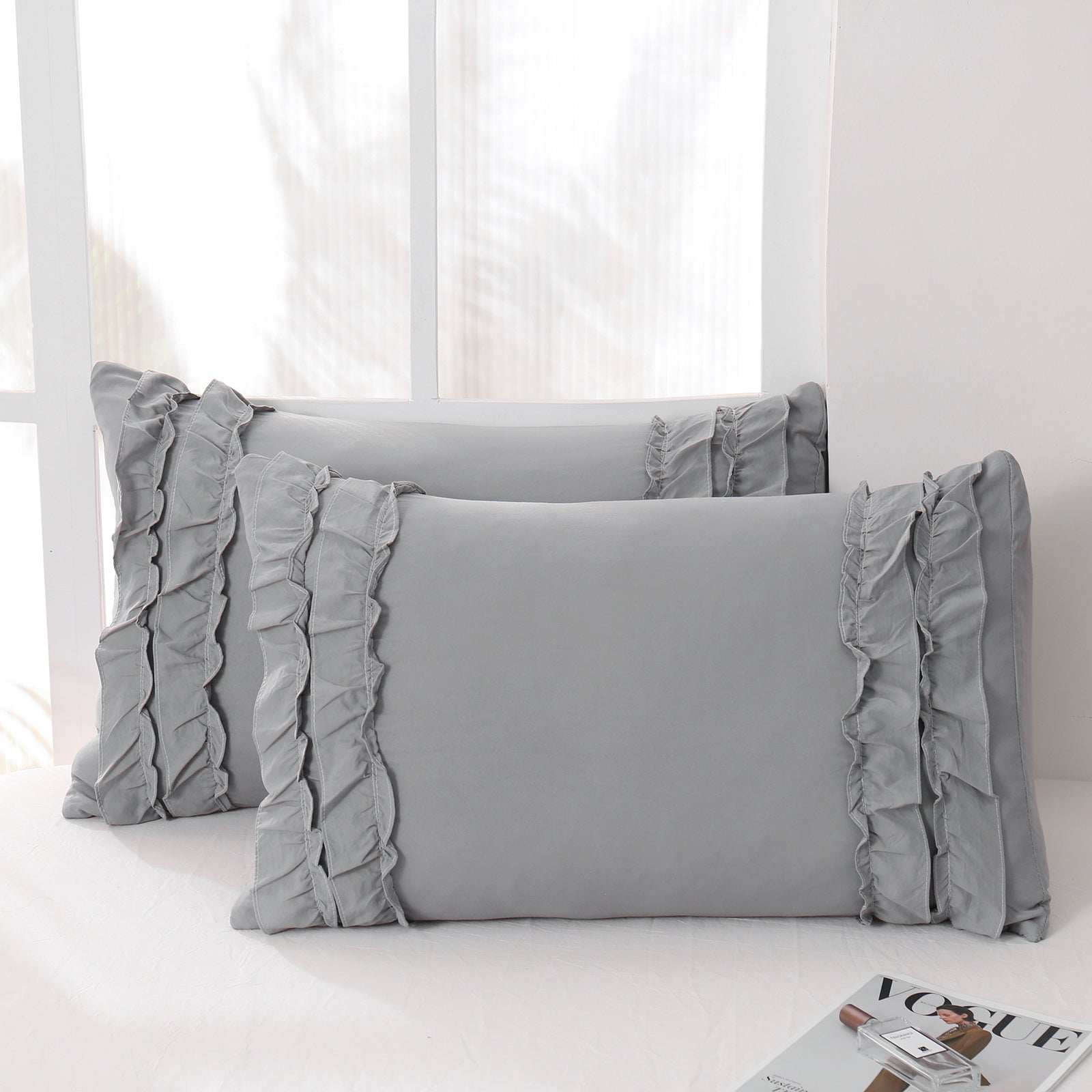 Add a romantic finishing touch to your bed with these Ruffle Pillow Shams. Designed with double layer ruffles, they bring a soft French country vibe that feels elegant, cozy, and timeless. The ruffled trim adds texture and charm without looking overly heavy, making it easy to match boho, farmhouse, cottagecore, or minimalist bedrooms.