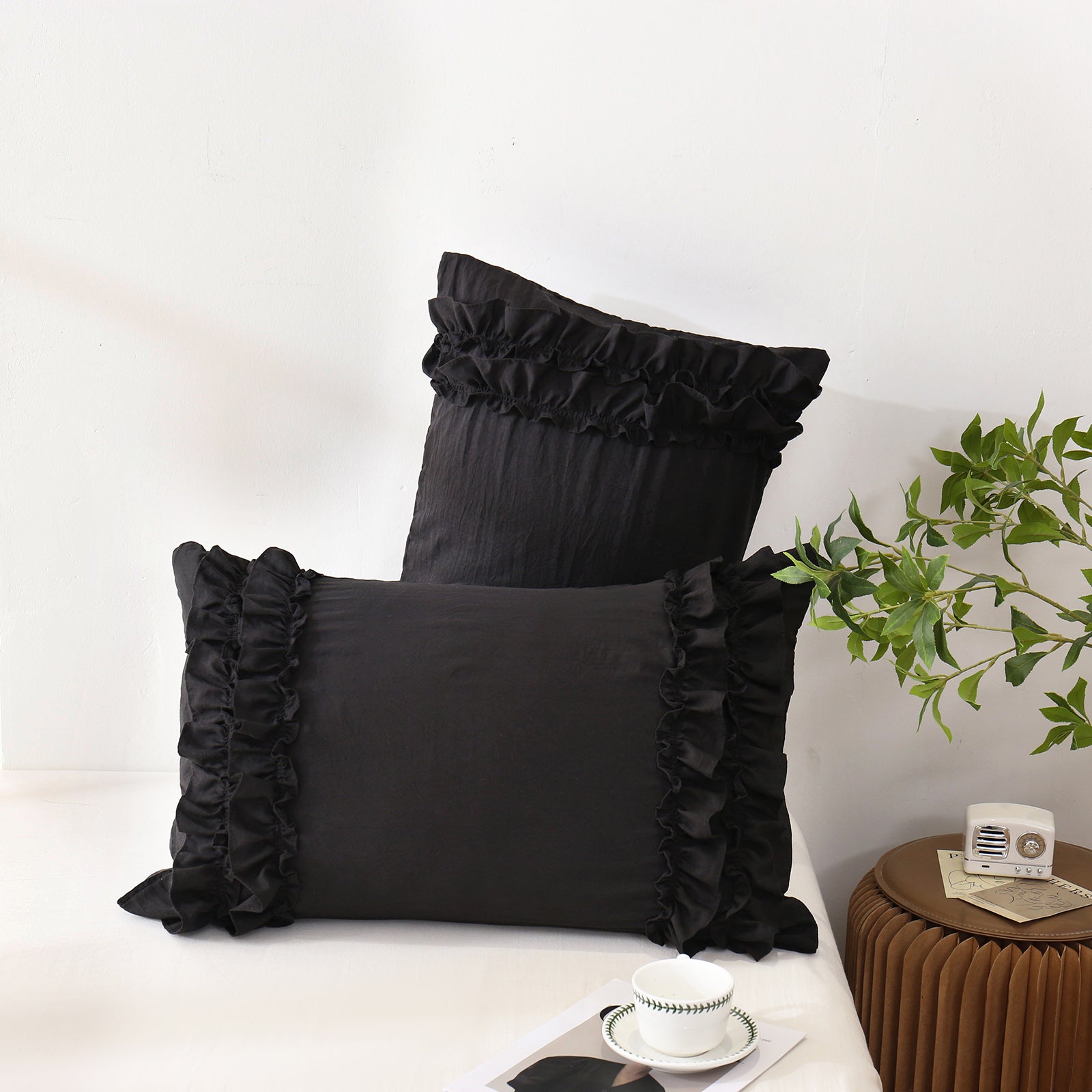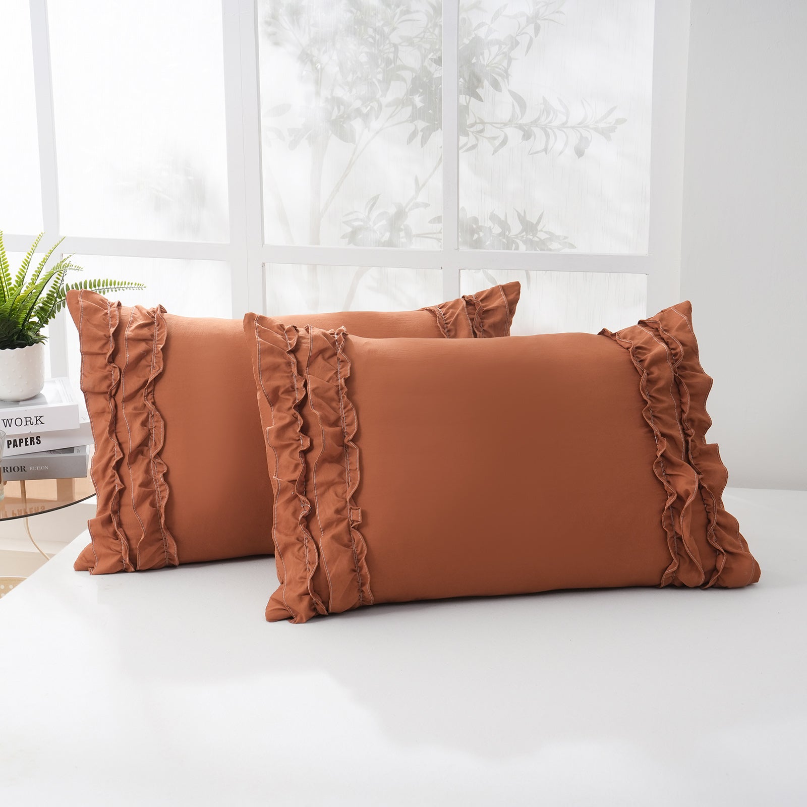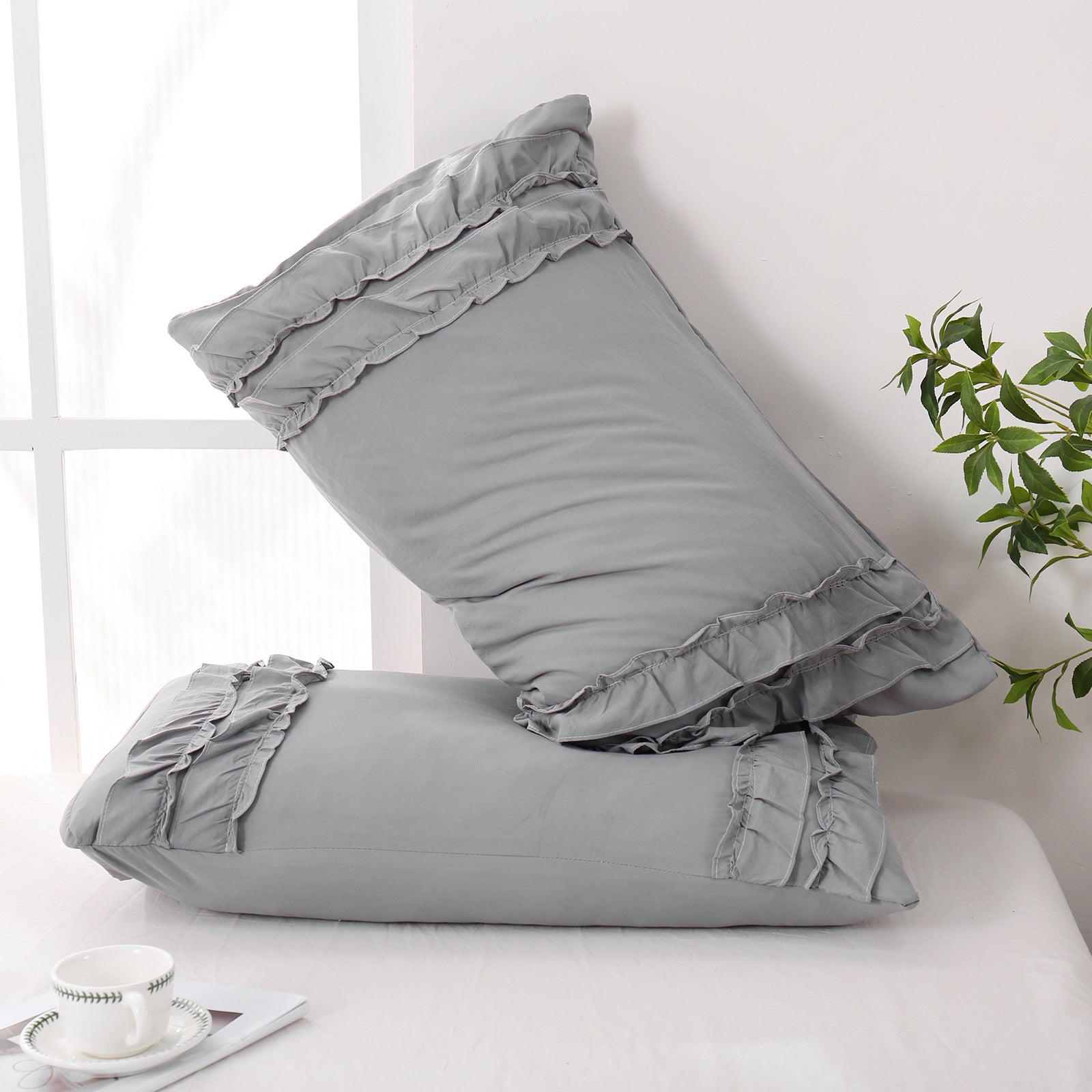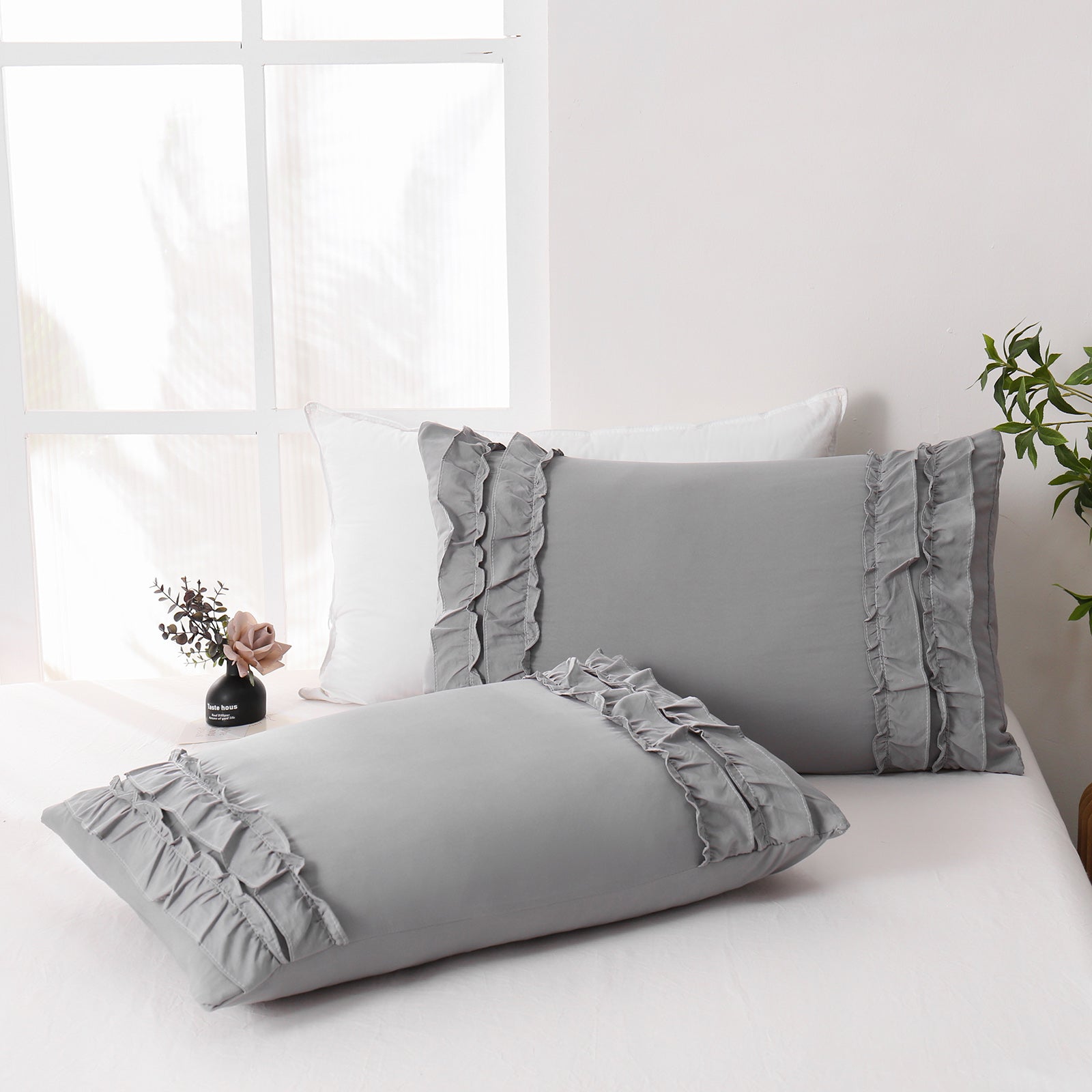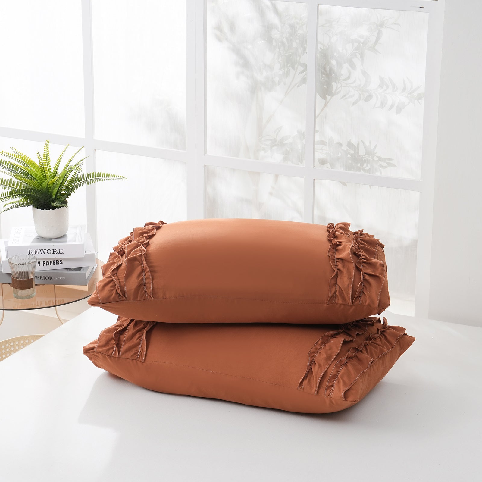 Add a romantic finishing touch to your bed with these Ruffle Pillow Shams. Designed with double layer ruffles, they bring a soft French country vibe that feels elegant, cozy, and timeless. The ruffled trim adds texture and charm without looking overly heavy, making it easy to match boho, farmhouse, cottagecore, or minimalist bedrooms.