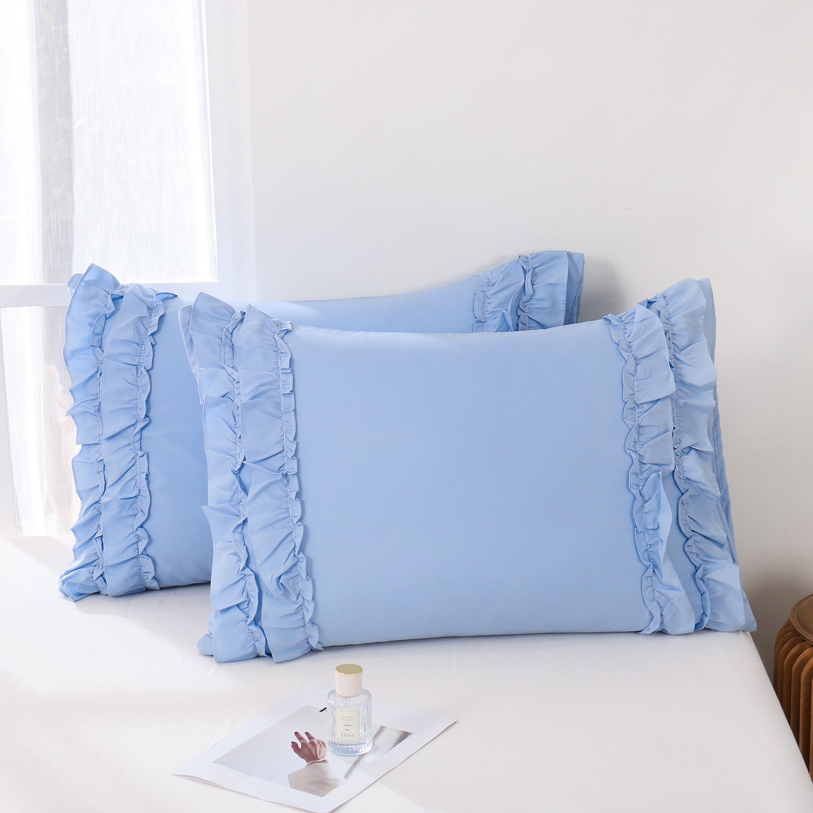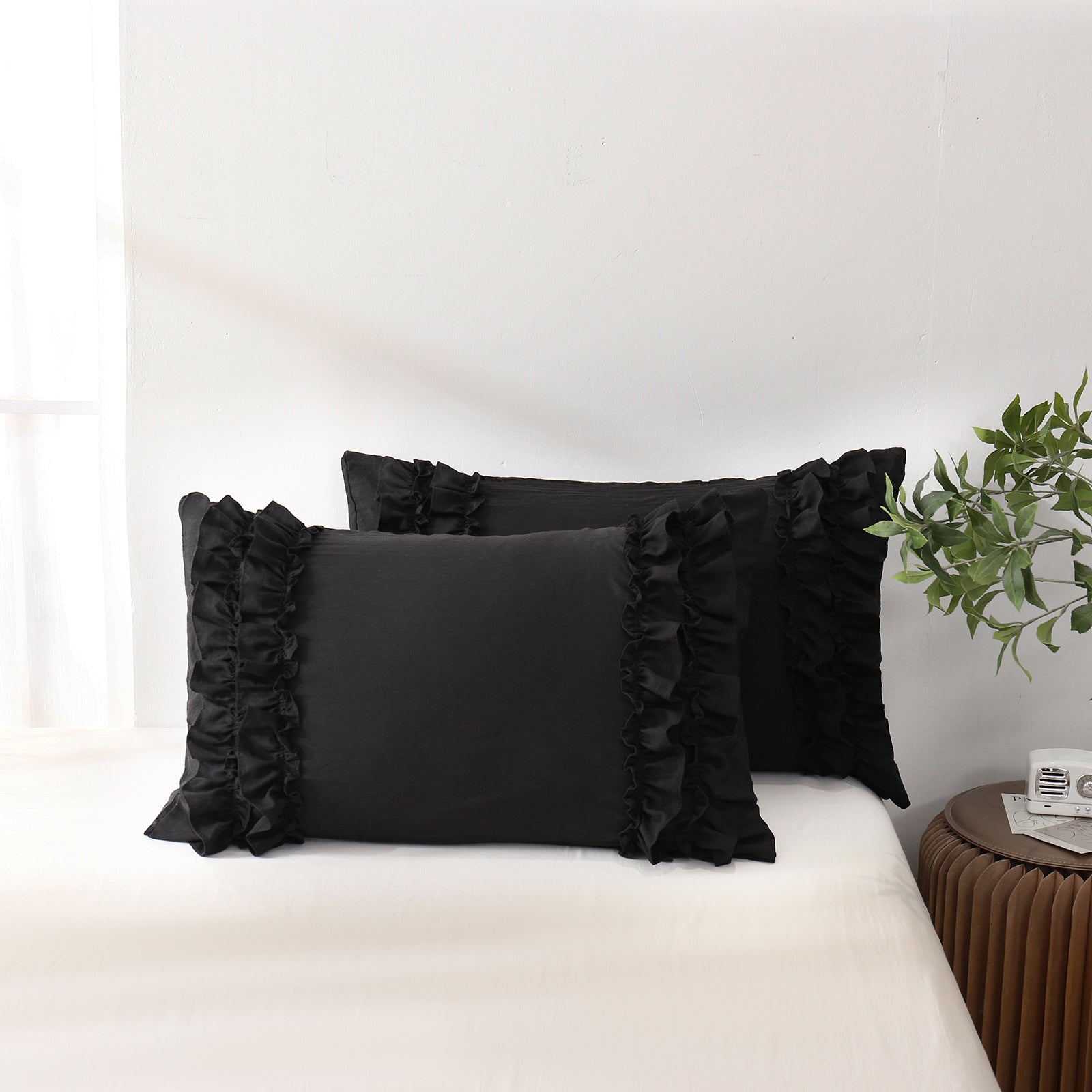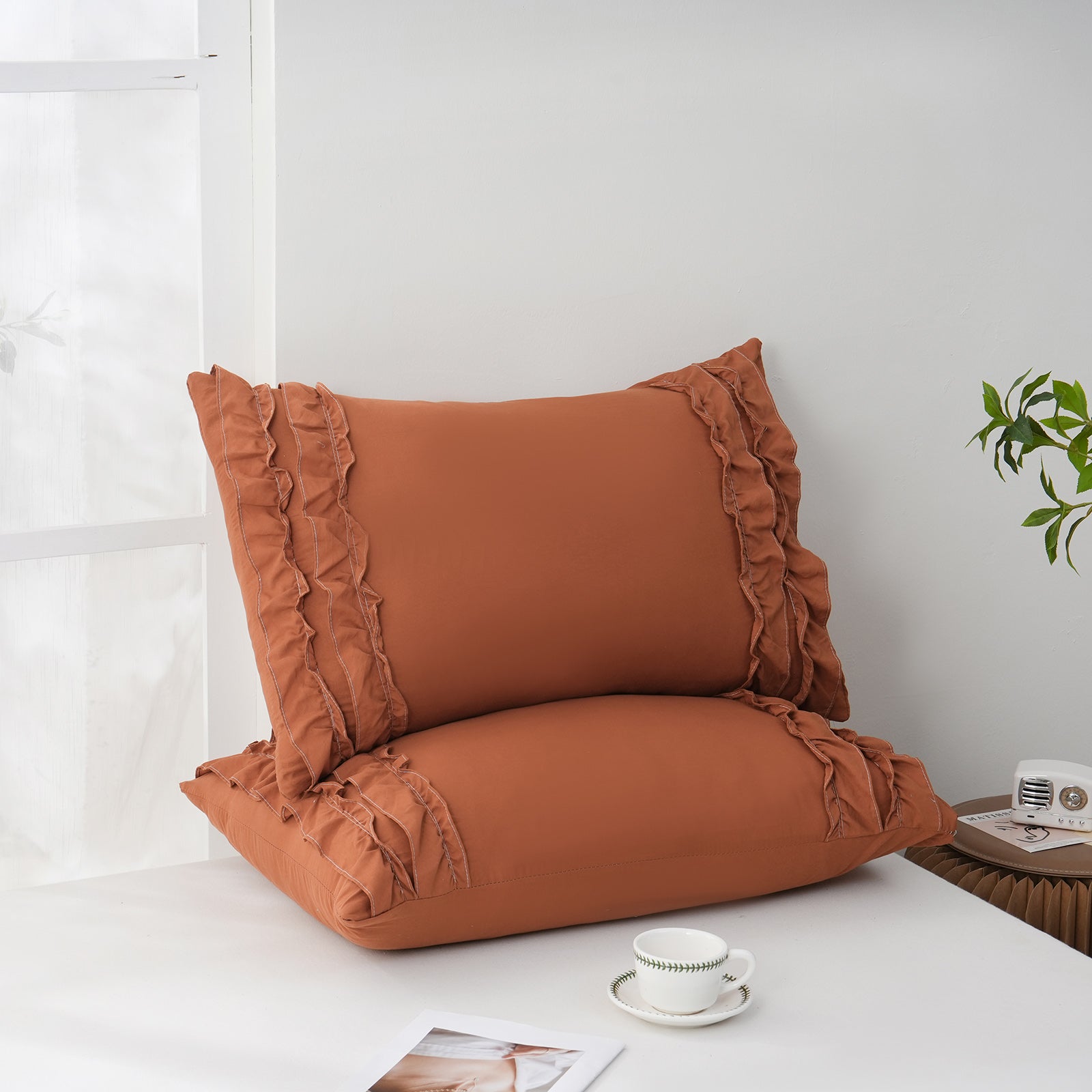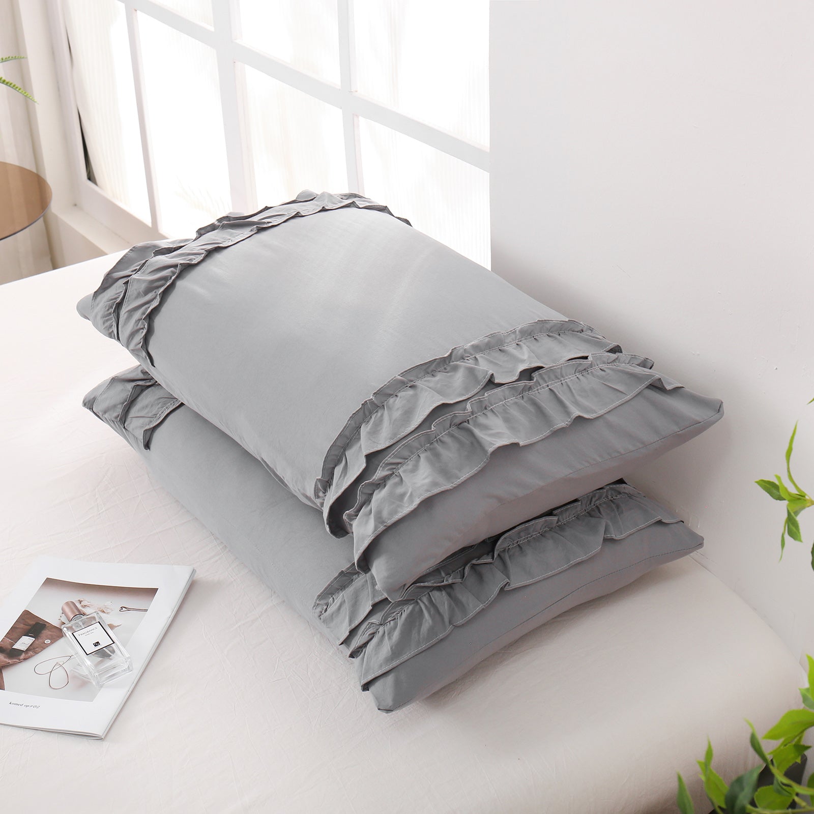 Add a romantic finishing touch to your bed with these Ruffle Pillow Shams. Designed with double layer ruffles, they bring a soft French country vibe that feels elegant, cozy, and timeless. The ruffled trim adds texture and charm without looking overly heavy, making it easy to match boho, farmhouse, cottagecore, or minimalist bedrooms.