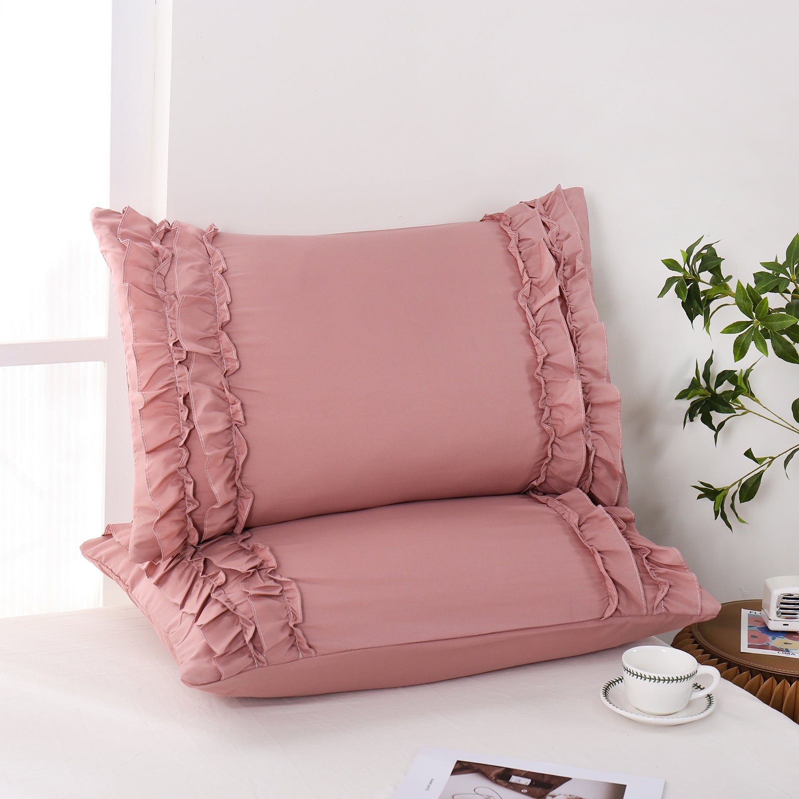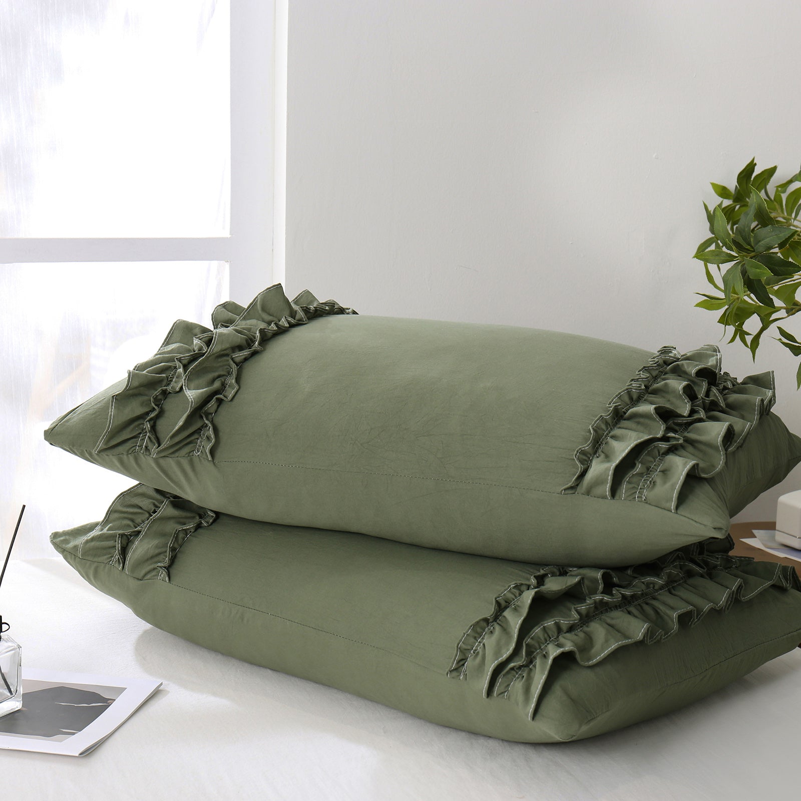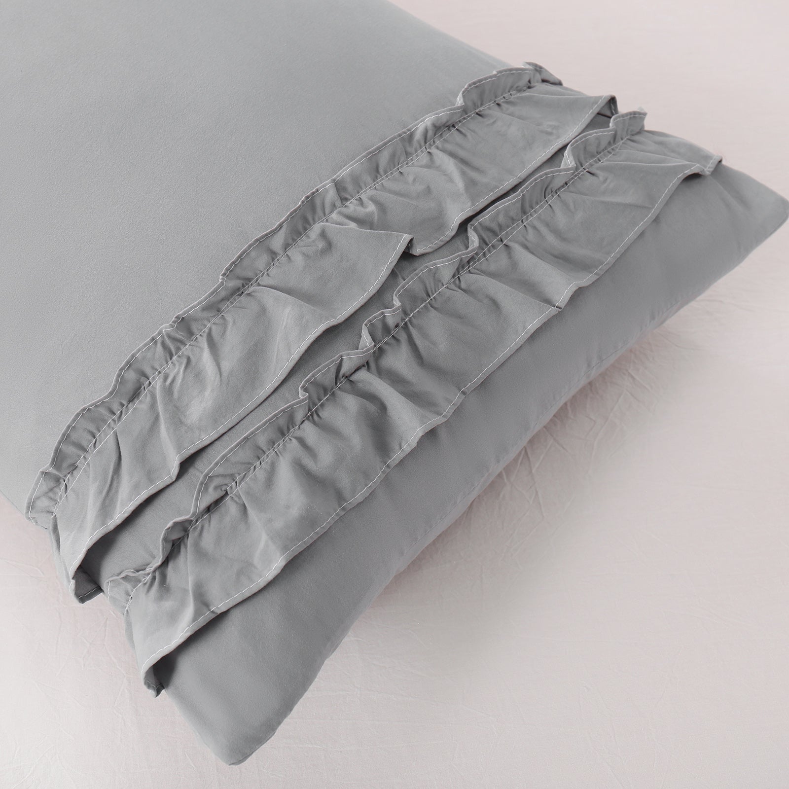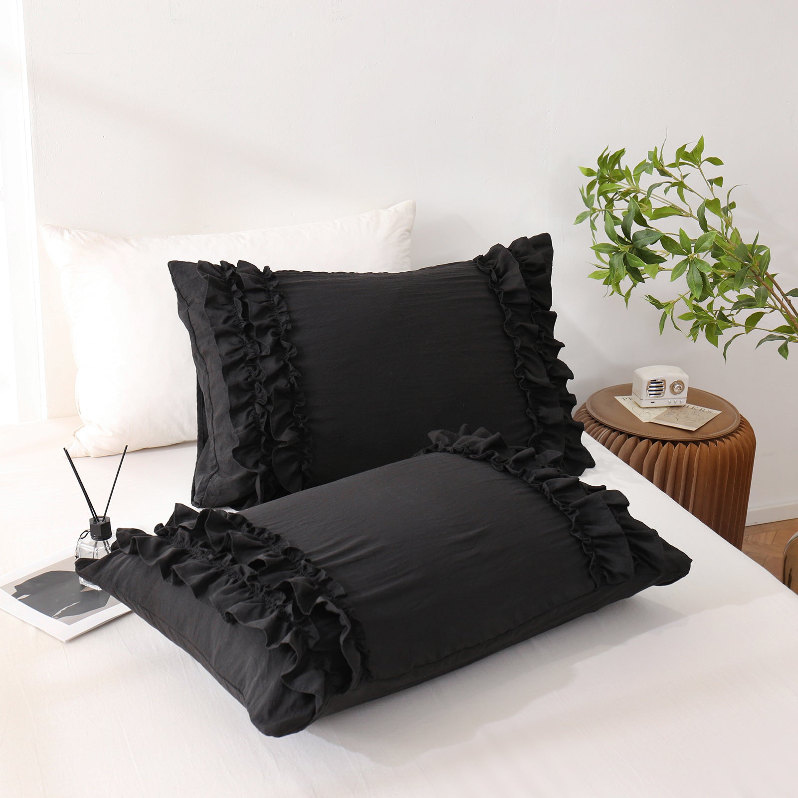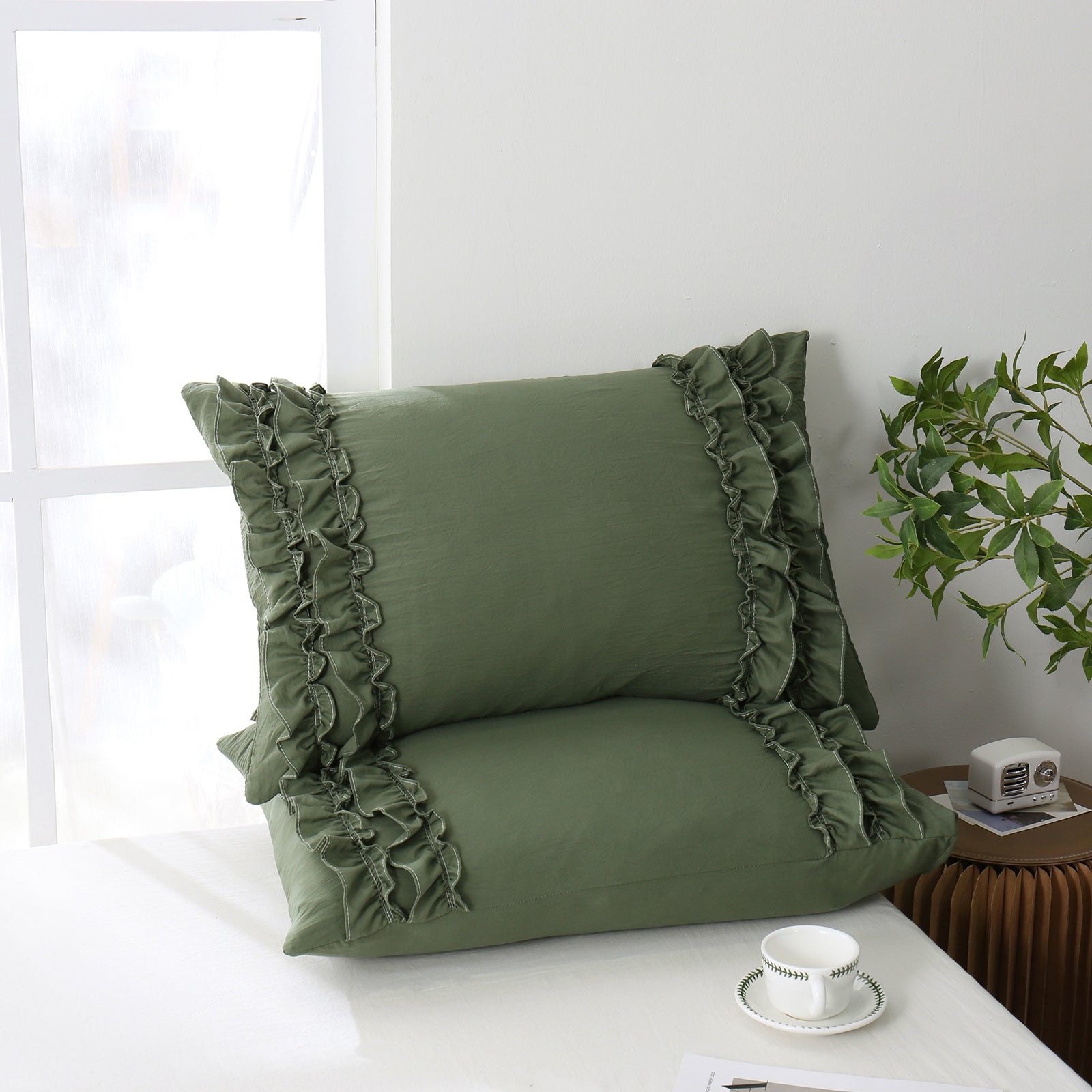 Add a romantic finishing touch to your bed with these Ruffle Pillow Shams. Designed with double layer ruffles, they bring a soft French country vibe that feels elegant, cozy, and timeless. The ruffled trim adds texture and charm without looking overly heavy, making it easy to match boho, farmhouse, cottagecore, or minimalist bedrooms.