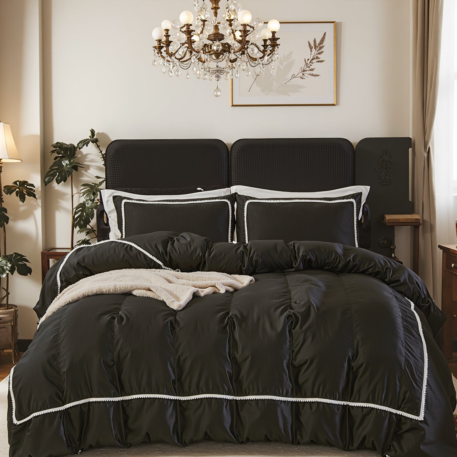 Filled with soft microfiber, the comforter is fluffy yet lightweight, perfect for year-round use—warm in winter and cool in summer. For convenience, the set is machine washable and designed to retain its softness and shape after multiple washes.