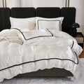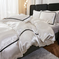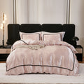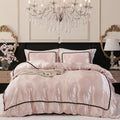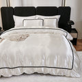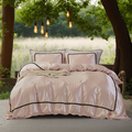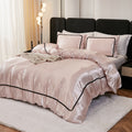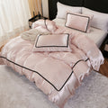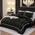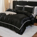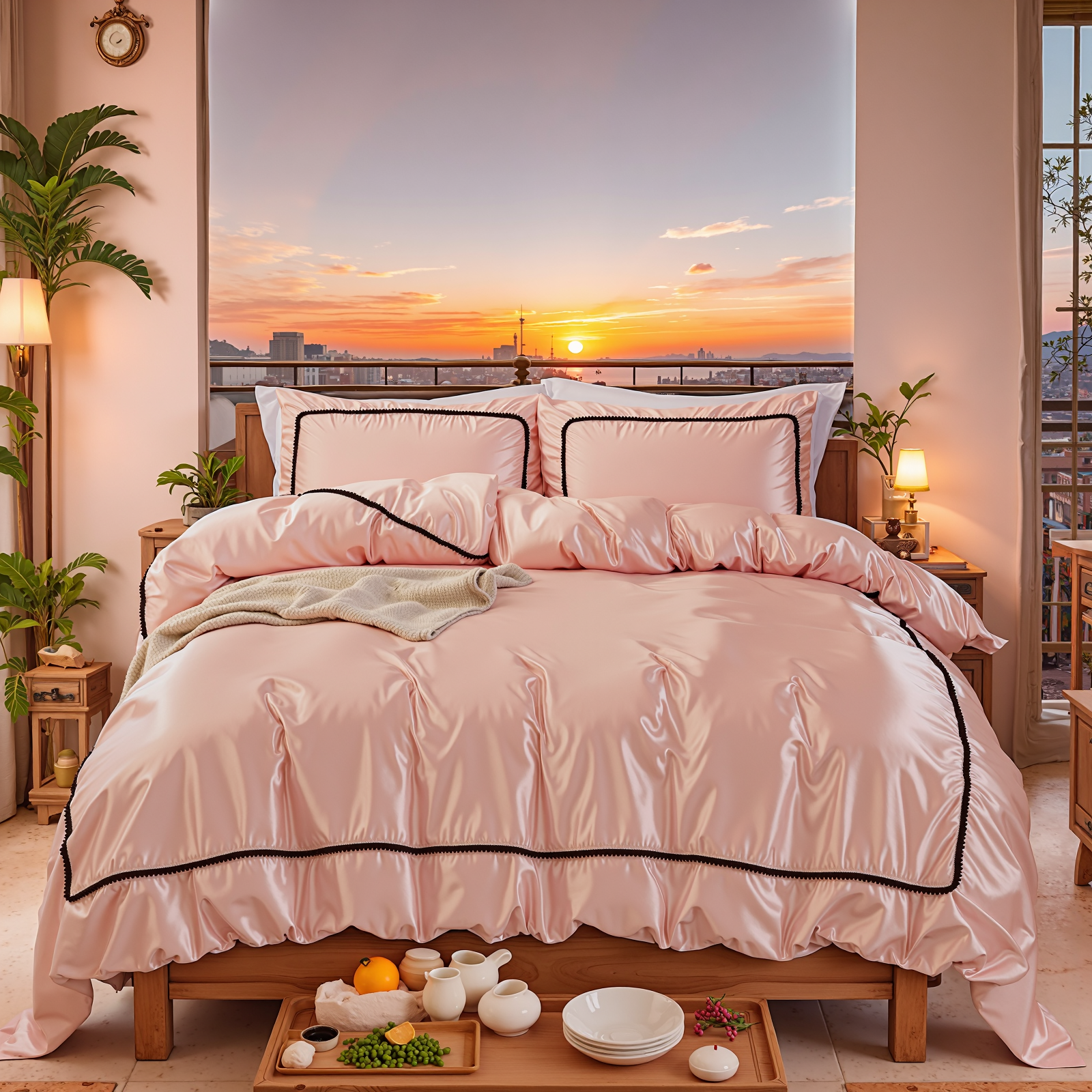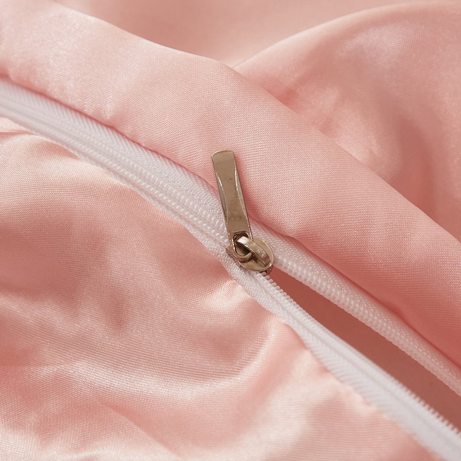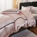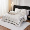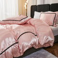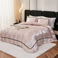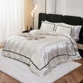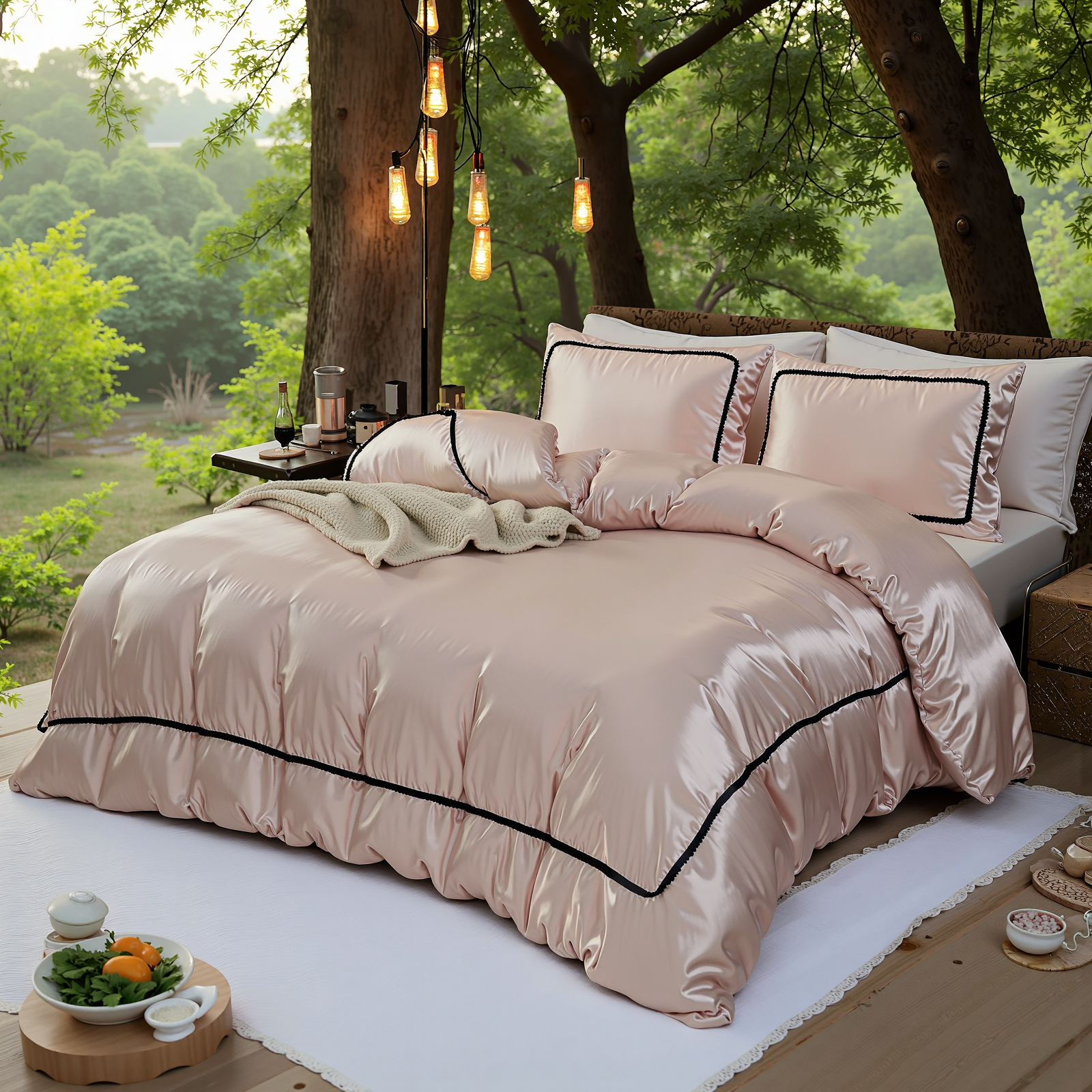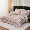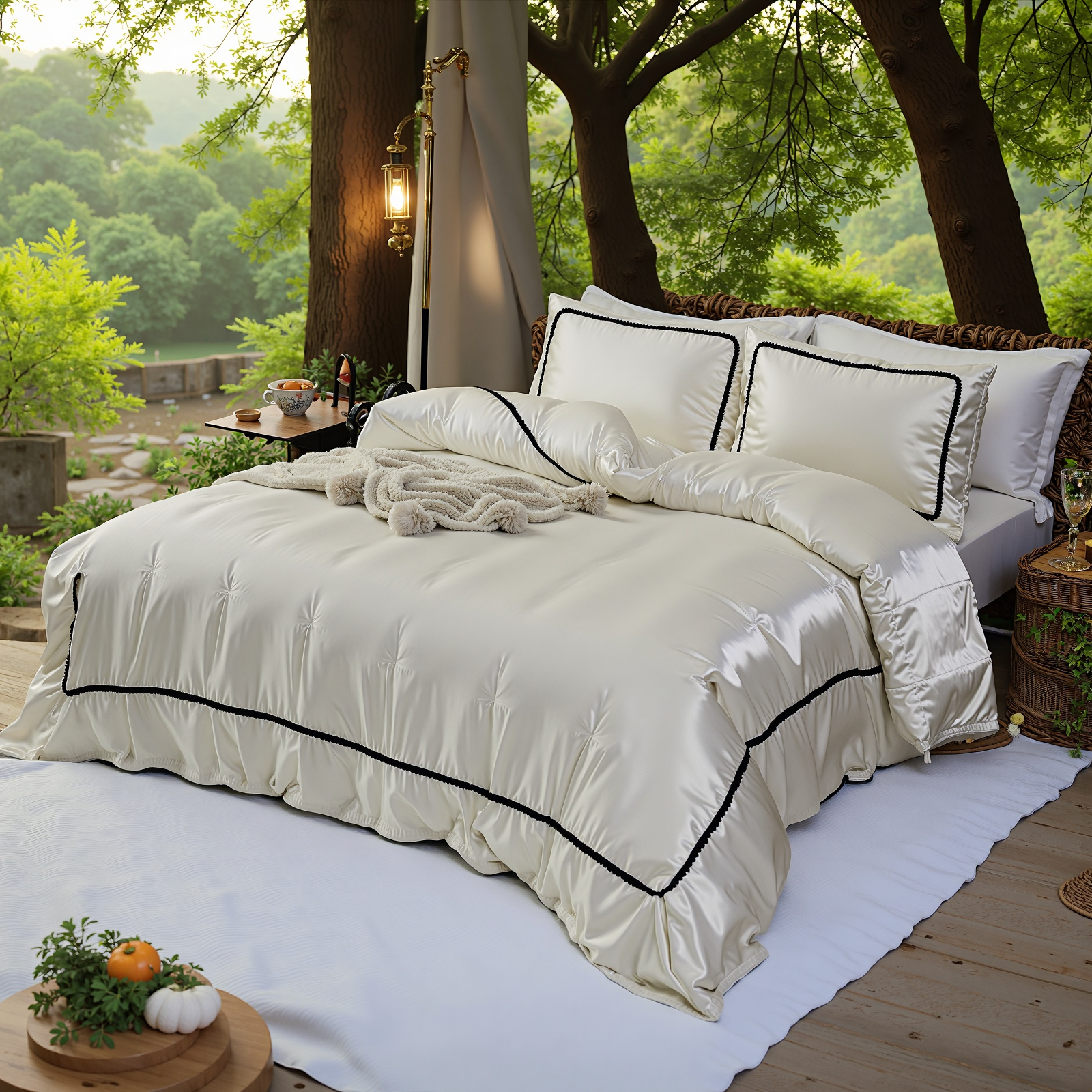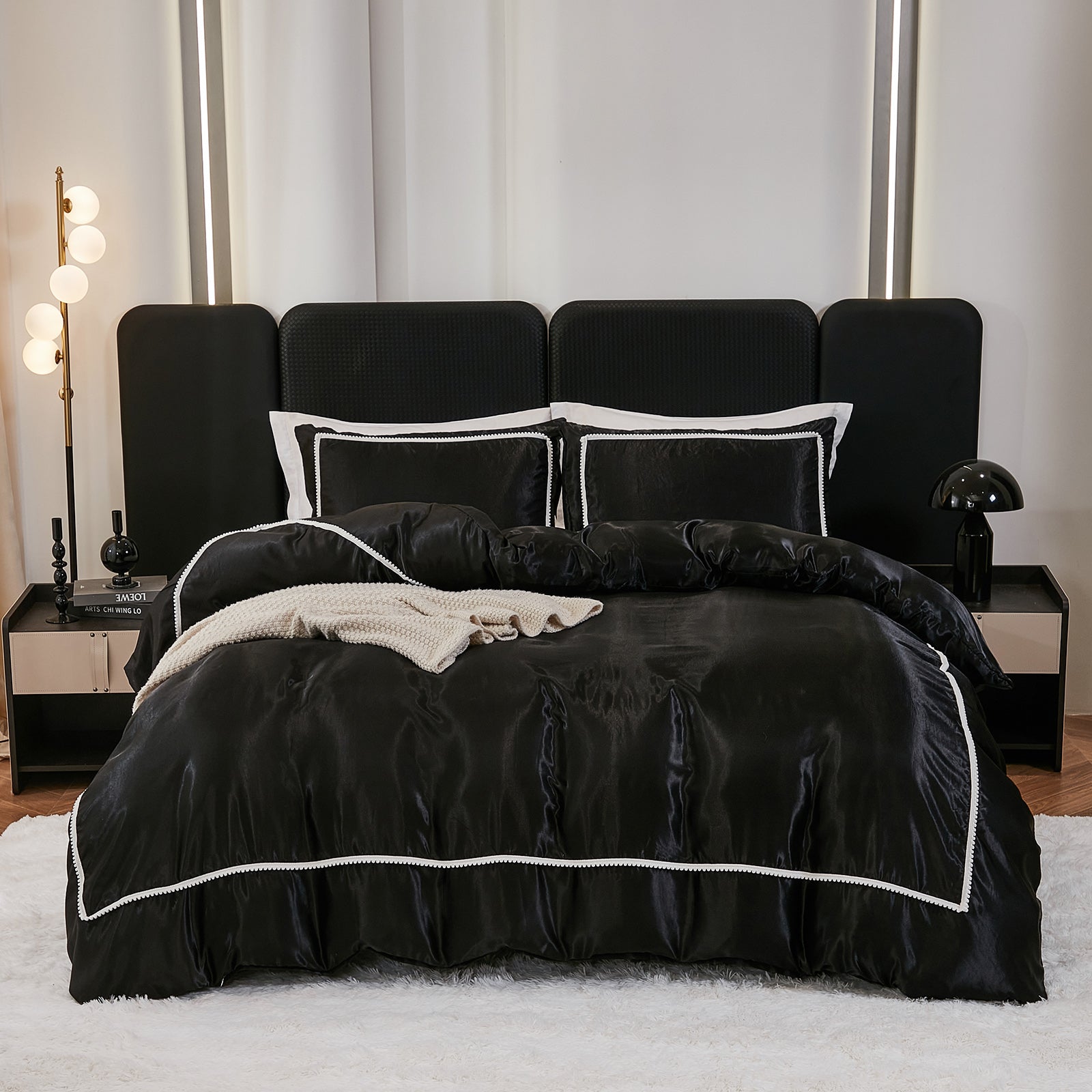 Made from luxurious satin fabric, the comforter has a silky smooth texture with a glossy finish, bringing a sophisticated look to any room. The unique square frame with mini pom pom trim adds playful elegance, making this set both chic and timeless.