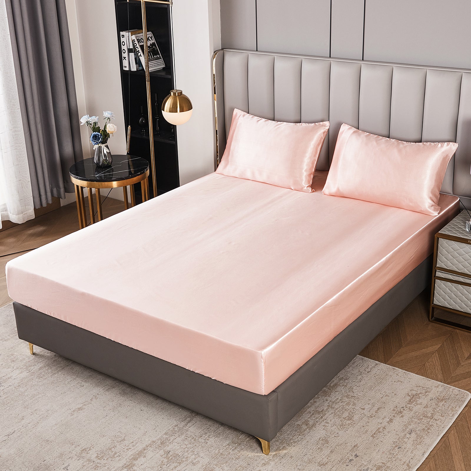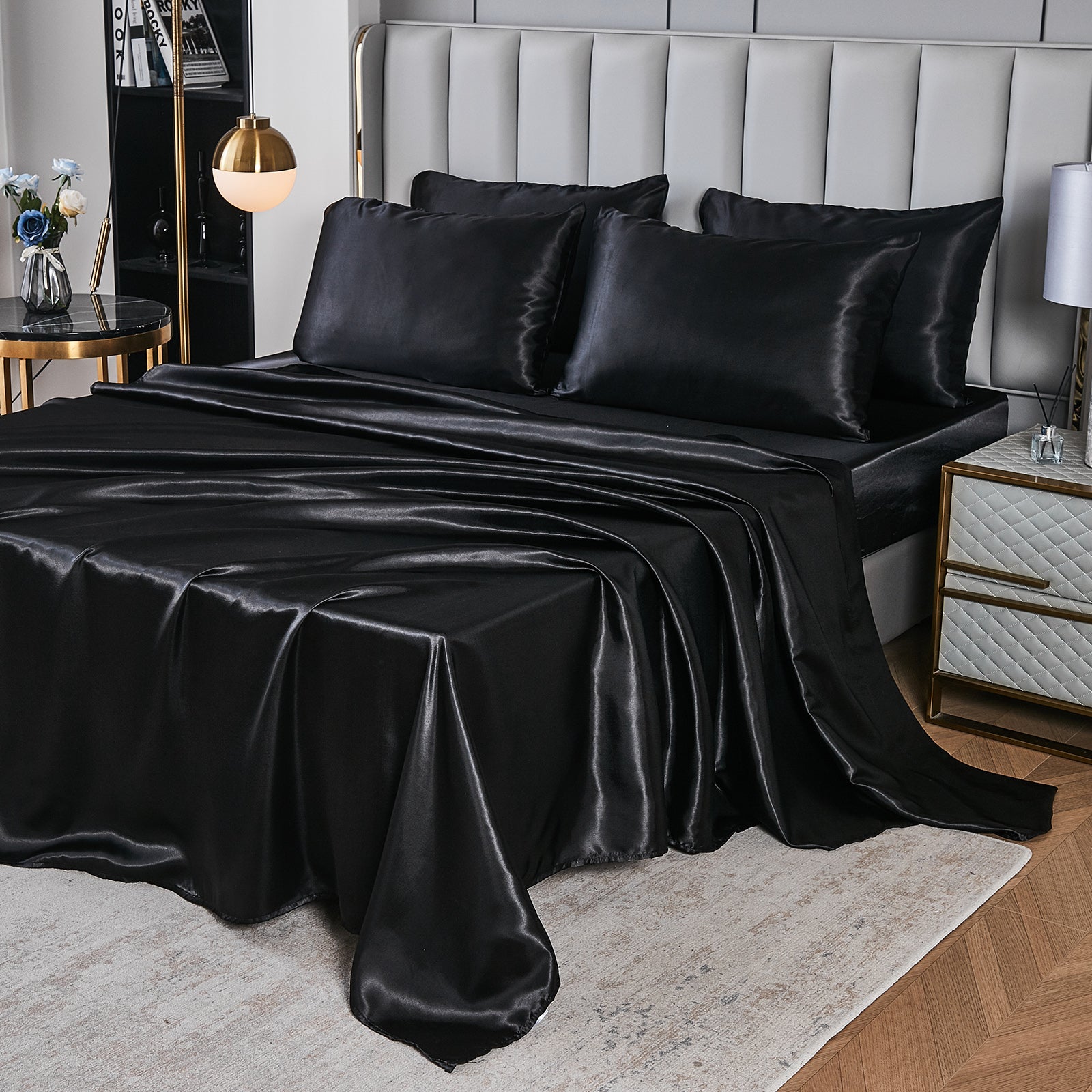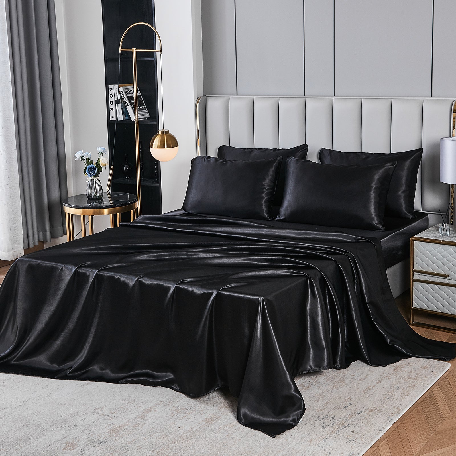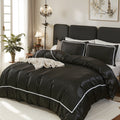 Enhance your bedroom with the Satin Comforter Set Bed in a Bag, a 7-piece collection designed for both elegance and comfort. Each set includes a comforter, flat sheet, fitted sheet with a 16" pocket, 2 pom pom pillowcases, and 2 solid pillowcases—everything you need for a coordinated bedding upgrade.