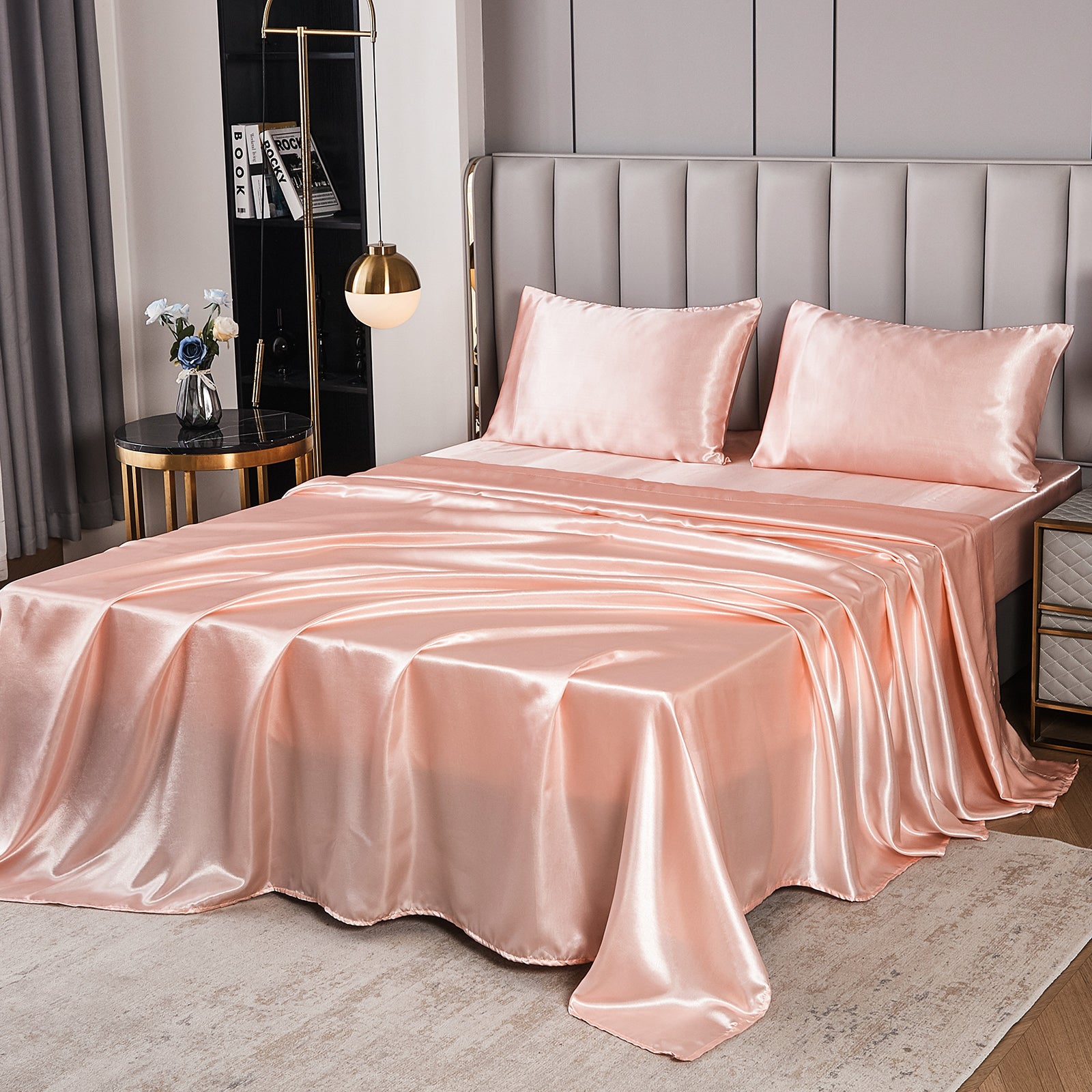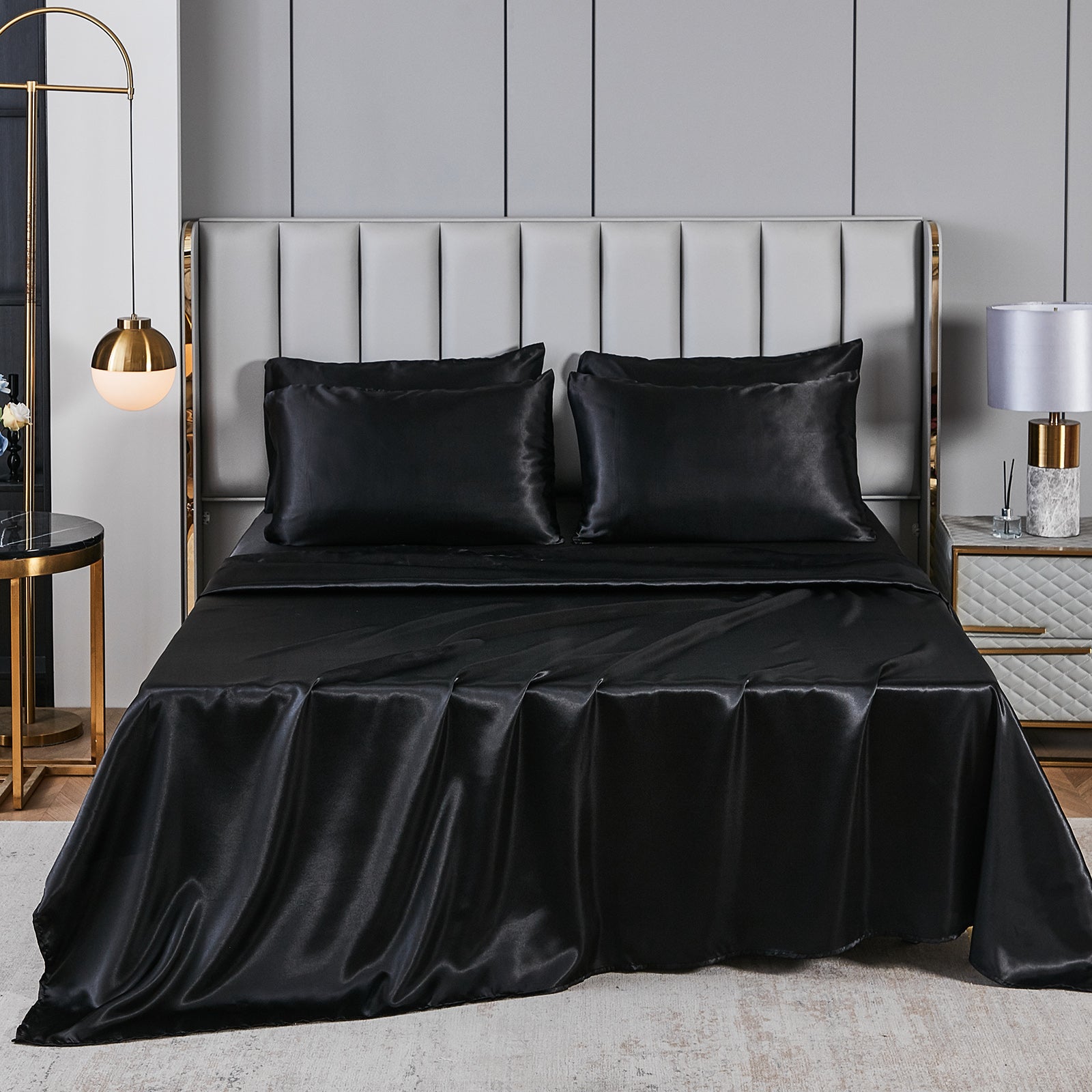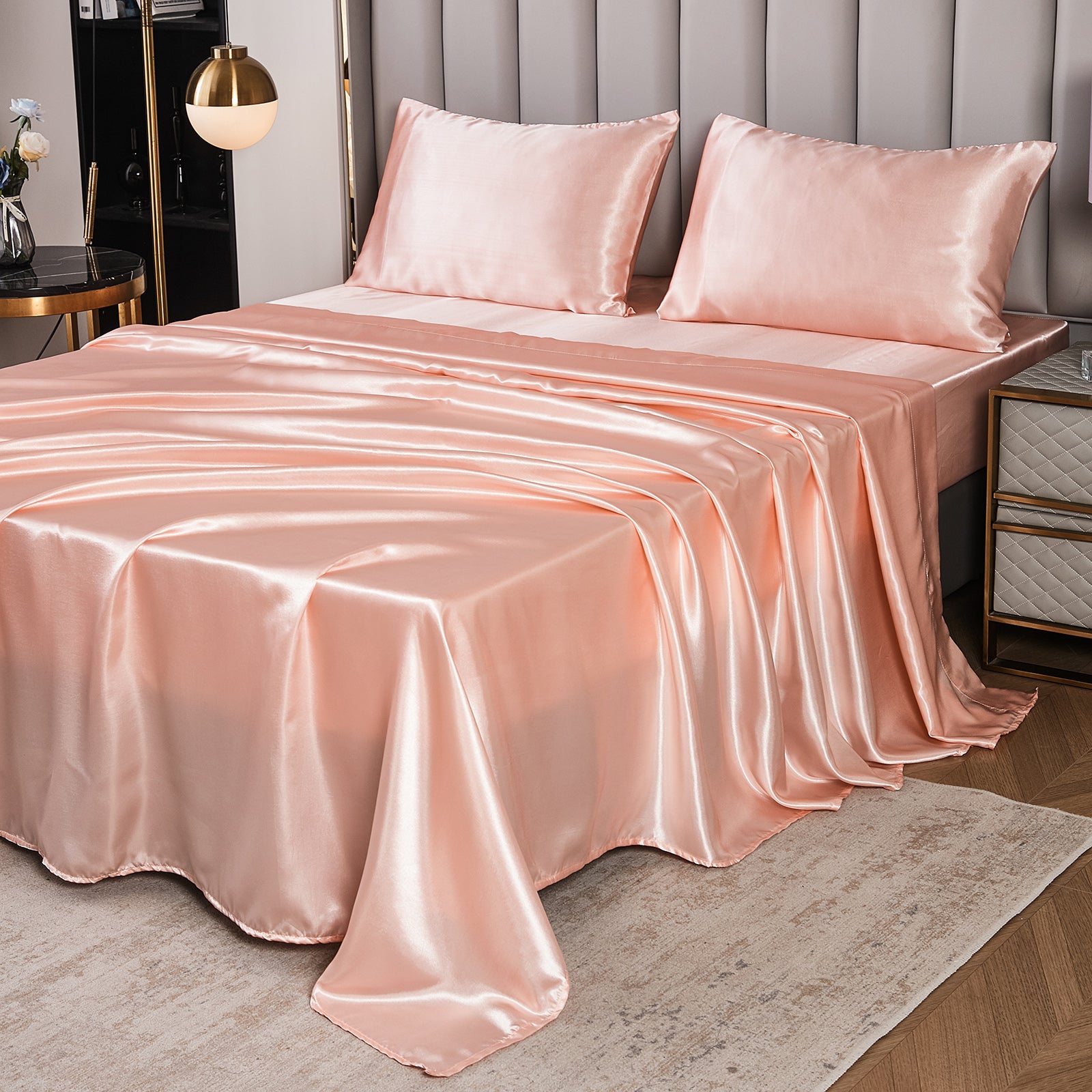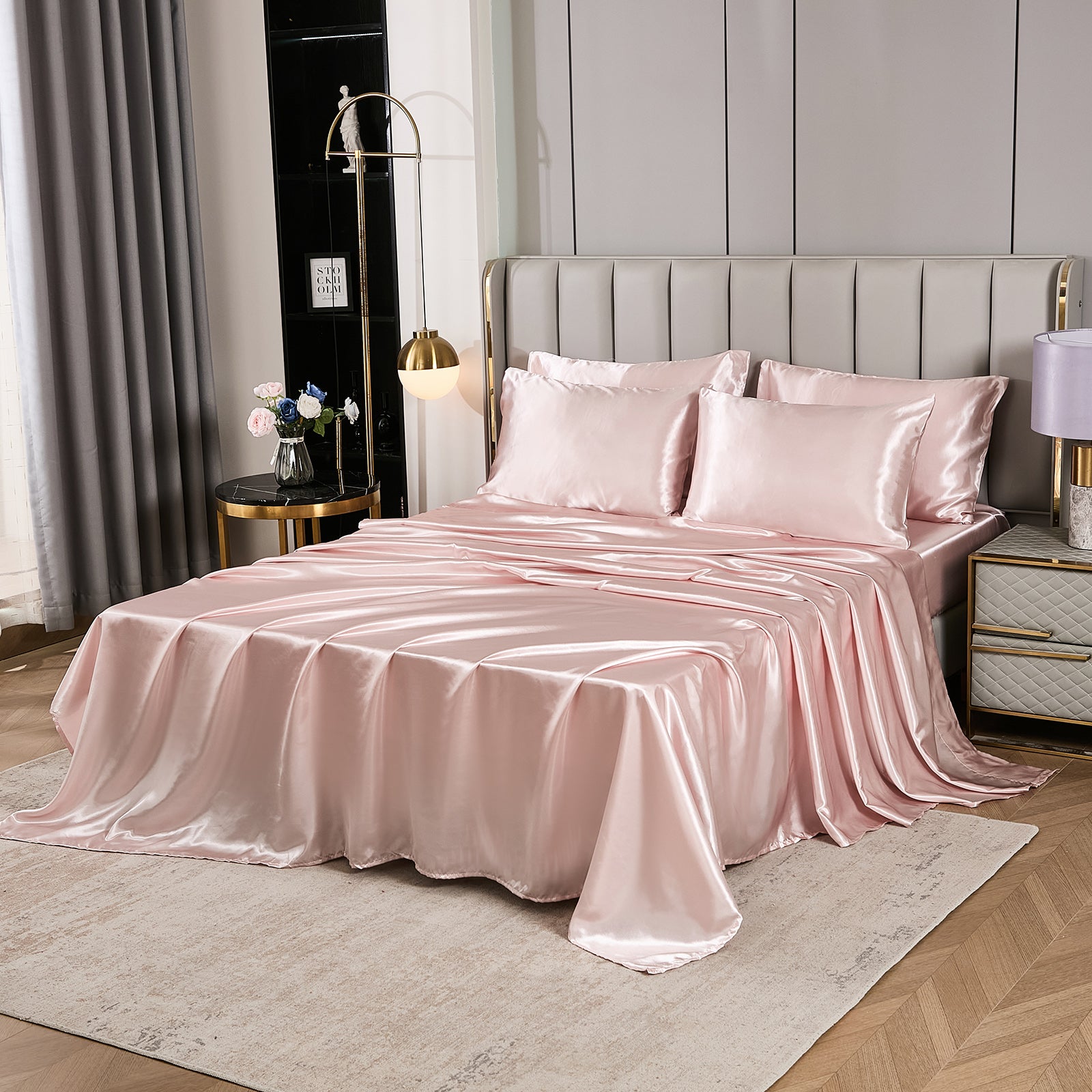 Enhance your bedroom with the Satin Comforter Set Bed in a Bag, a 7-piece collection designed for both elegance and comfort. Each set includes a comforter, flat sheet, fitted sheet with a 16" pocket, 2 pom pom pillowcases, and 2 solid pillowcases—everything you need for a coordinated bedding upgrade.