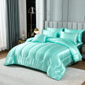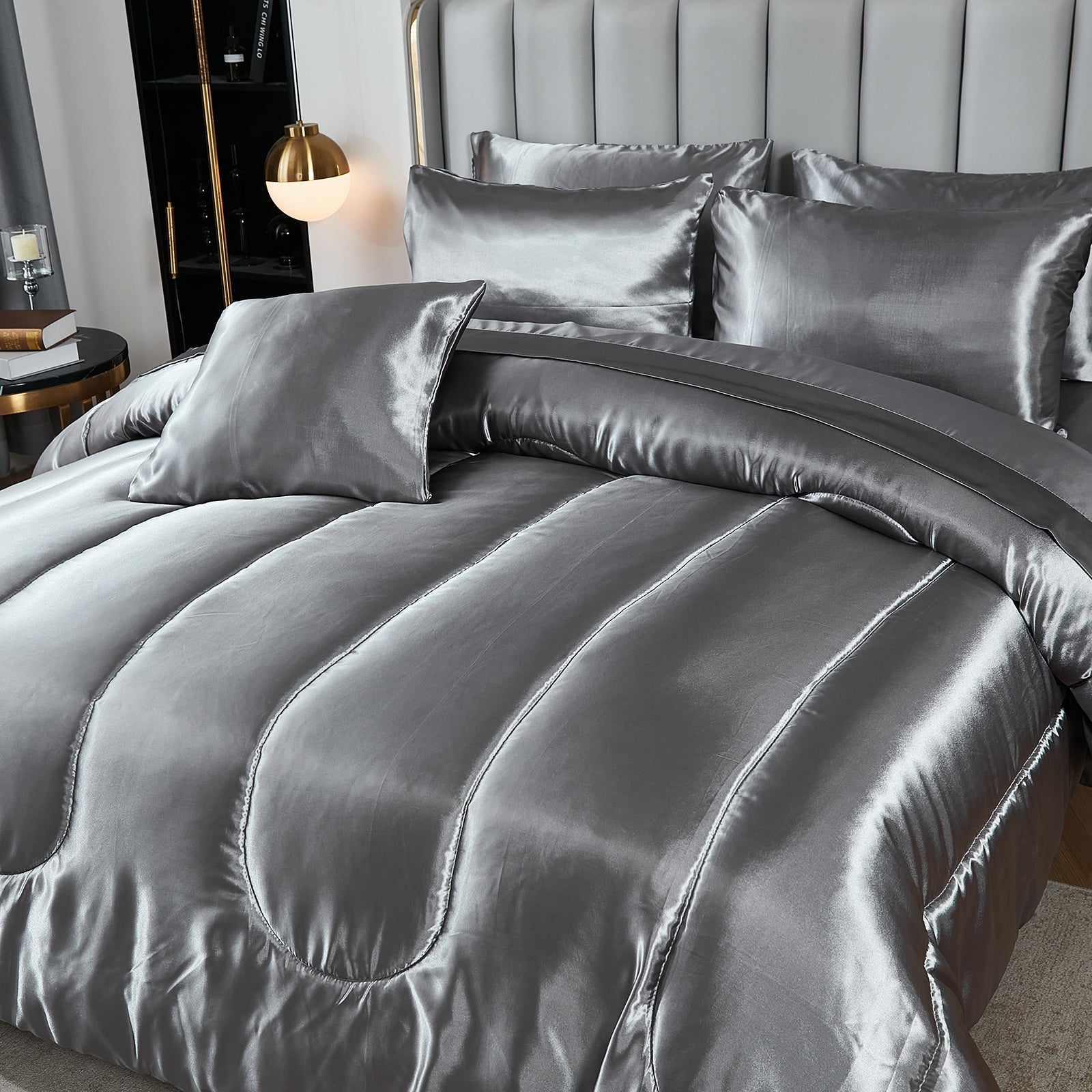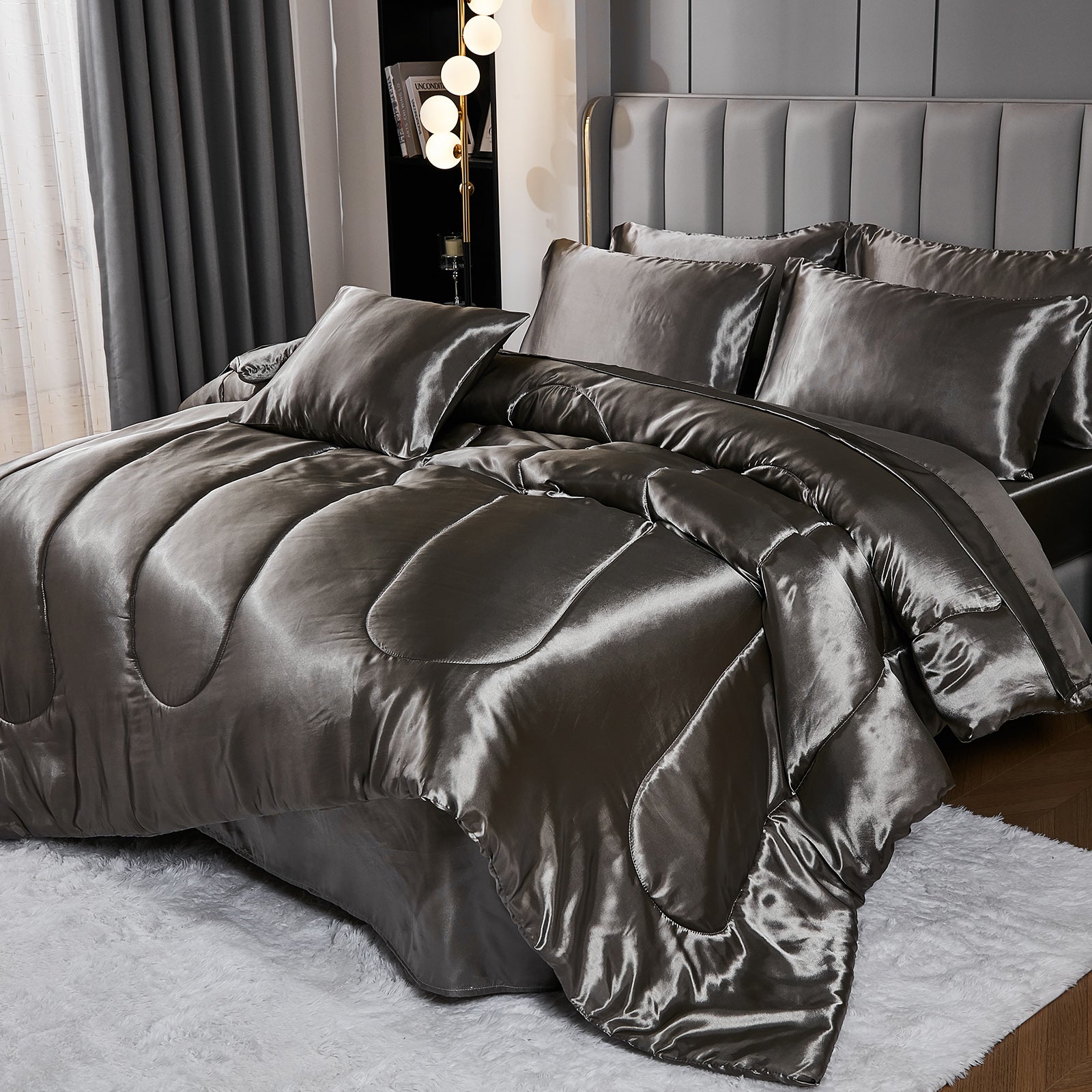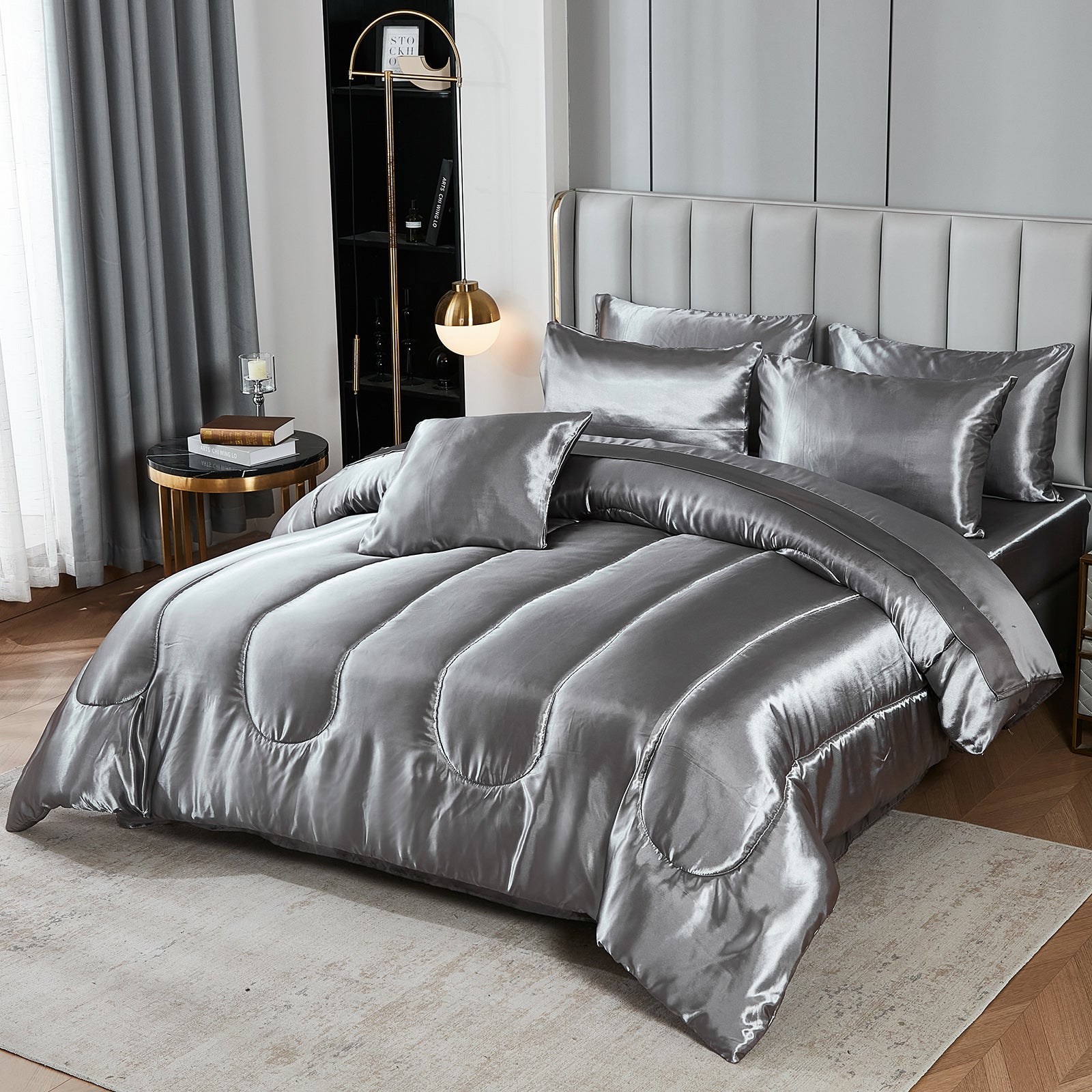 Satin Comforter Set with Sheet Set – 8-Piece Silk-Like Bed in a Bag, Luxury Soft Microfiber Bedding with Cushion Cover