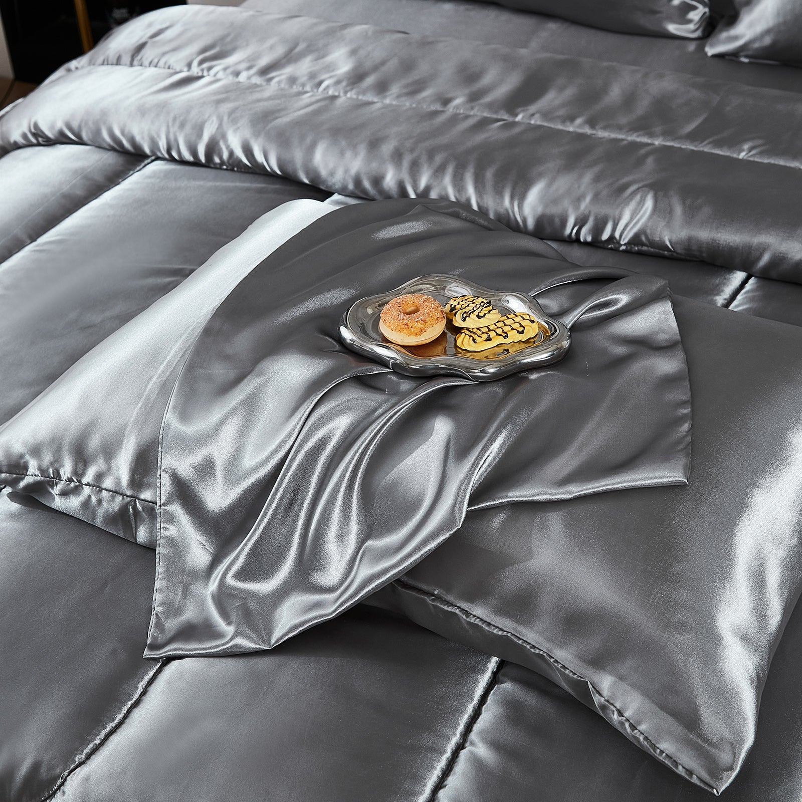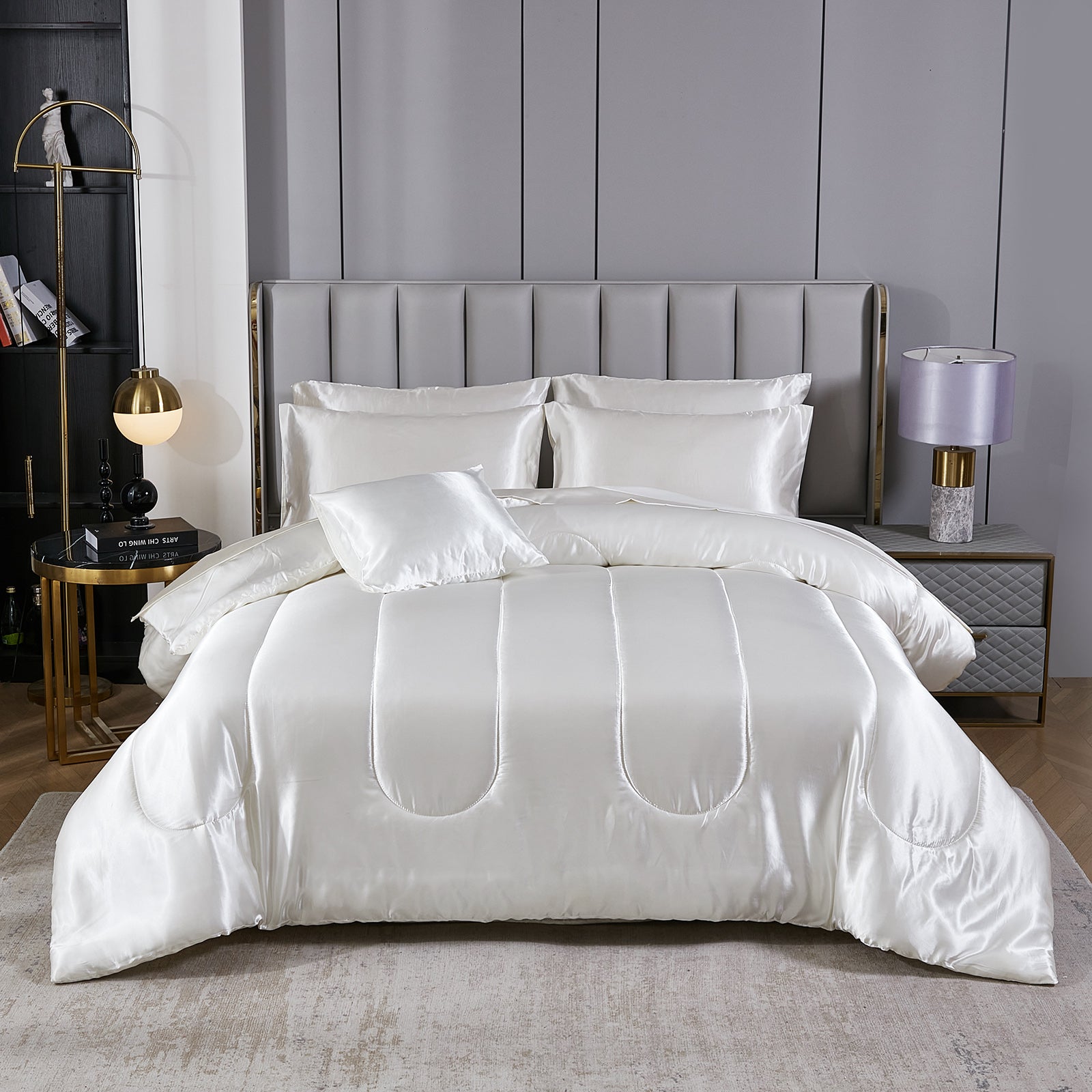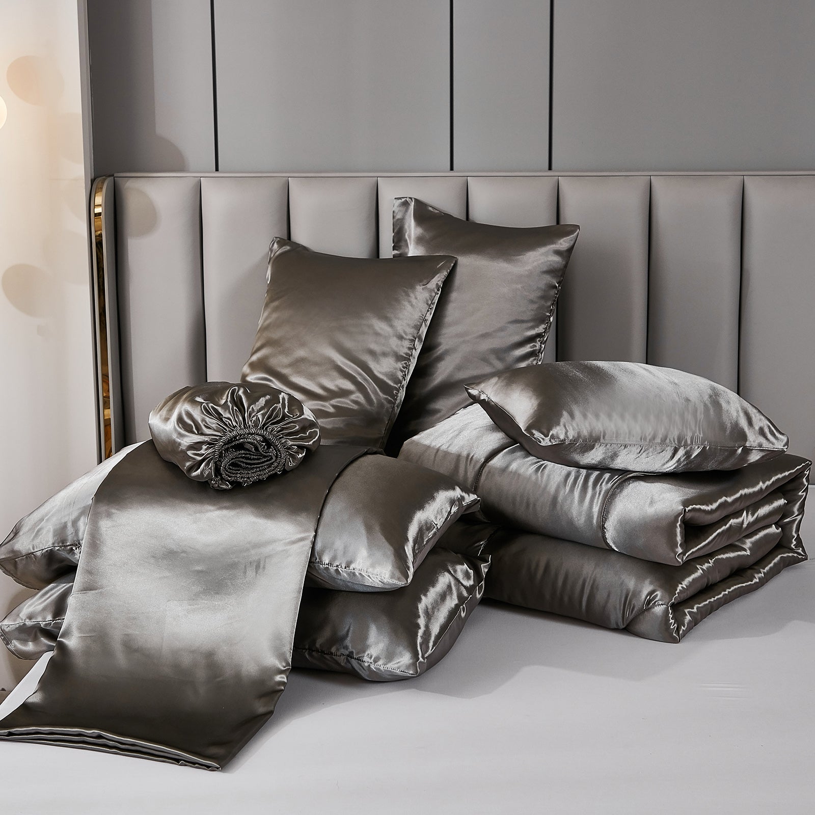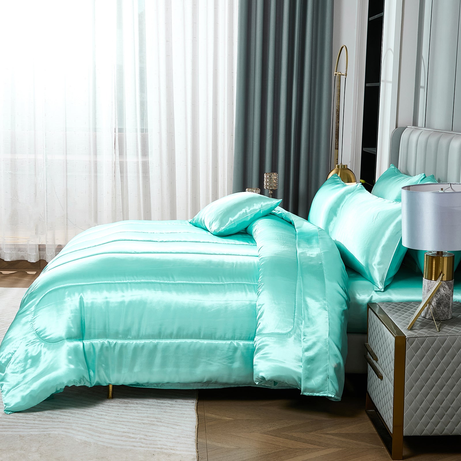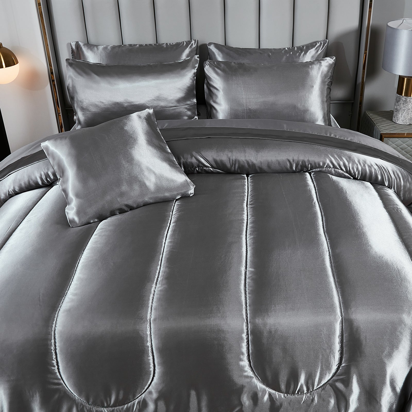 Bring elegance and comfort to your bedroom with the Satin Comforter Set with Sheet Set, a luxurious 8-piece bed-in-a-bag designed to create a refined and cozy sleeping environment. Crafted from silky satin microfiber, this bedding offers the smooth, lustrous texture of real silk while remaining durable and easy to care for.
