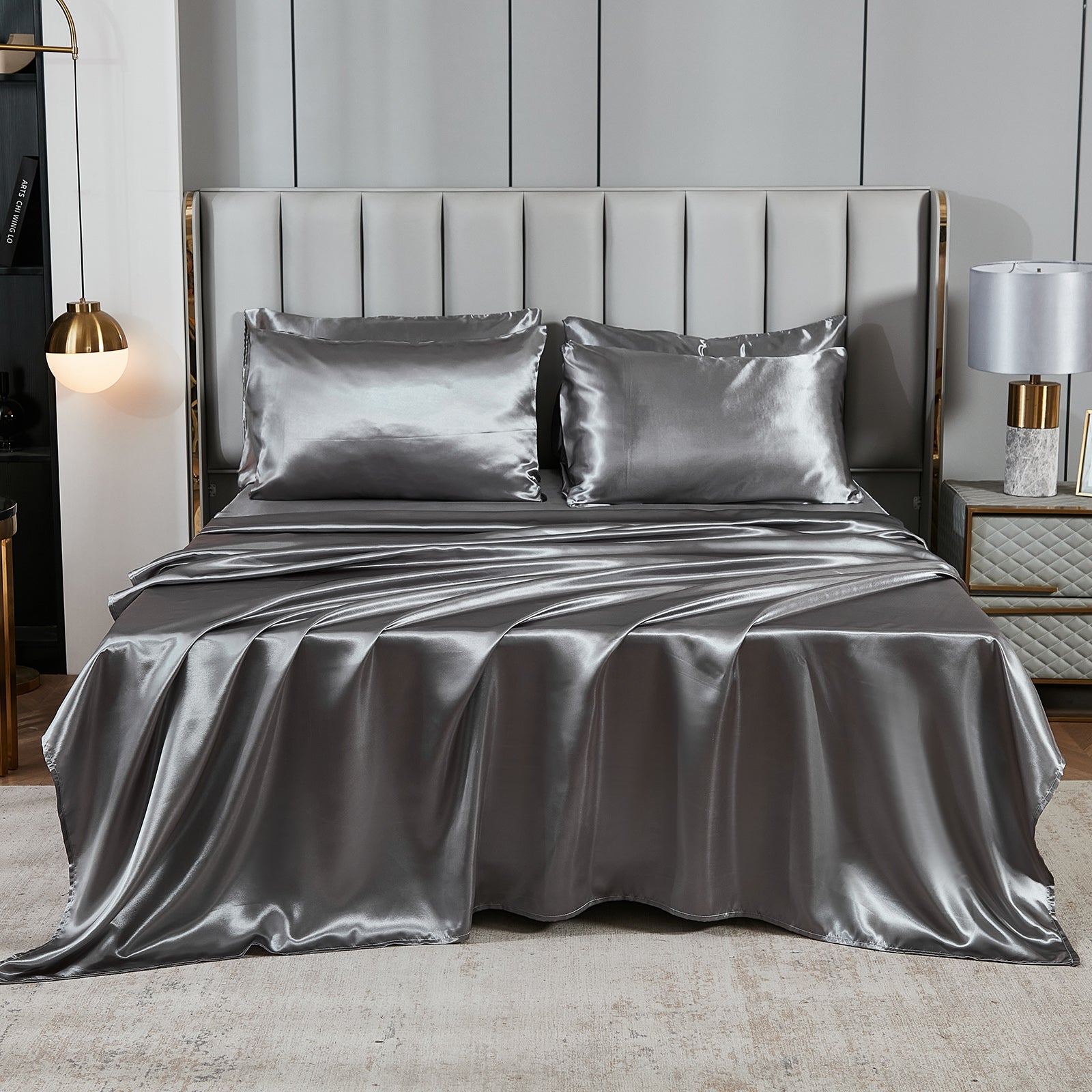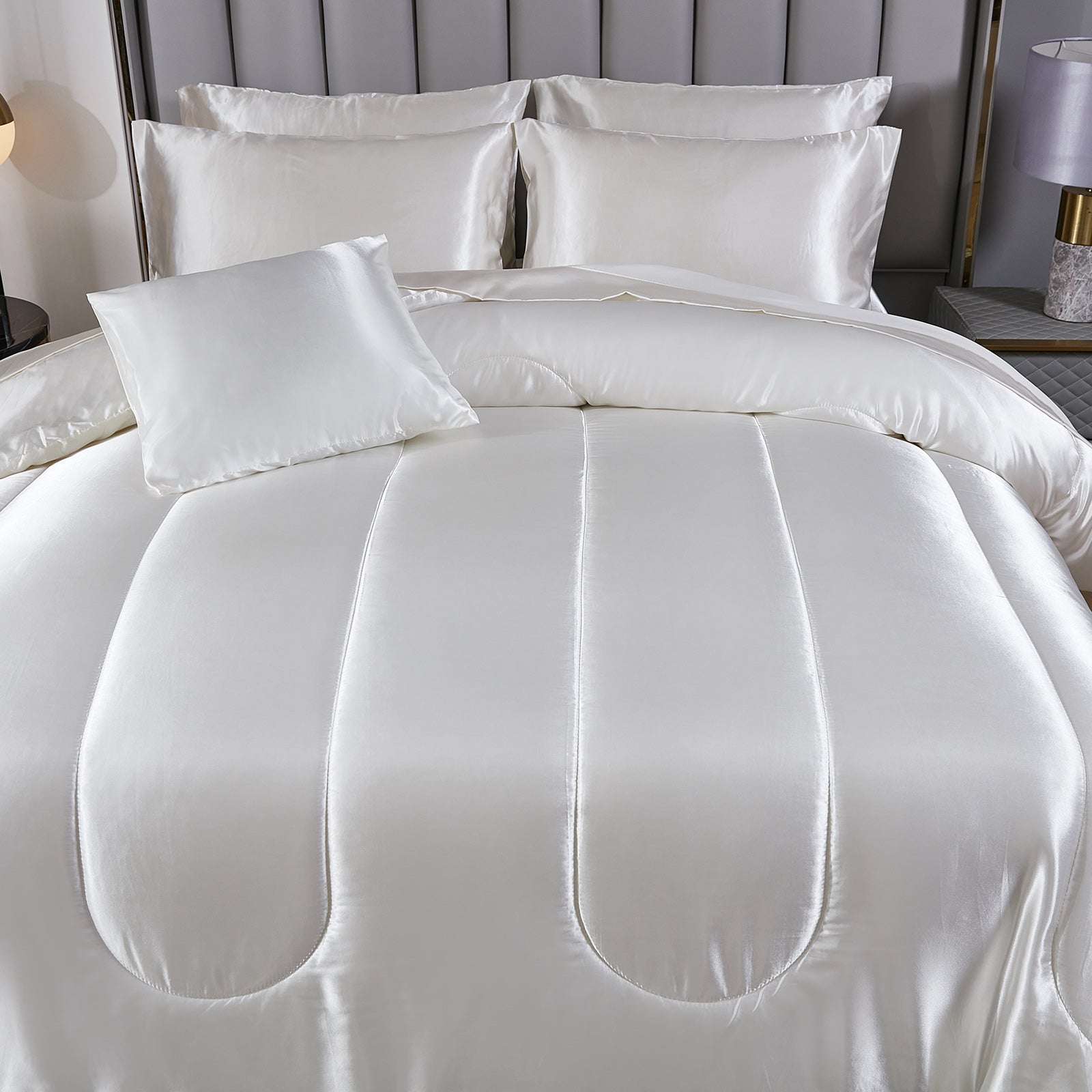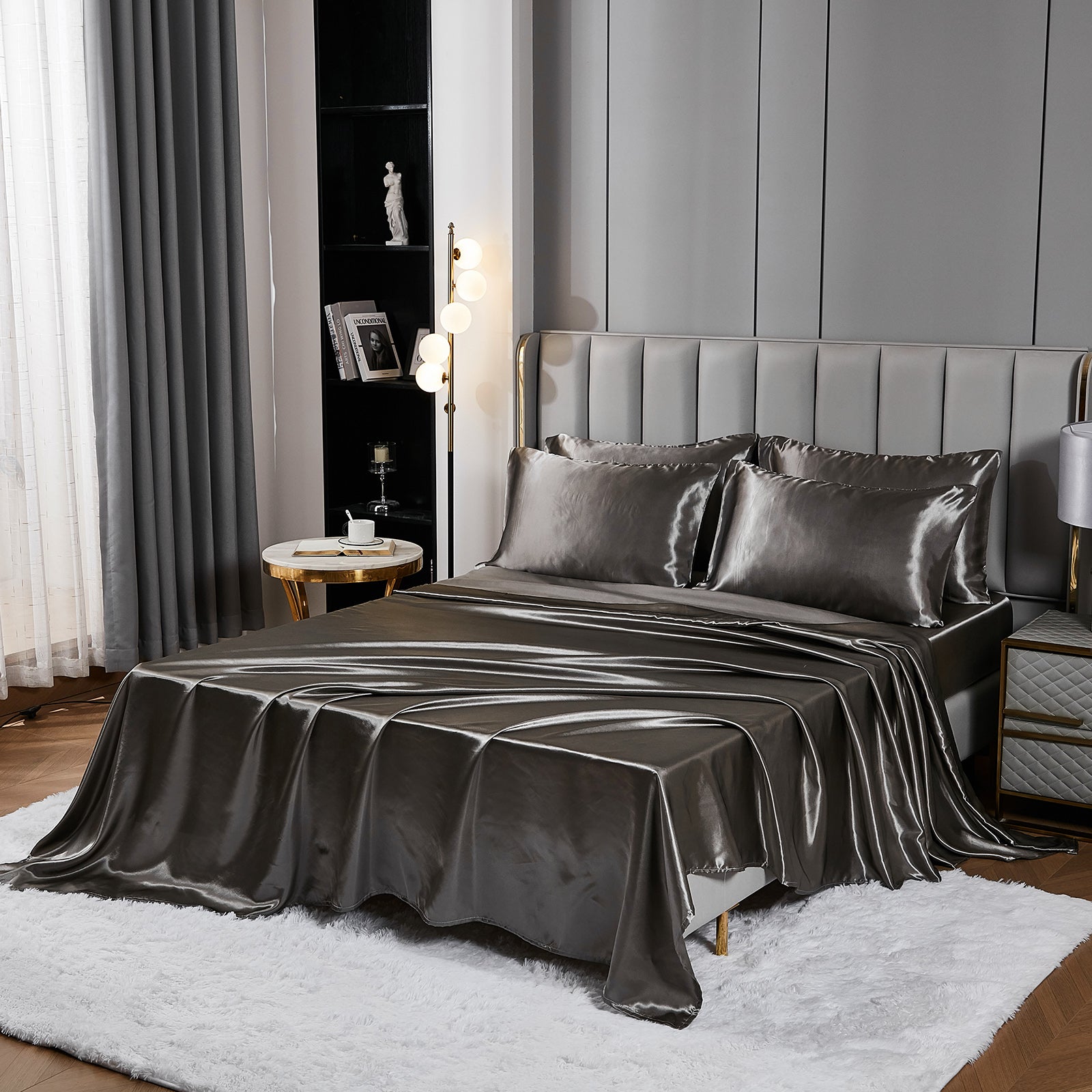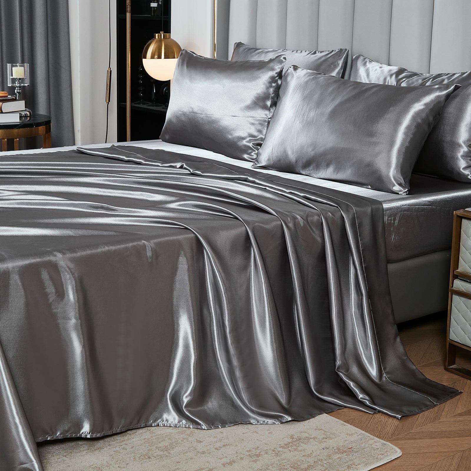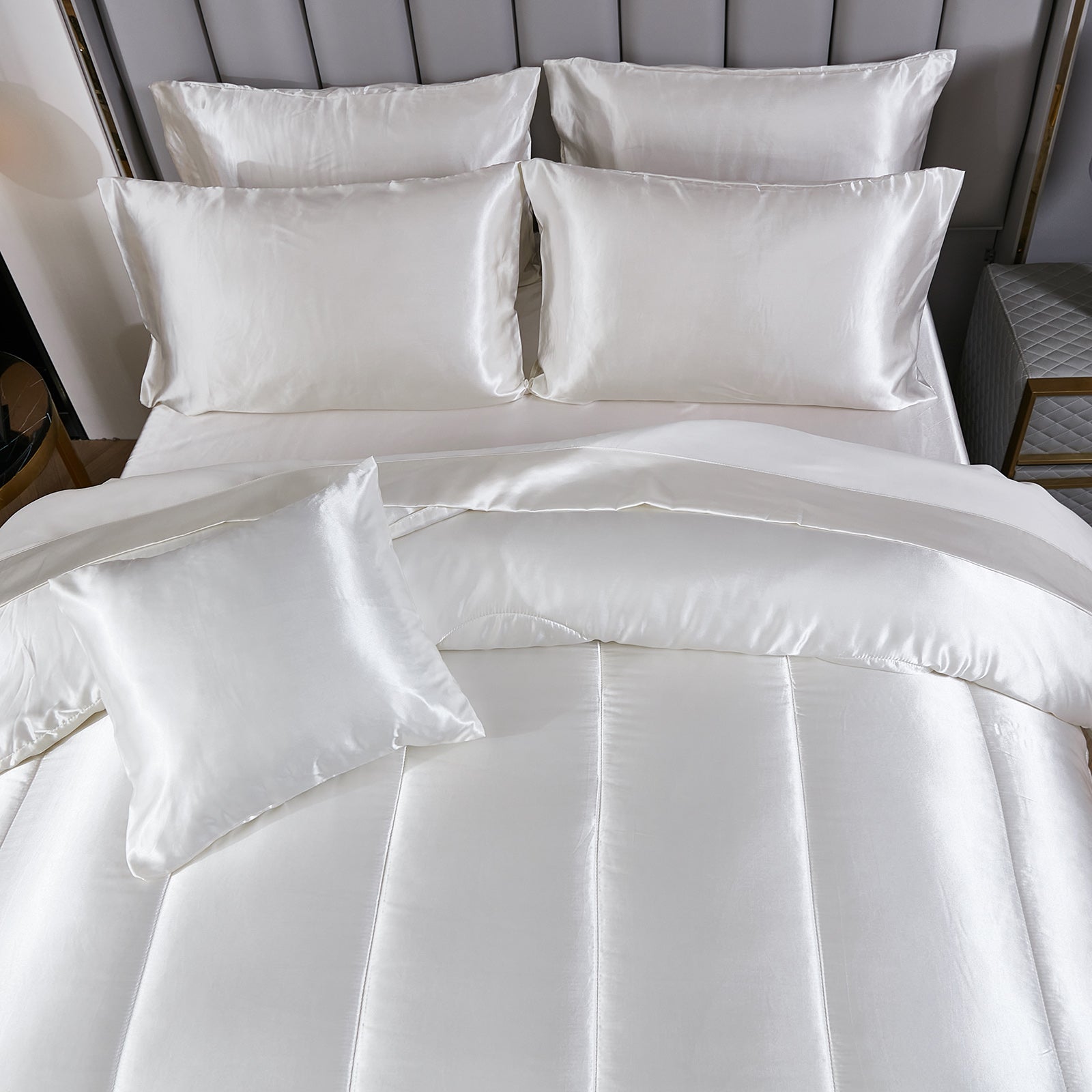 Bring elegance and comfort to your bedroom with the Satin Comforter Set with Sheet Set, a luxurious 8-piece bed-in-a-bag designed to create a refined and cozy sleeping environment. Crafted from silky satin microfiber, this bedding offers the smooth, lustrous texture of real silk while remaining durable and easy to care for.