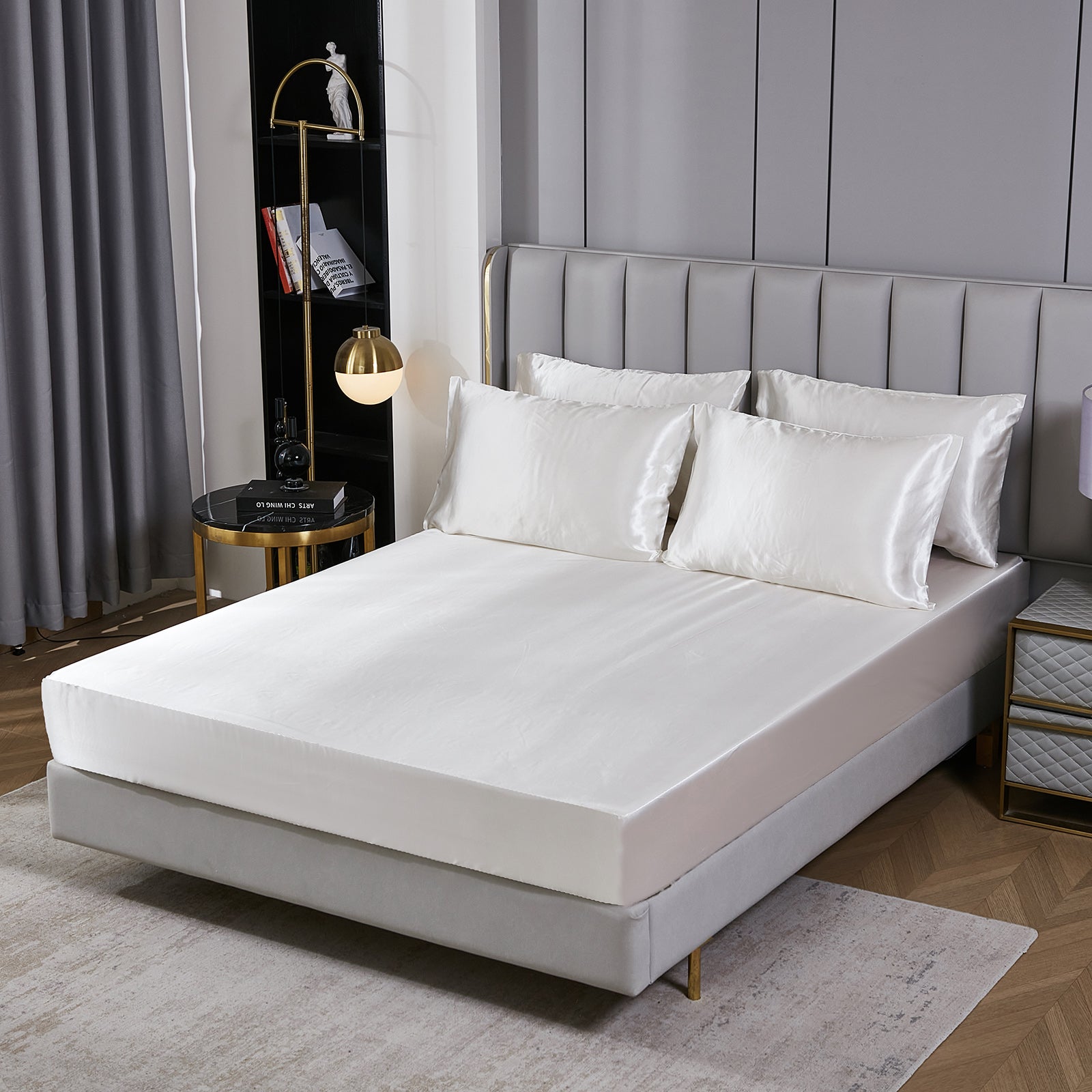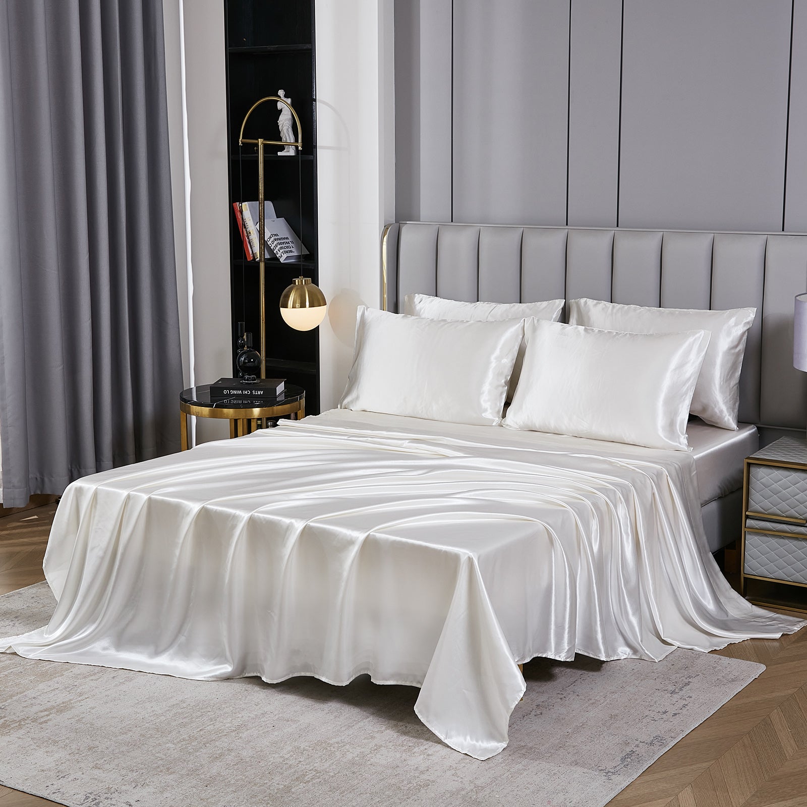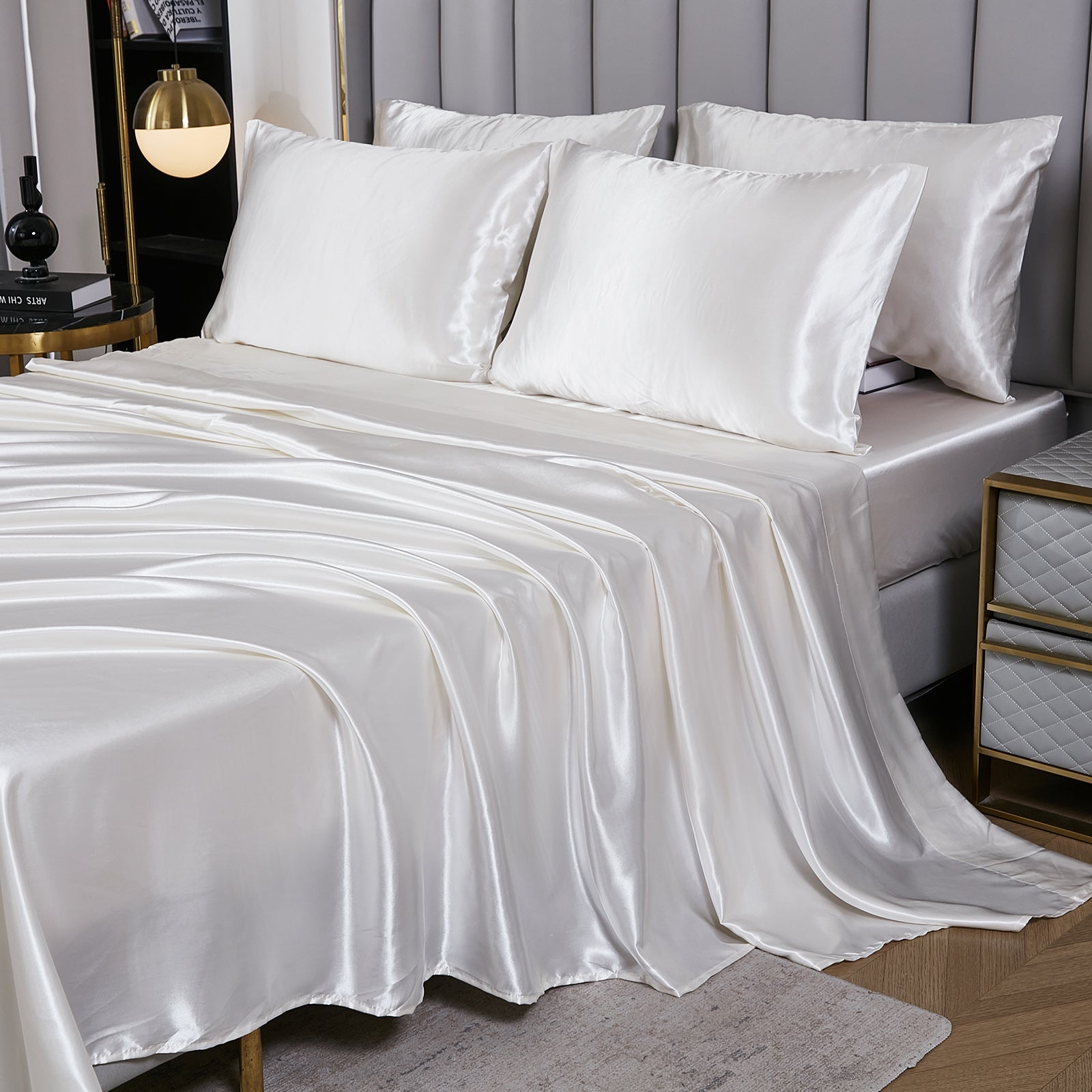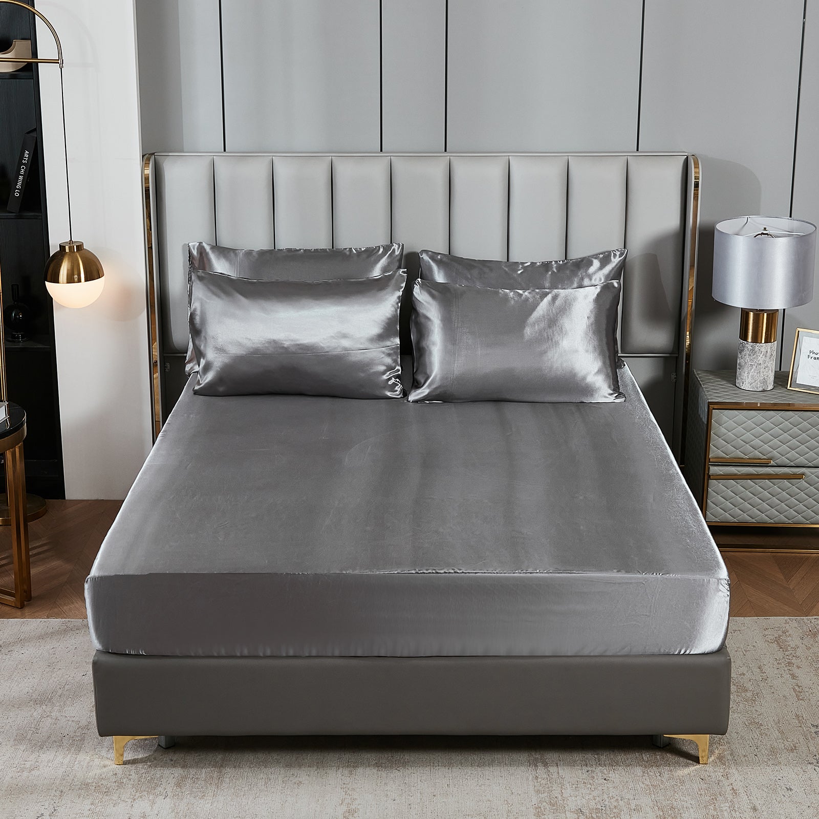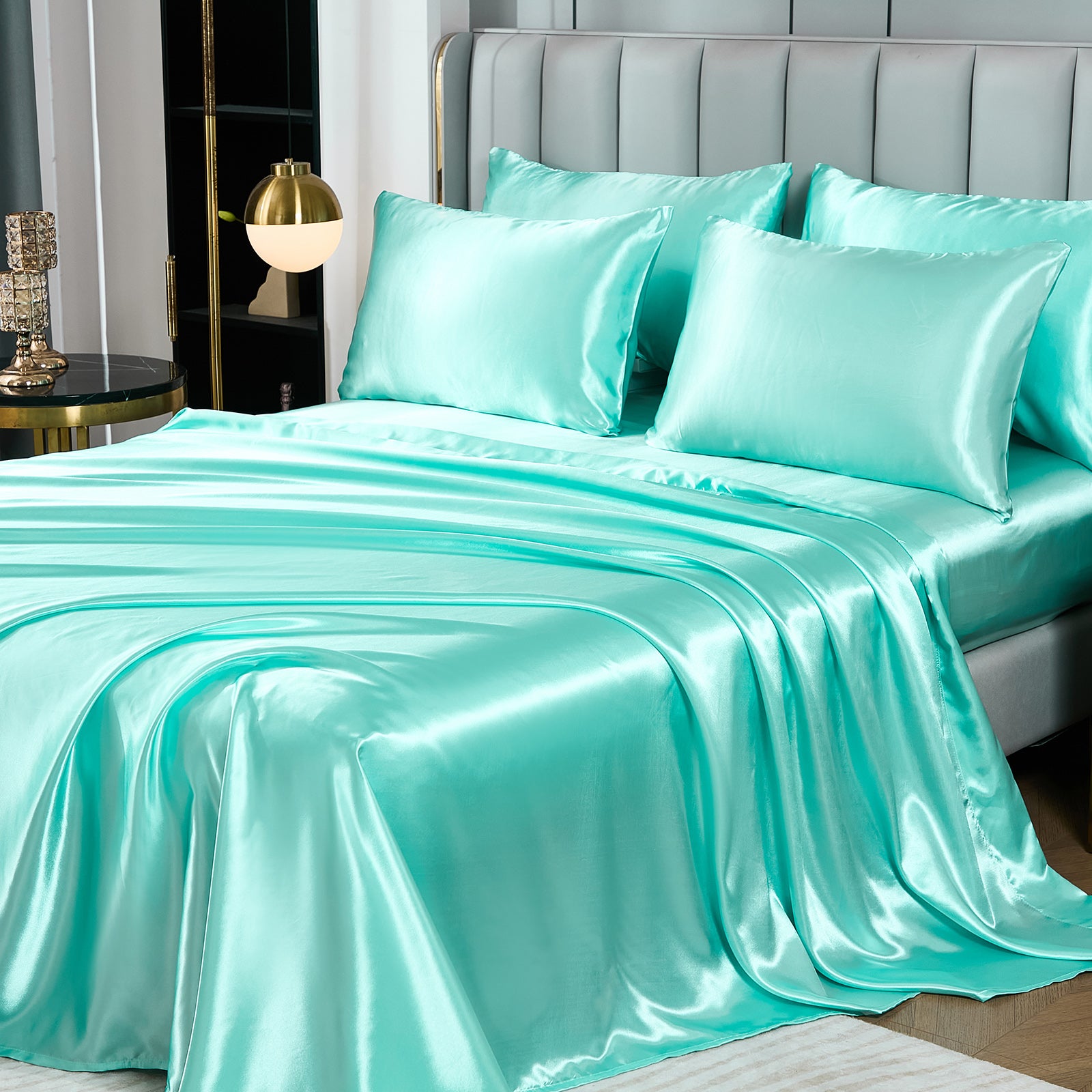 Bring elegance and comfort to your bedroom with the Satin Comforter Set with Sheet Set, a luxurious 8-piece bed-in-a-bag designed to create a refined and cozy sleeping environment. Crafted from silky satin microfiber, this bedding offers the smooth, lustrous texture of real silk while remaining durable and easy to care for.