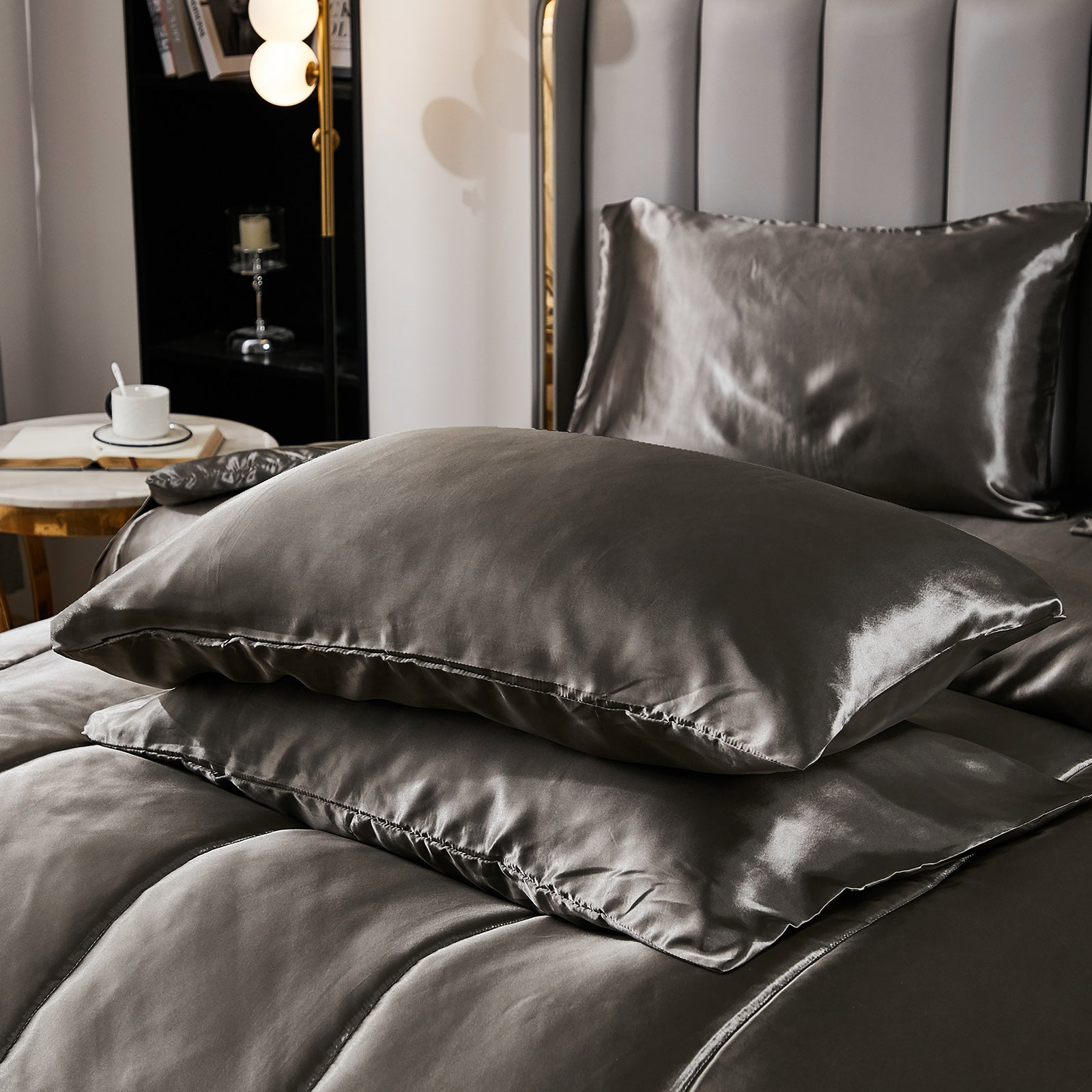 Its European-inspired design features matching craftsmanship on both sides and vibrant color options that brighten any bedroom décor. Easy to maintain and wrinkle-resistant, this satin bedding set keeps your space looking polished, elegant, and effortlessly inviting.