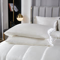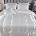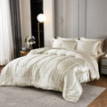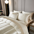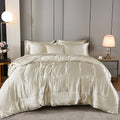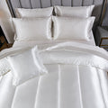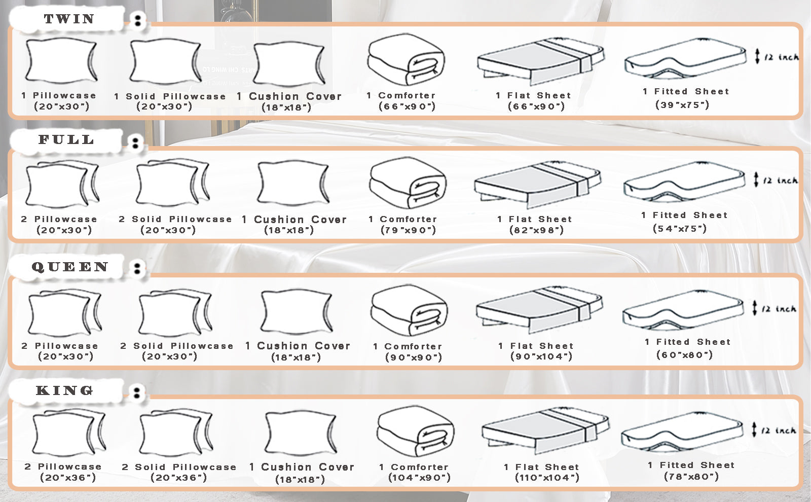 Each set includes a comforter, fitted sheet, flat sheet, 4 pillowcases, and 1 decorative cushion cover—everything you need for a coordinated, sophisticated look. The whole-piece microfiber filling provides lightweight warmth and prevents shifting or clumping, ensuring restful comfort in every season.