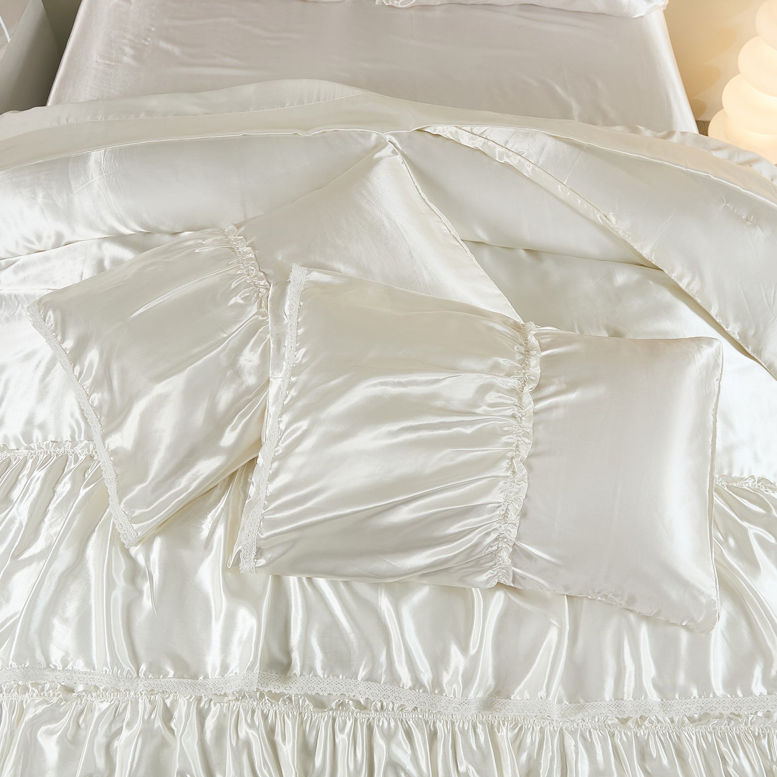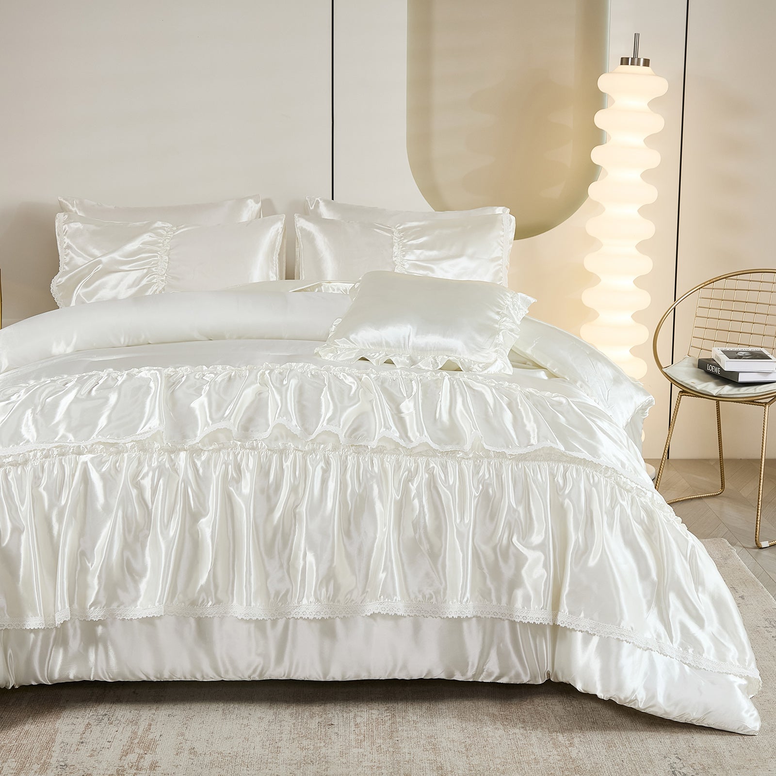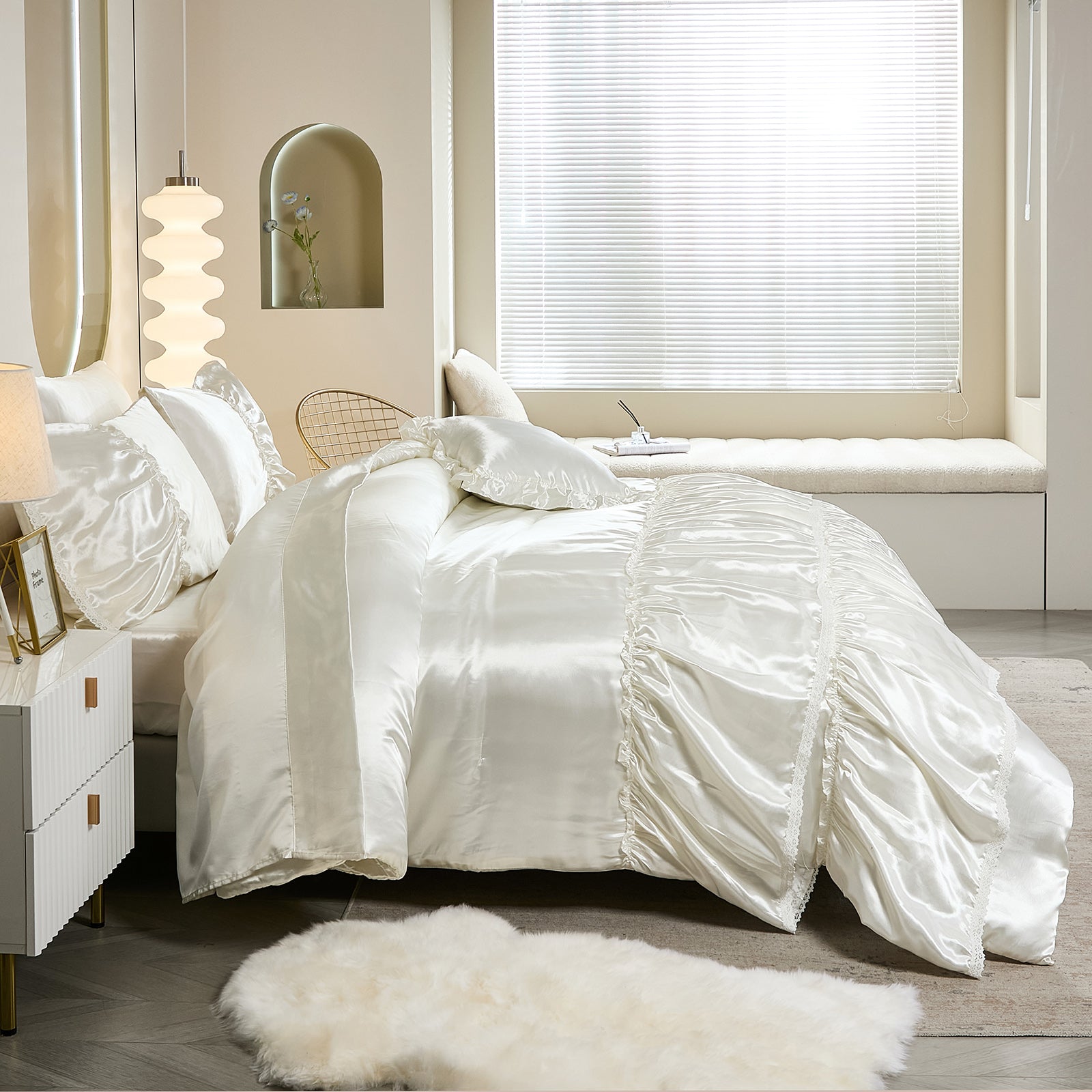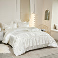 Lightweight yet fluffy, the whole-piece microfiber fill prevents clumping, ensuring consistent warmth and breathability all year long. Machine washable and wrinkle-resistant, this silky bedding set combines effortless maintenance with a truly luxurious sleep experience — perfect for modern, romantic, or boho-style bedrooms.