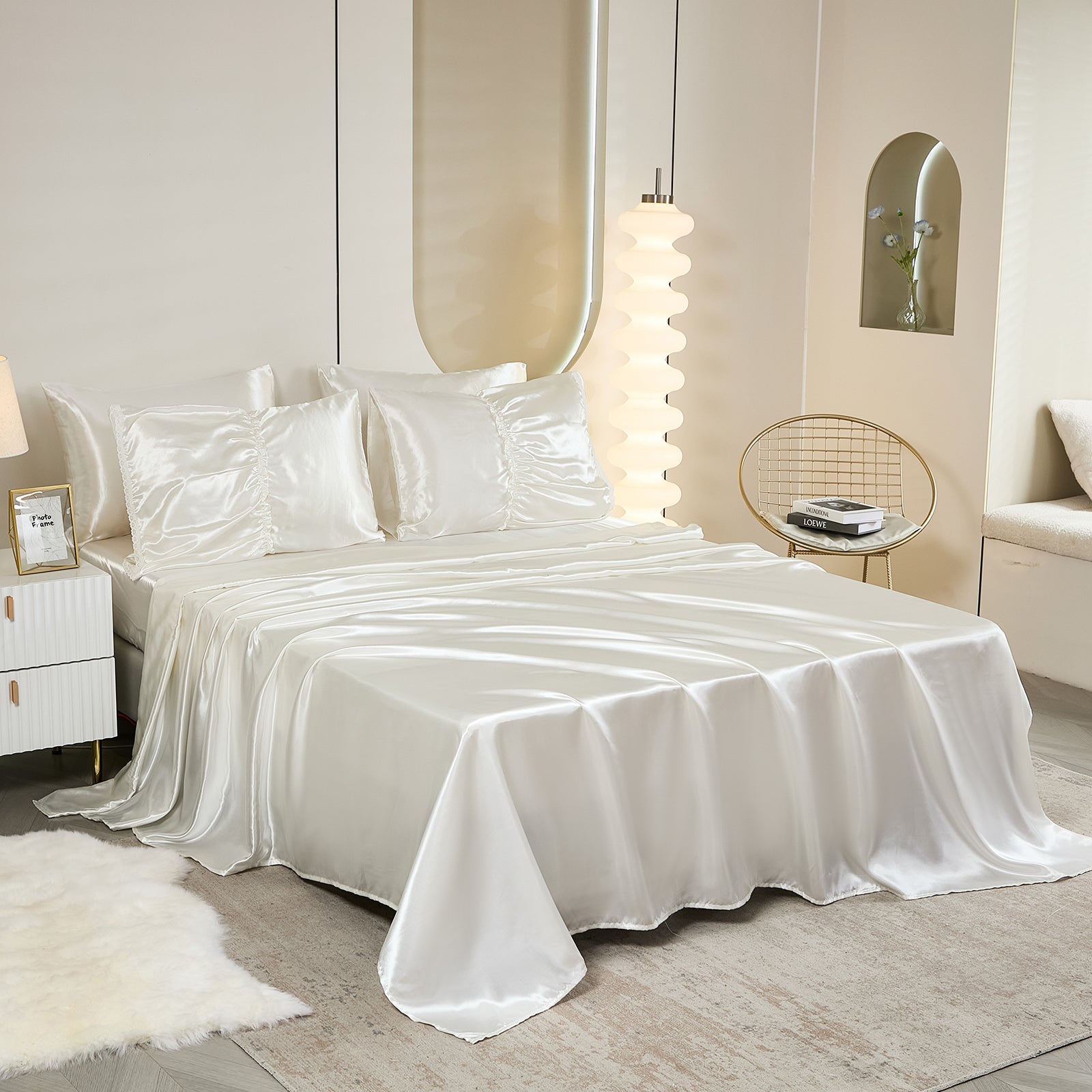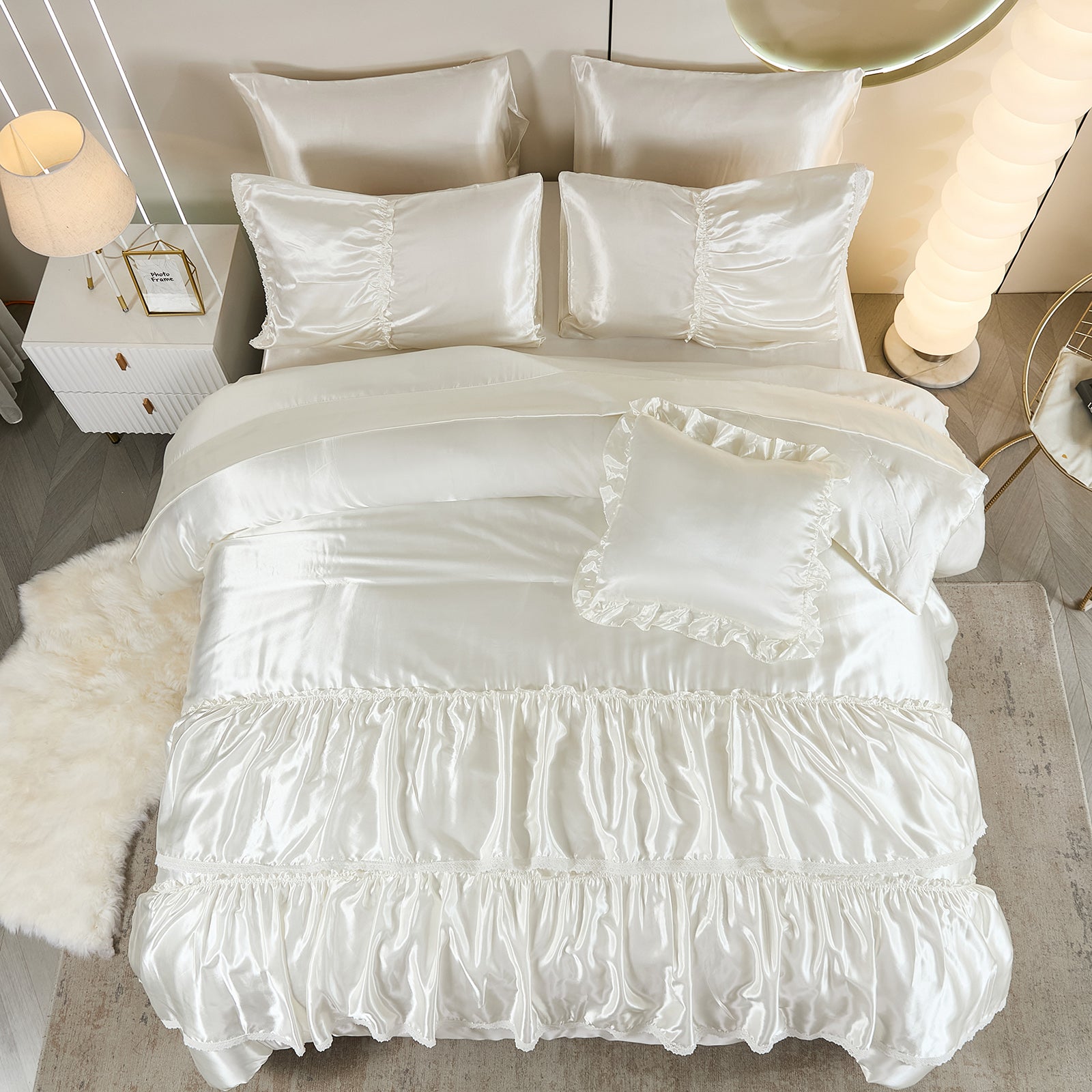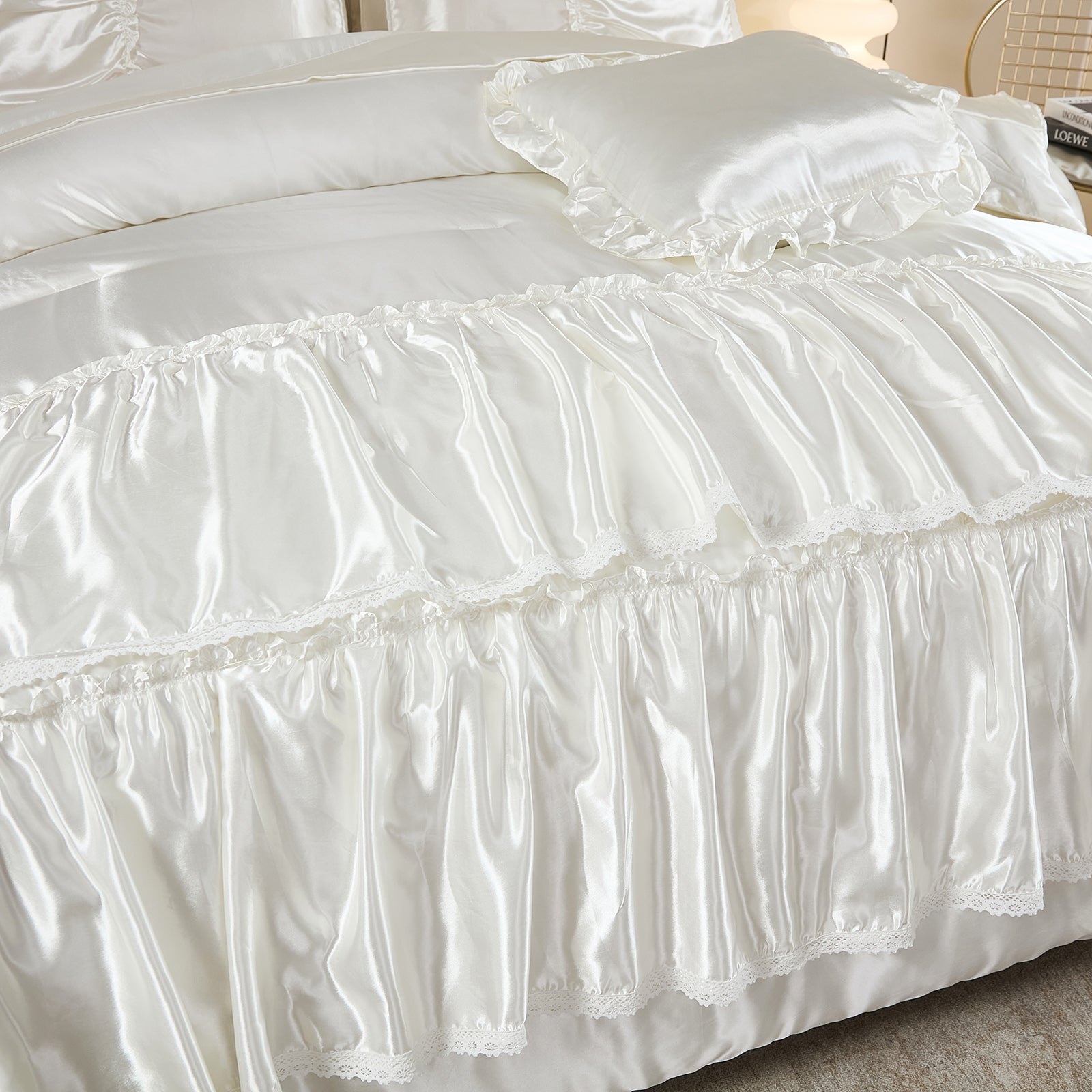 Lightweight yet fluffy, the whole-piece microfiber fill prevents clumping, ensuring consistent warmth and breathability all year long. Machine washable and wrinkle-resistant, this silky bedding set combines effortless maintenance with a truly luxurious sleep experience — perfect for modern, romantic, or boho-style bedrooms.