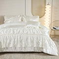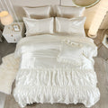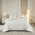 The comforter’s pinch pleat and ruffle detailing add depth and refinement, giving your space a timeless, hotel-inspired aesthetic. Each set includes a comforter, fitted sheet, flat sheet, four pillowcases, and one cushion cover, offering cohesive style for any decor.