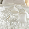 Satin Comforter Set with Sheet Set –Like Bed in a Bag, Ruffled Pinch Pleat Bedding, Luxury Soft Silky Quilt Set with Cushion Cover