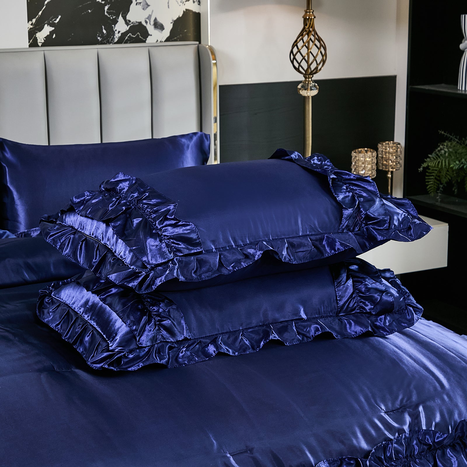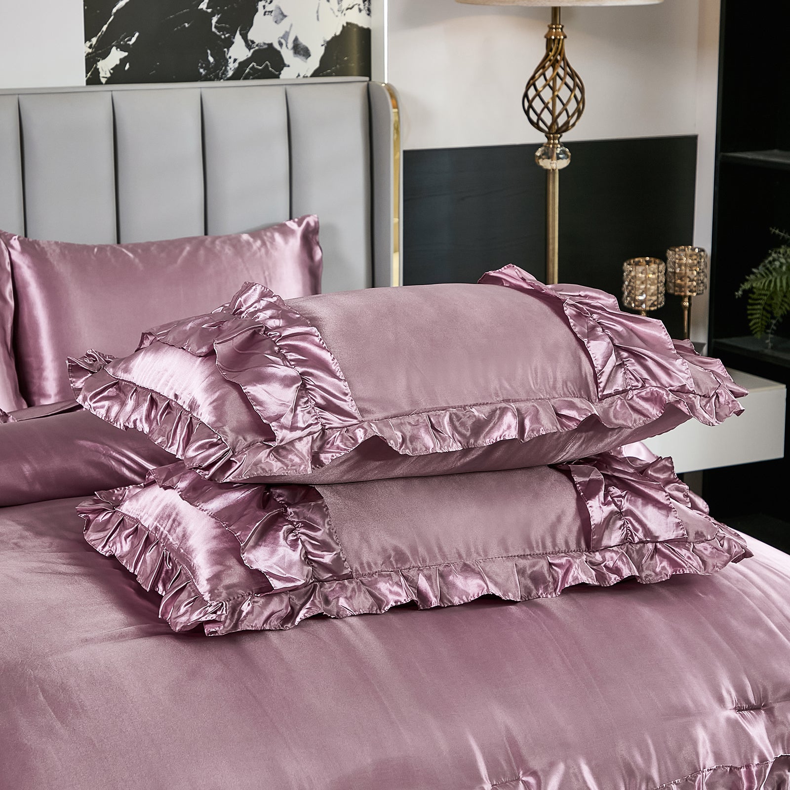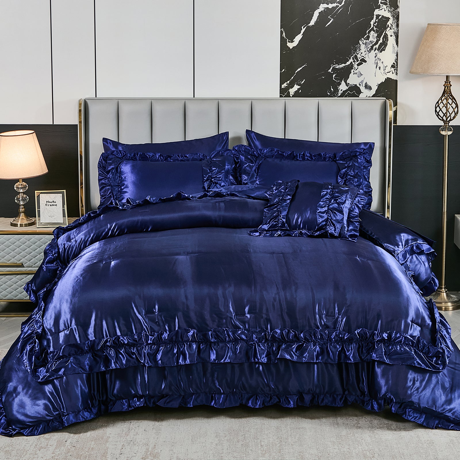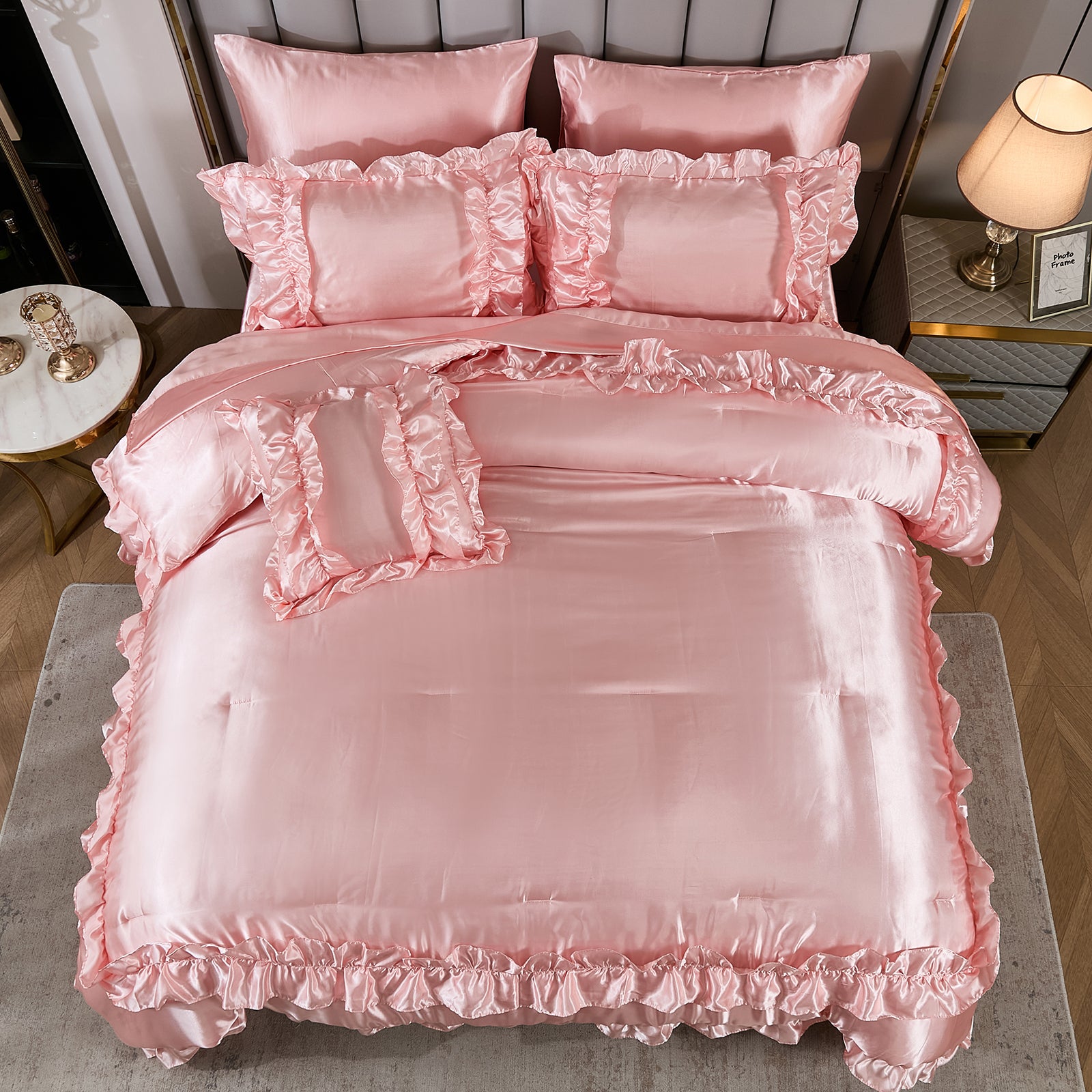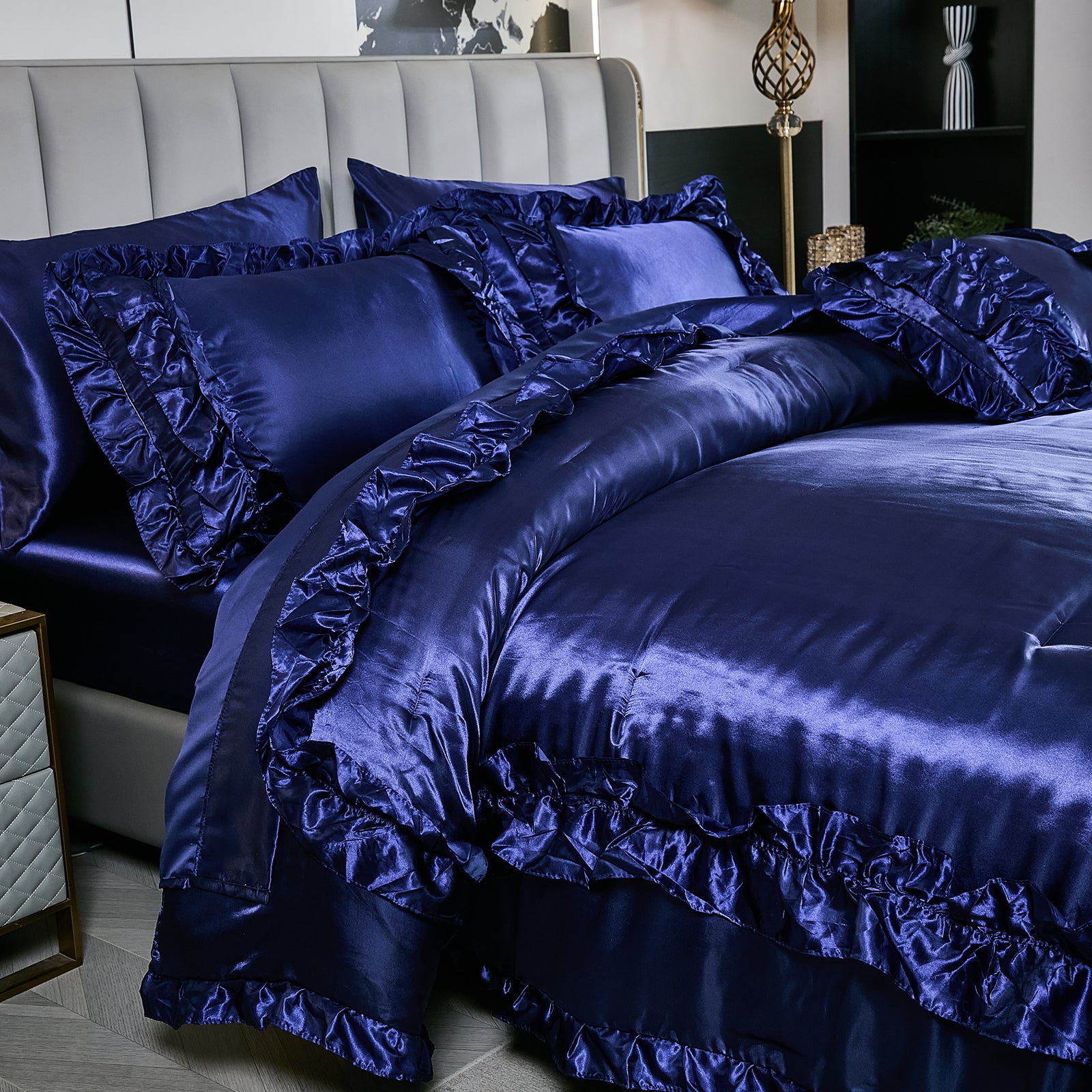 Transform your bedroom with the Satin Ruffle Comforter Set Bed in a Bag, featuring a classic waterfall ruffle design that brings romance and elegance to your space. The cascading ruffles add a princess-inspired charm, making this set perfect for farmhouse, shabby chic, or boho bedrooms.
