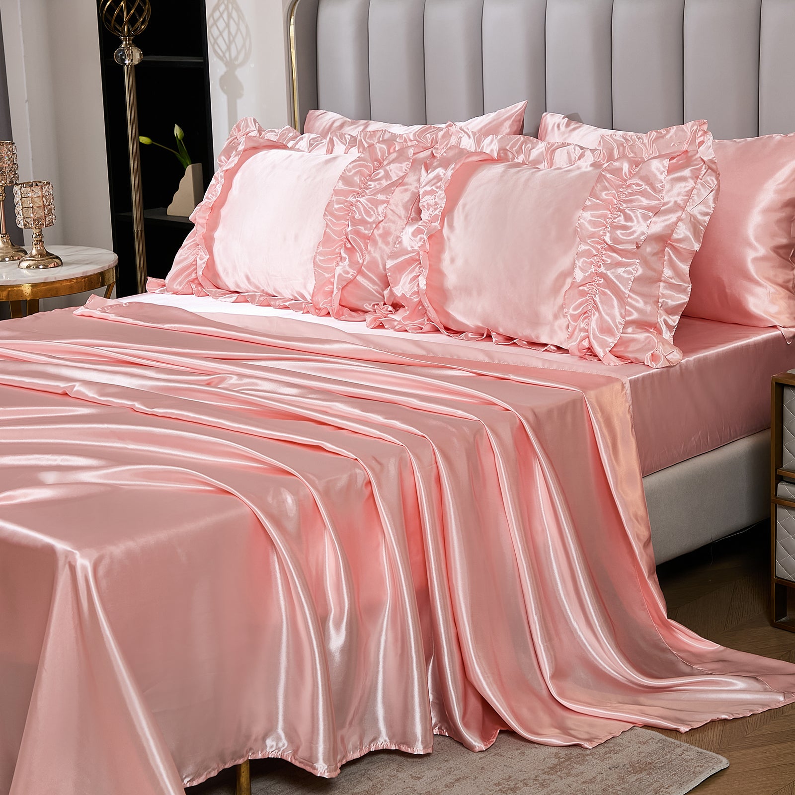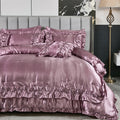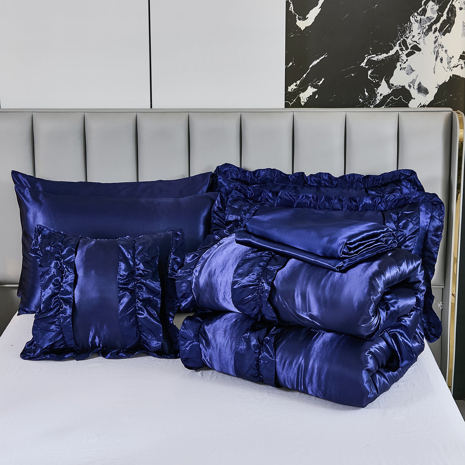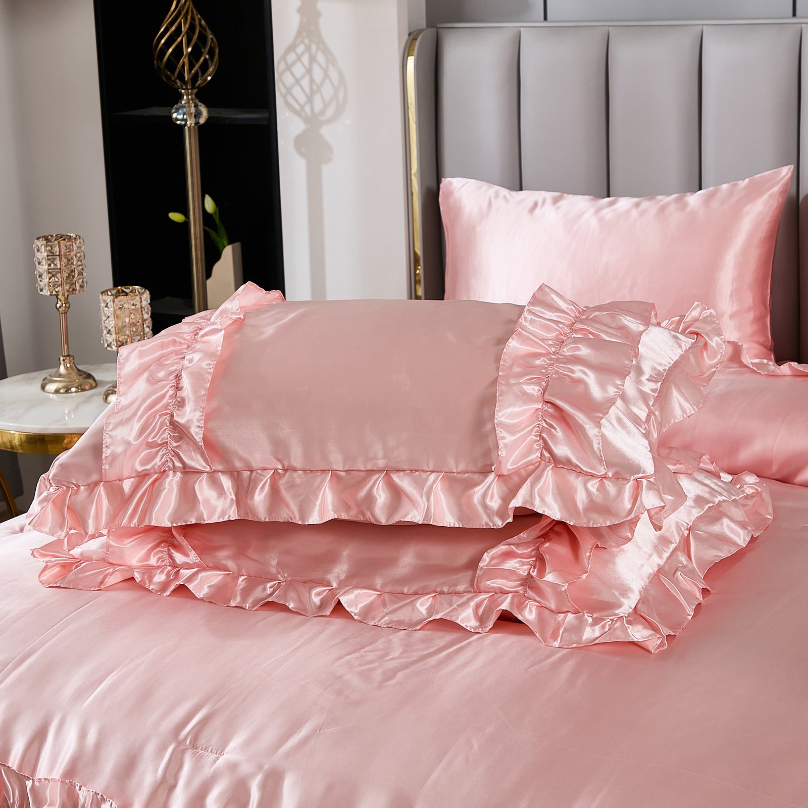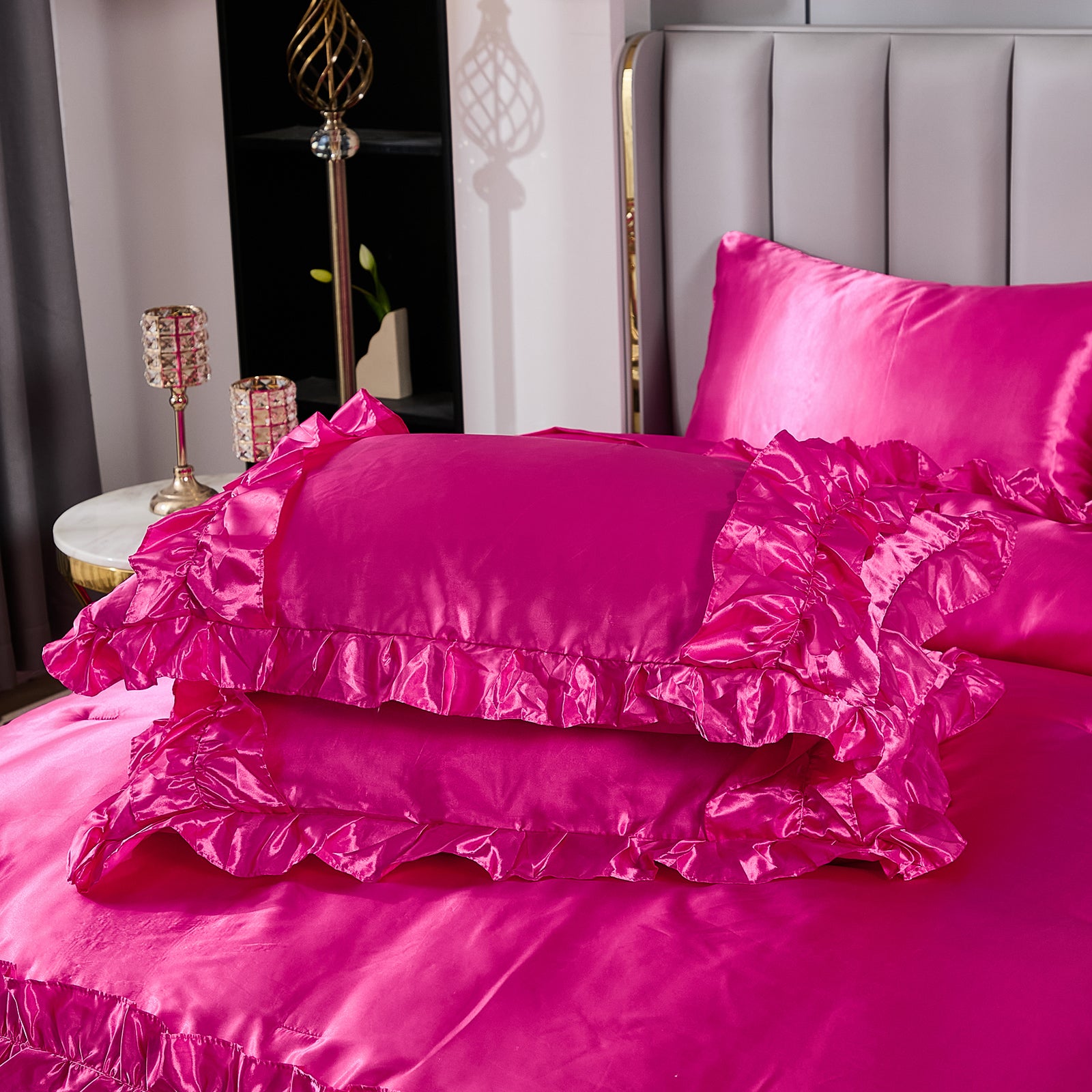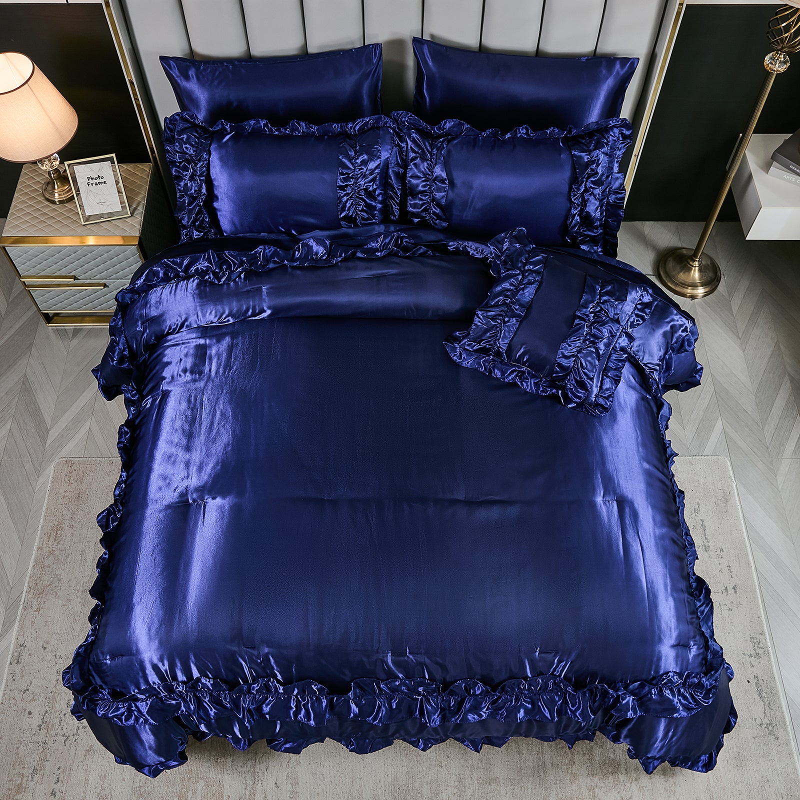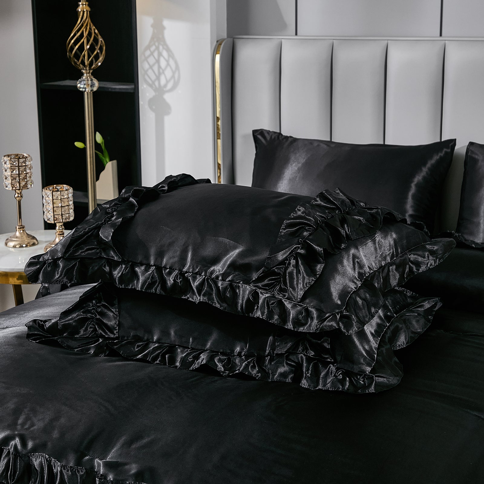 Transform your bedroom with the Satin Ruffle Comforter Set Bed in a Bag, featuring a classic waterfall ruffle design that brings romance and elegance to your space. The cascading ruffles add a princess-inspired charm, making this set perfect for farmhouse, shabby chic, or boho bedrooms.